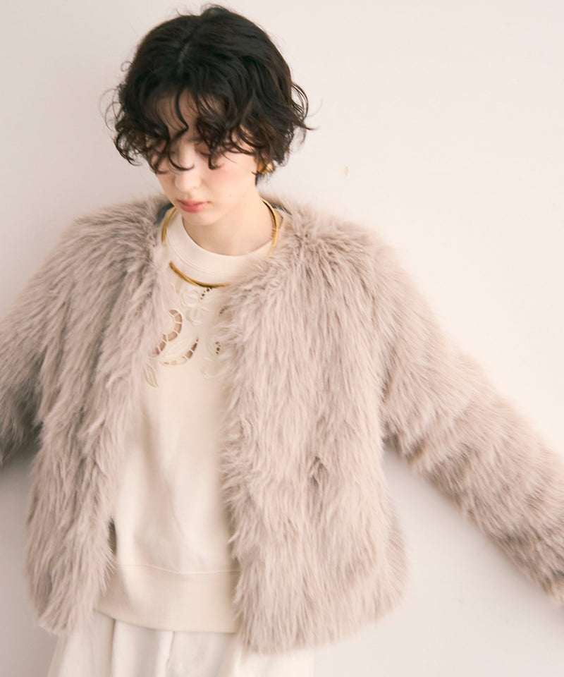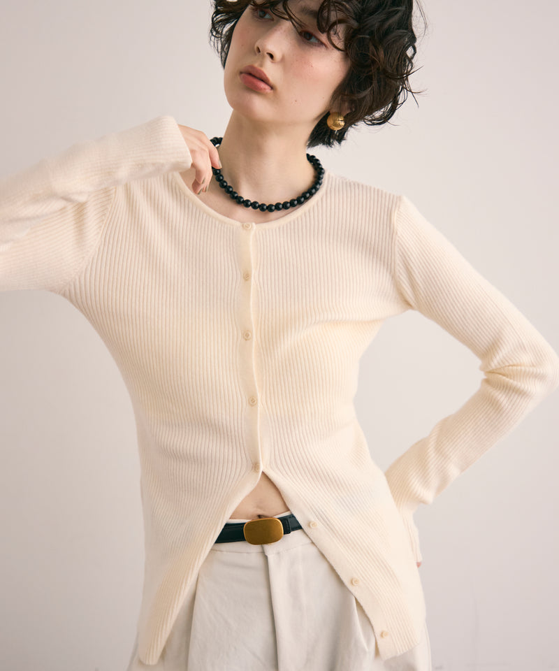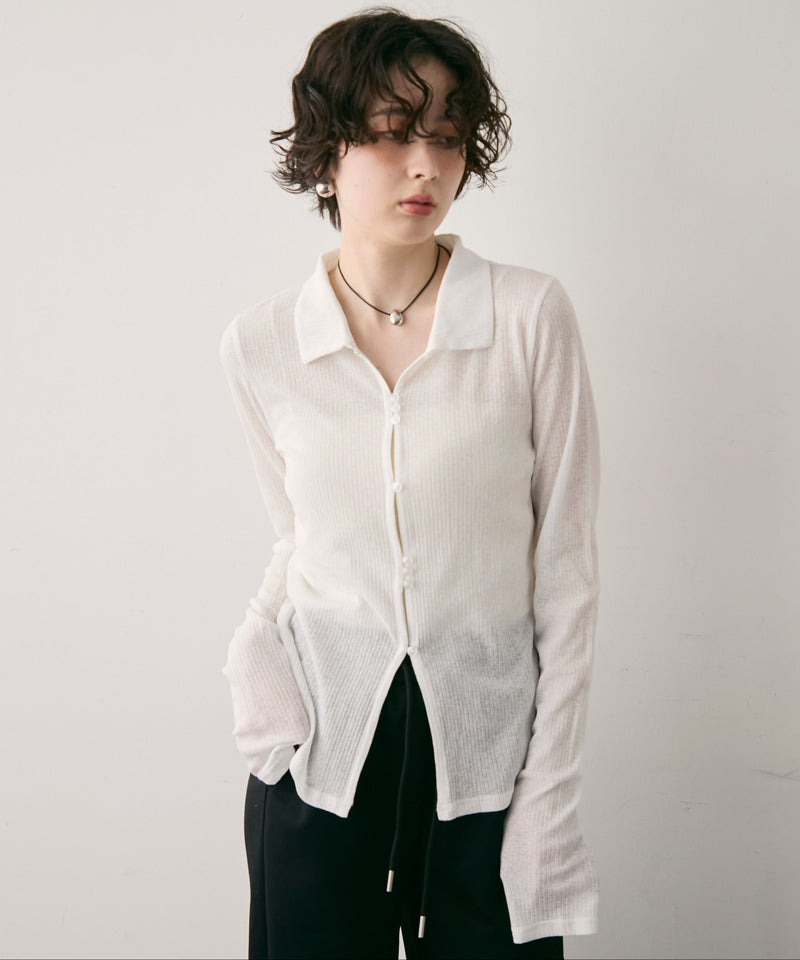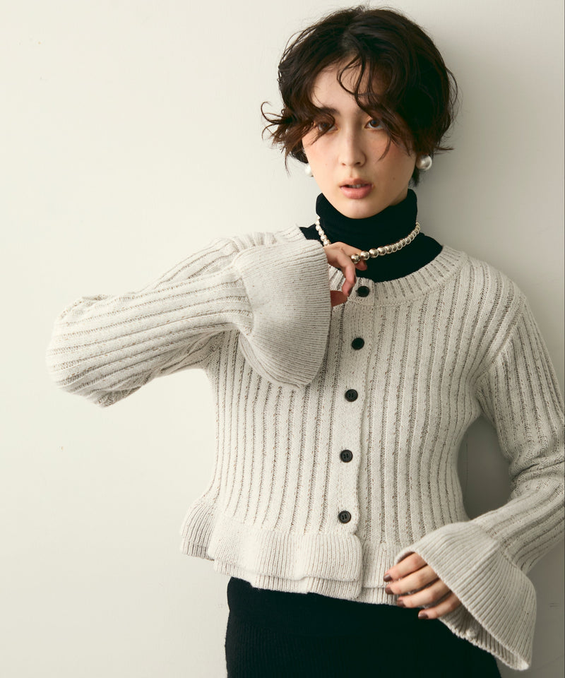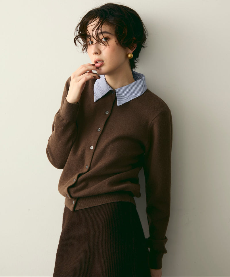 【衿取り外し可能】ストライプ衿ニットカーディガン