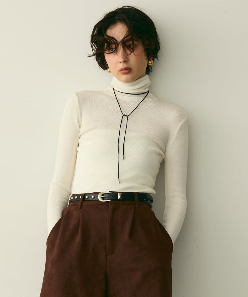 タートルネックリブ編みニットプルオーバー