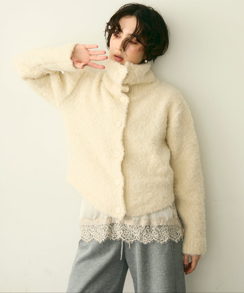 ハイネックブークレニットカーディガン