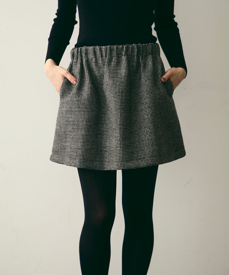 【裏起毛】ツイードギャザーミニスカート