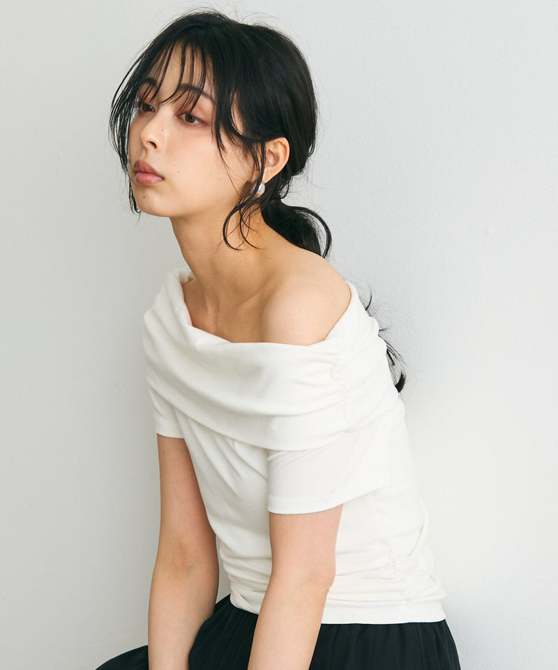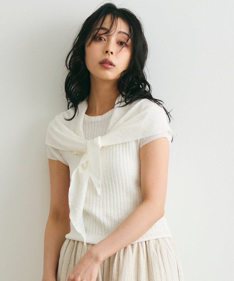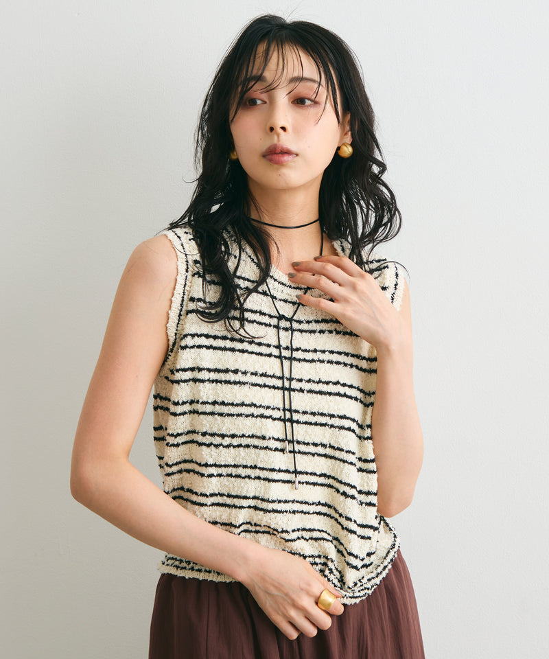 ピーチスキンストライプウエストギャザーイージーパンツ