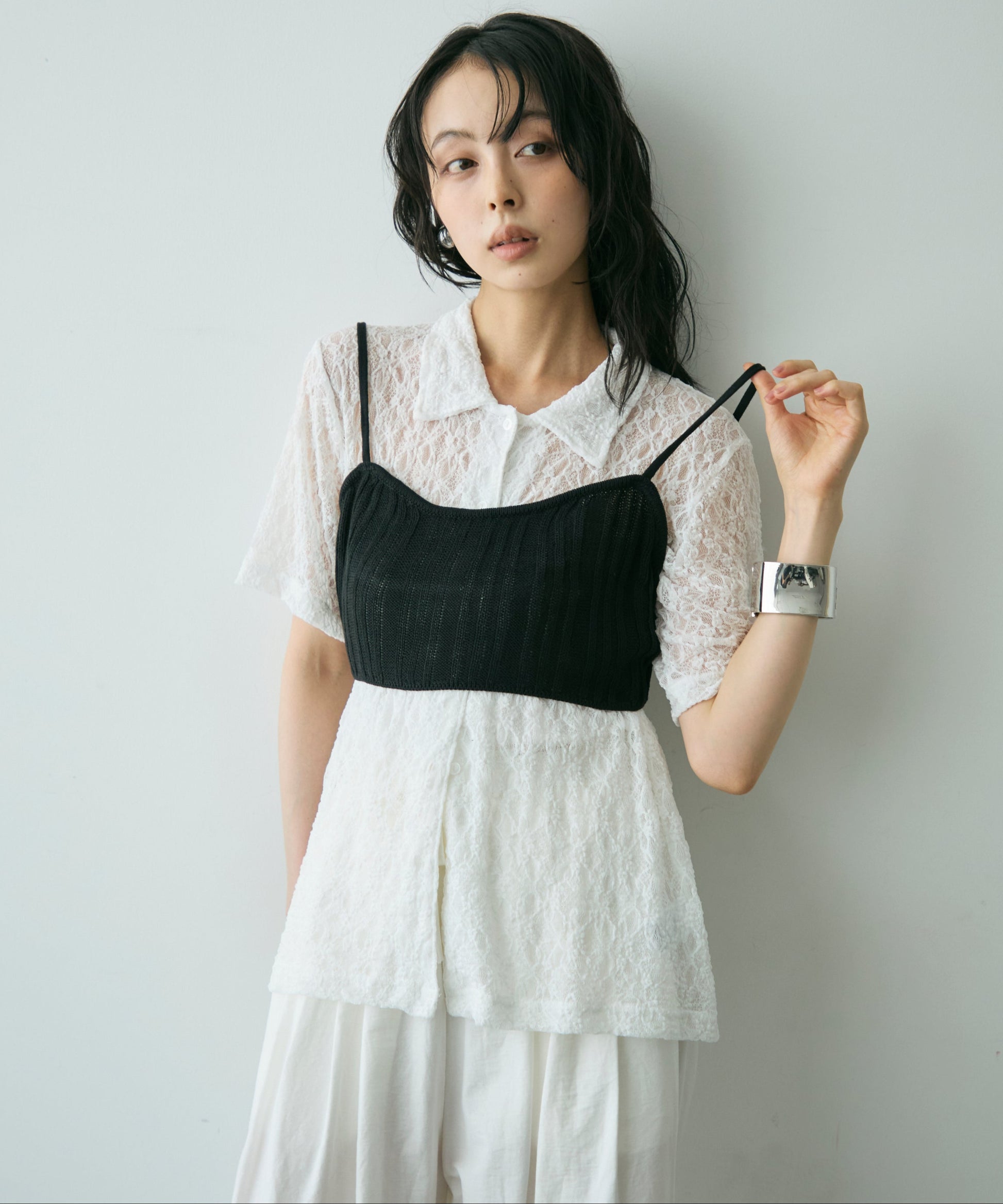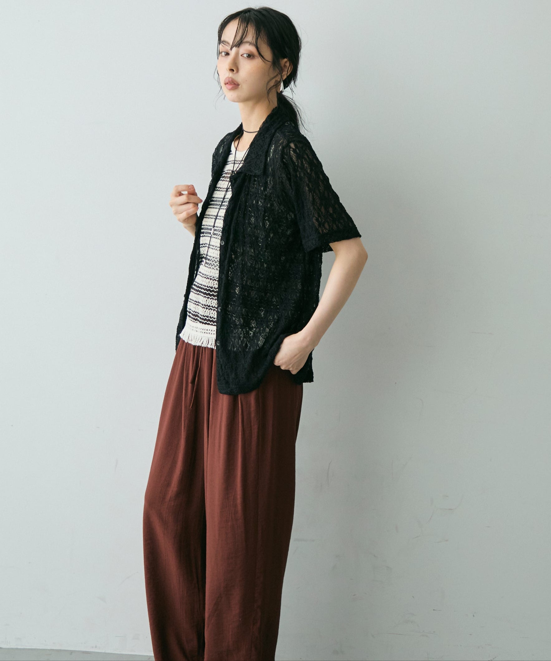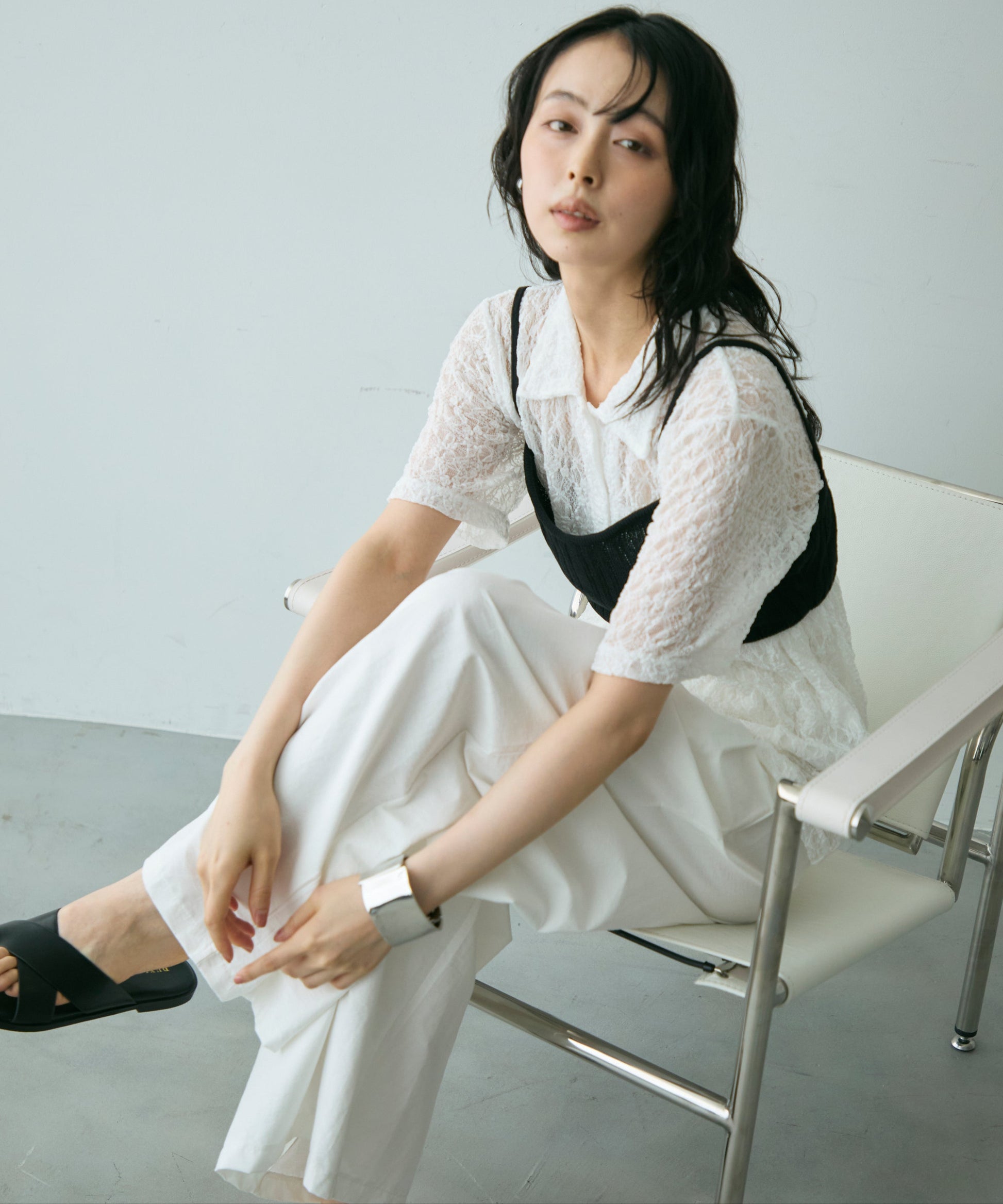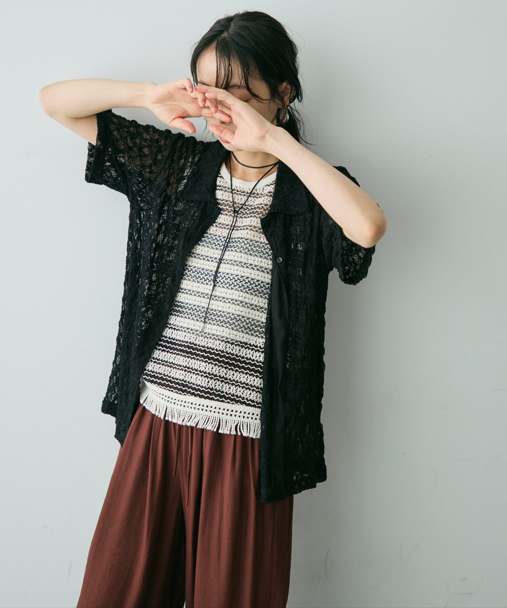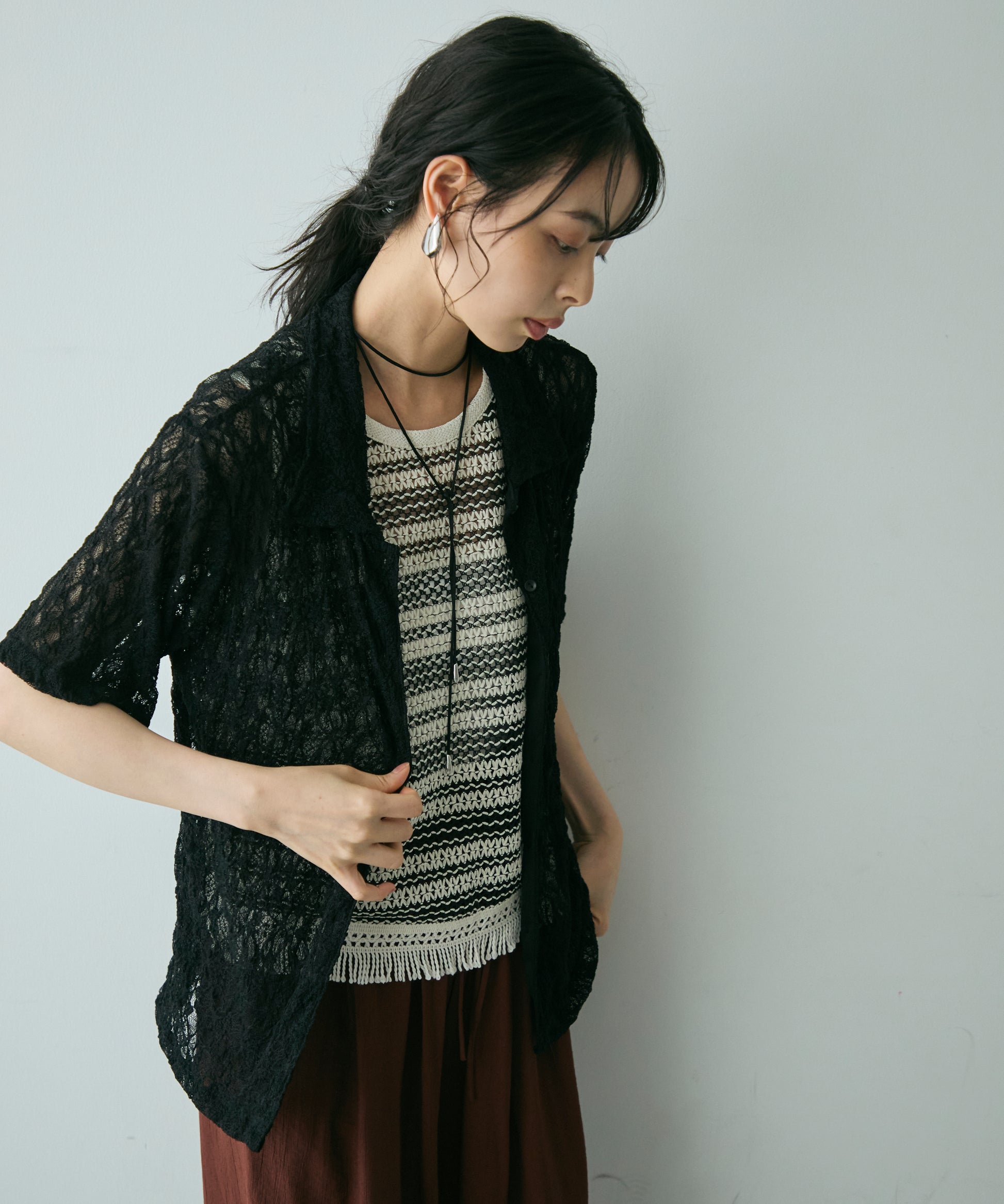 透け感があるためインナーを変えるだけで印象も大きく変わります。