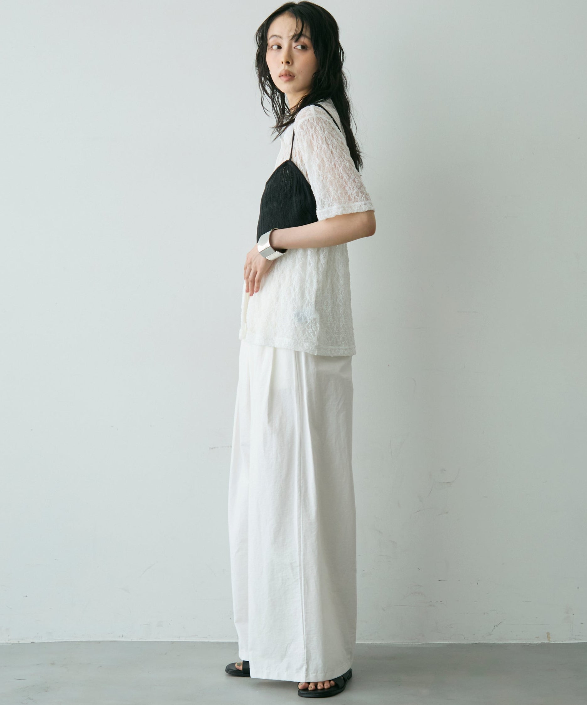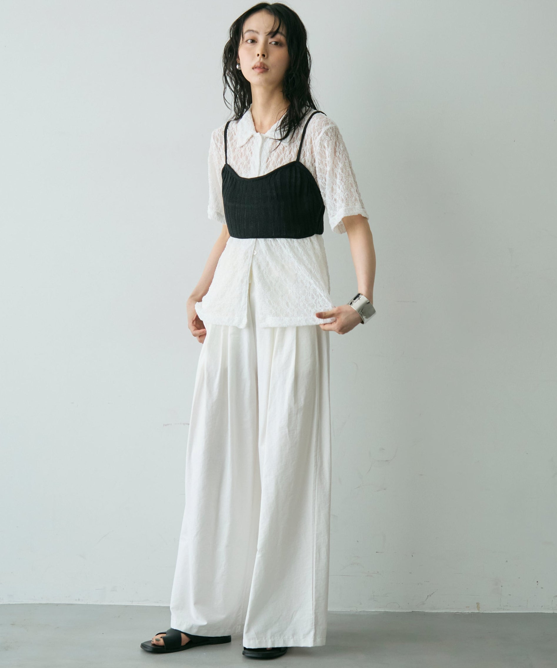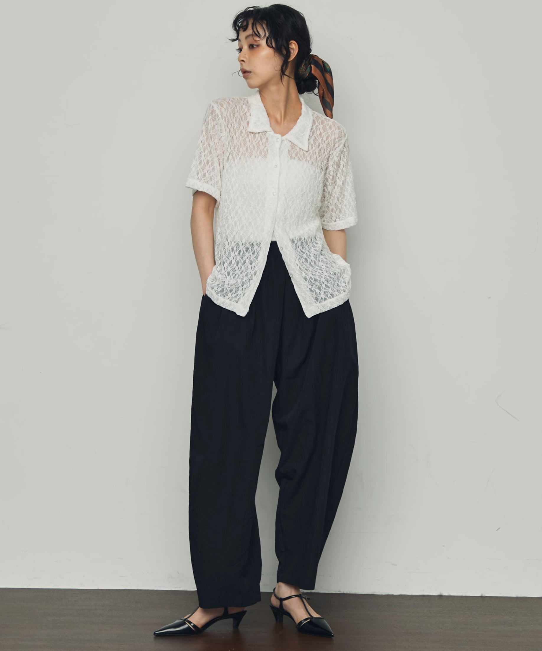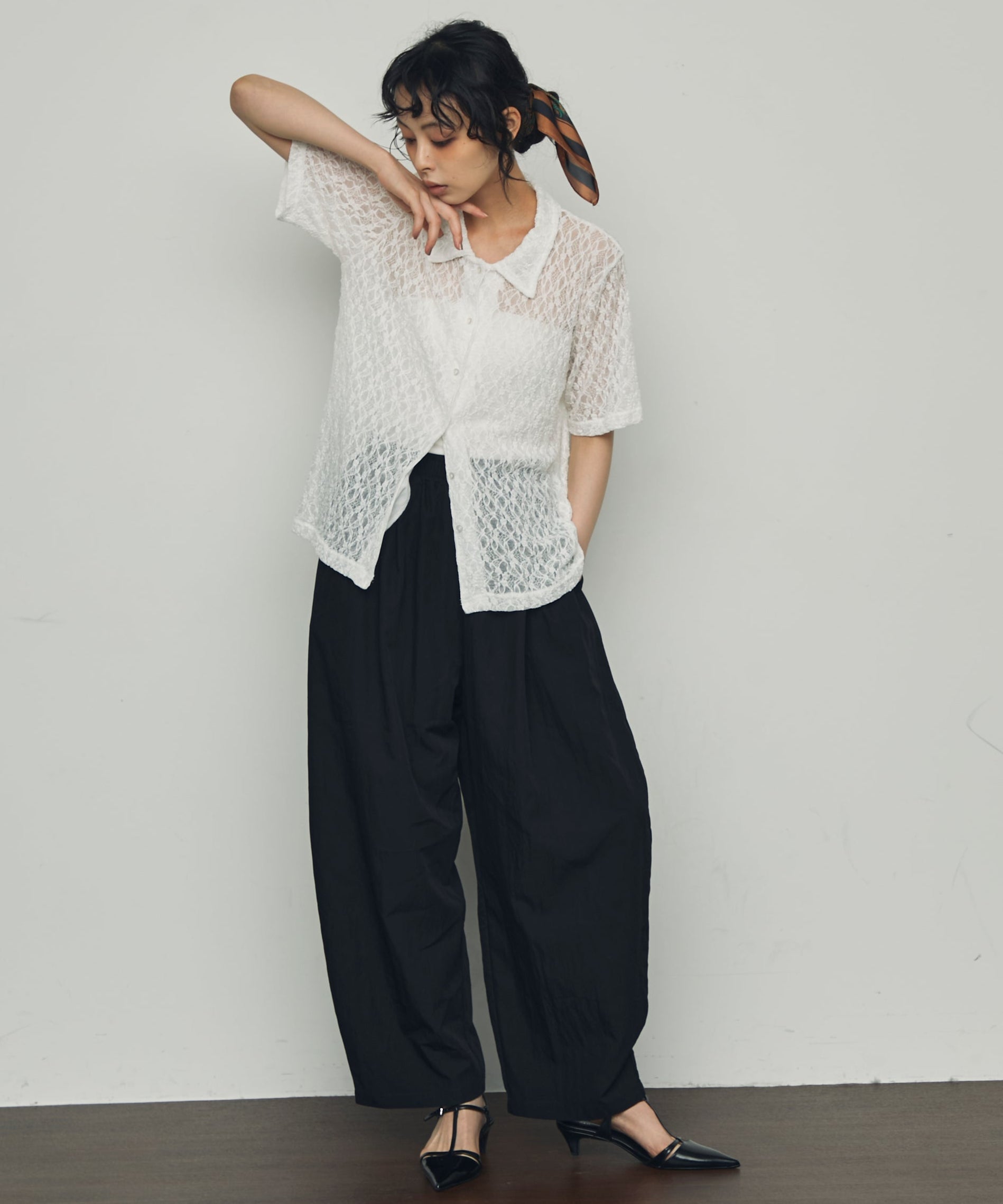 透け感があるためインナーを変えるだけで印象も大きく変わります。