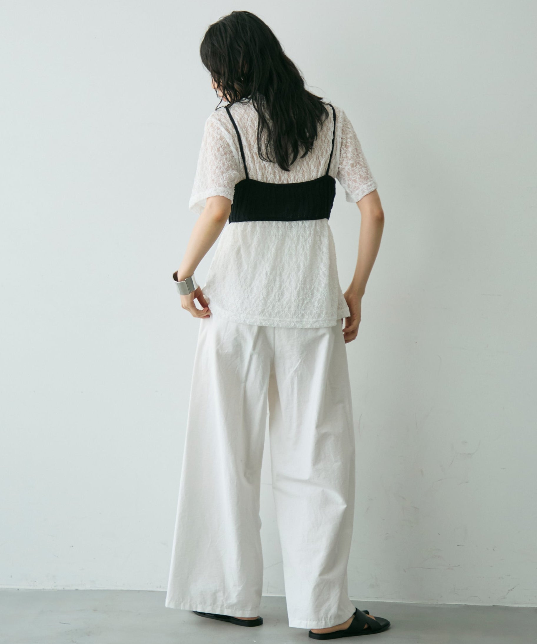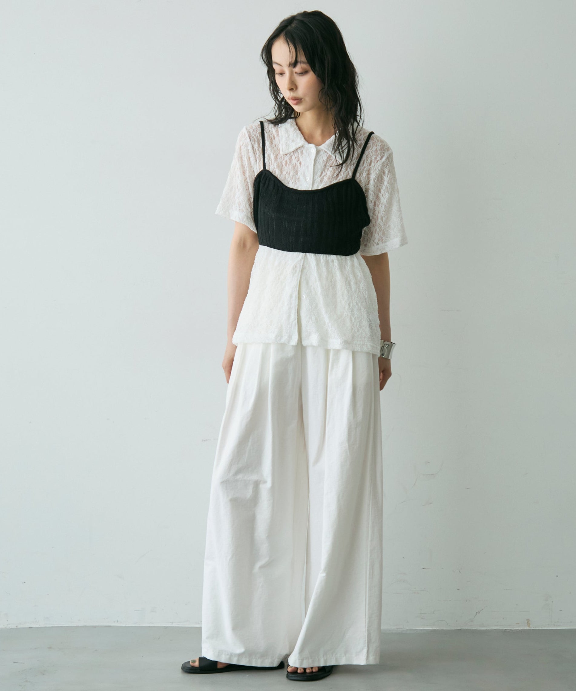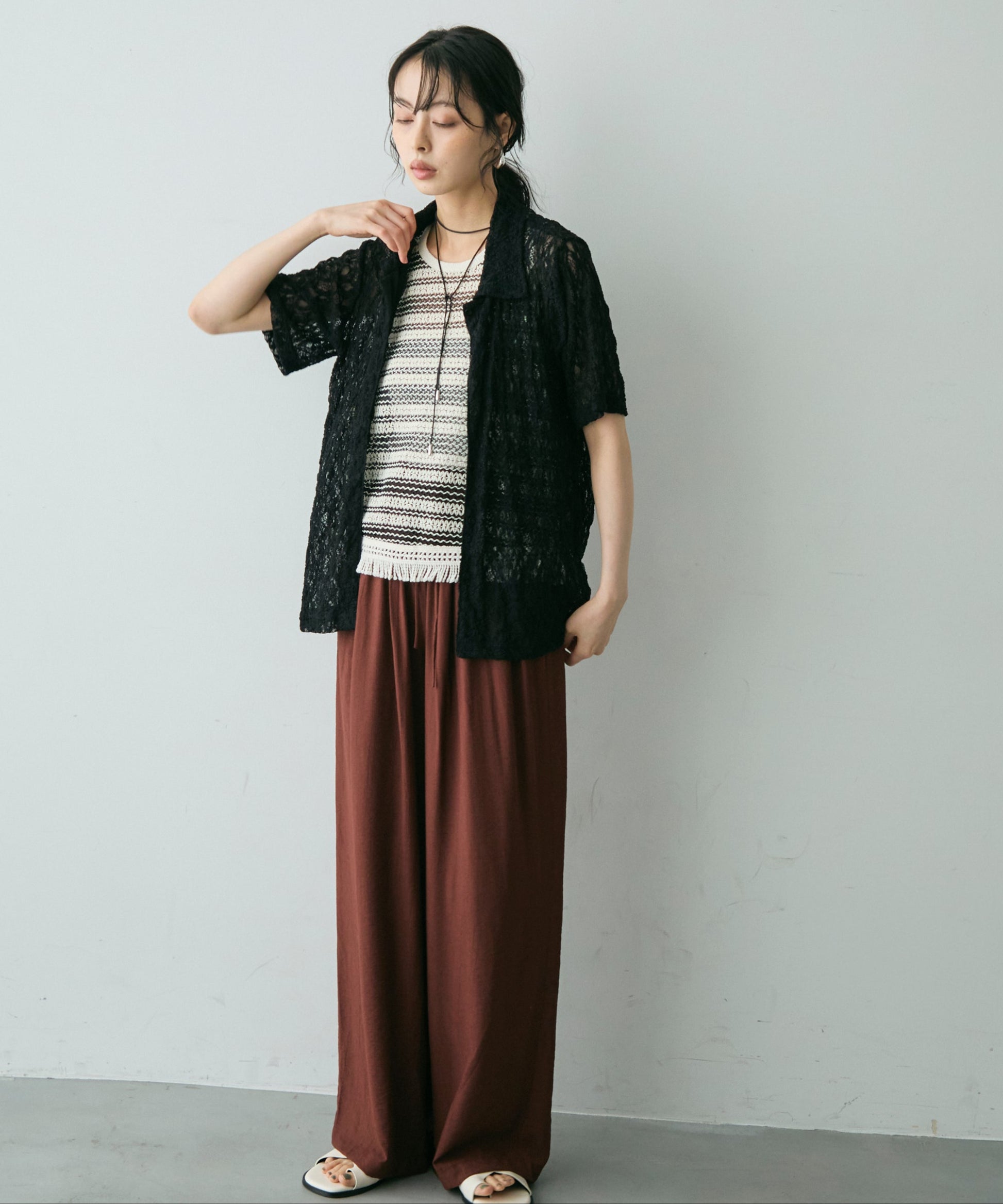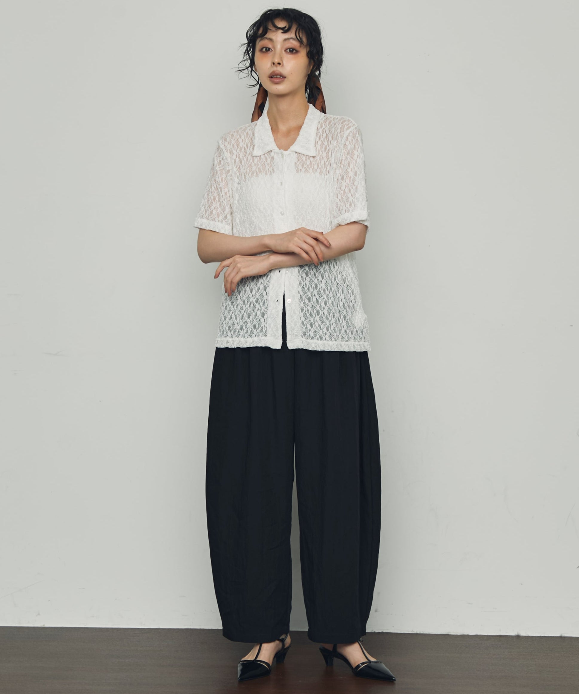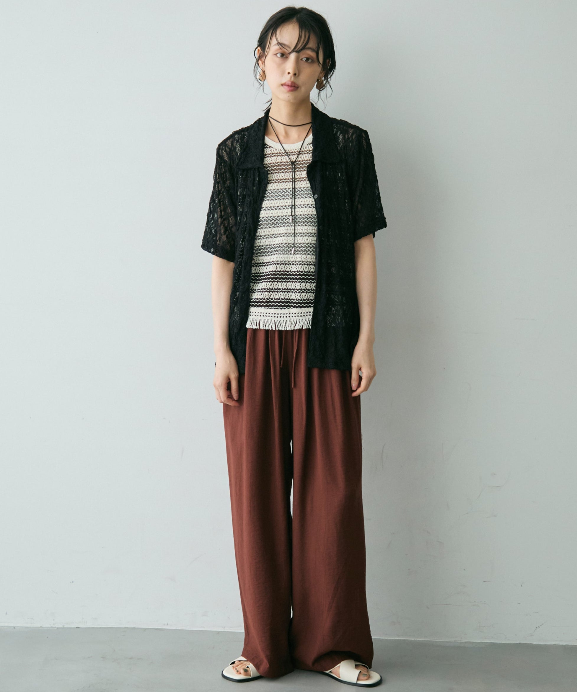 透け感があるためインナーを変えるだけで印象も大きく変わります。