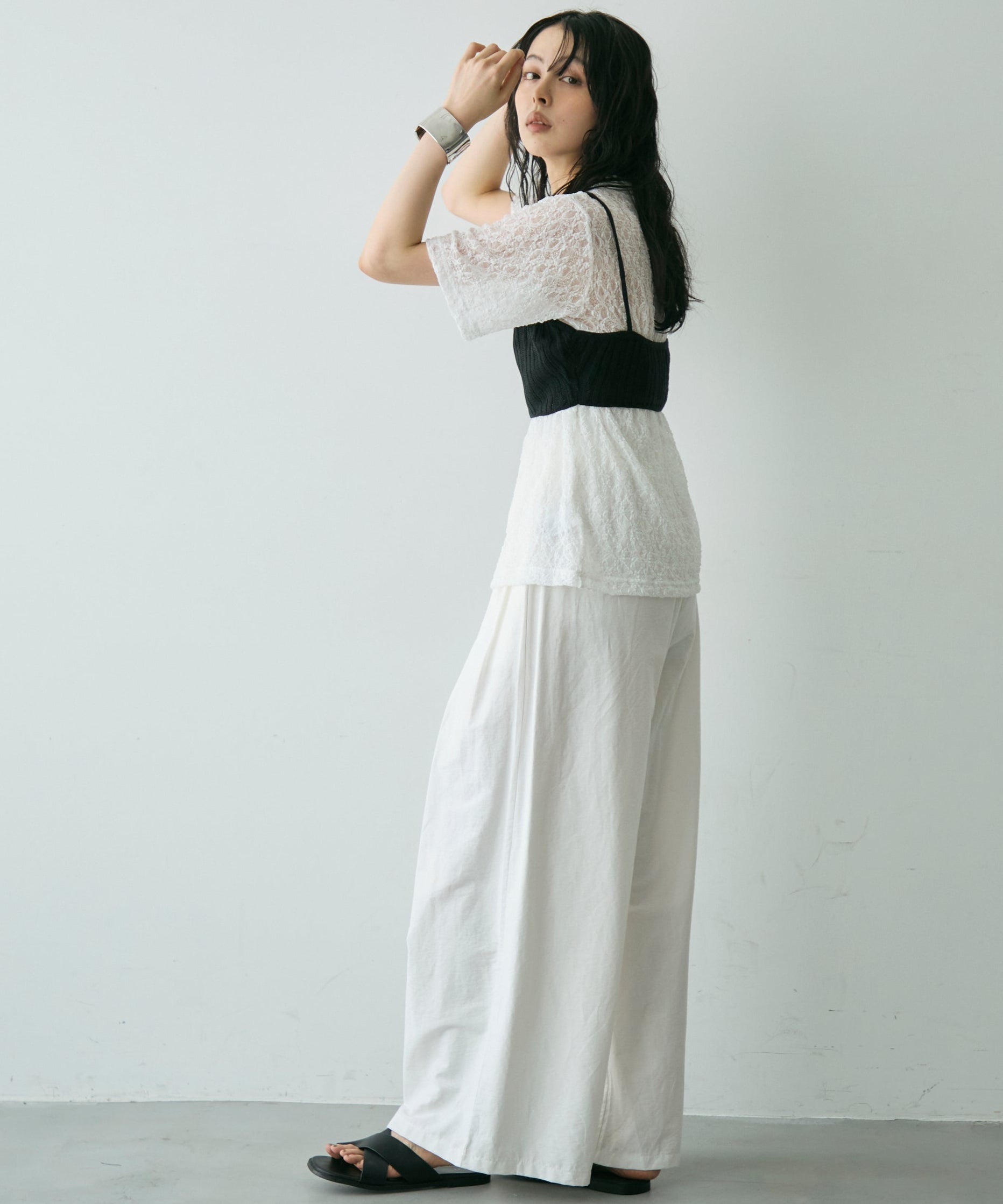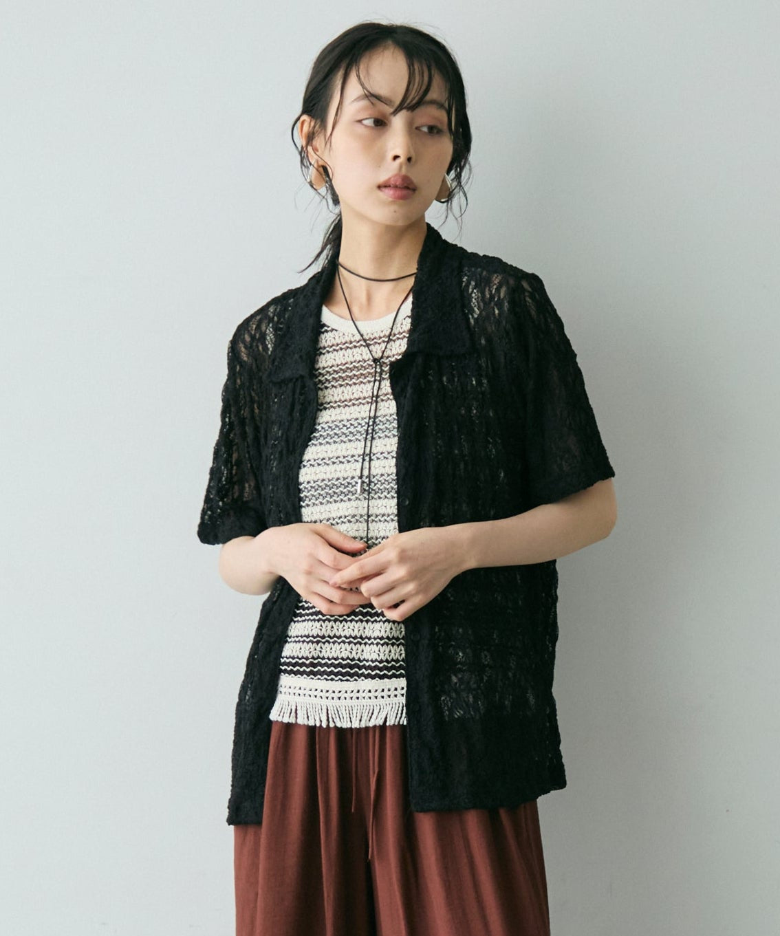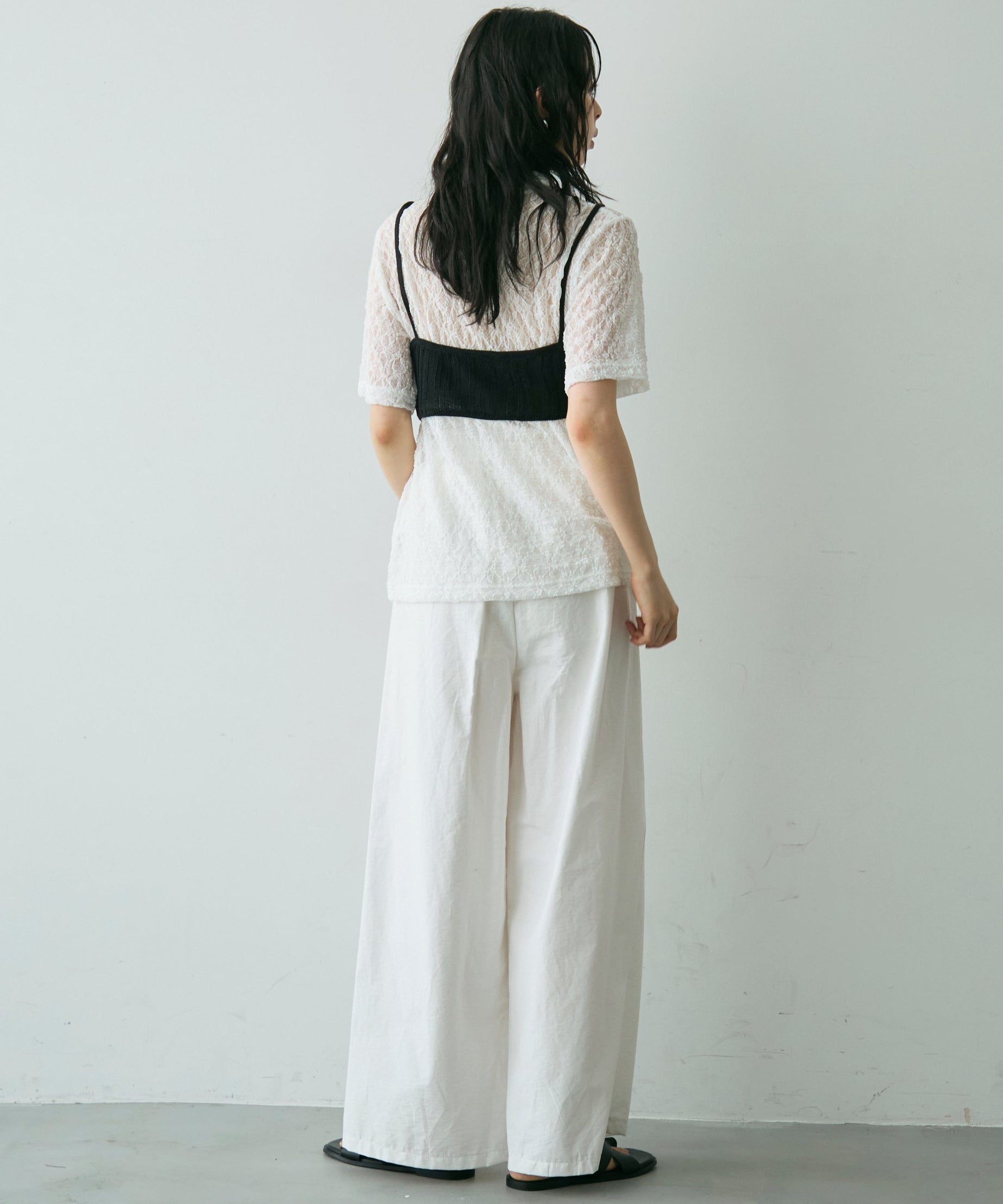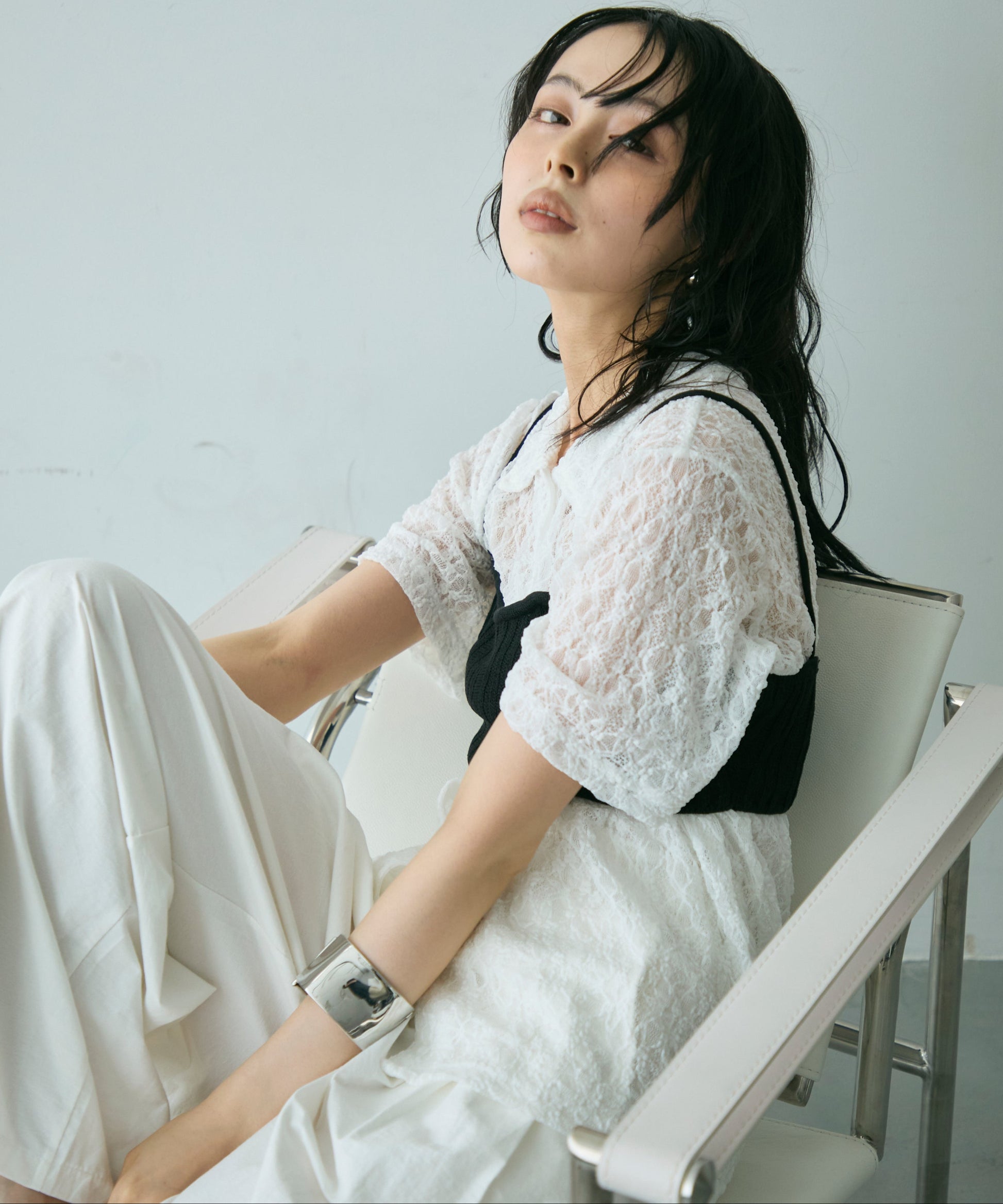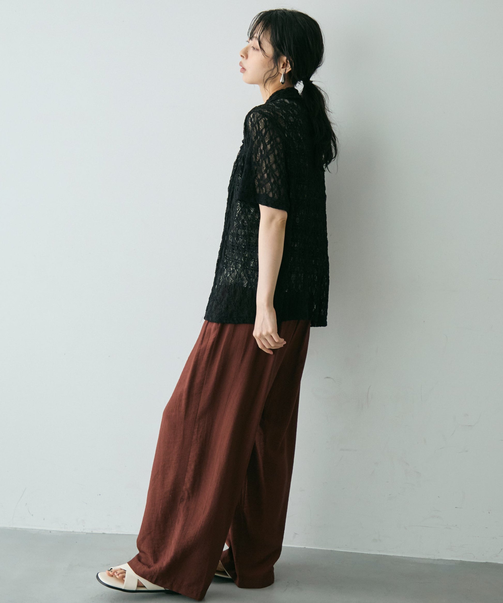 透け感があるためインナーを変えるだけで印象も大きく変わります。