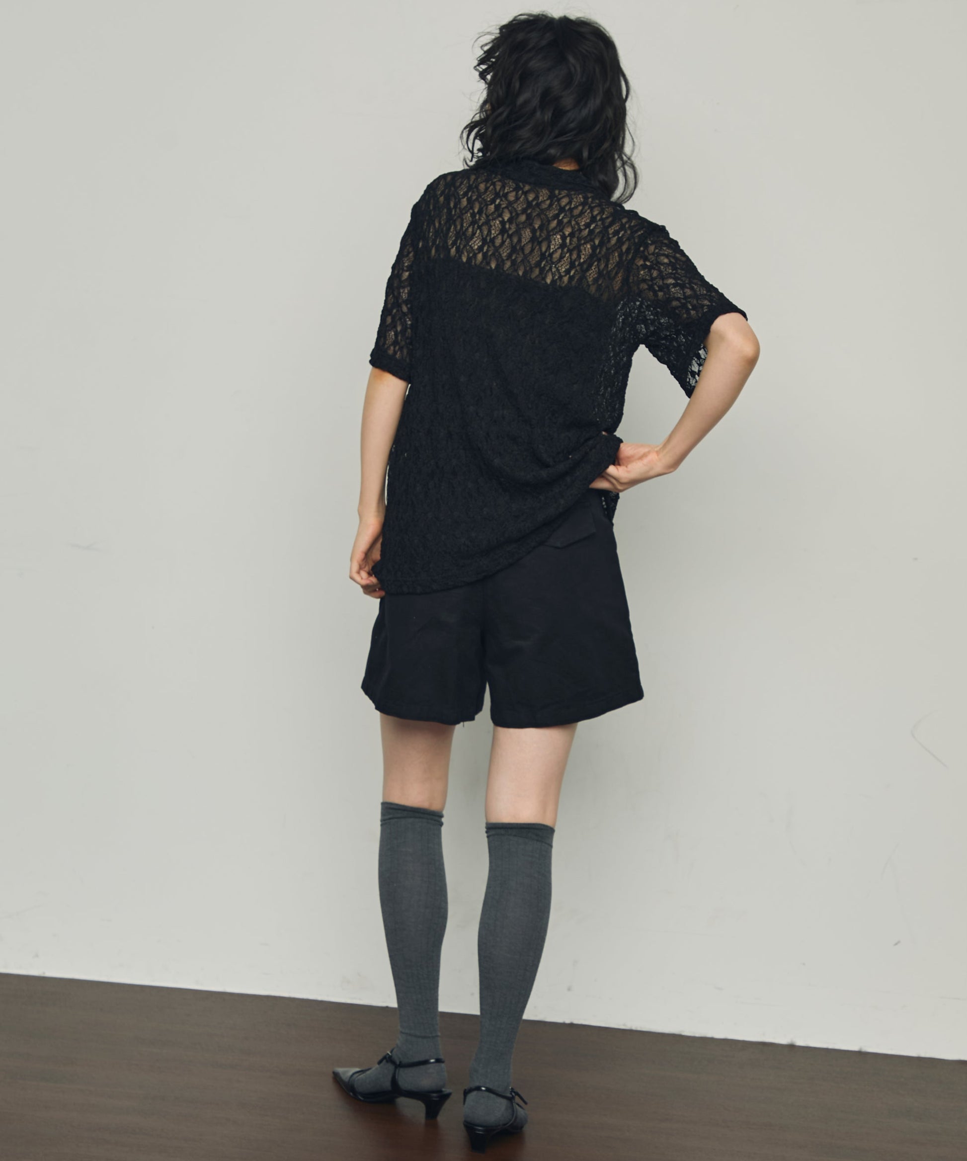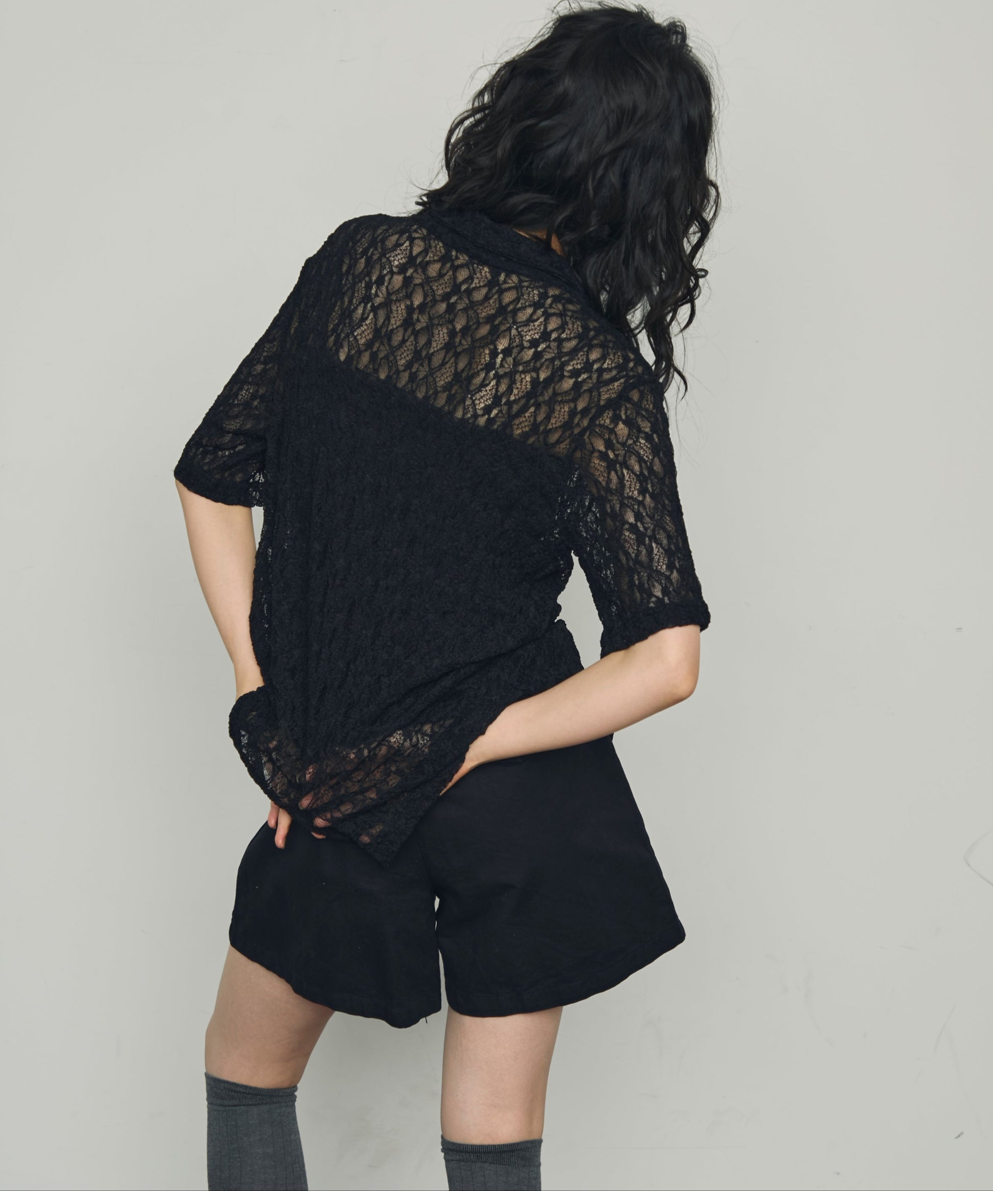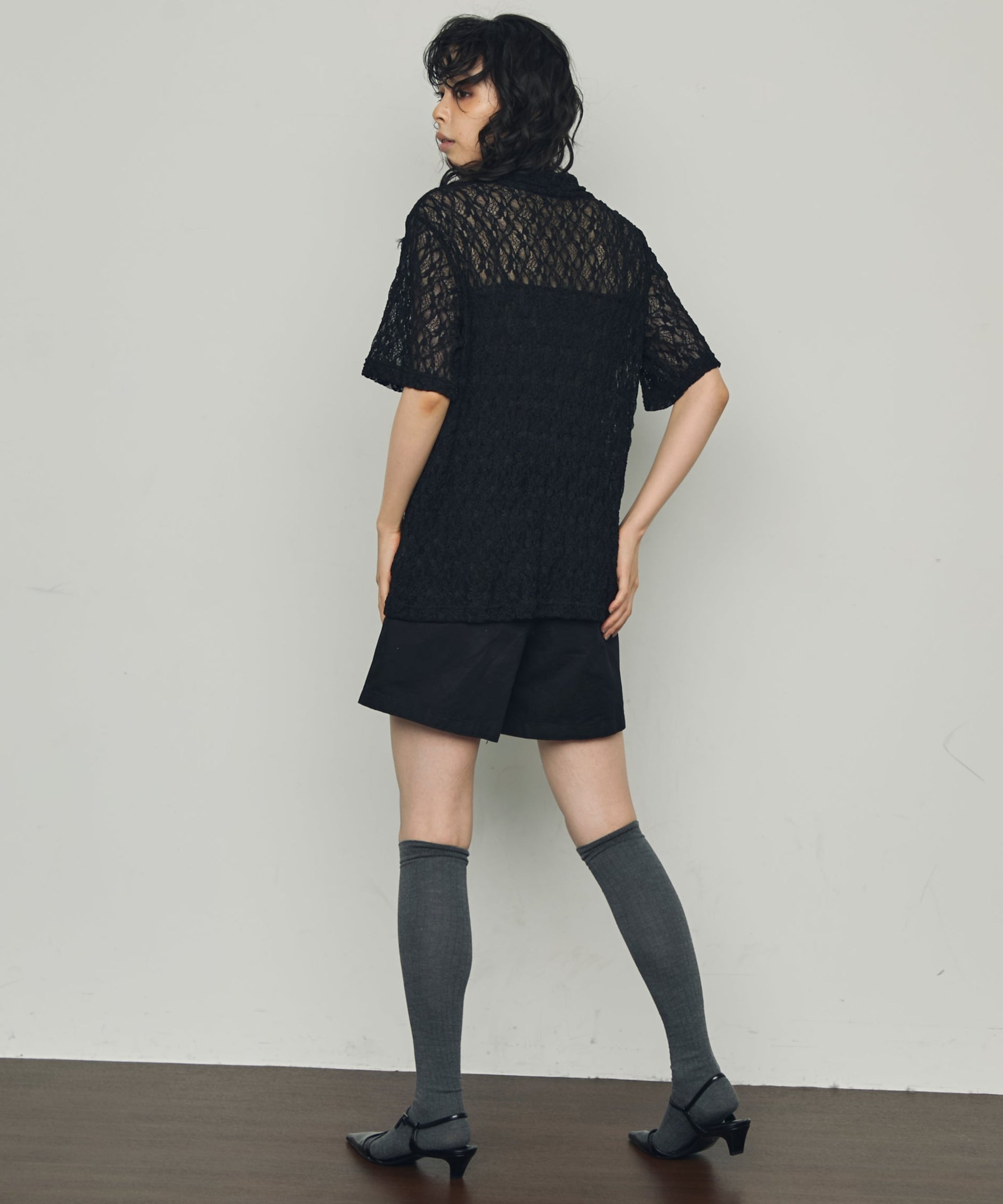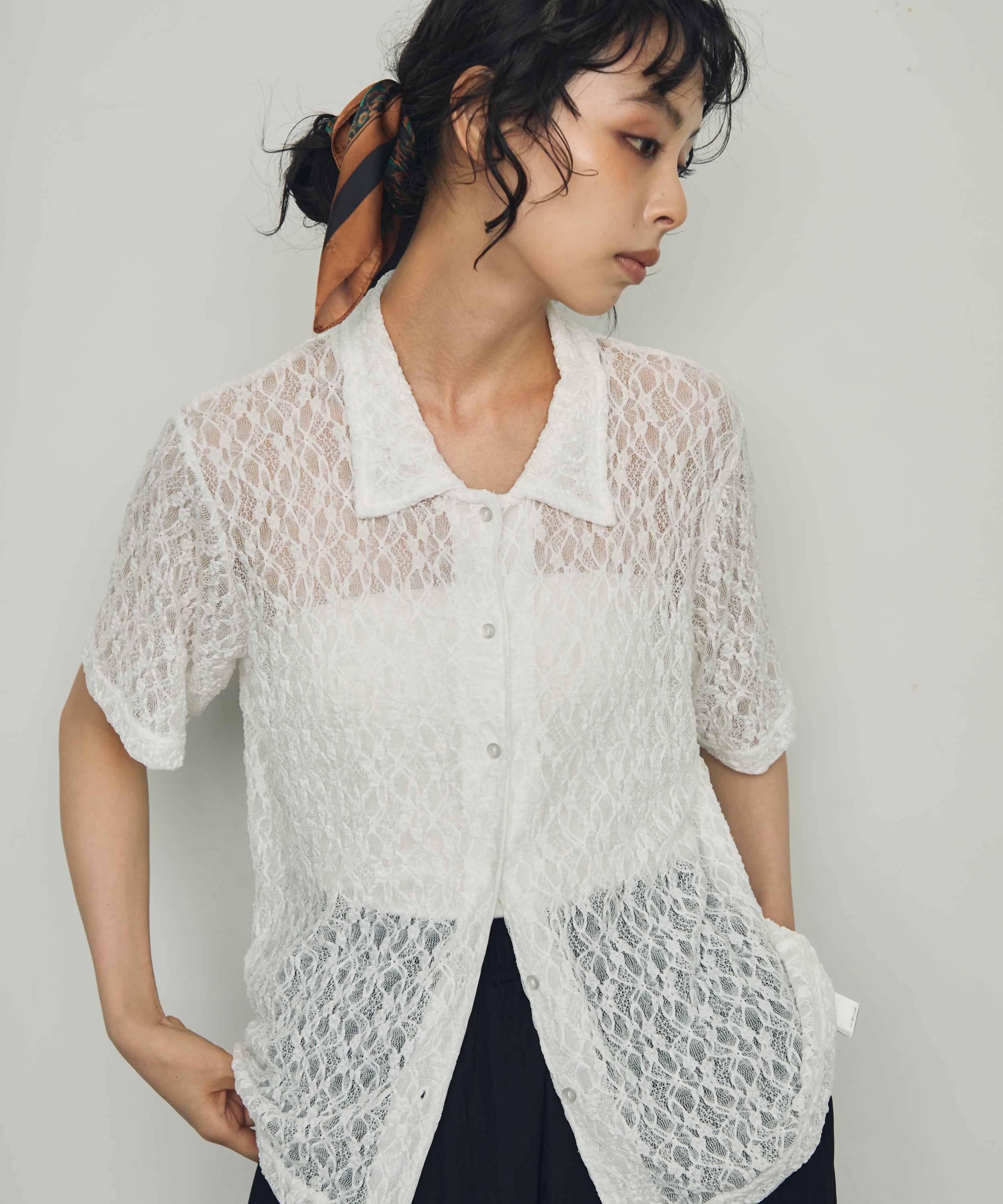 伸縮性のあるレース生地を使用したベーシックシャツ。
