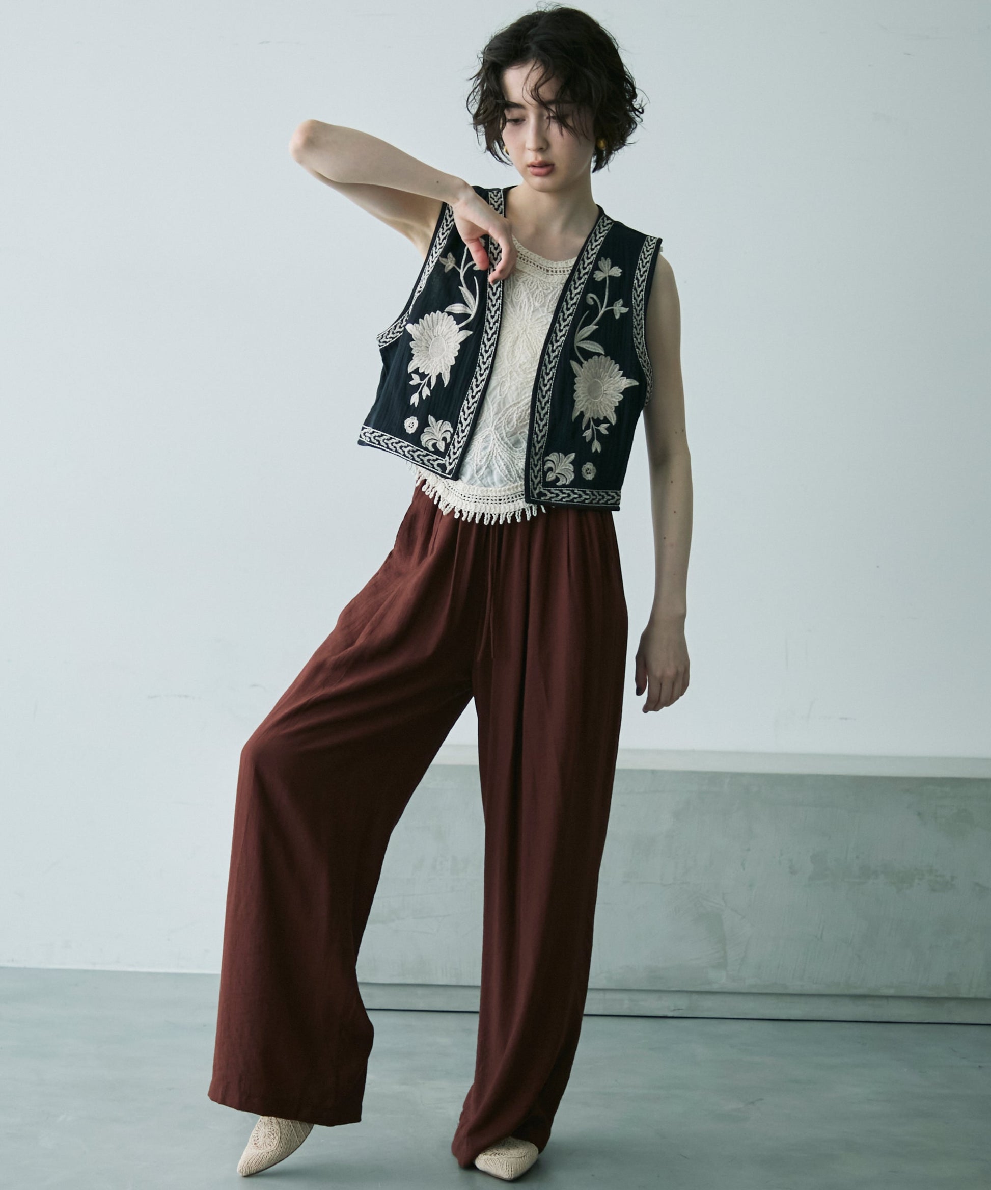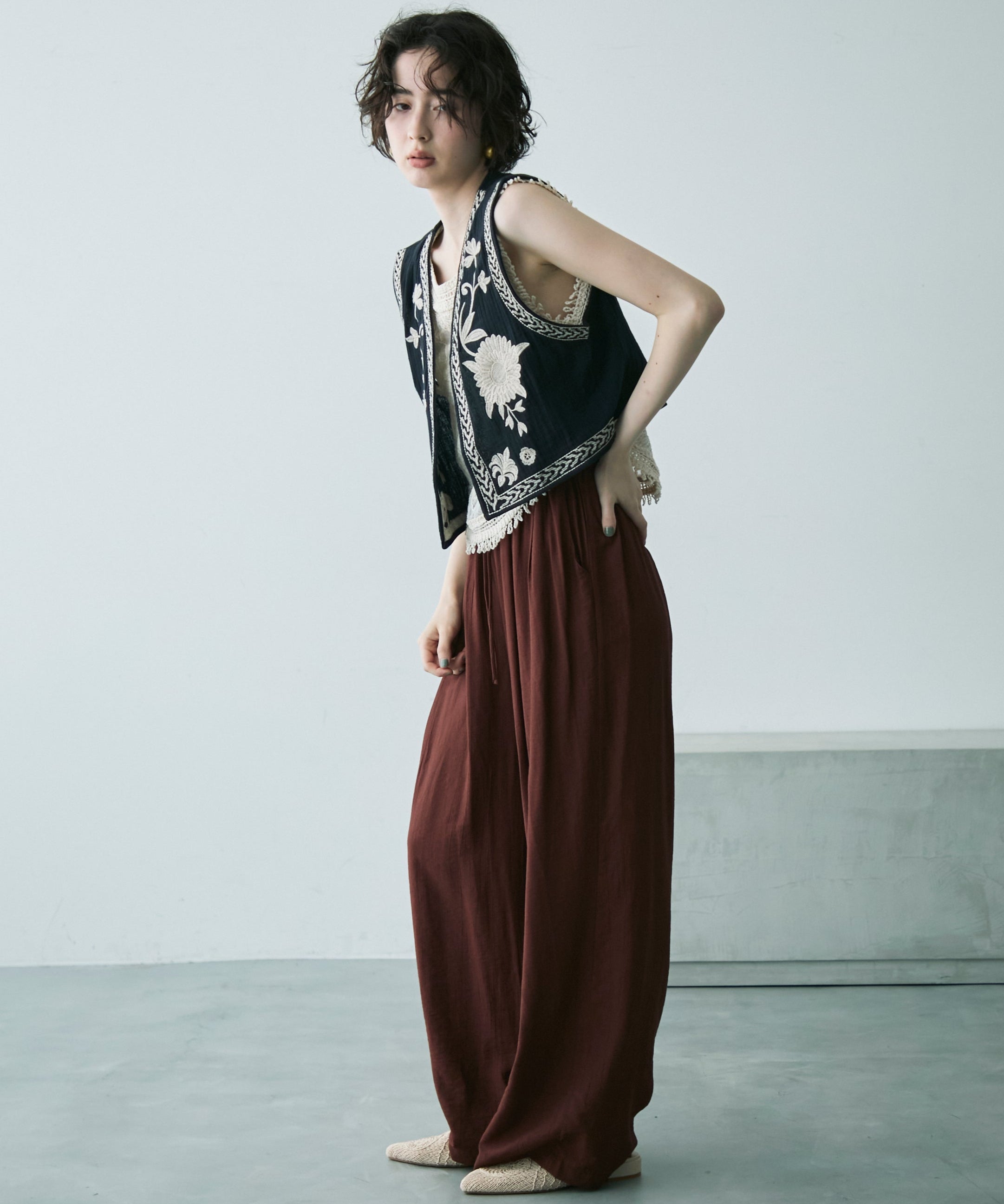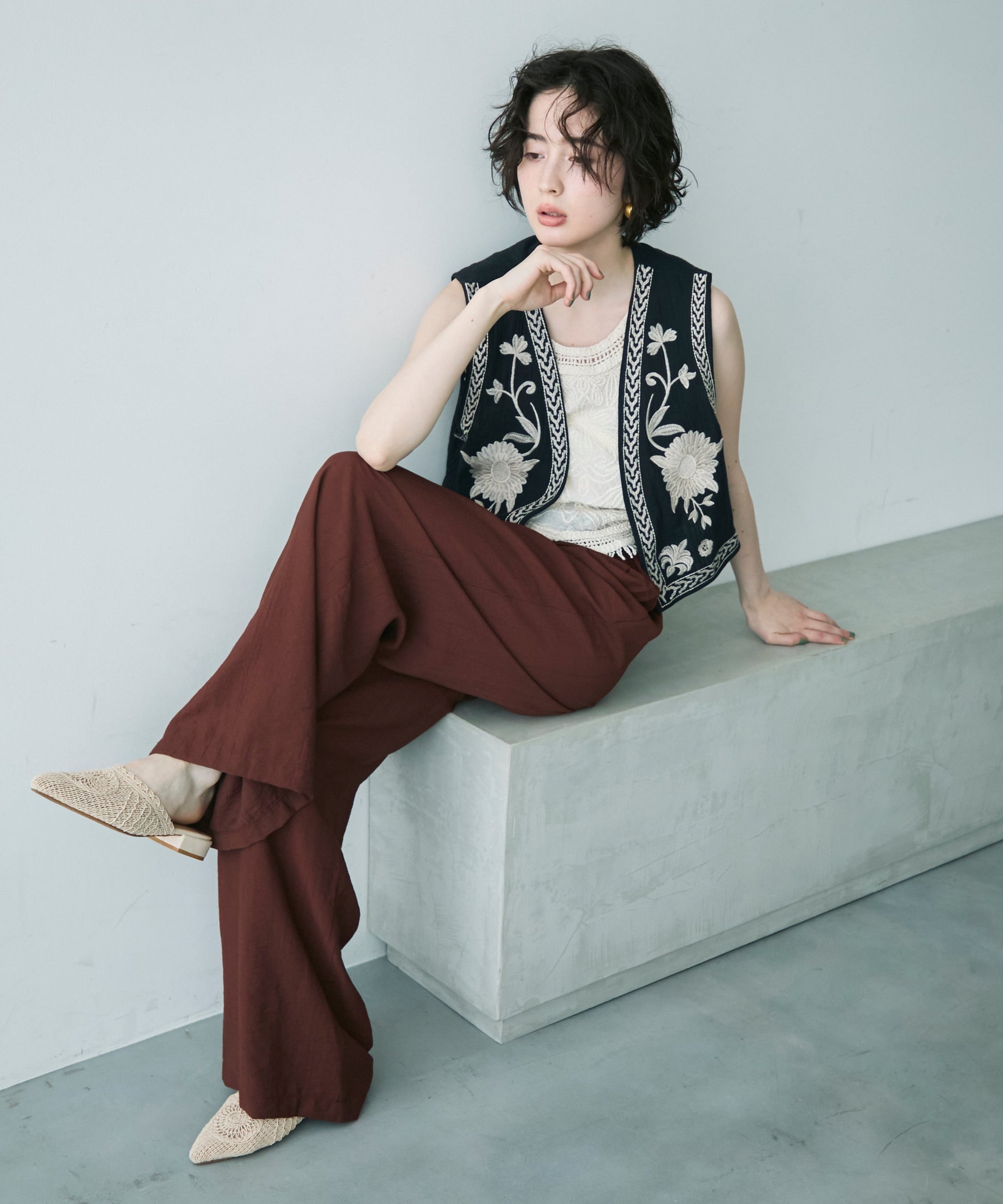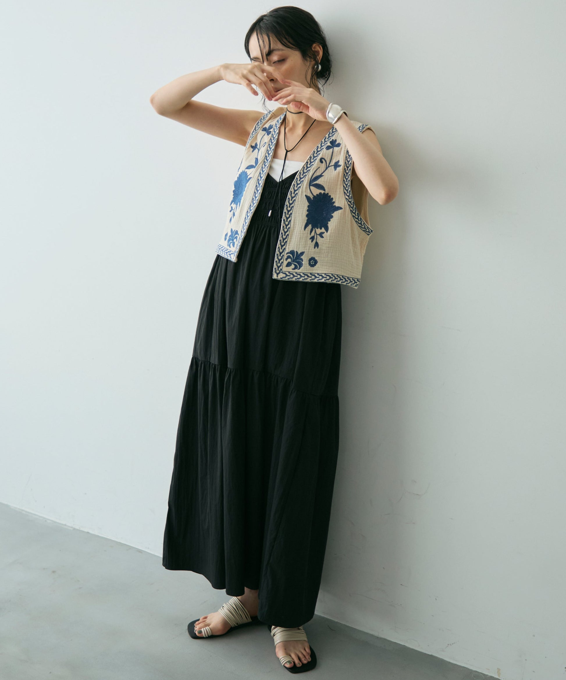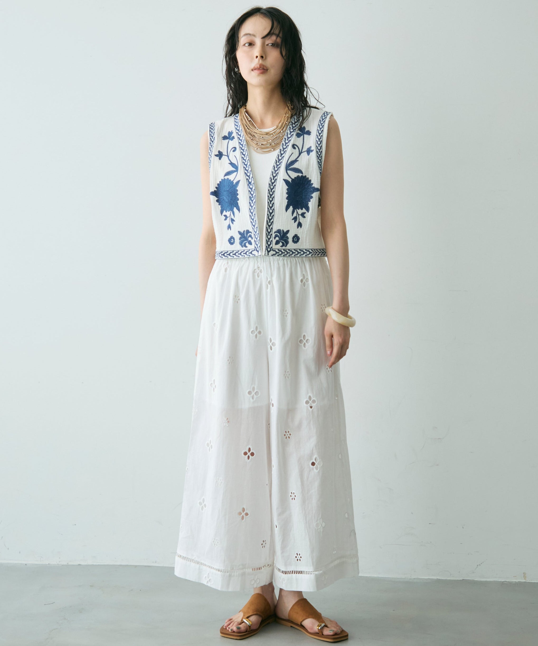 ボタニカルの刺繍が施された、華やかでナチュラルなジレです。