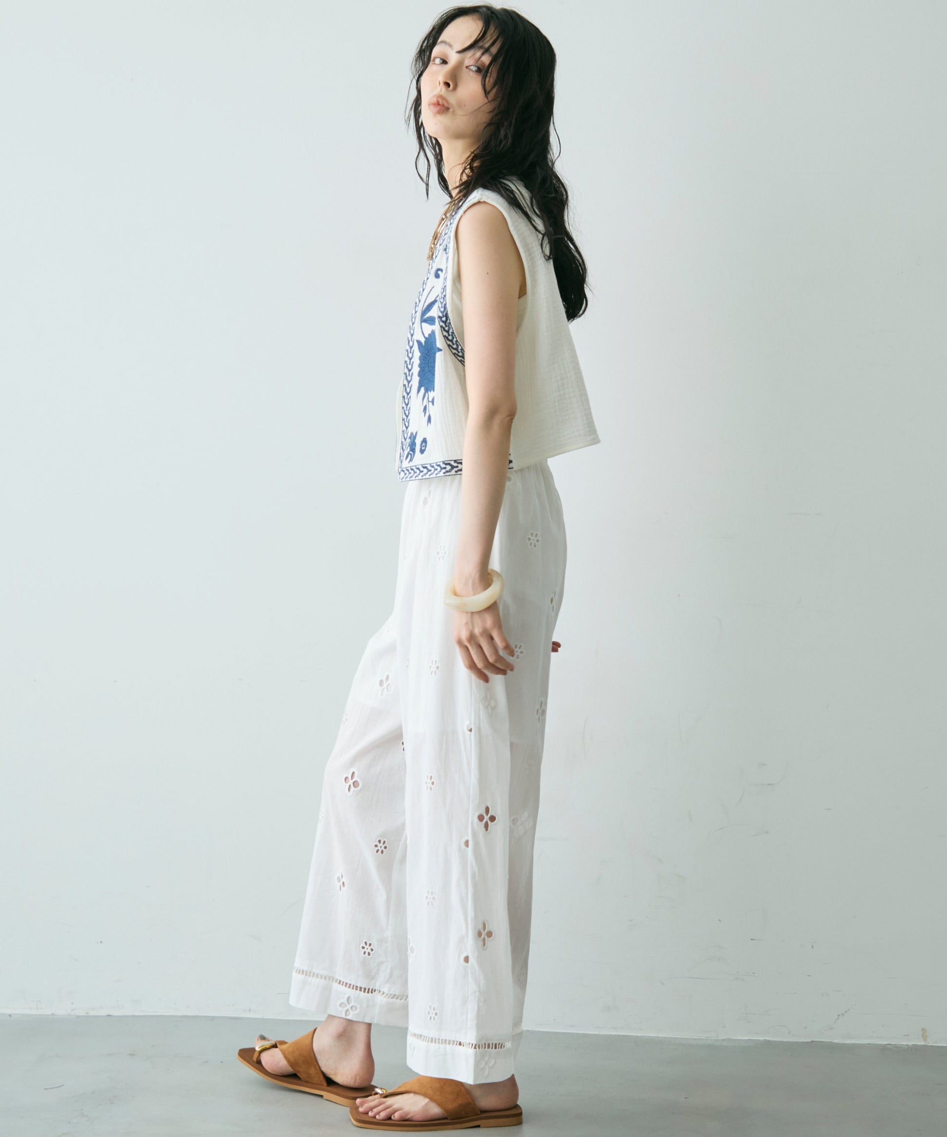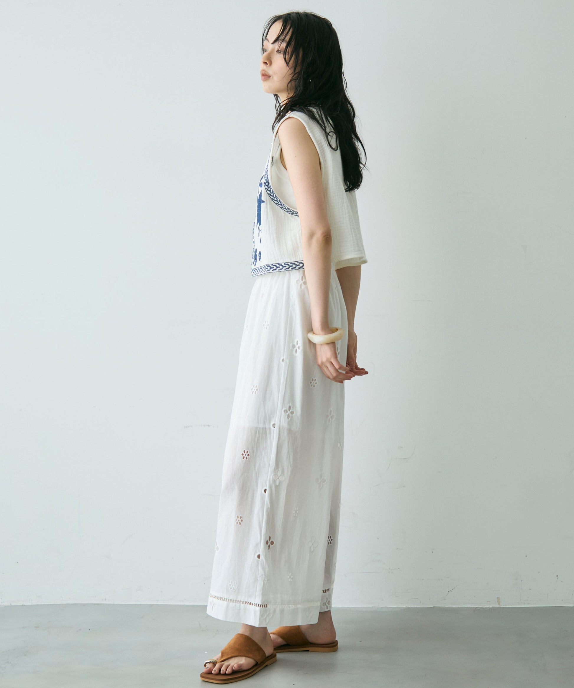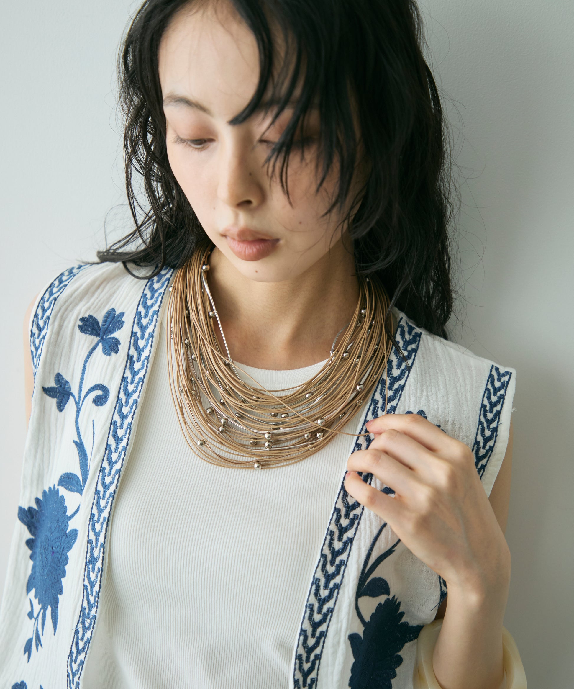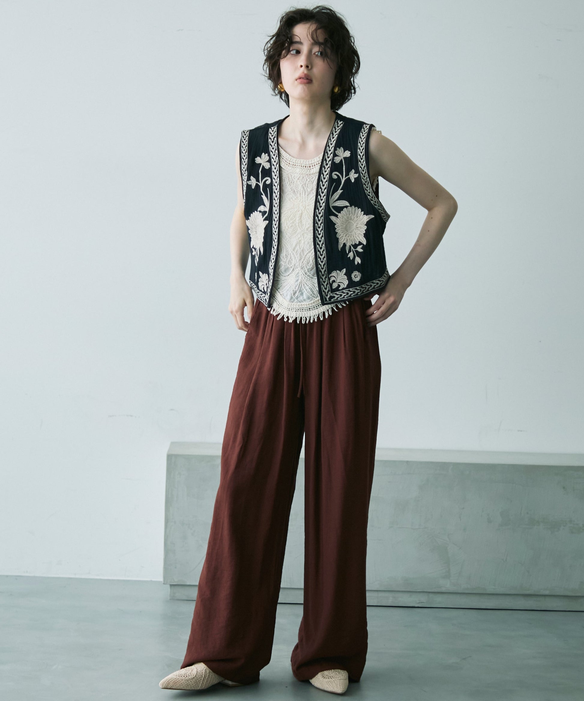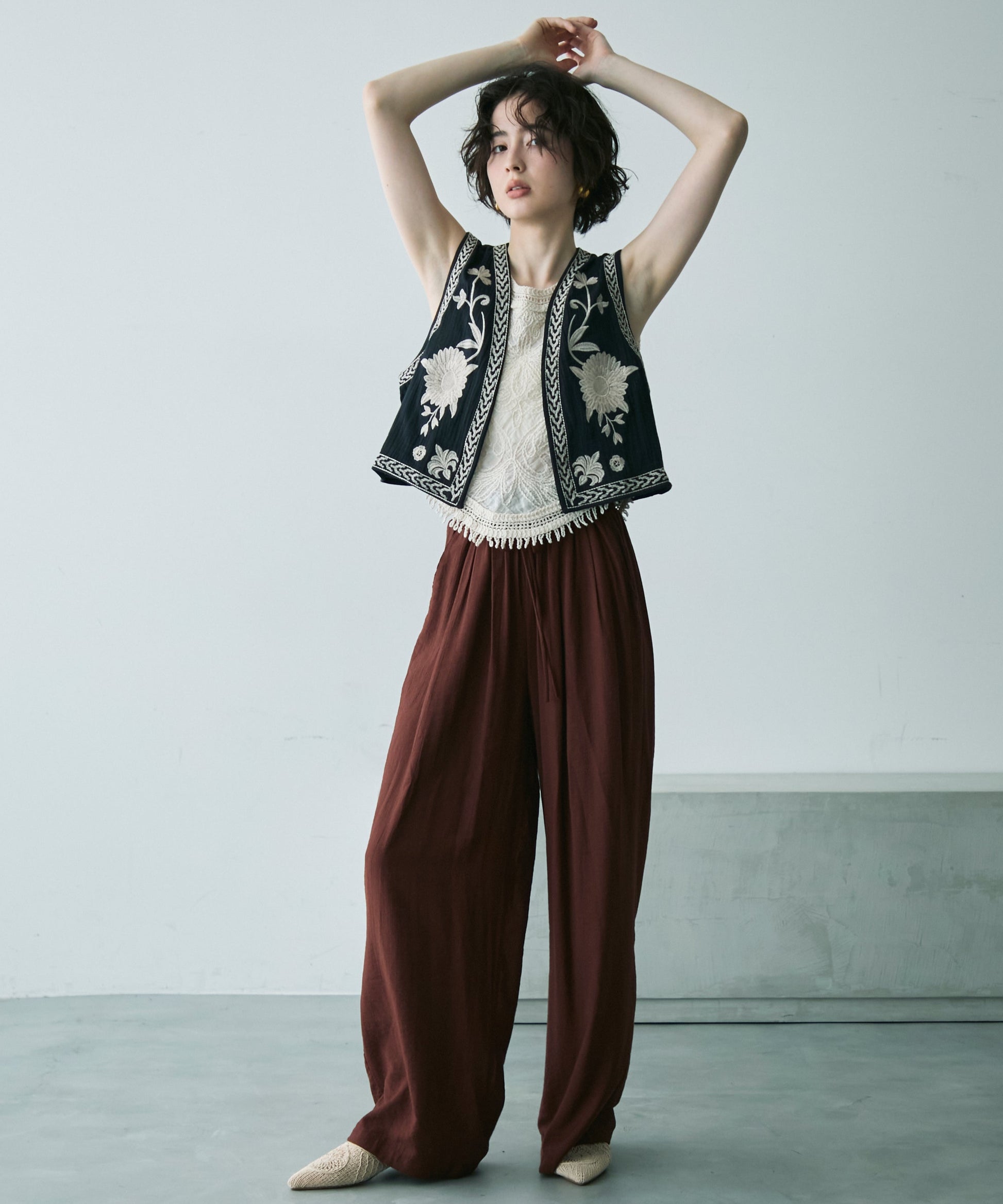 ボタニカルの刺繍が施された、華やかでナチュラルなジレです。
