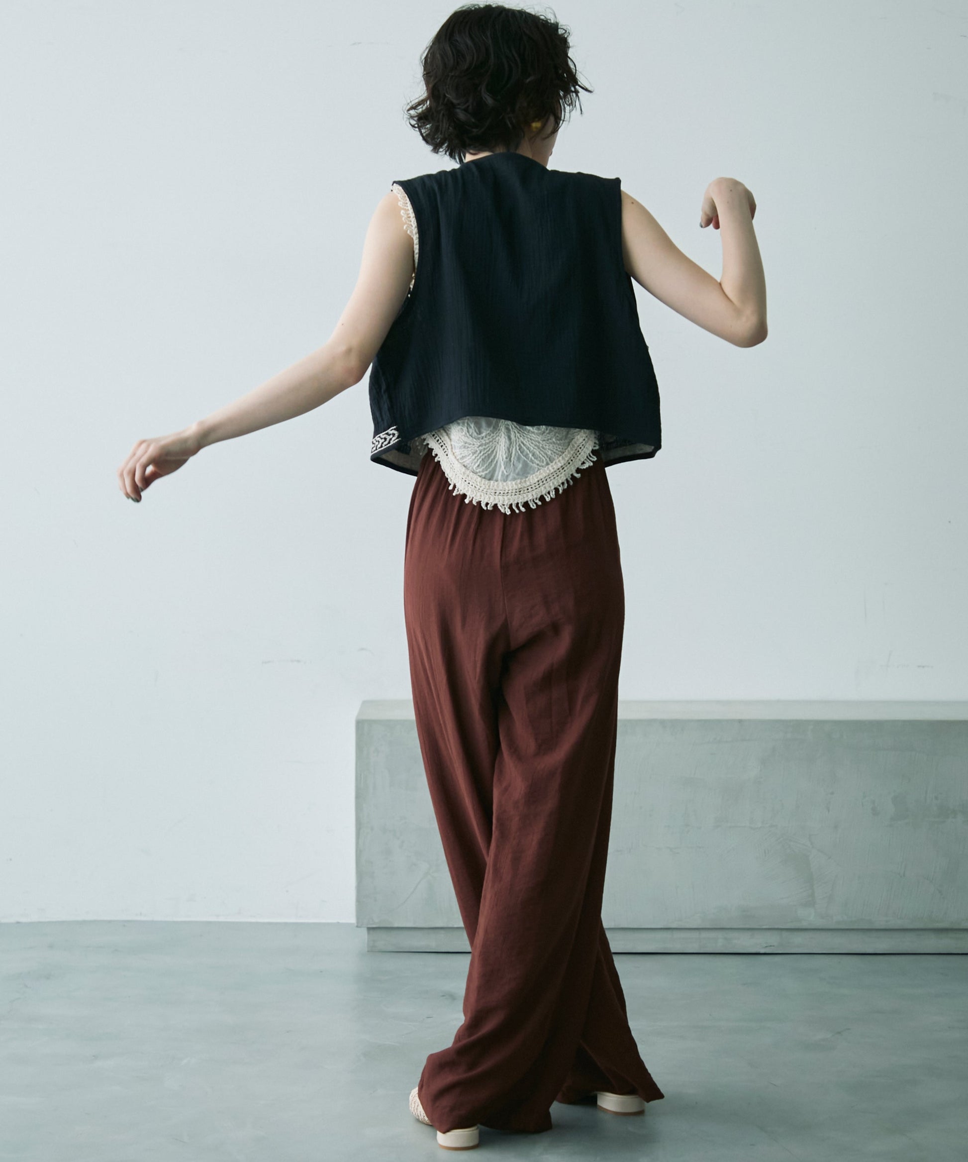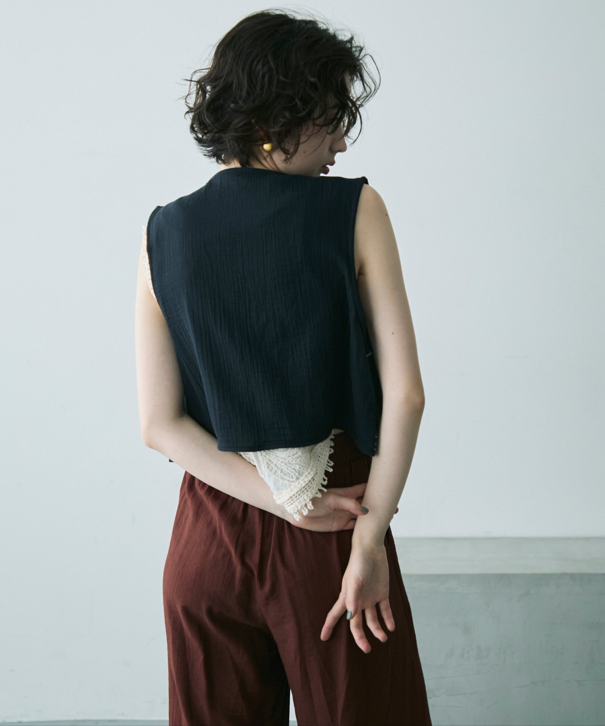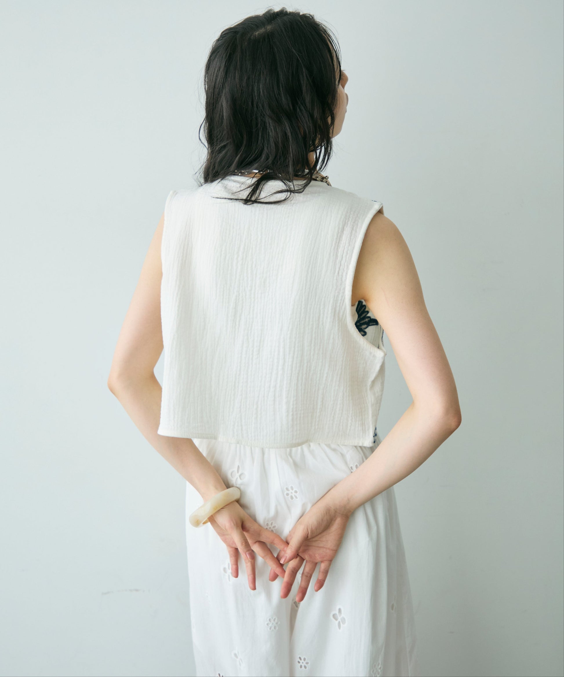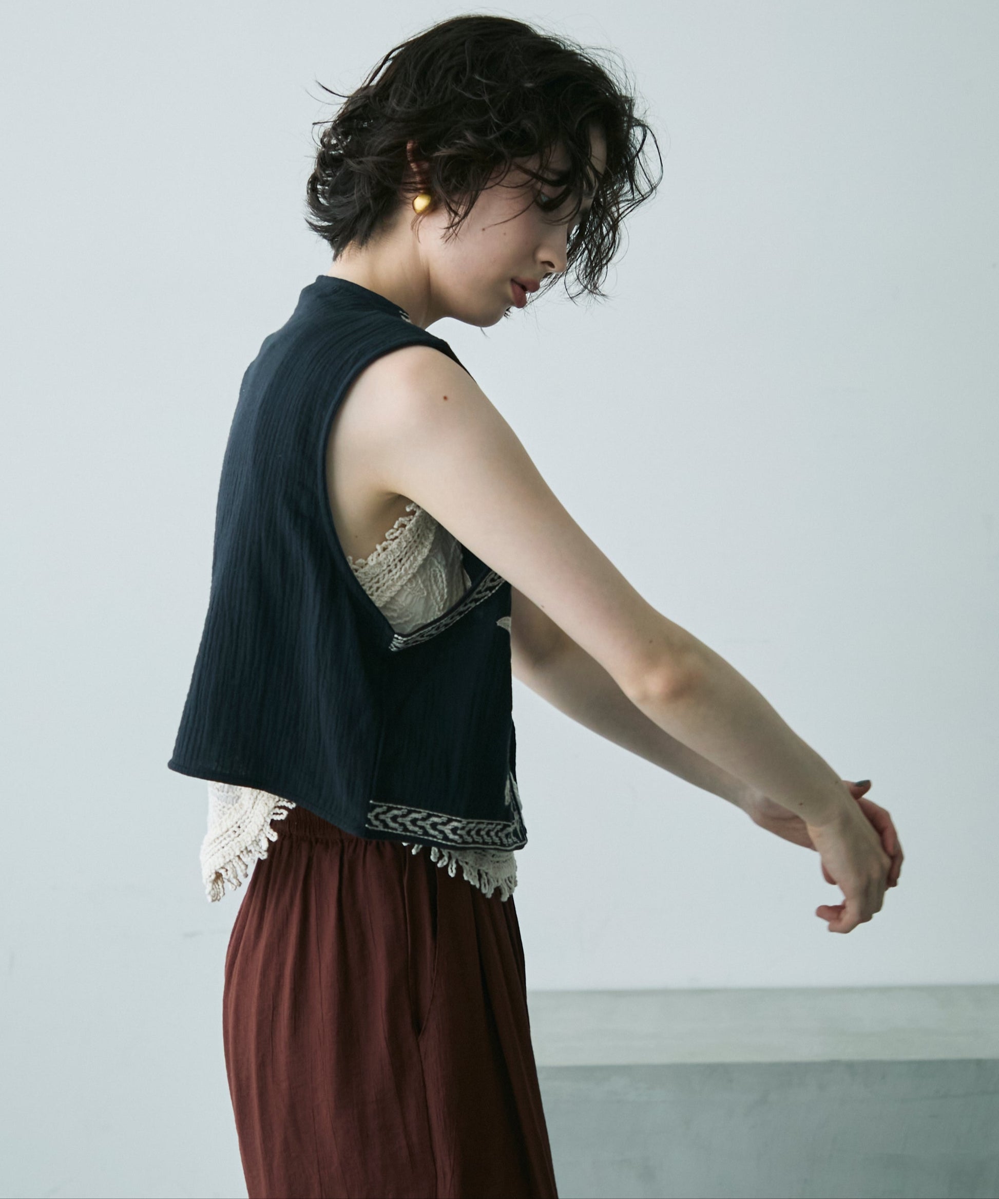 ボタニカル刺繍Wガーゼジレ | t25210024