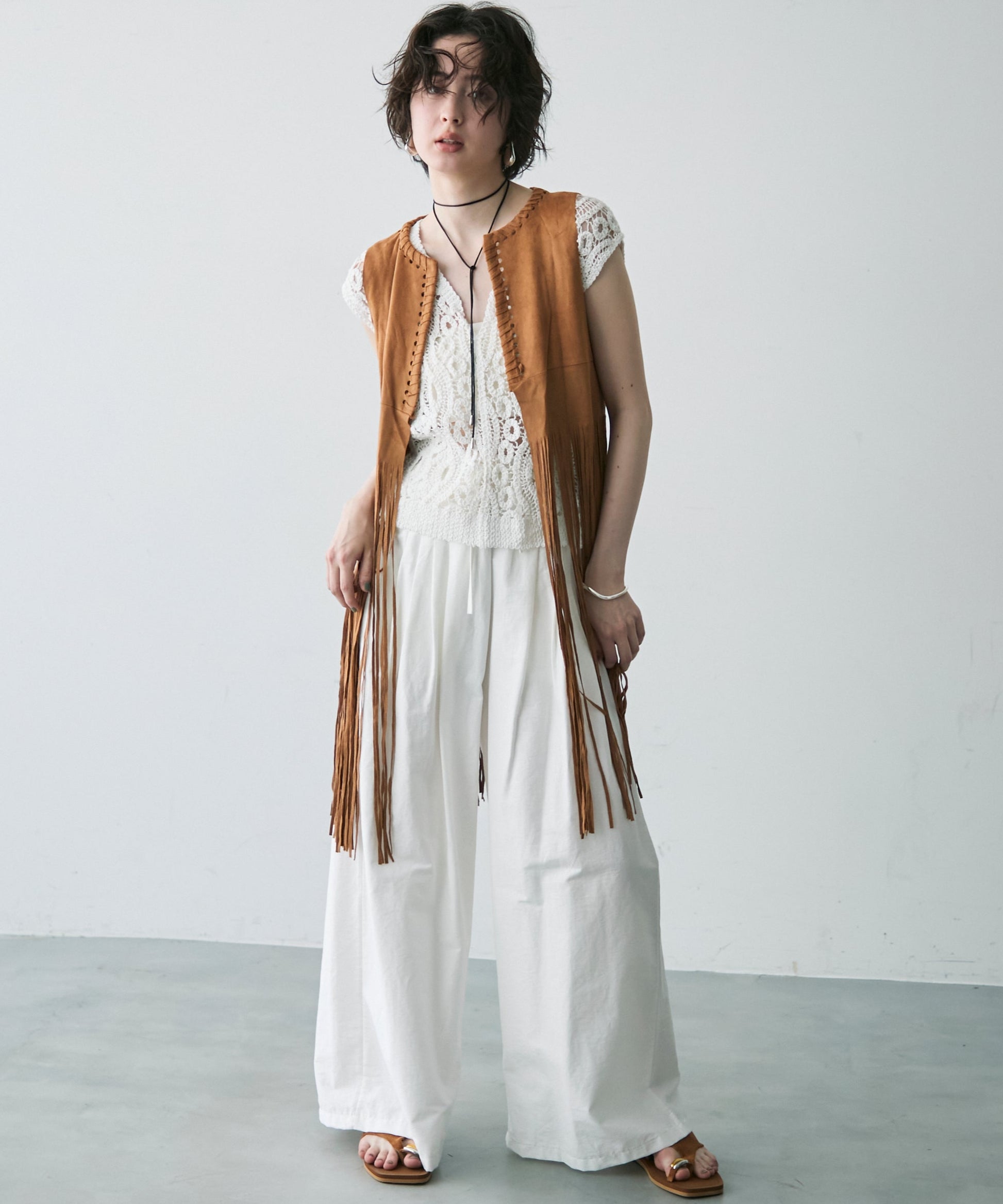 1枚上に羽織るだけでボーホースタイルの出来上がり。