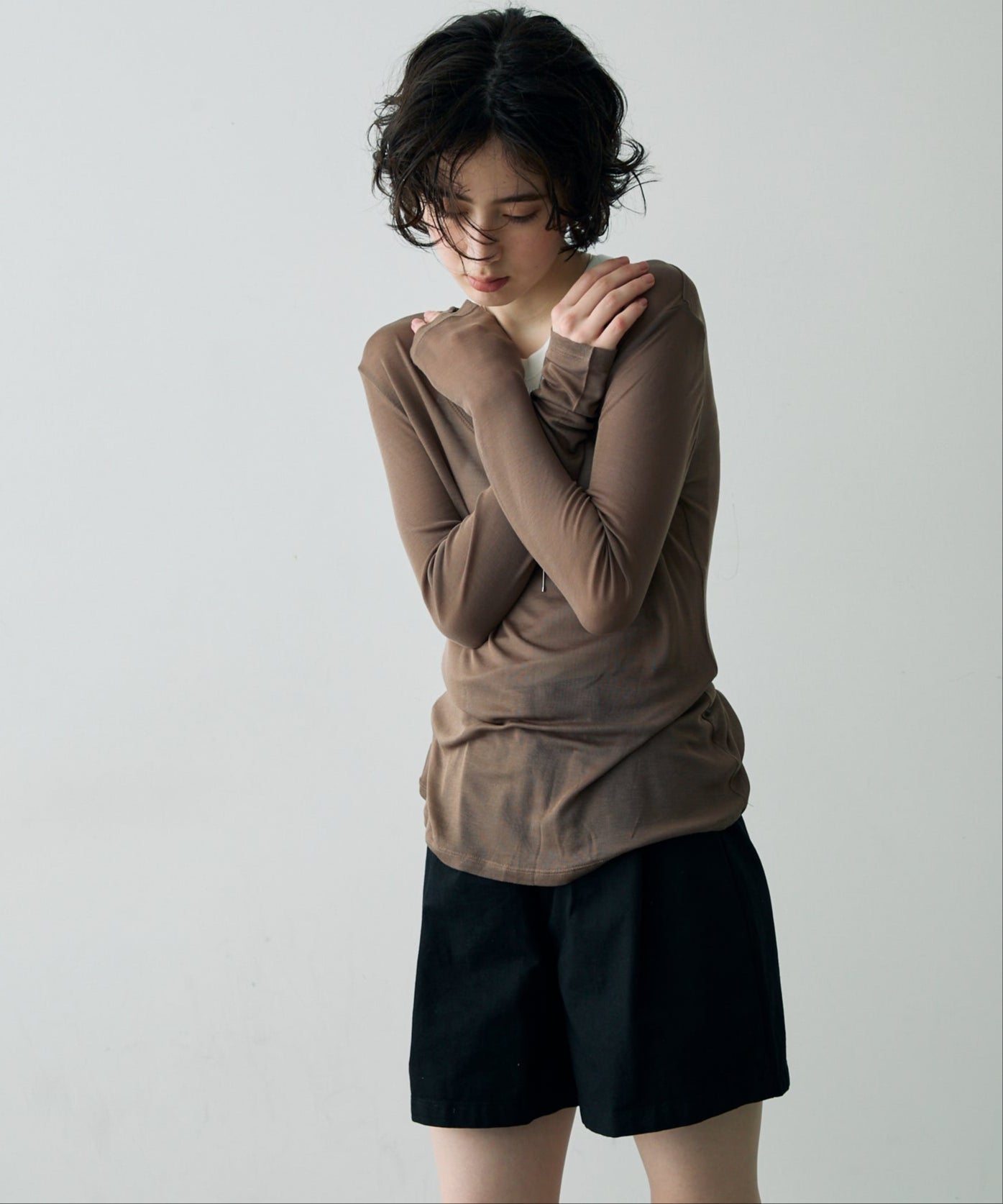 ラウンドネックデザインで様々なスタイリングに合わせやすい一枚です。