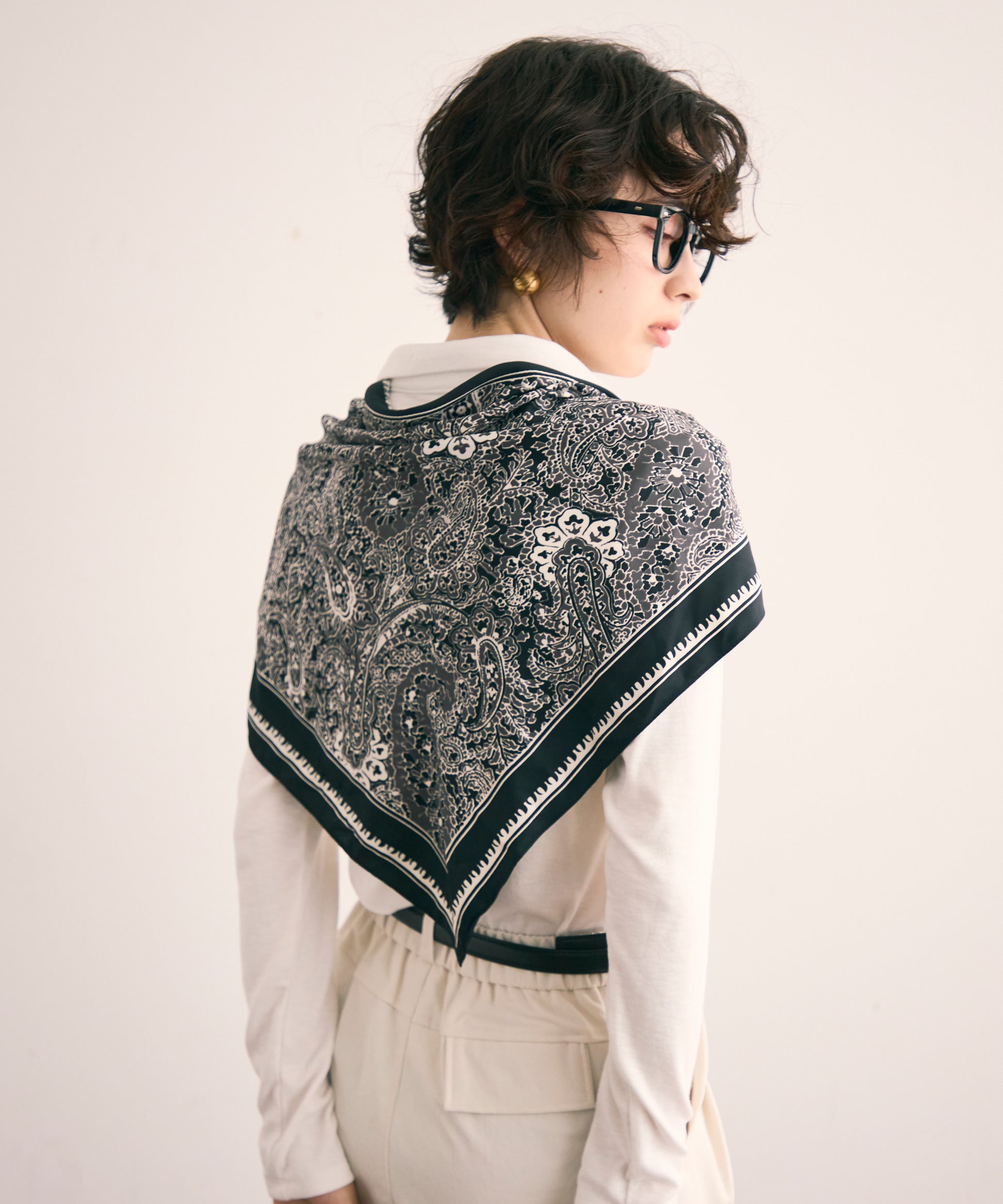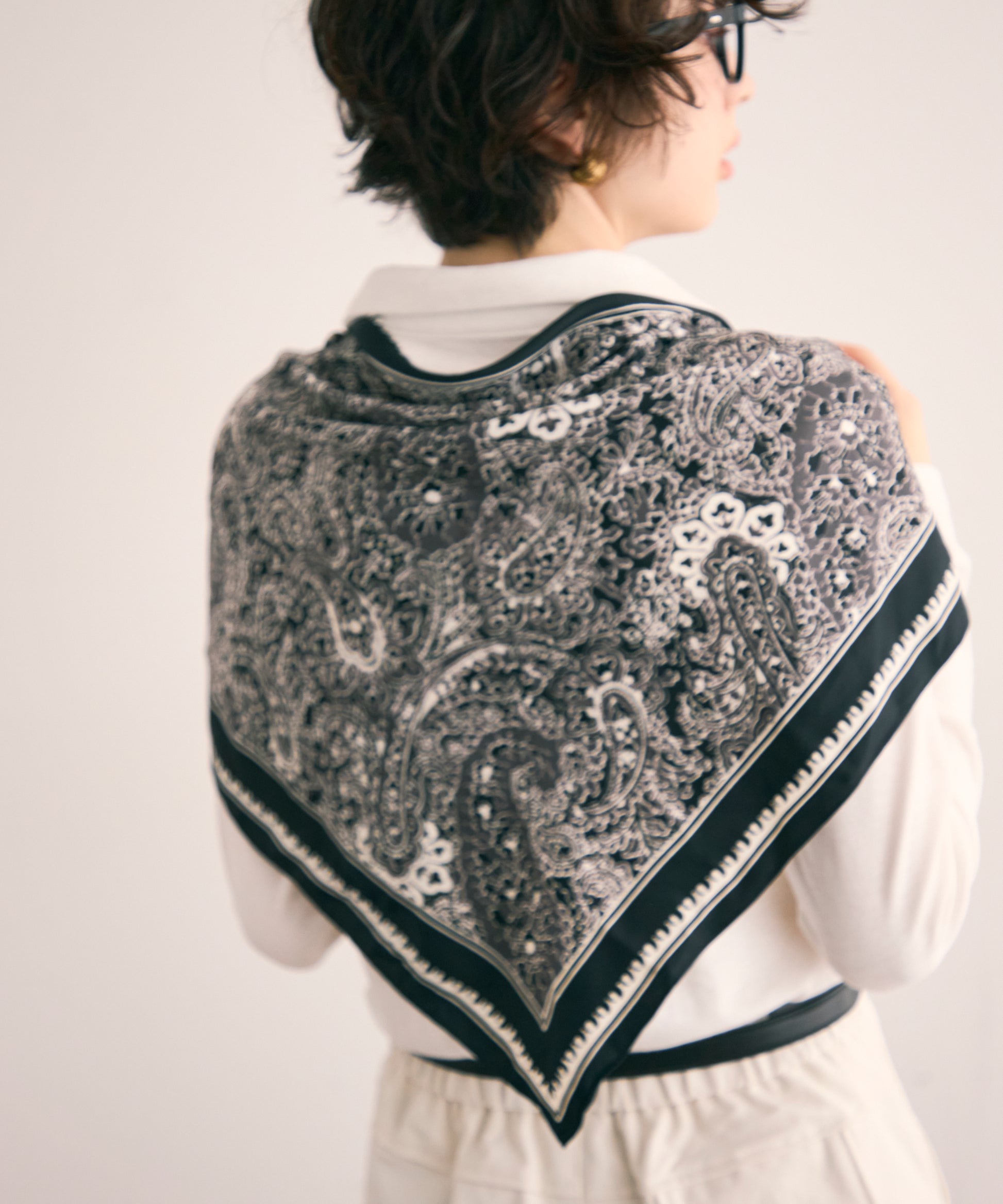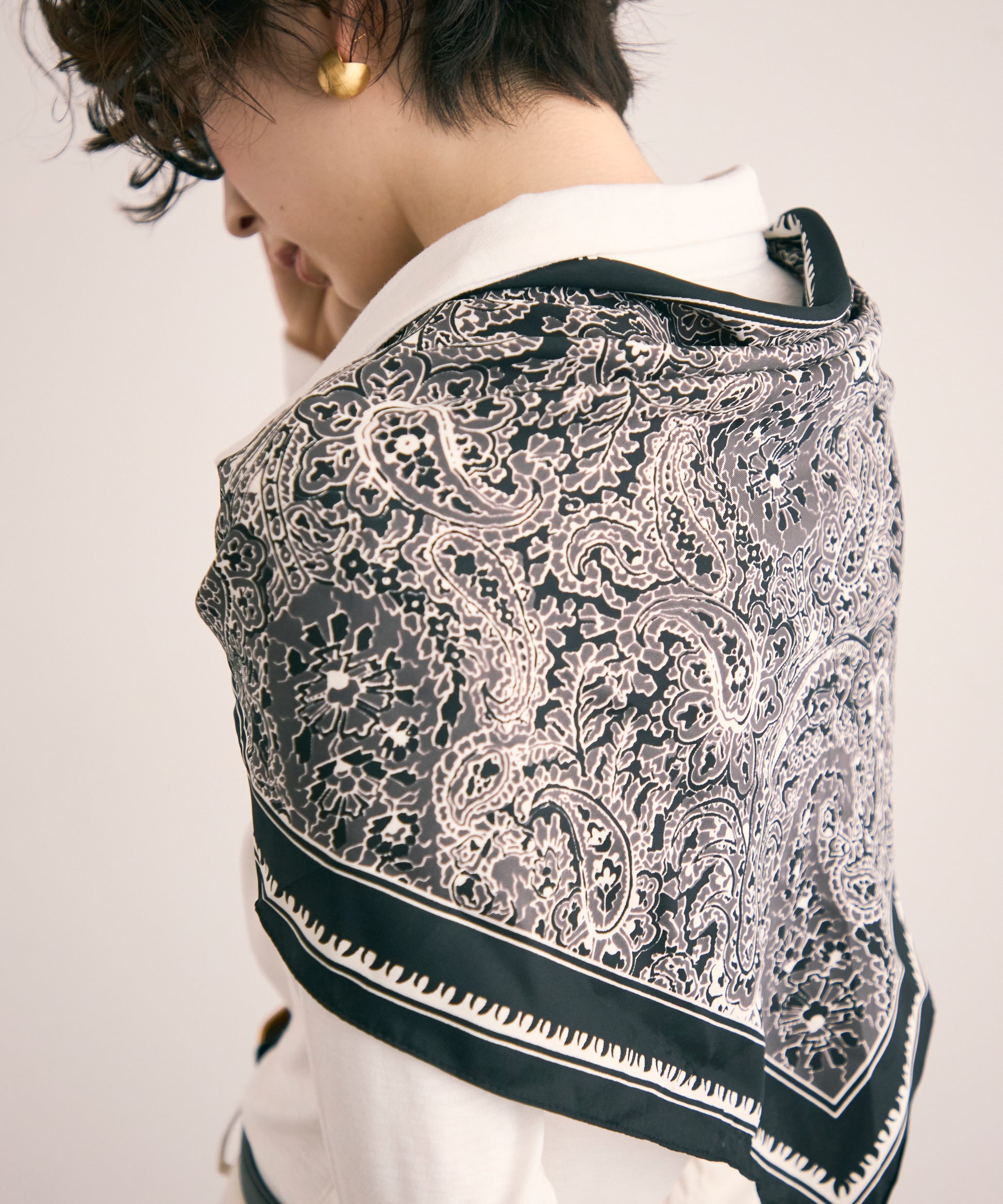 シンプルながらも存在感のあるニュアンスプリントが魅力のスカーフ。