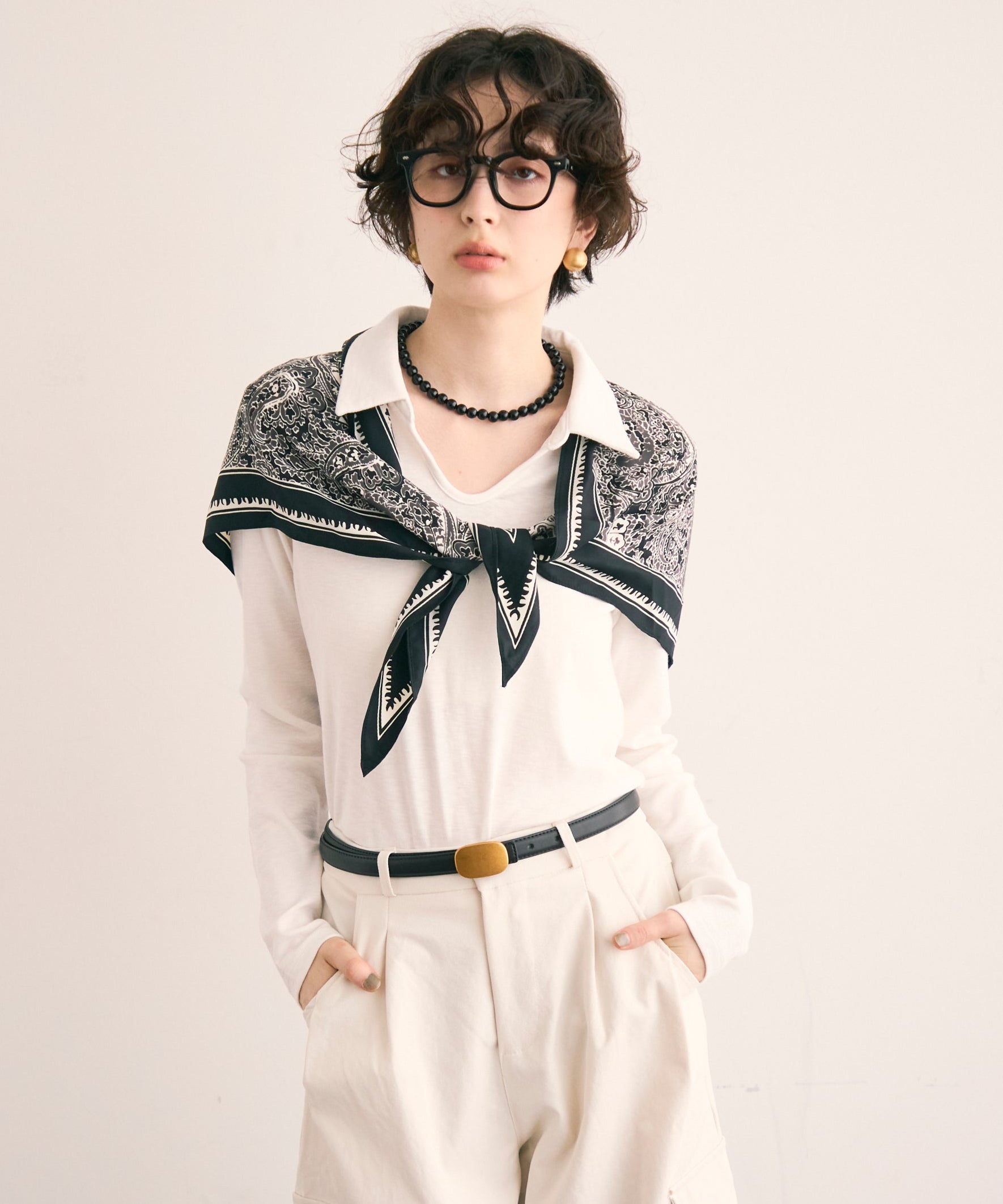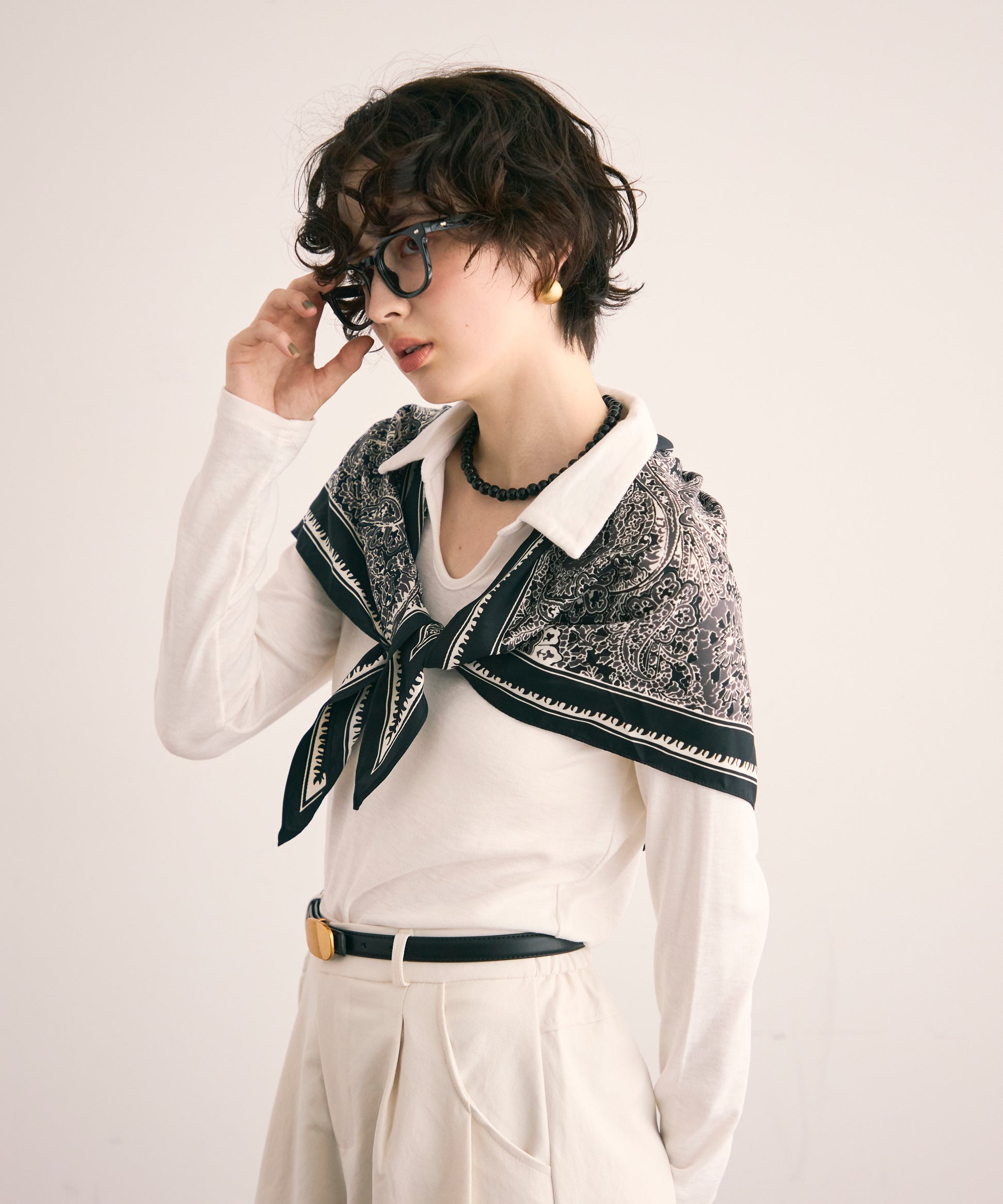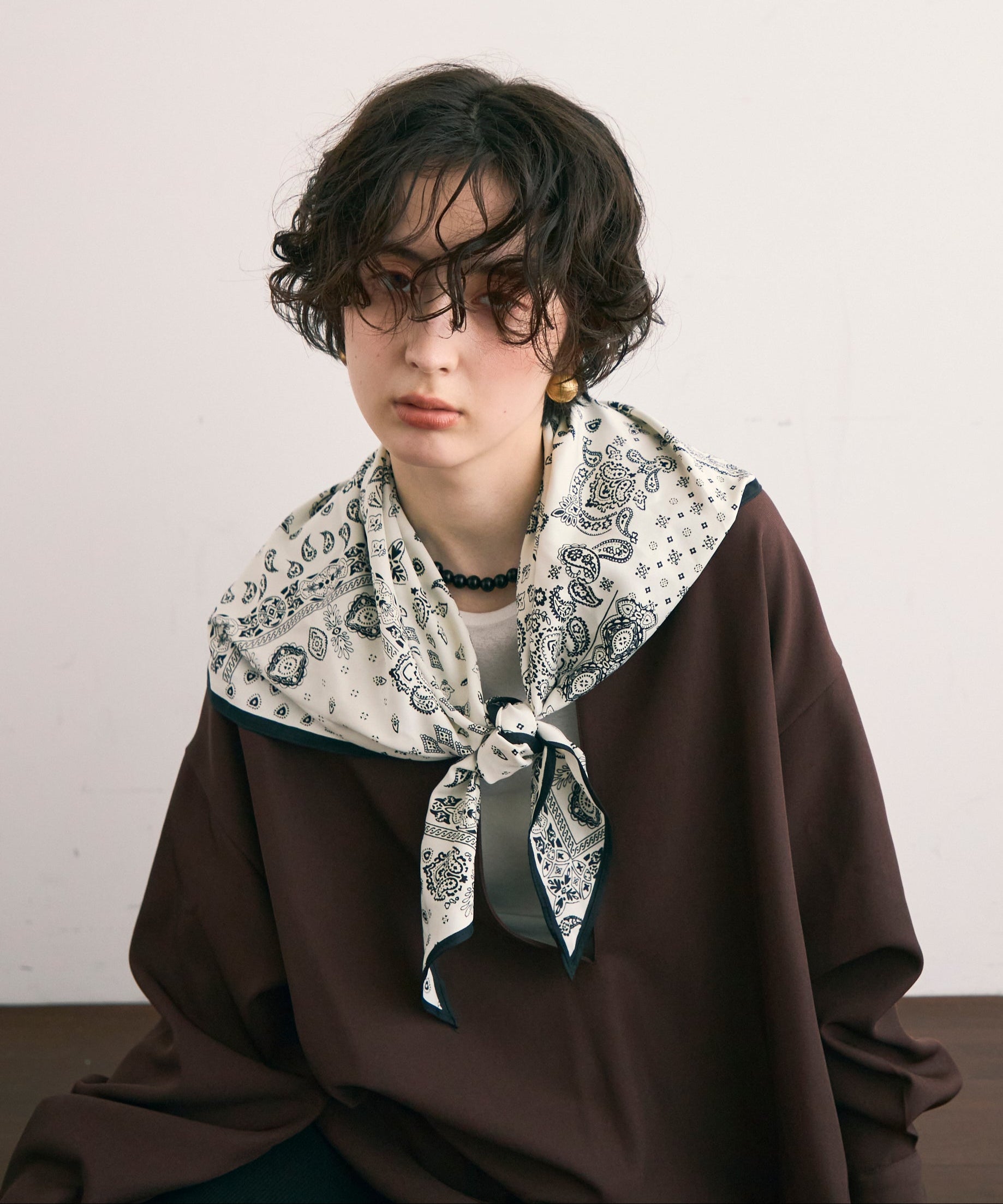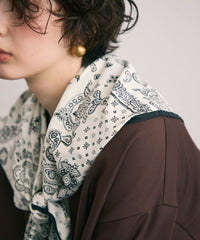 シンプルながらも存在感のあるニュアンスプリントが魅力のスカーフ。