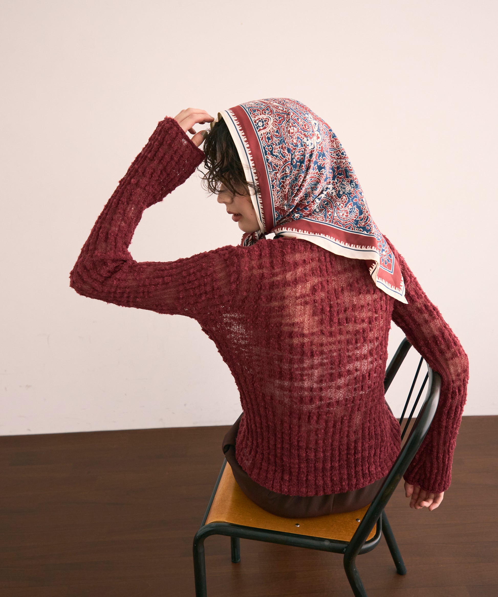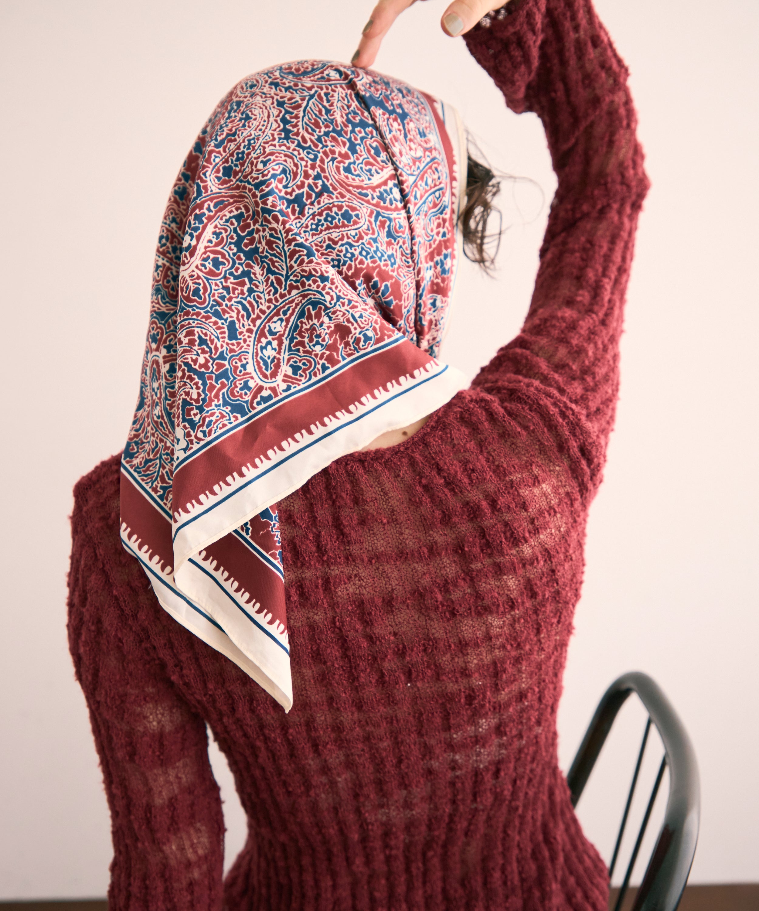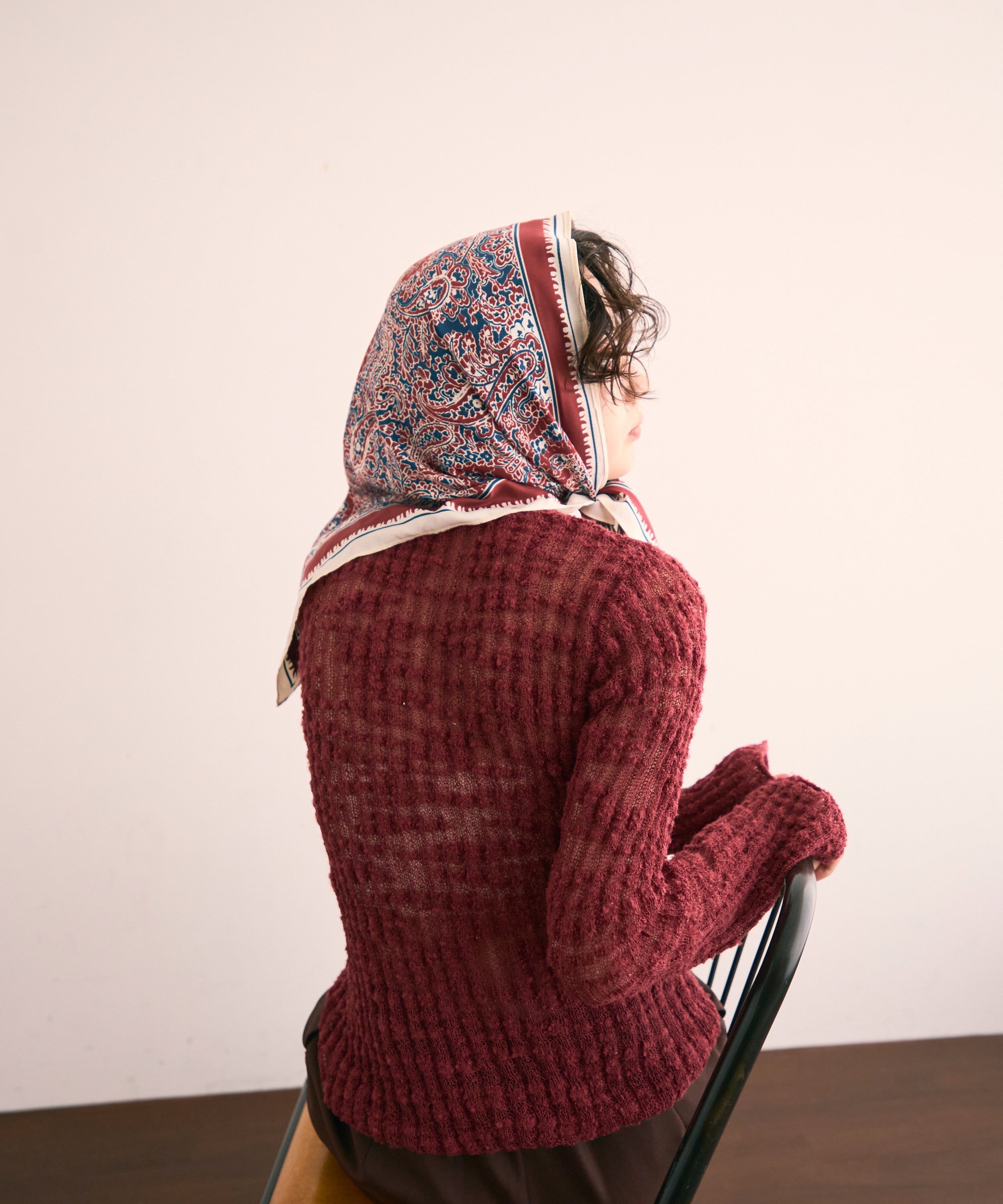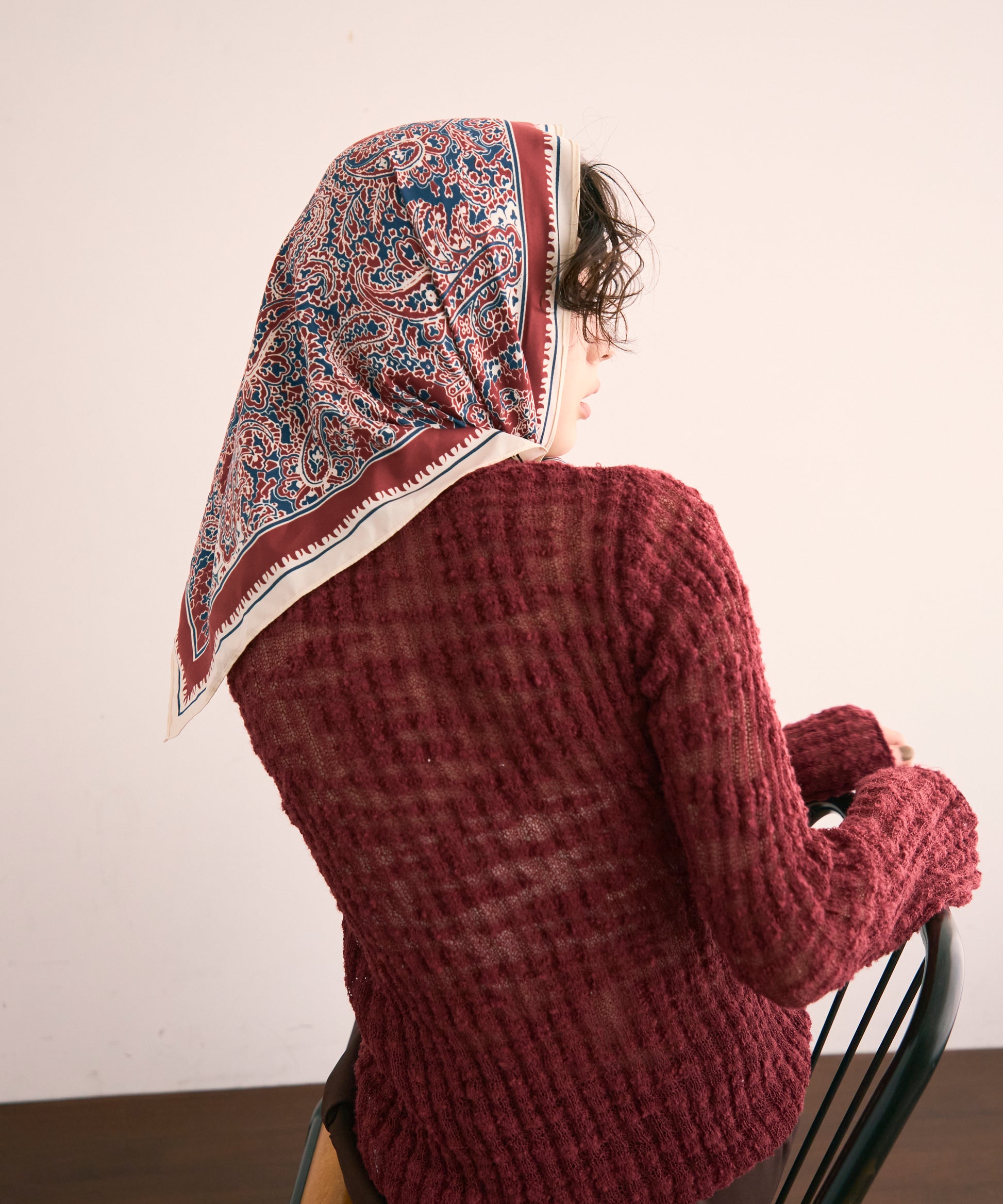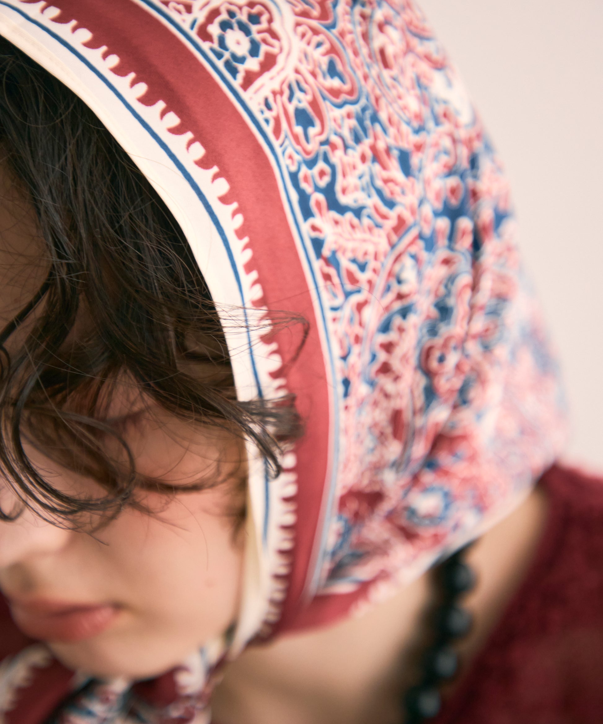頭にかぶるように巻いたり、肩や腰、ビスチェのように胸元に巻いたりとマルチに使える三角型です。