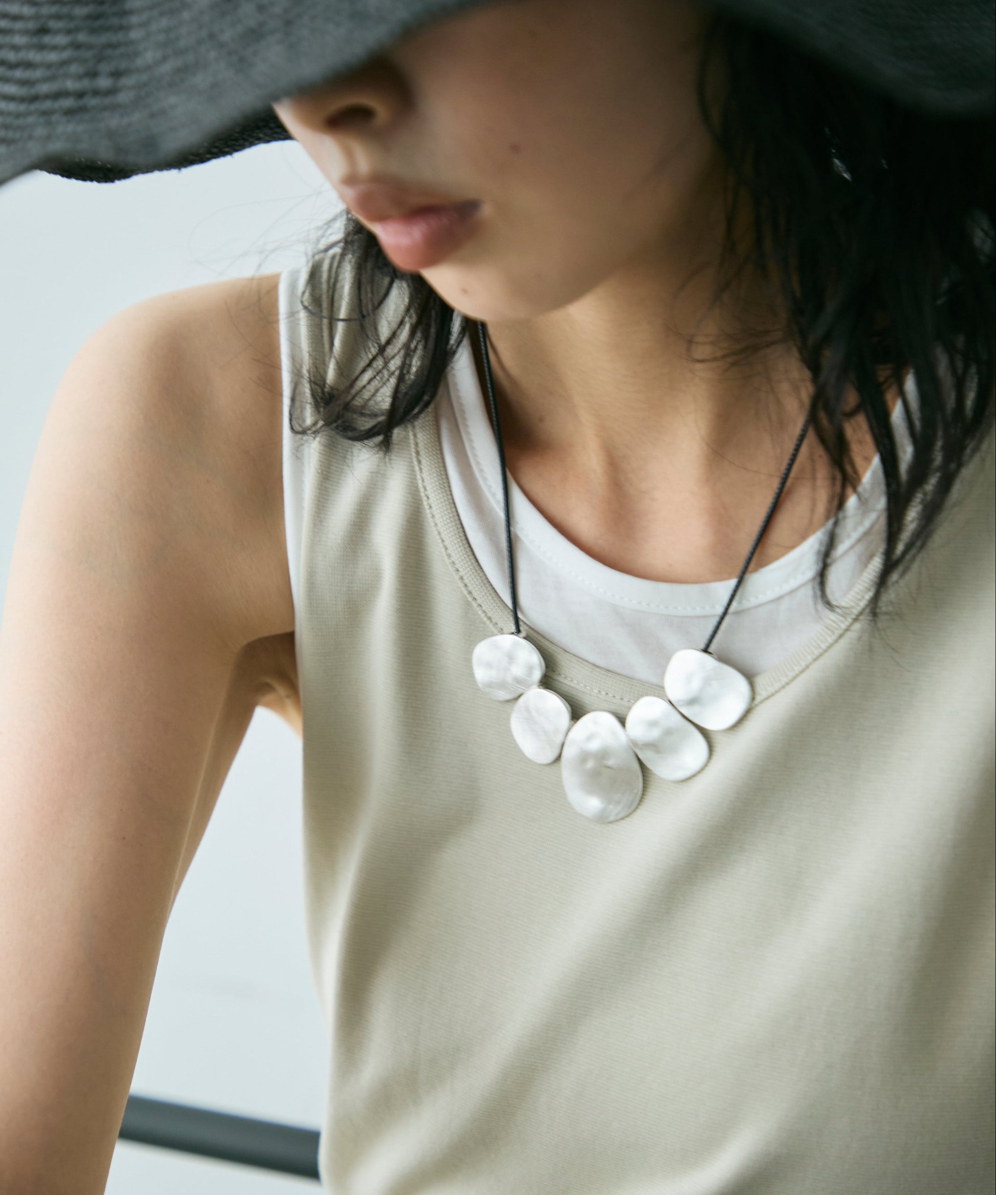 太めのデザインがワンポイントになり、一目の引くネックレスです。