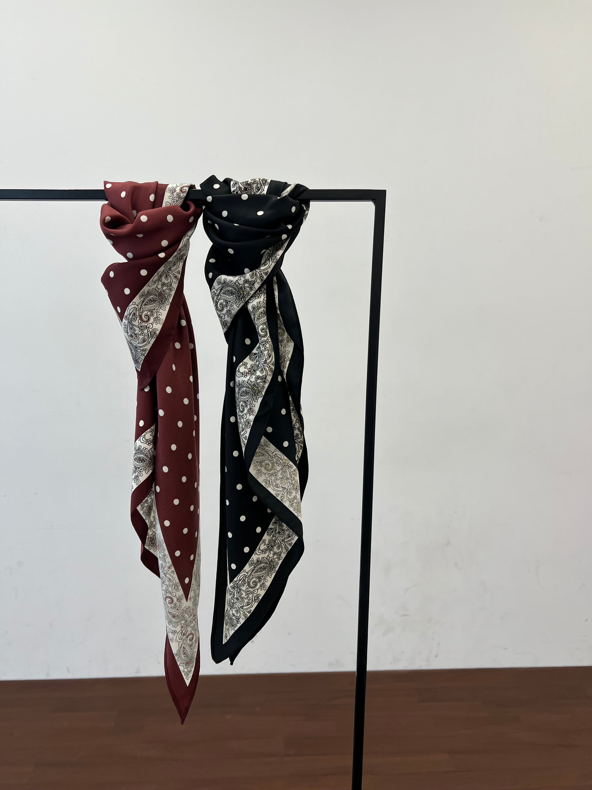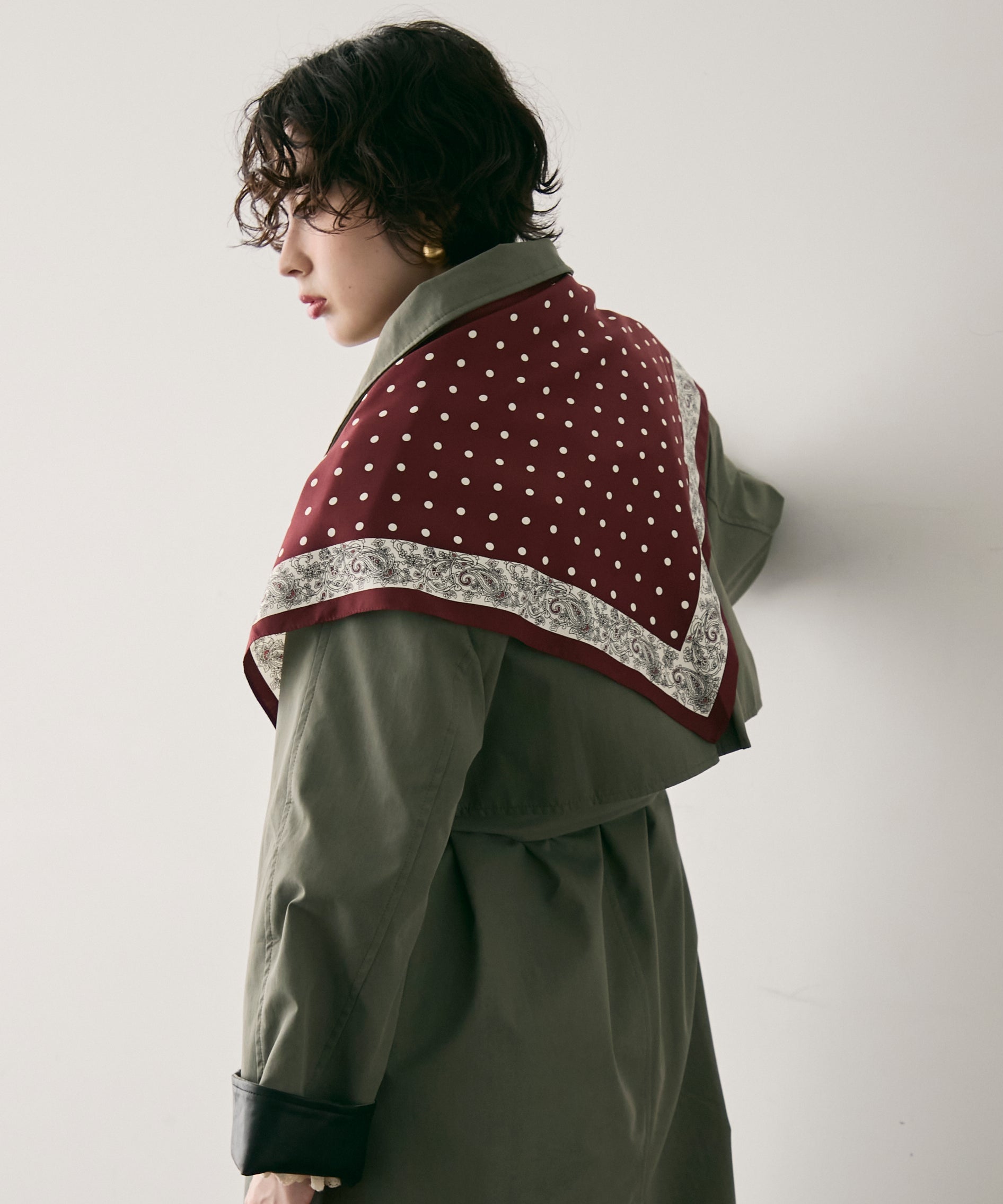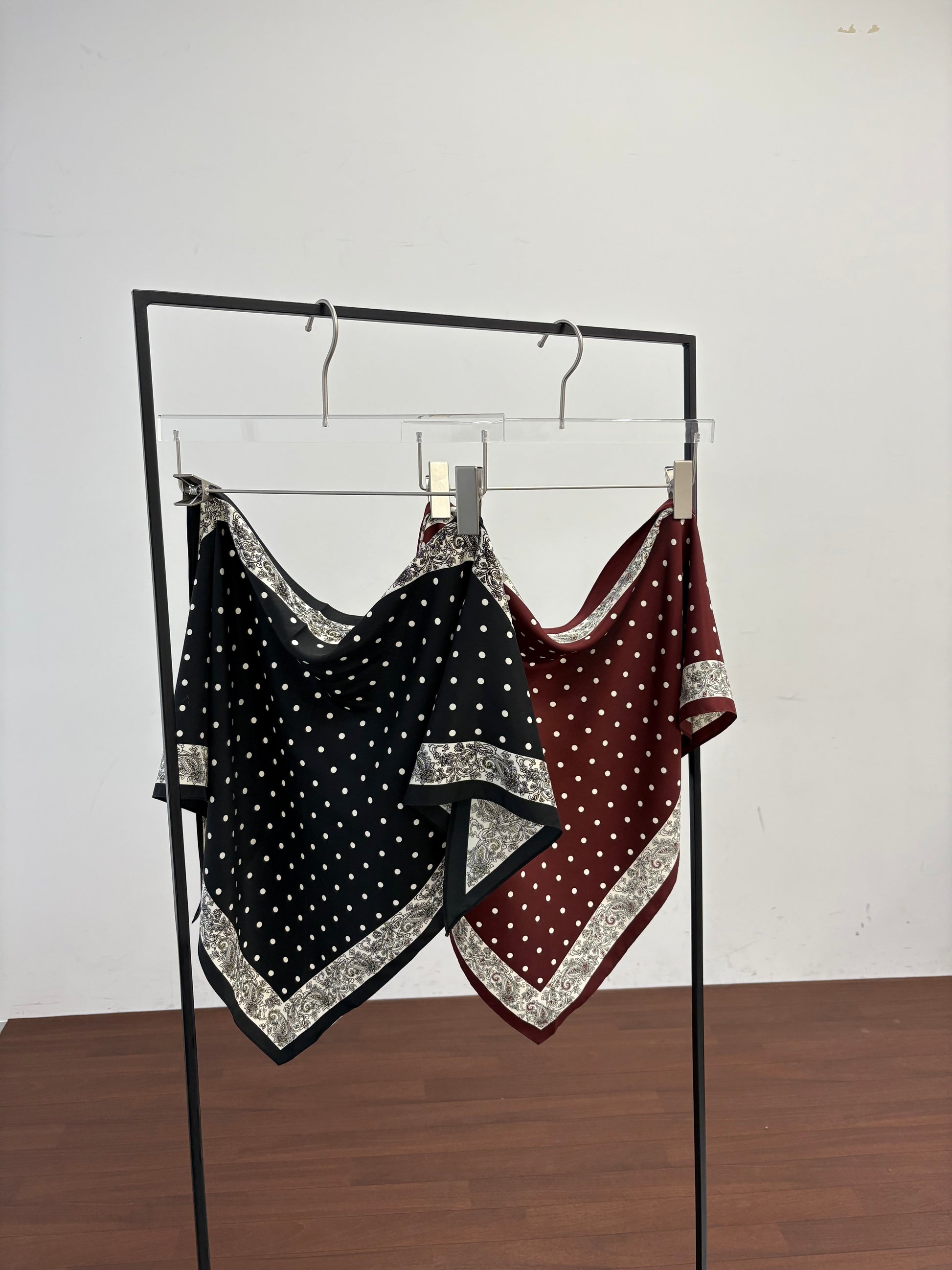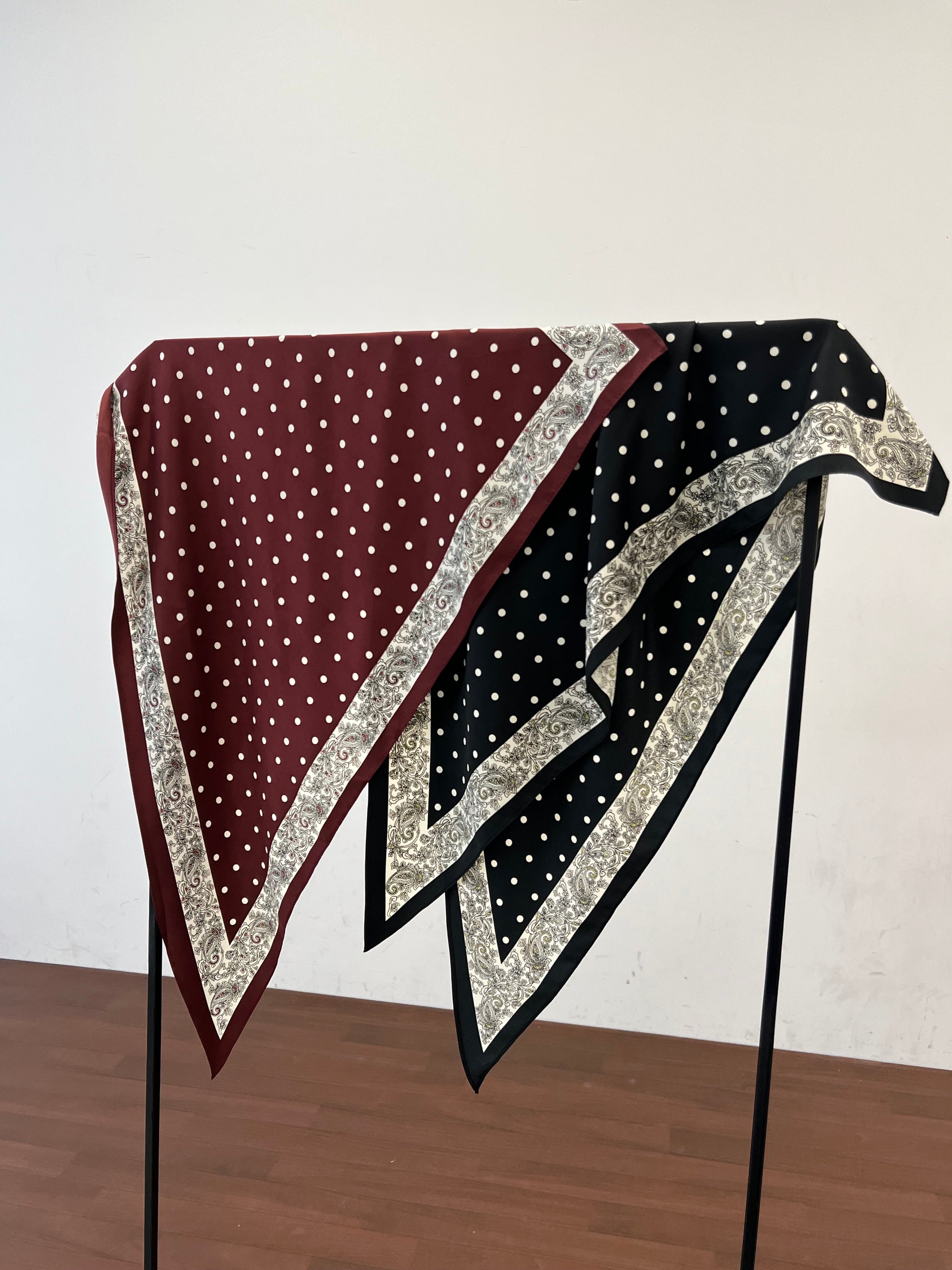 クラシカルなドット柄が目を惹くトライアングルスカーフ。