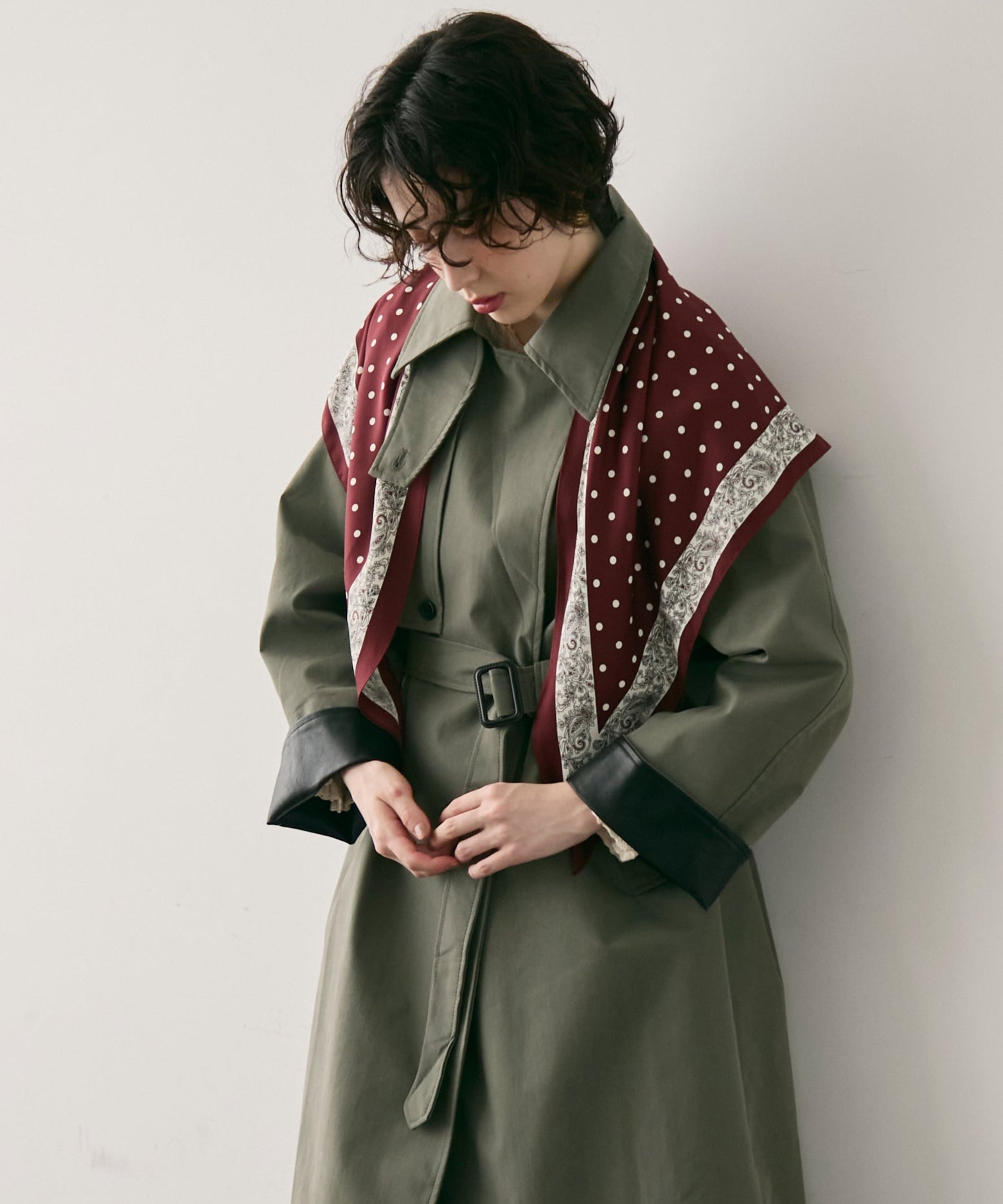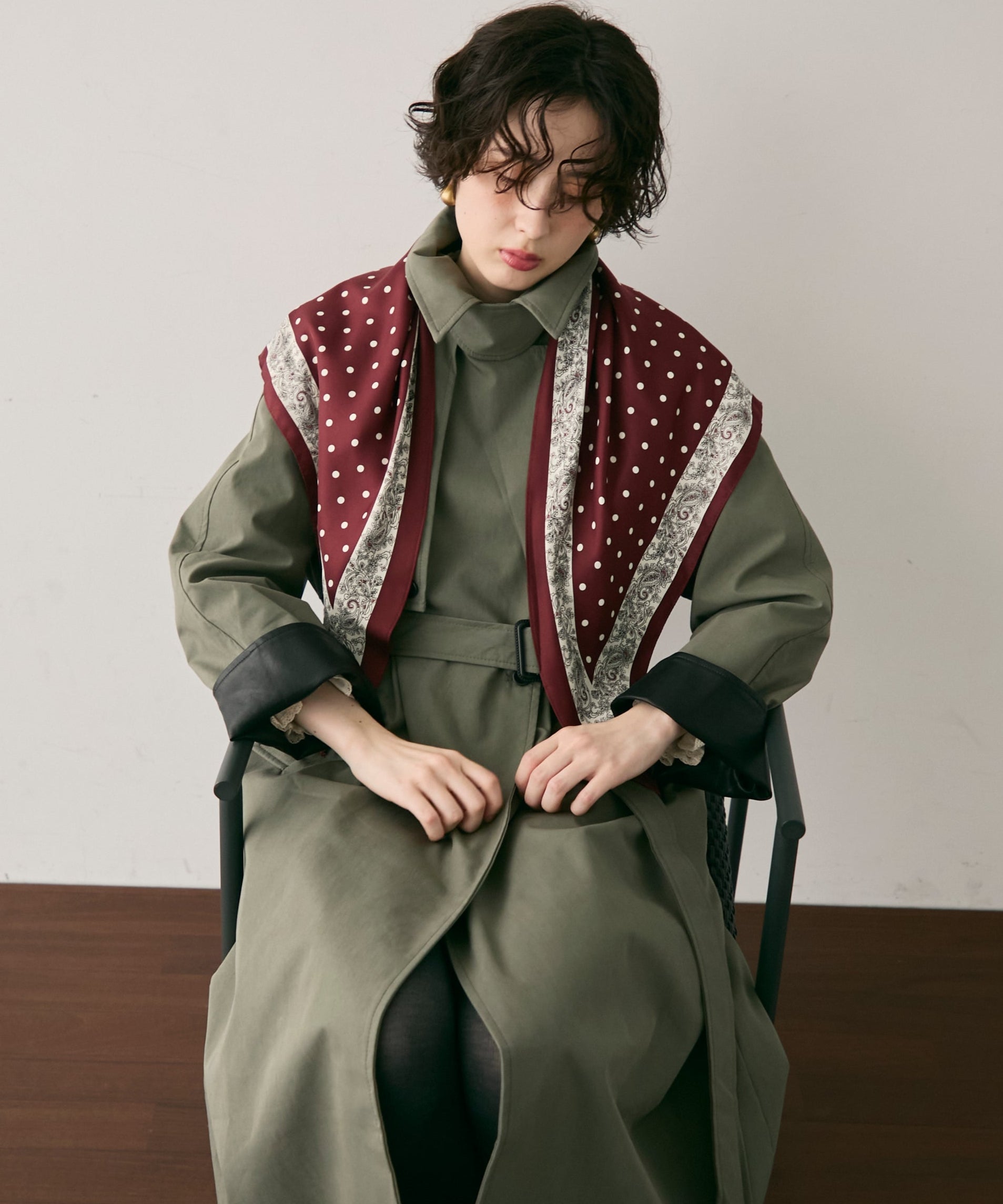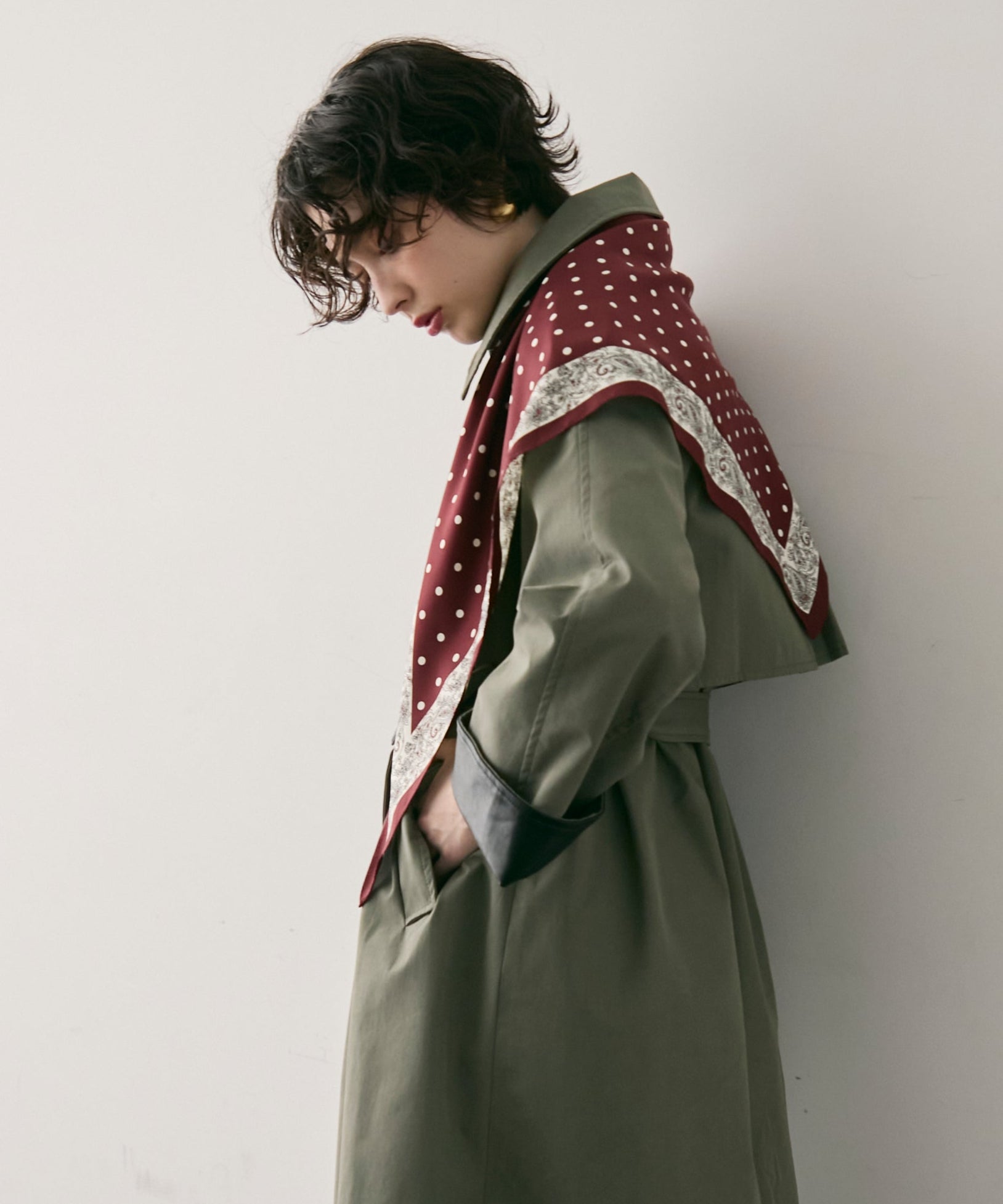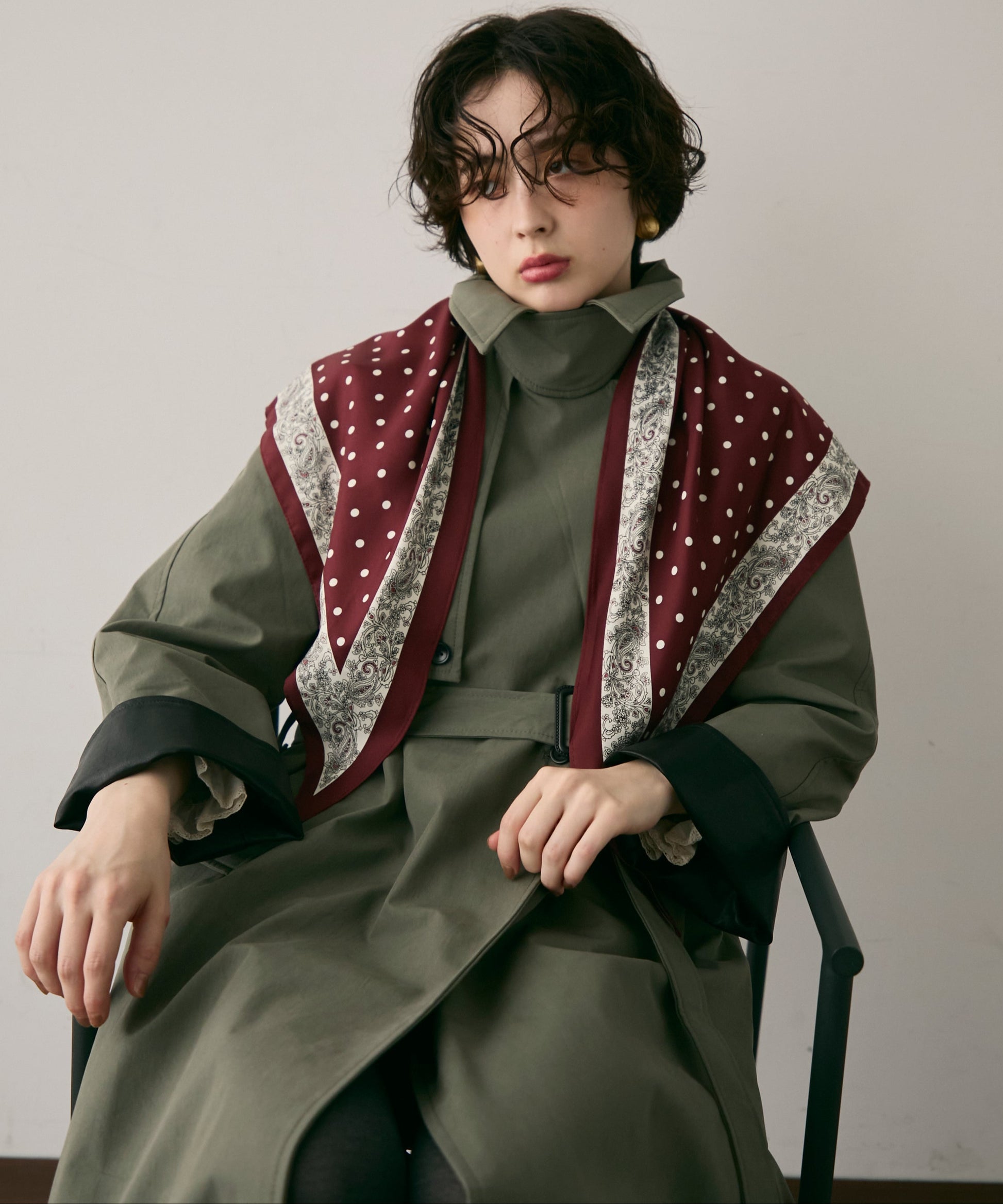 クラシカルなドット柄が目を惹くトライアングルスカーフ。