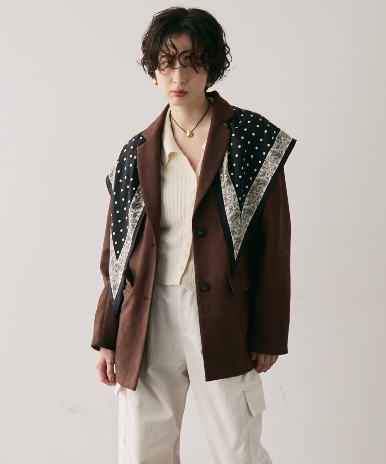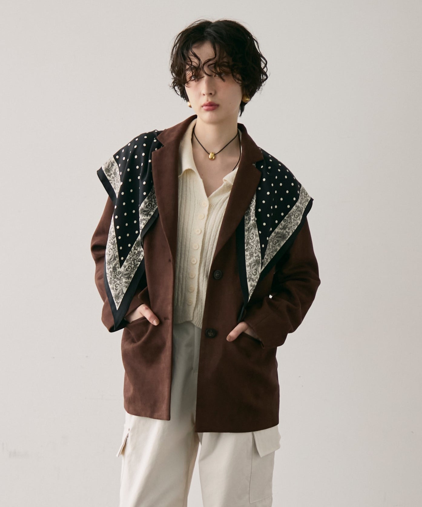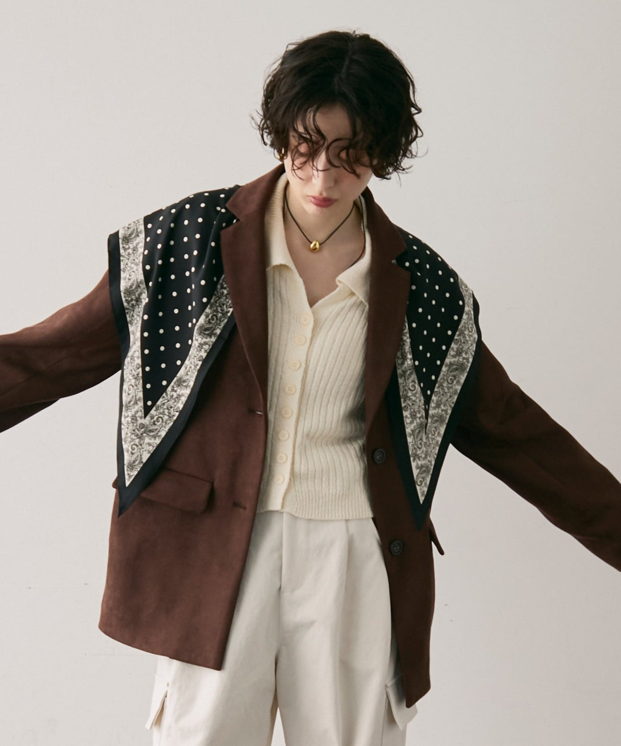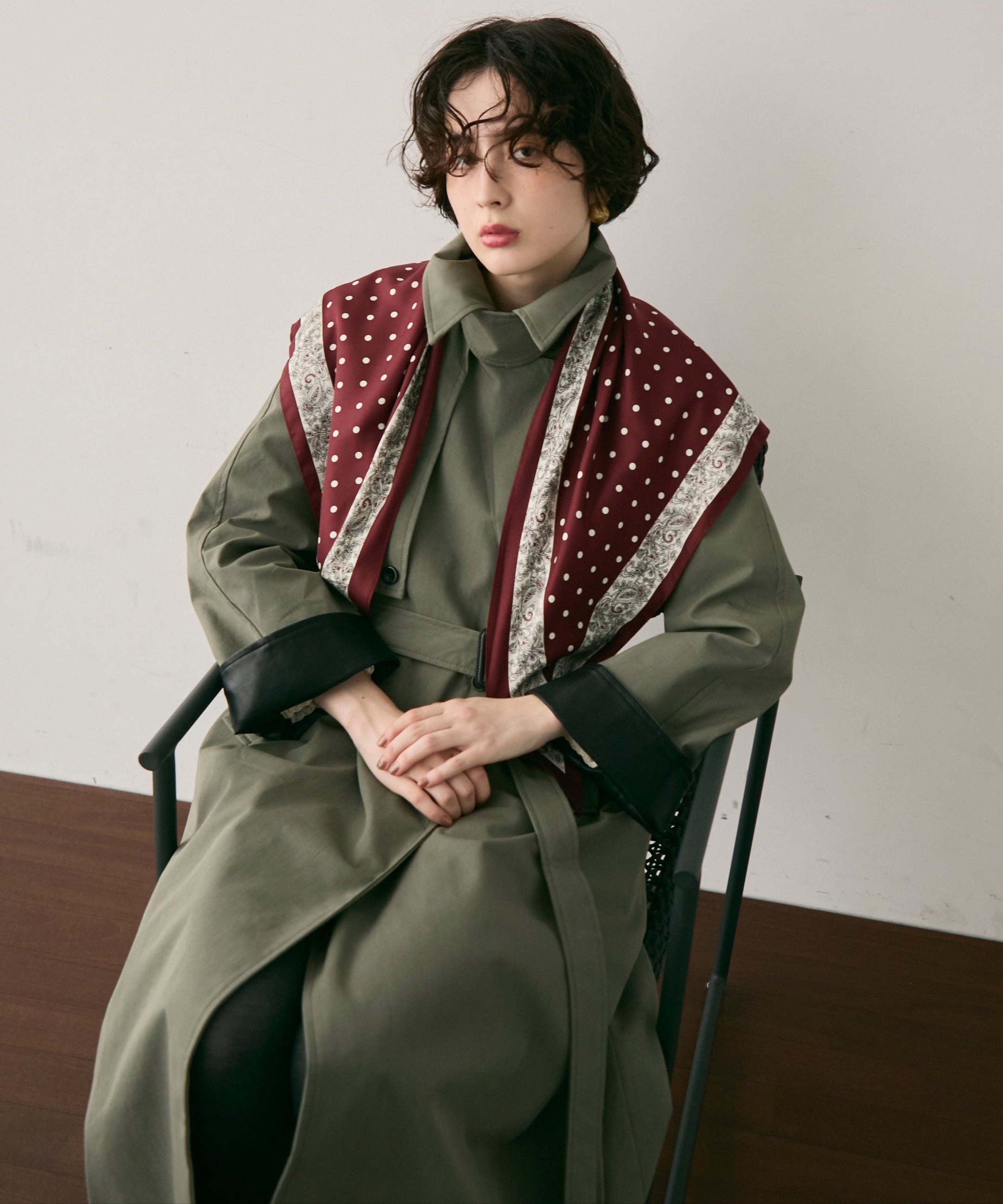 クラシカルなドット柄が目を惹くトライアングルスカーフ。