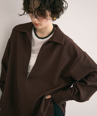 程よい光沢感と落ち感のあるTPUツイル素材を使用したスキッパーブラウス。