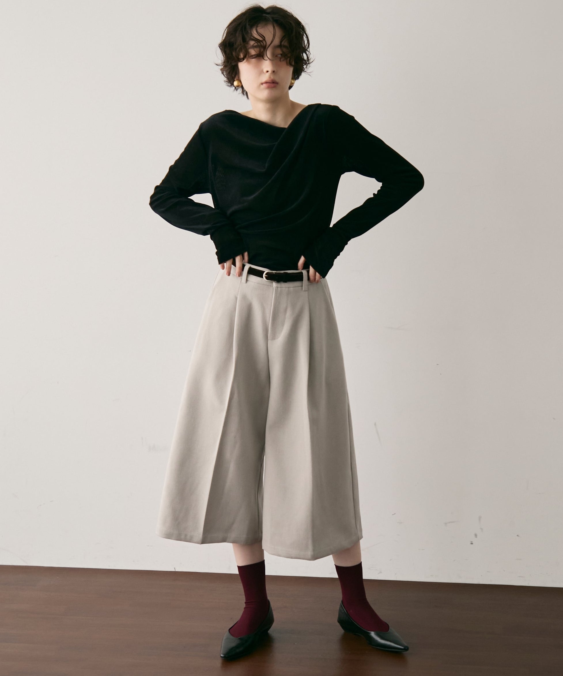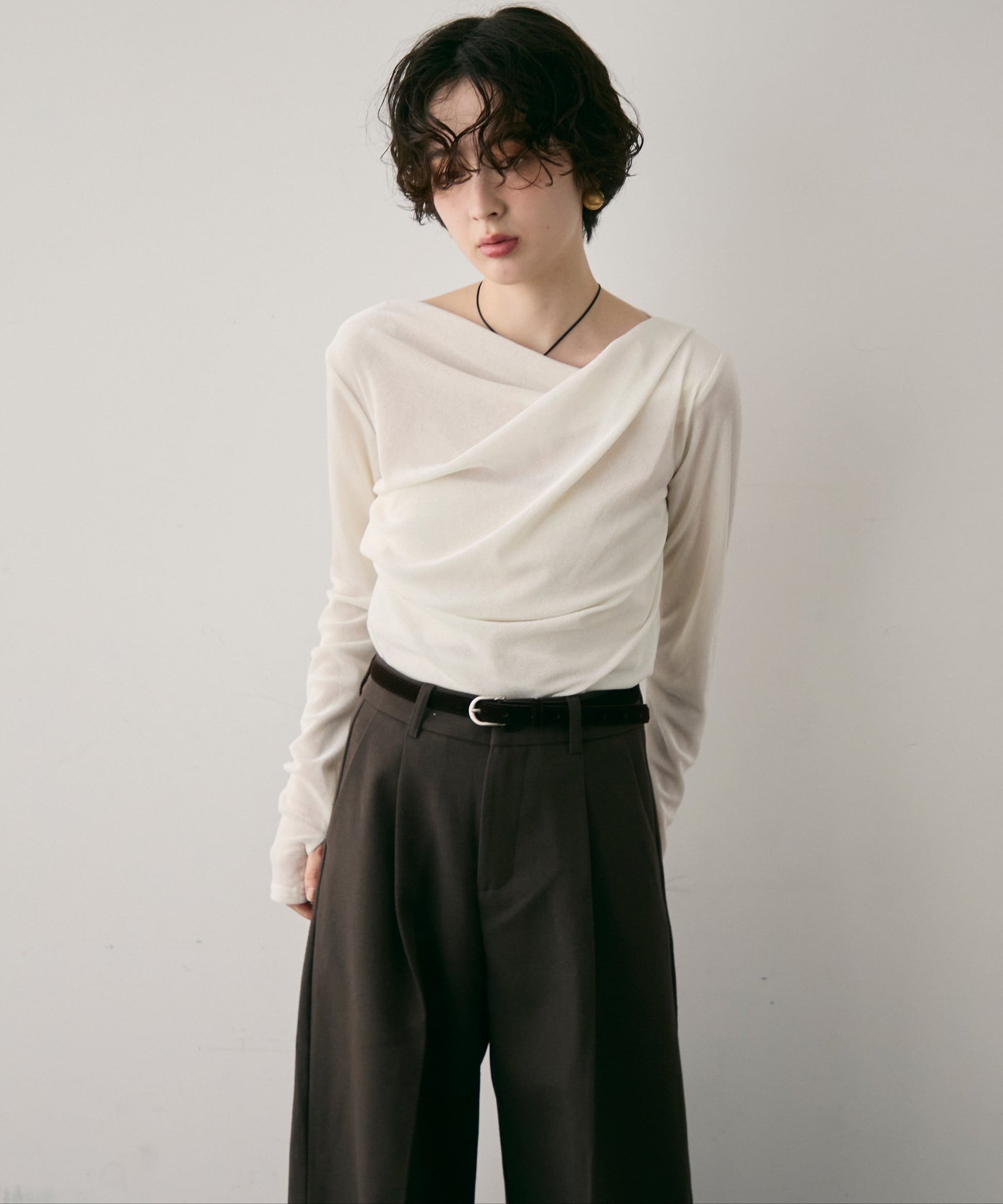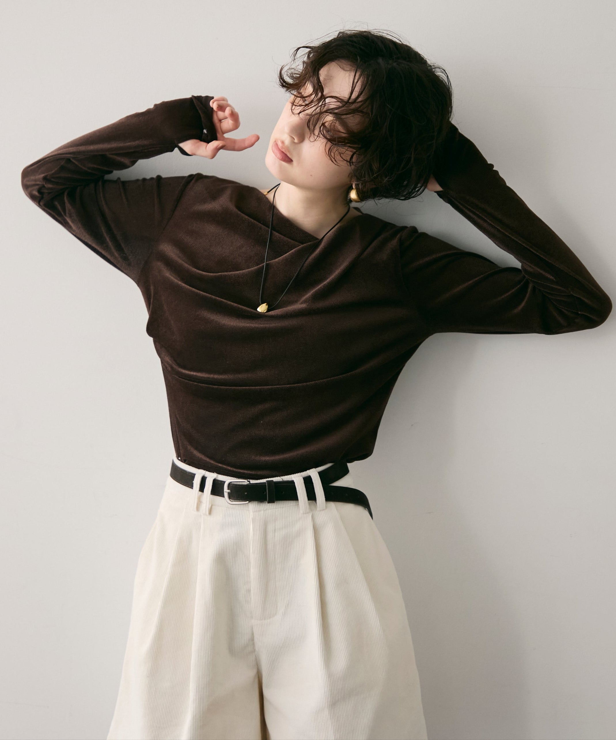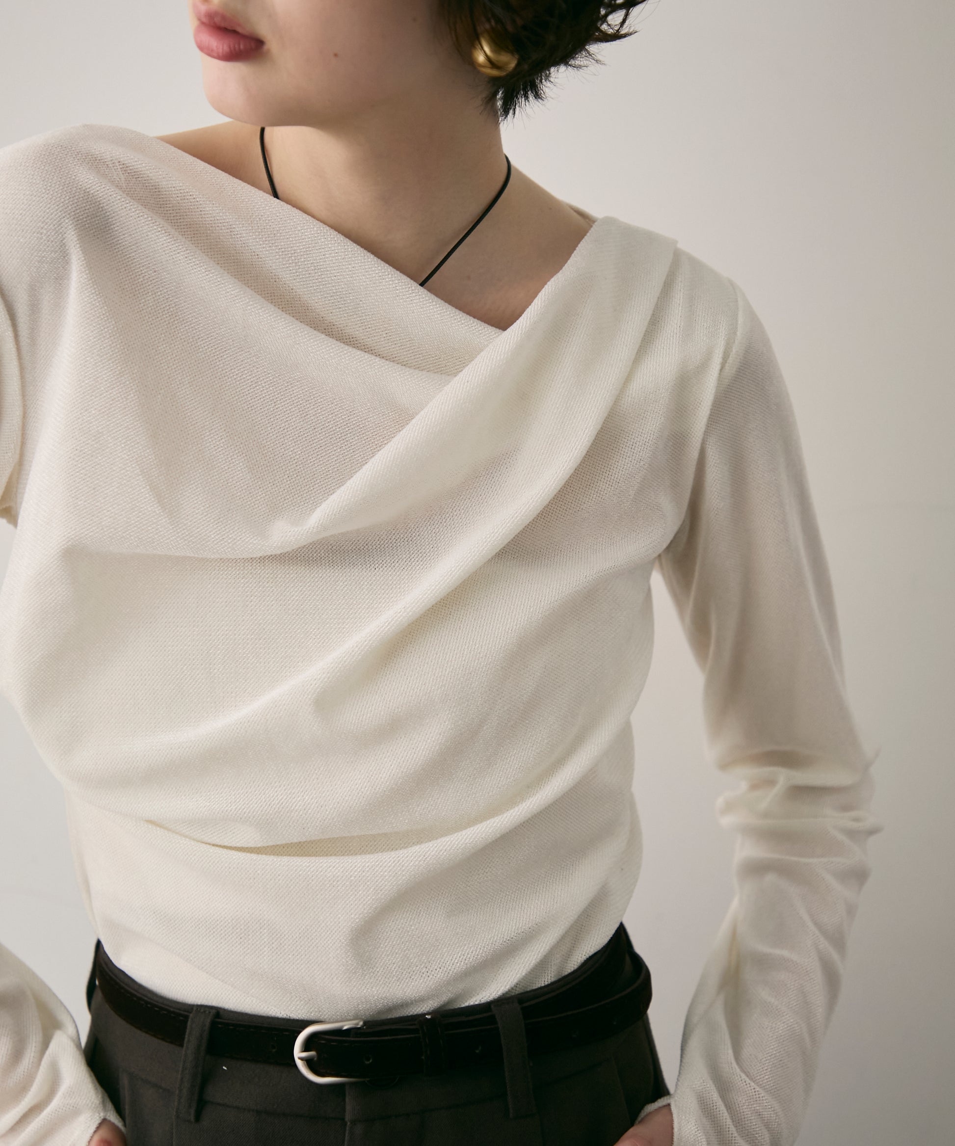 首元のドレープがニュアンス感たっぷりで、季節を問わず着回し力◎な1枚。