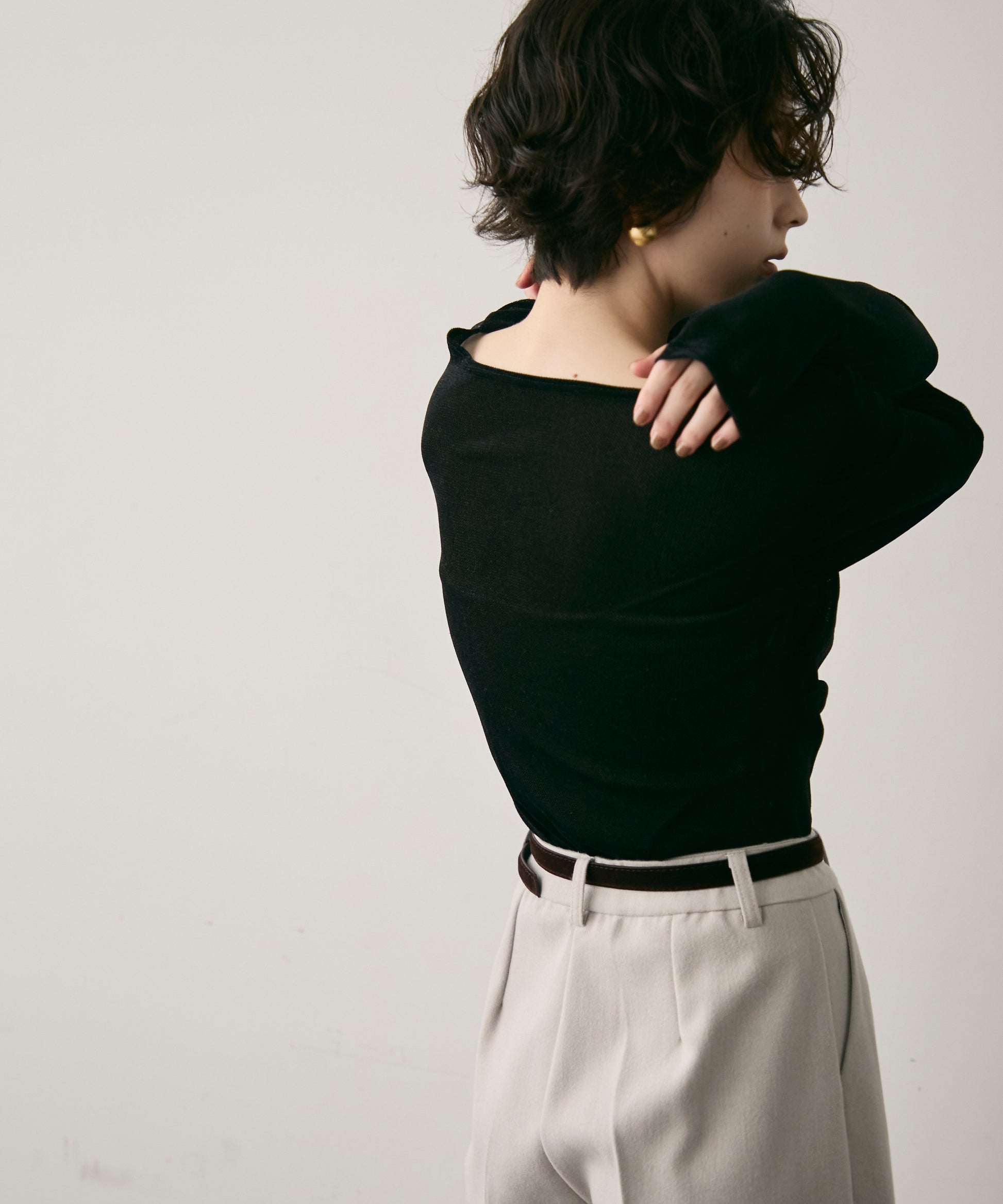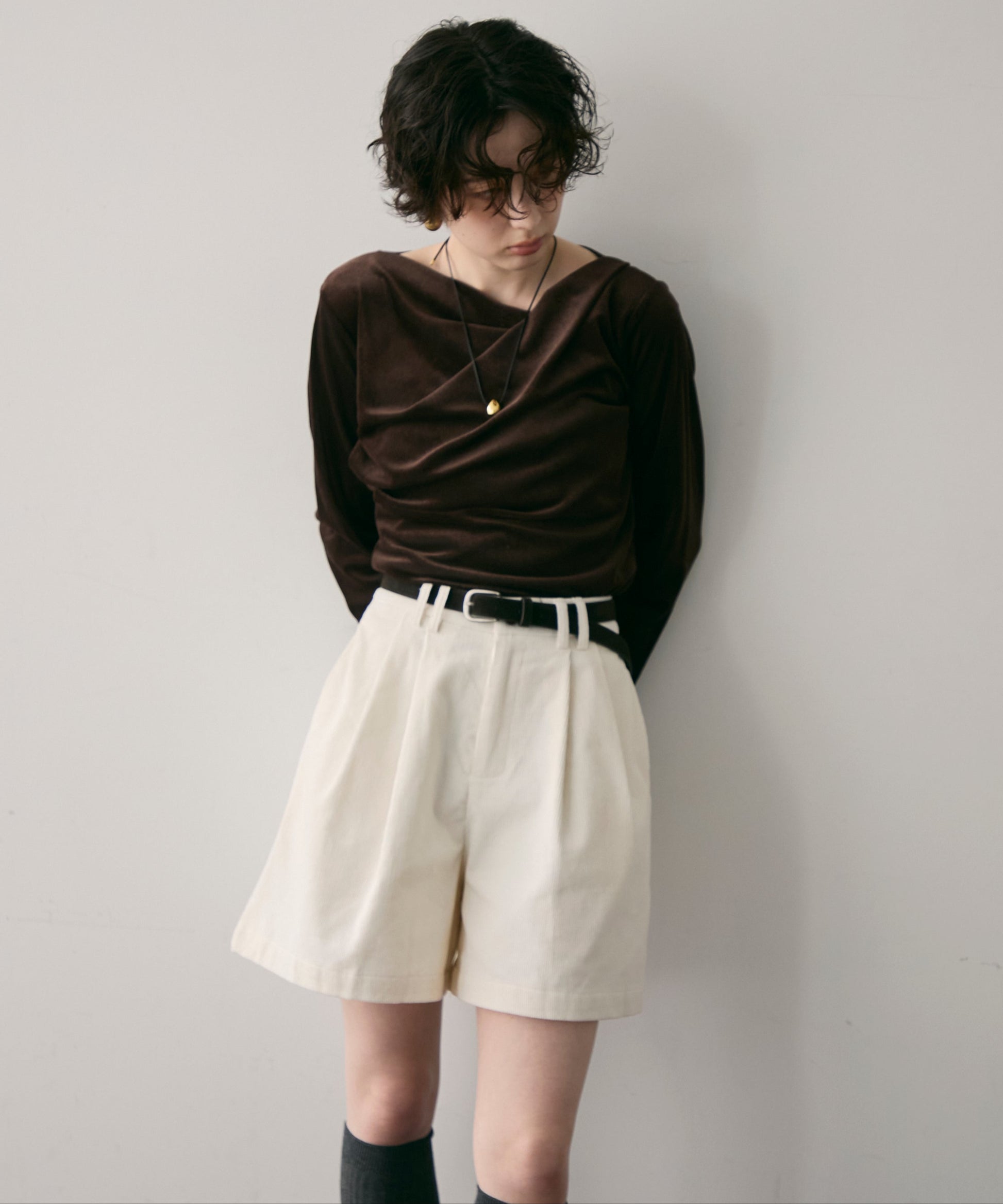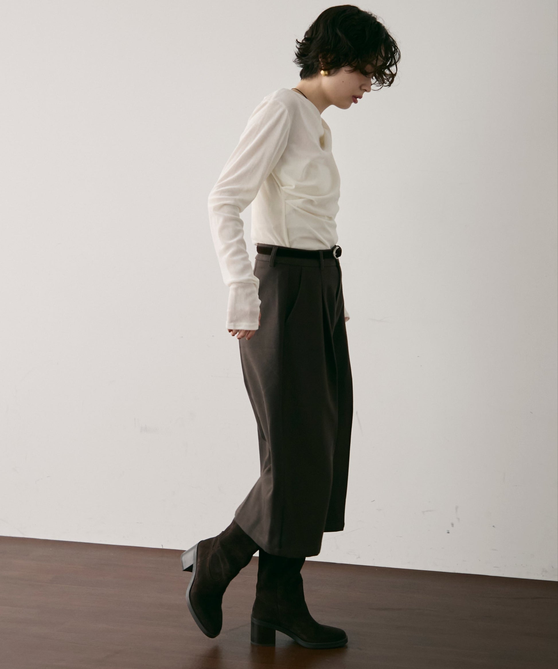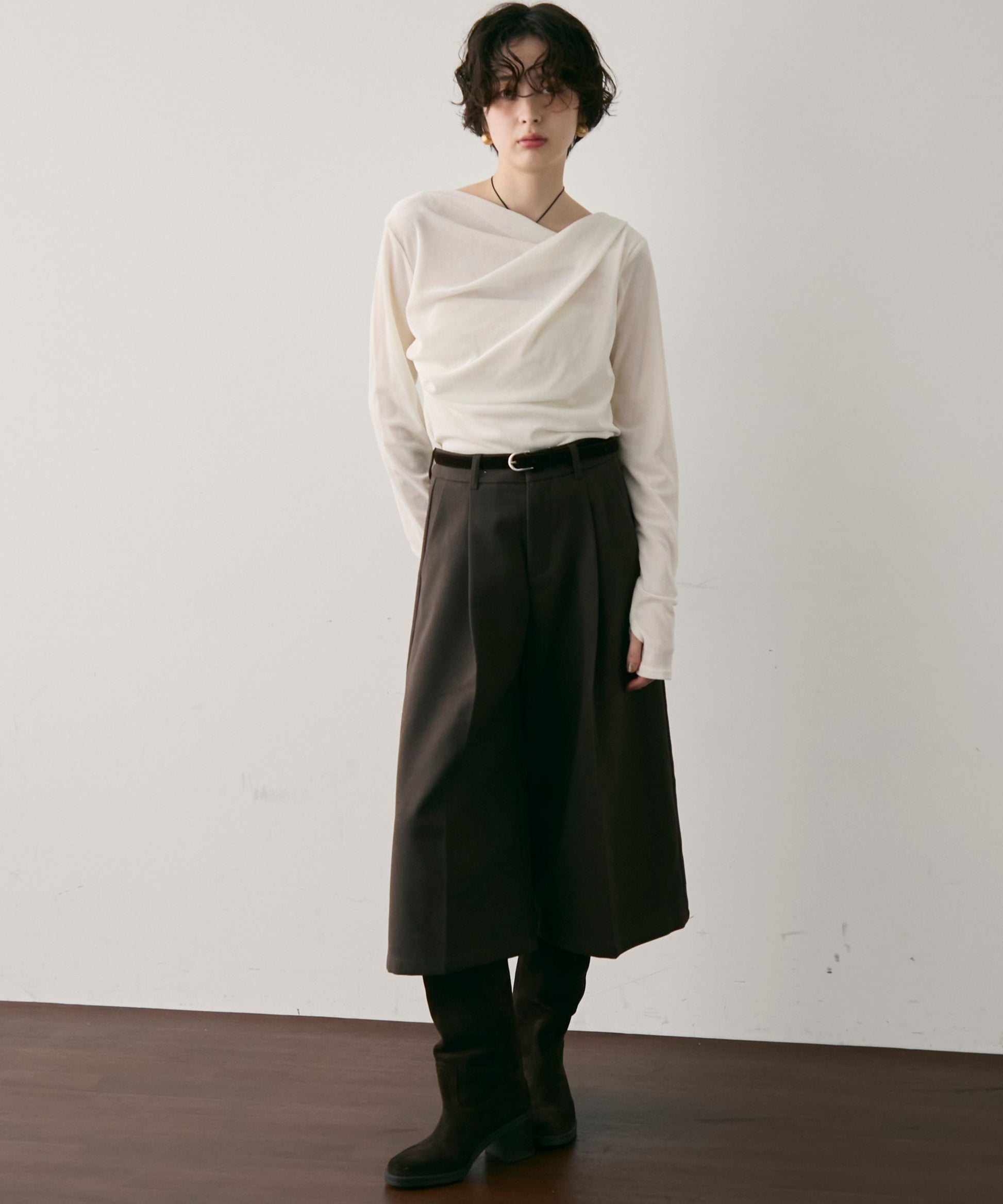 首元のドレープがニュアンス感たっぷりで、季節を問わず着回し力◎な1枚。