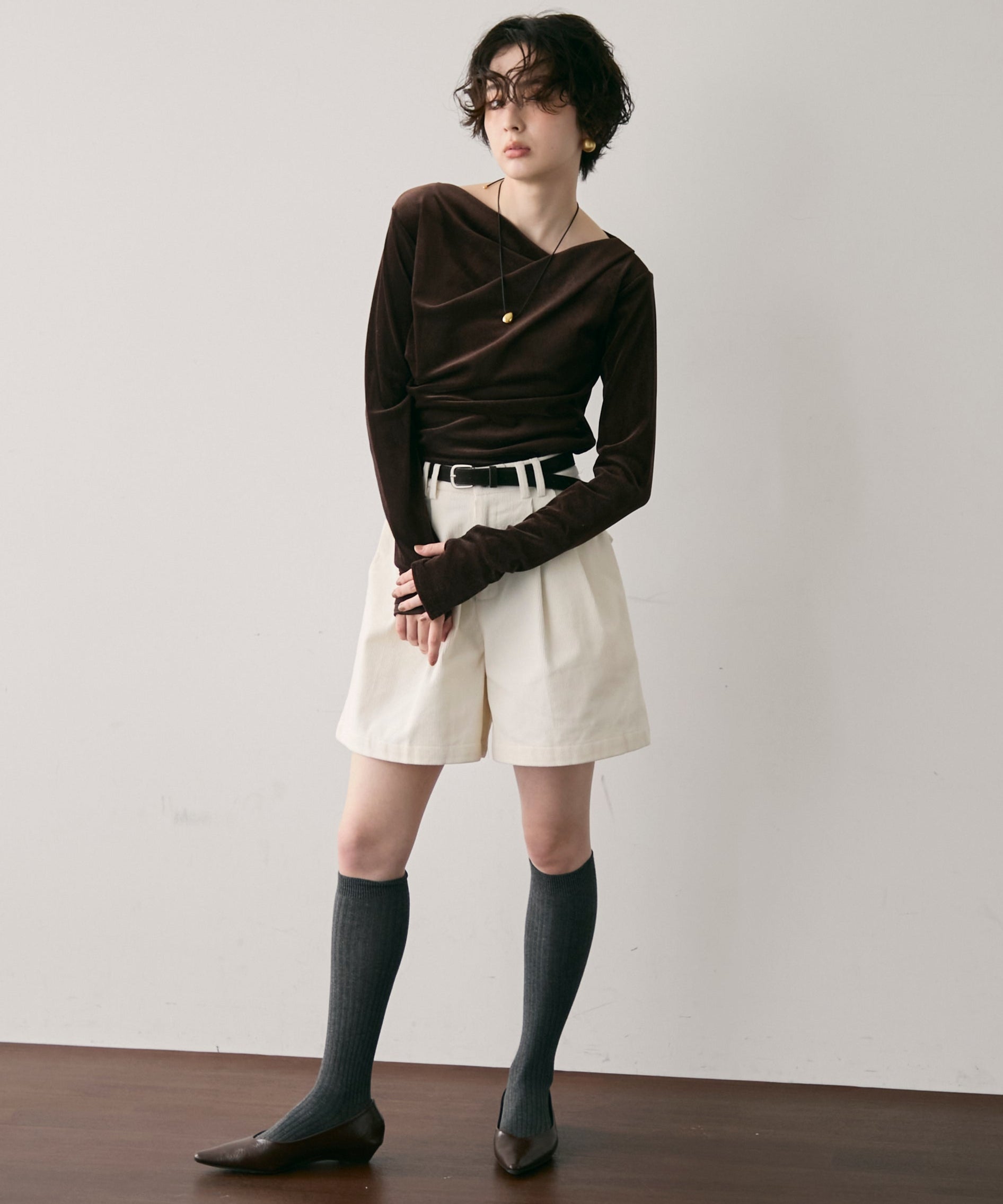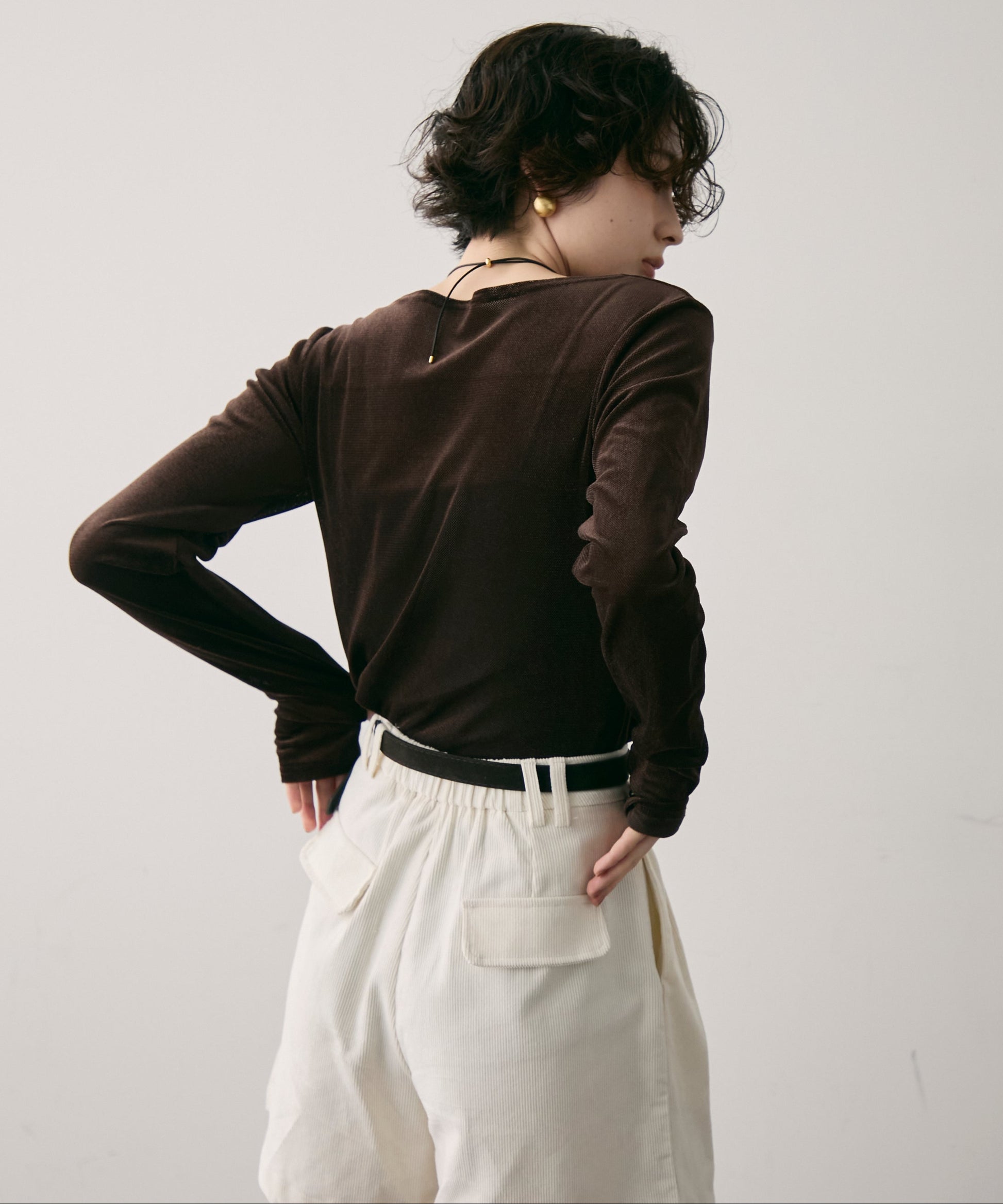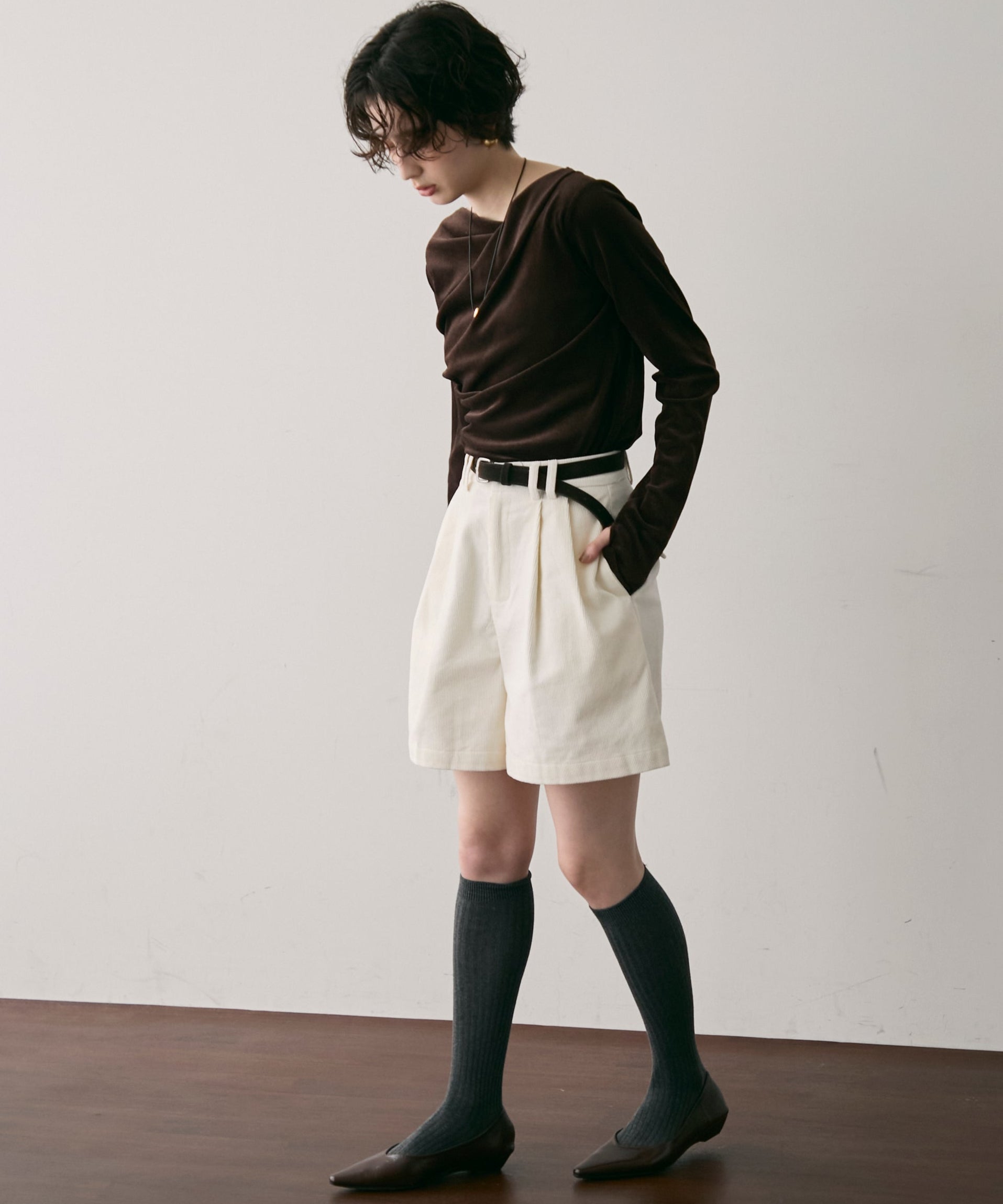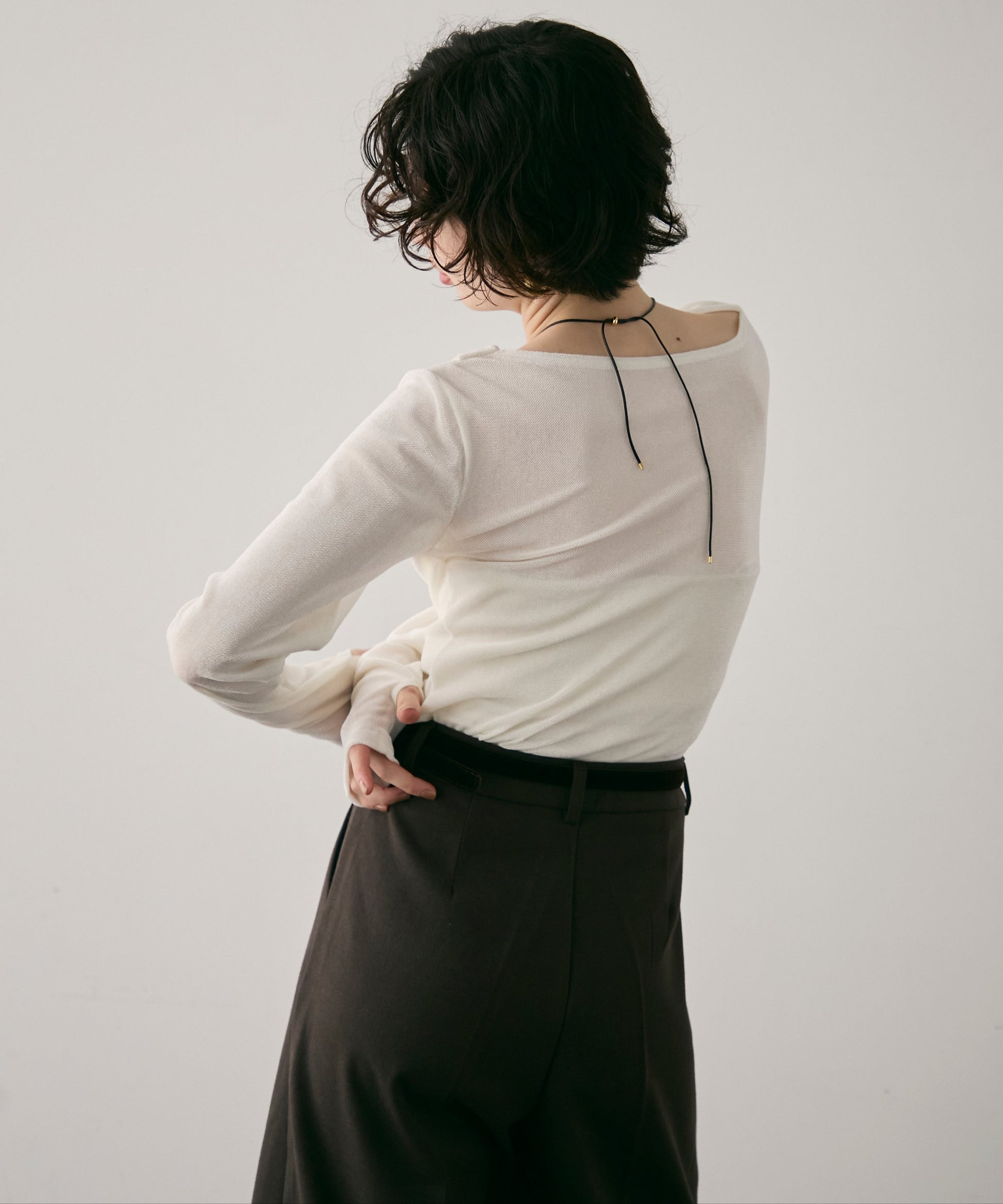 首元のドレープがニュアンス感たっぷりで、季節を問わず着回し力◎な1枚。