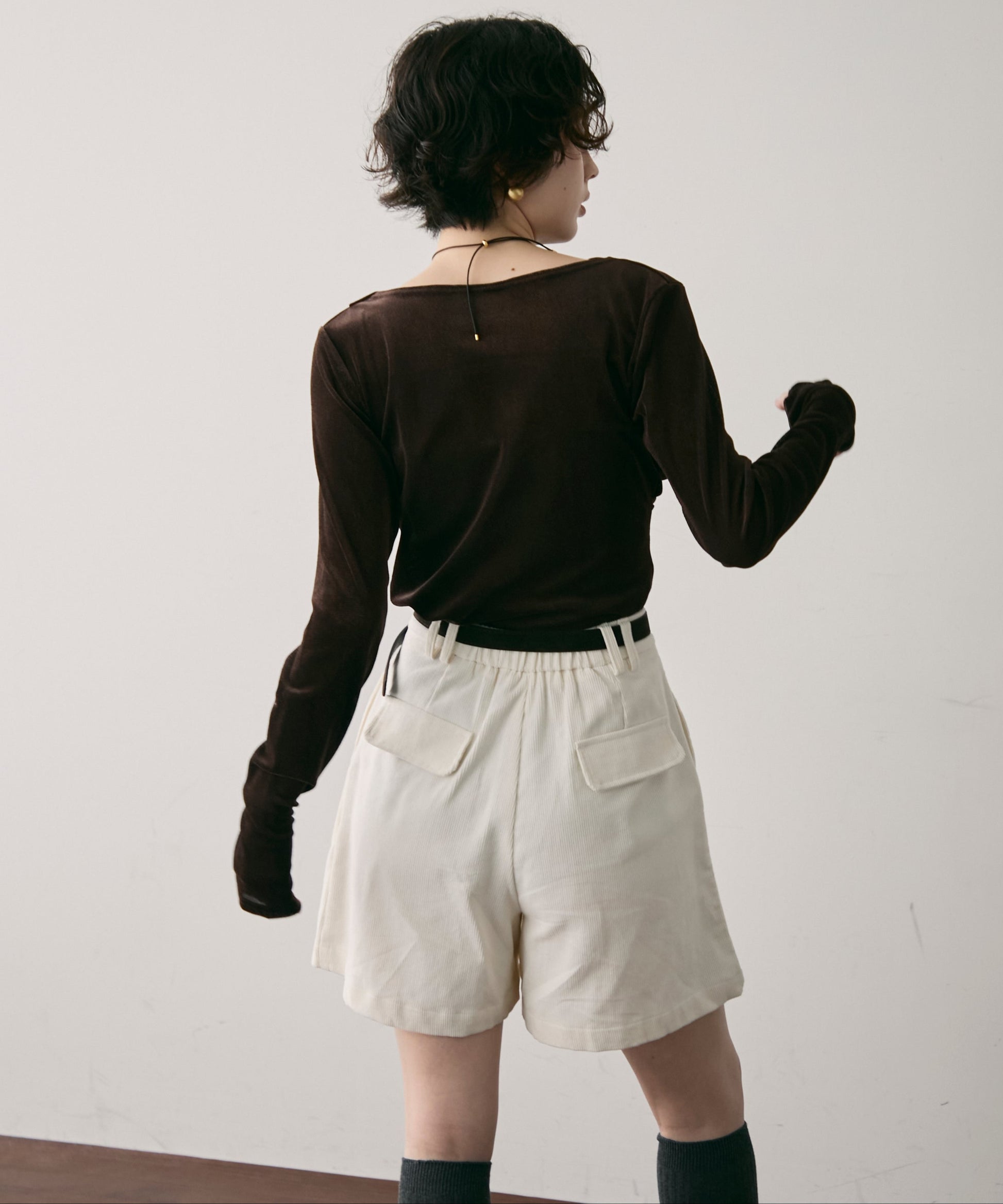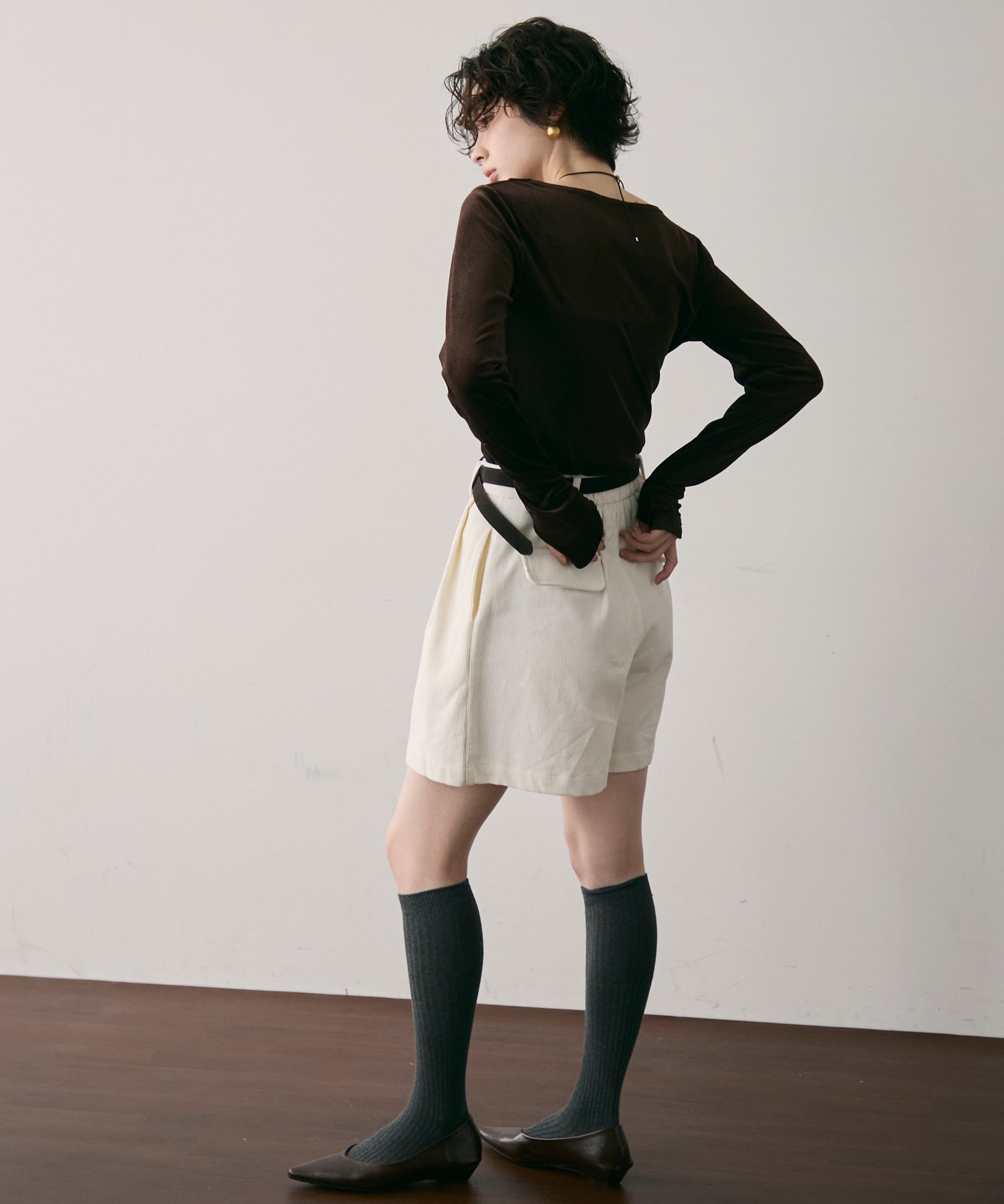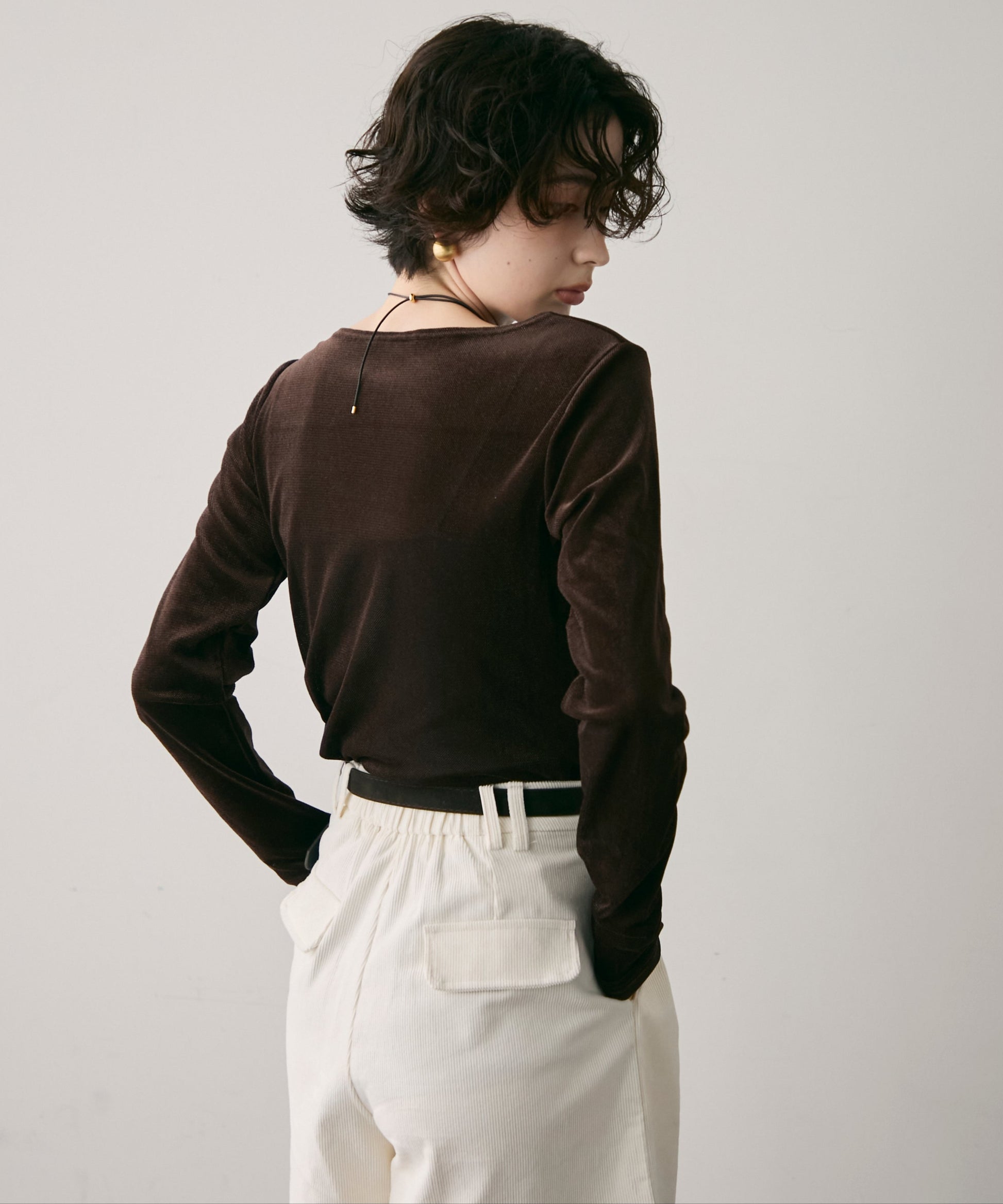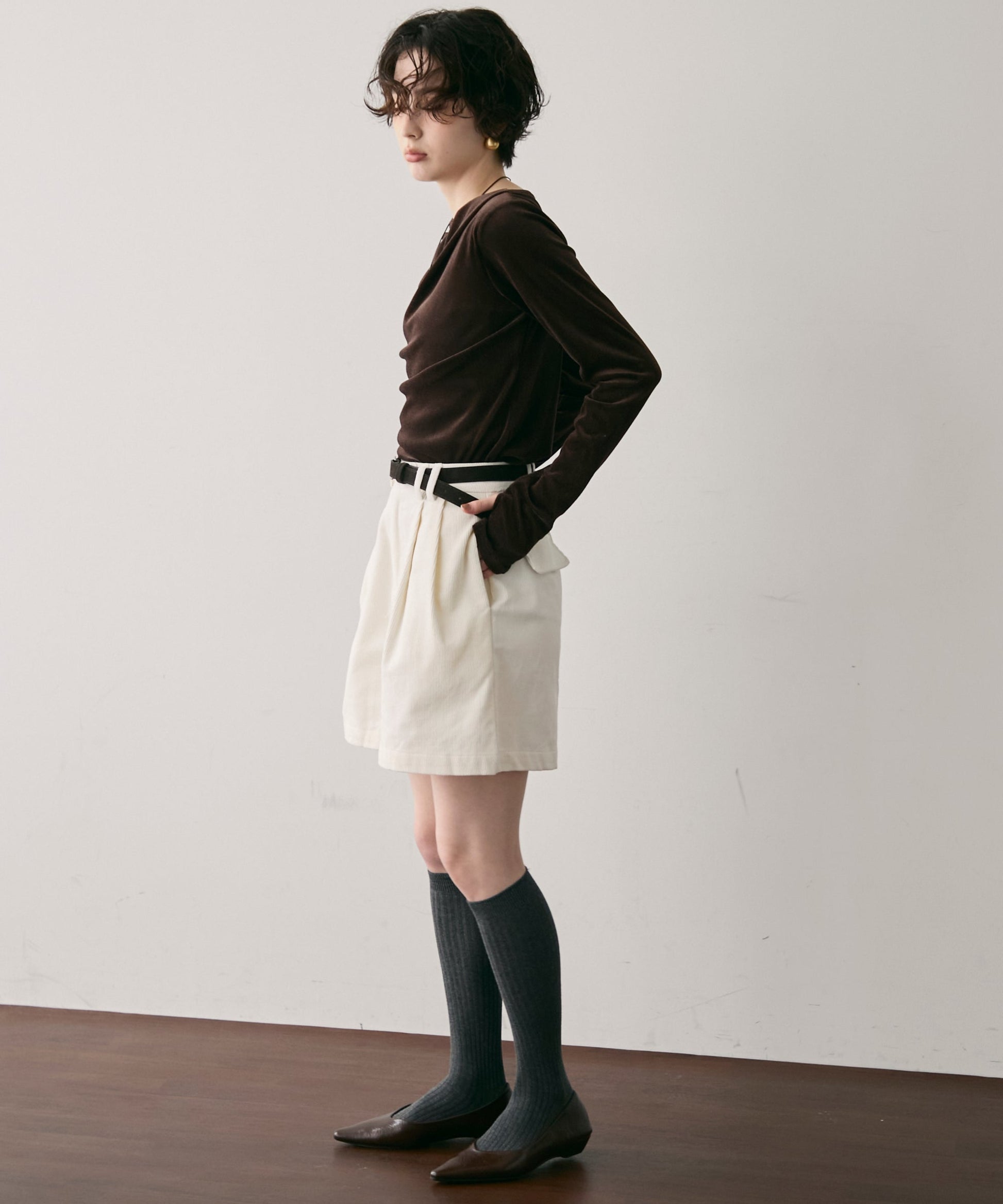 首元のドレープがニュアンス感たっぷりで、季節を問わず着回し力◎な1枚。