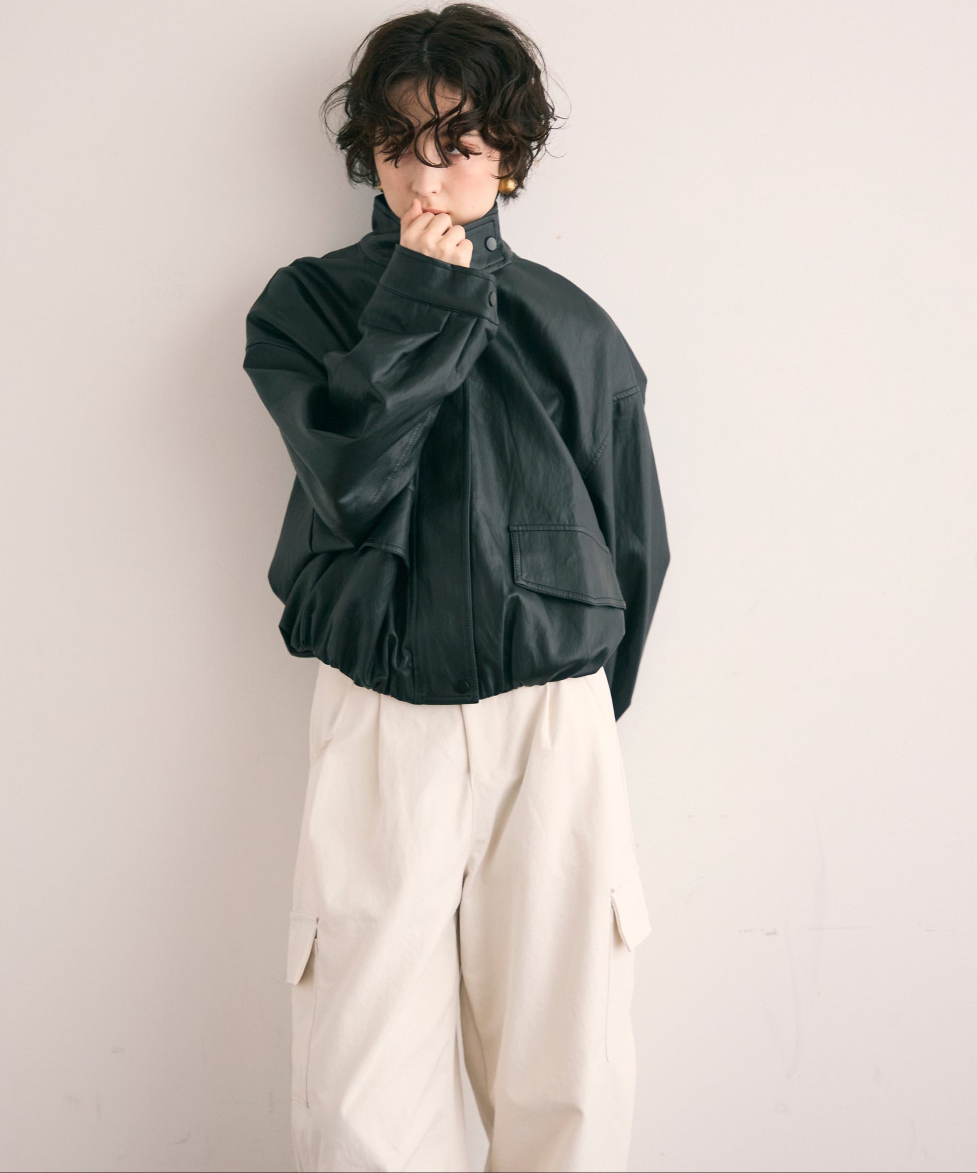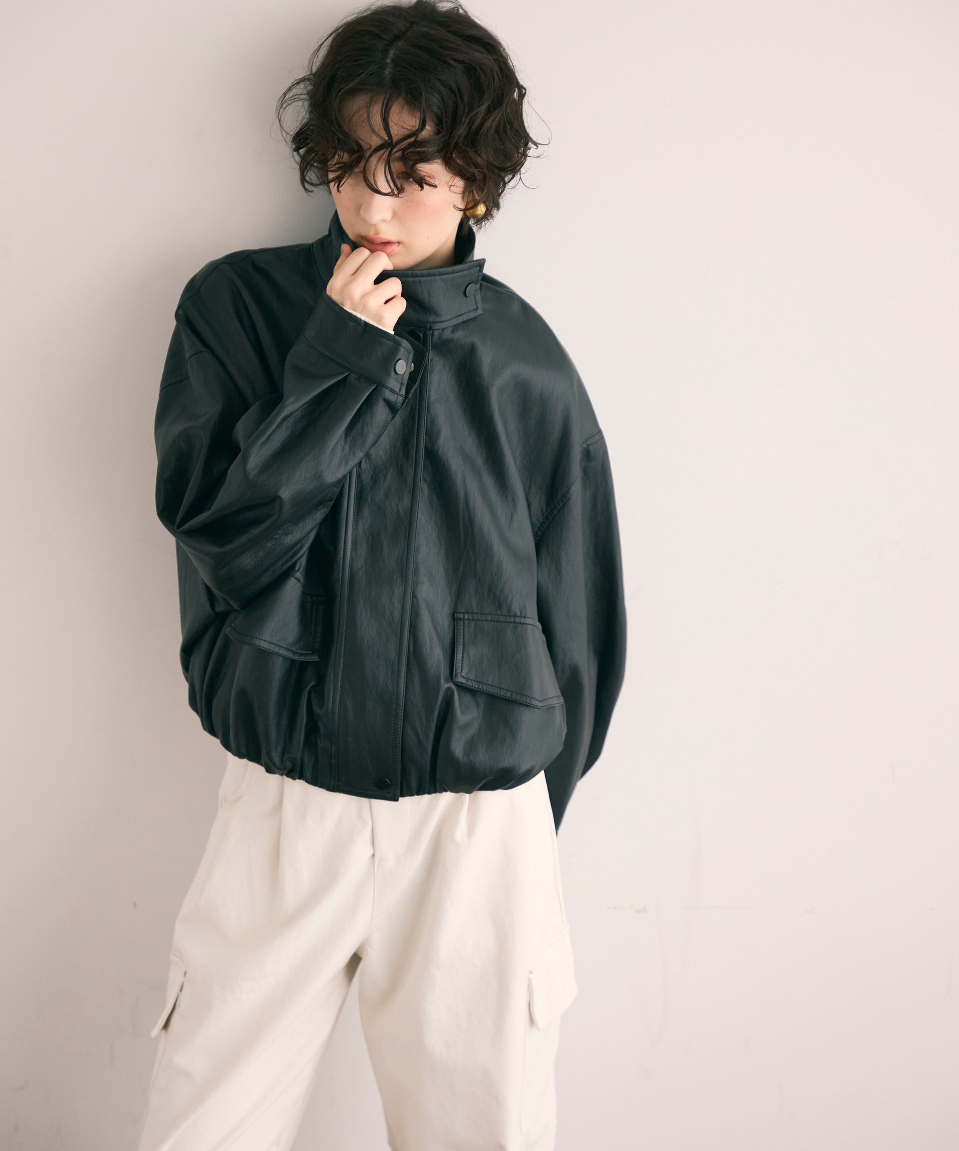 ソフトヴィーガンレザーバルーンブルゾン