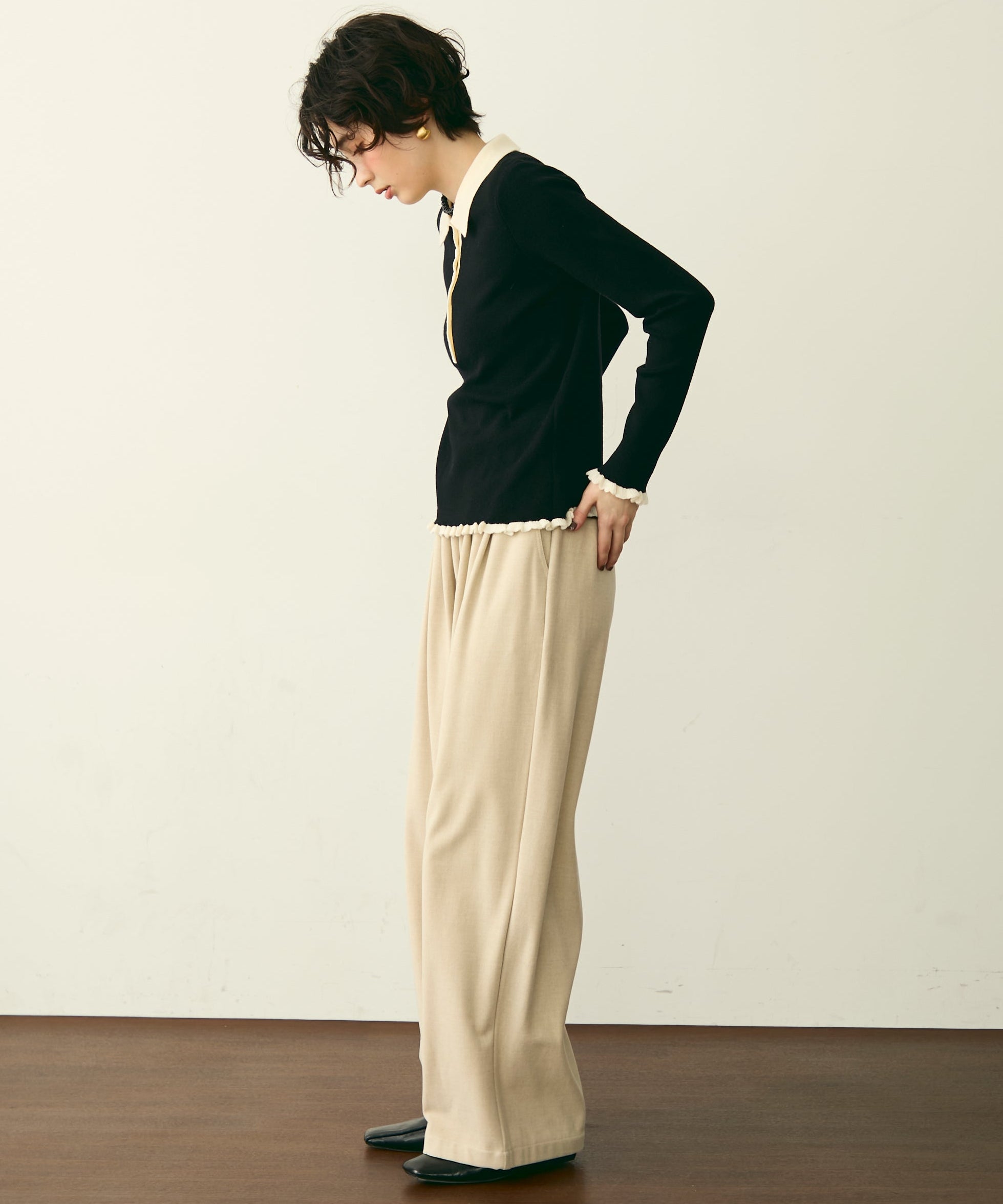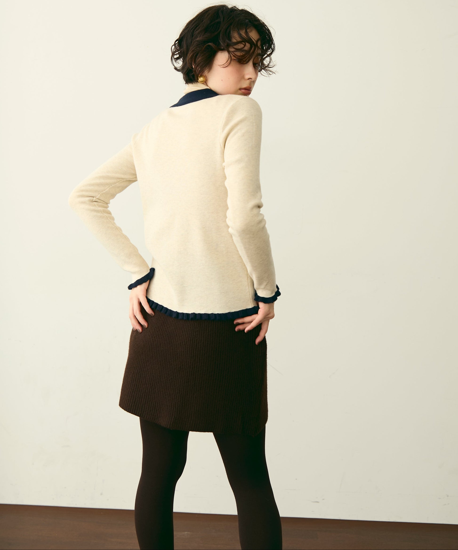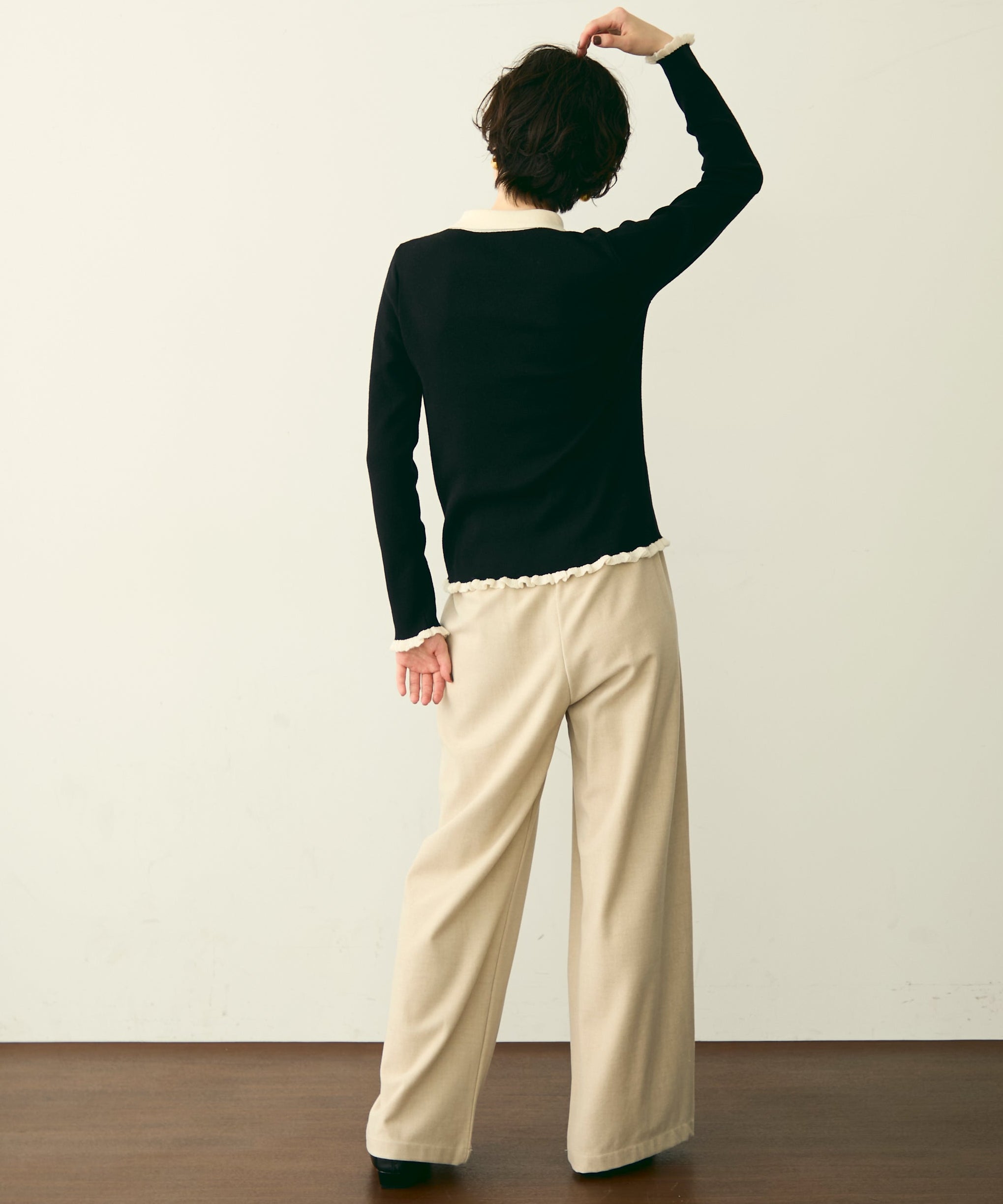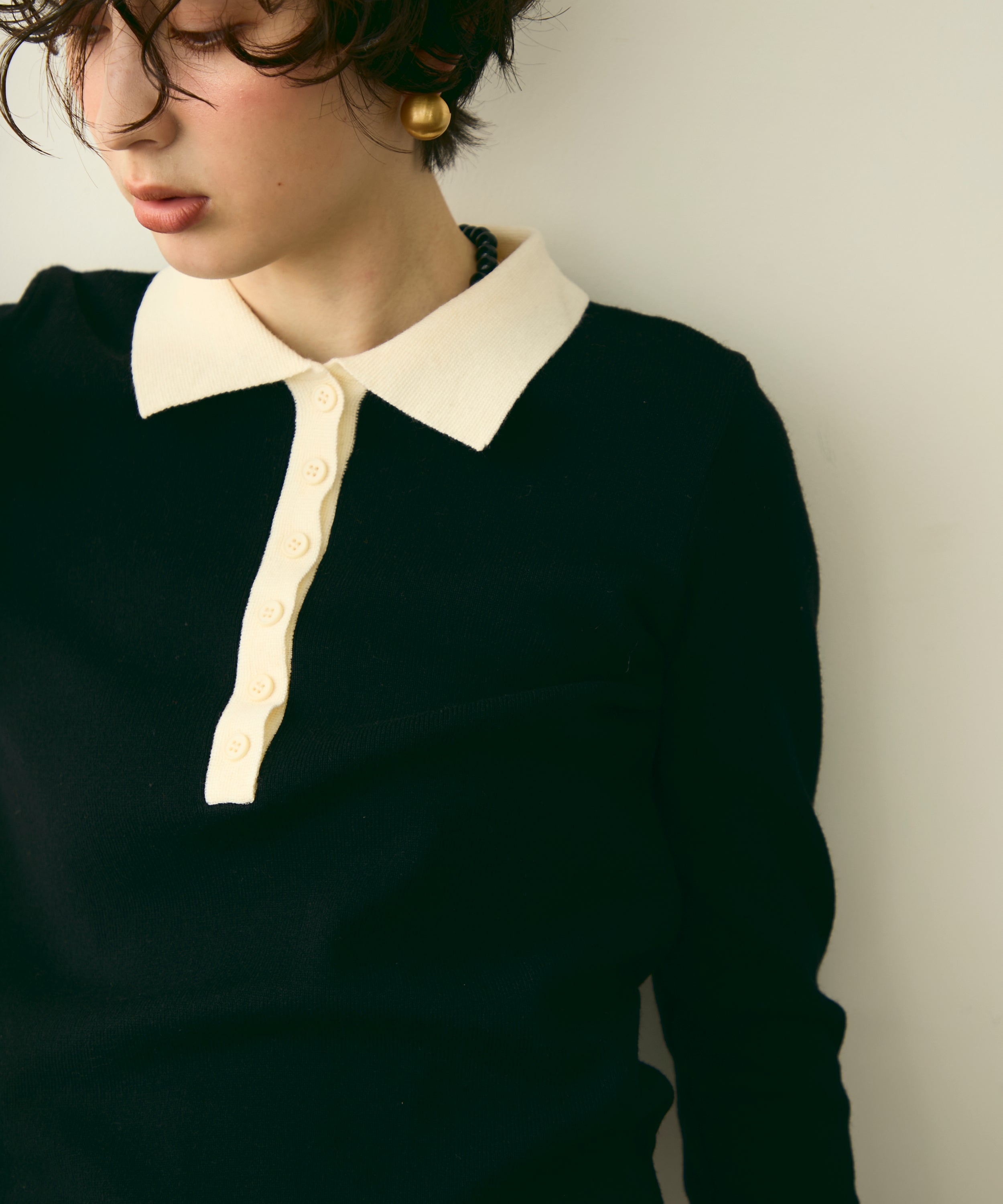 バイカラーポロ襟フリルヘムニットプルオーバー