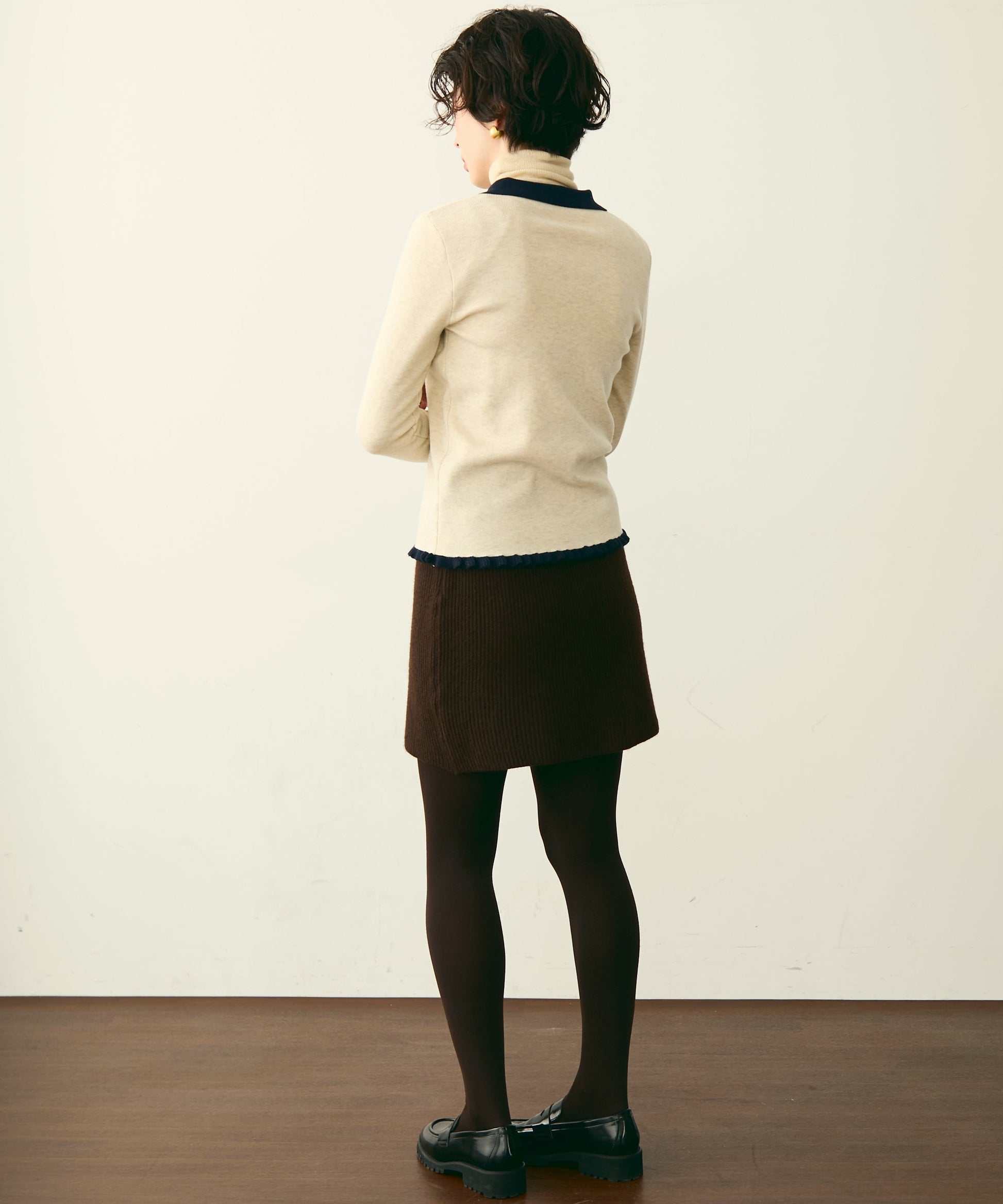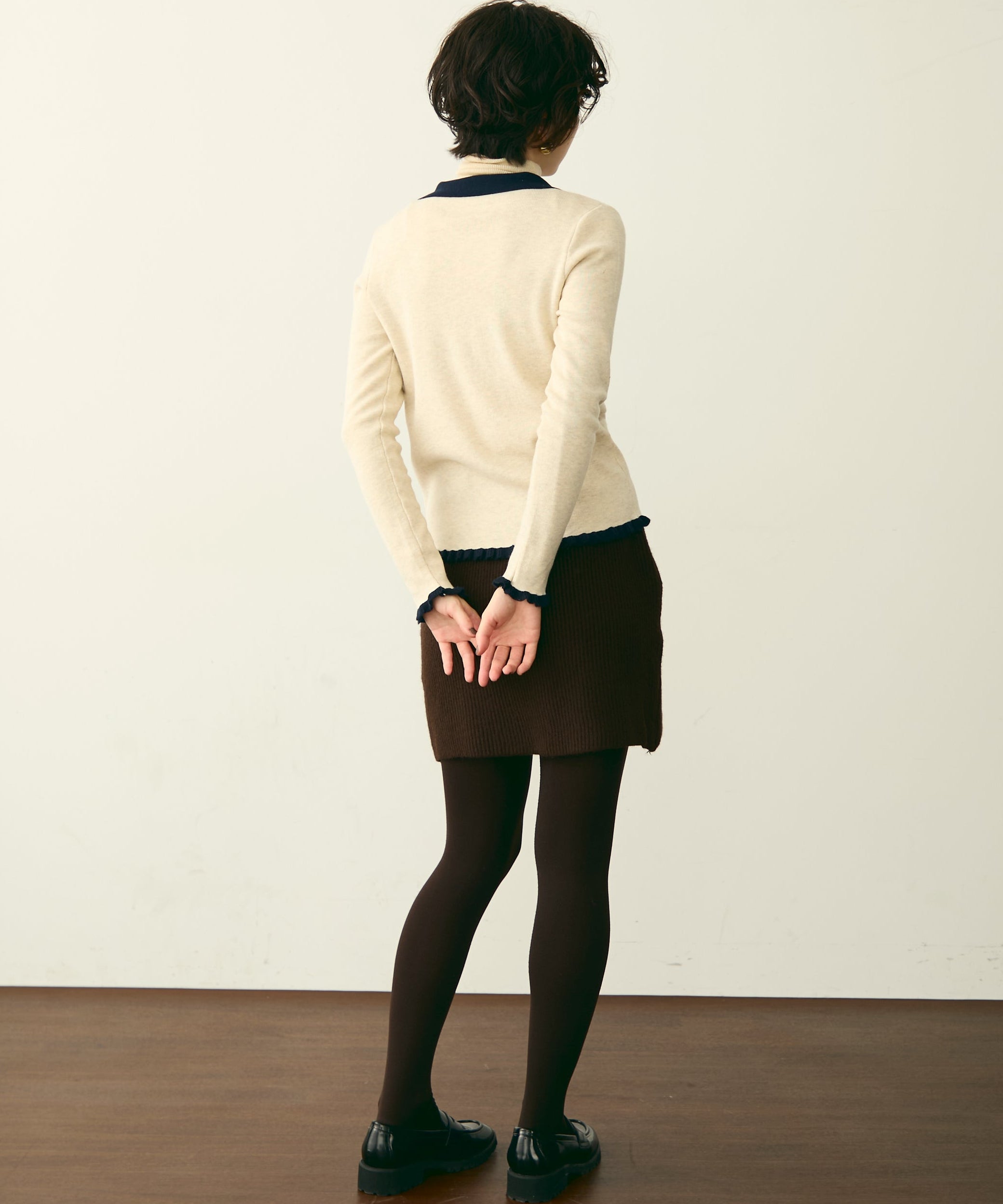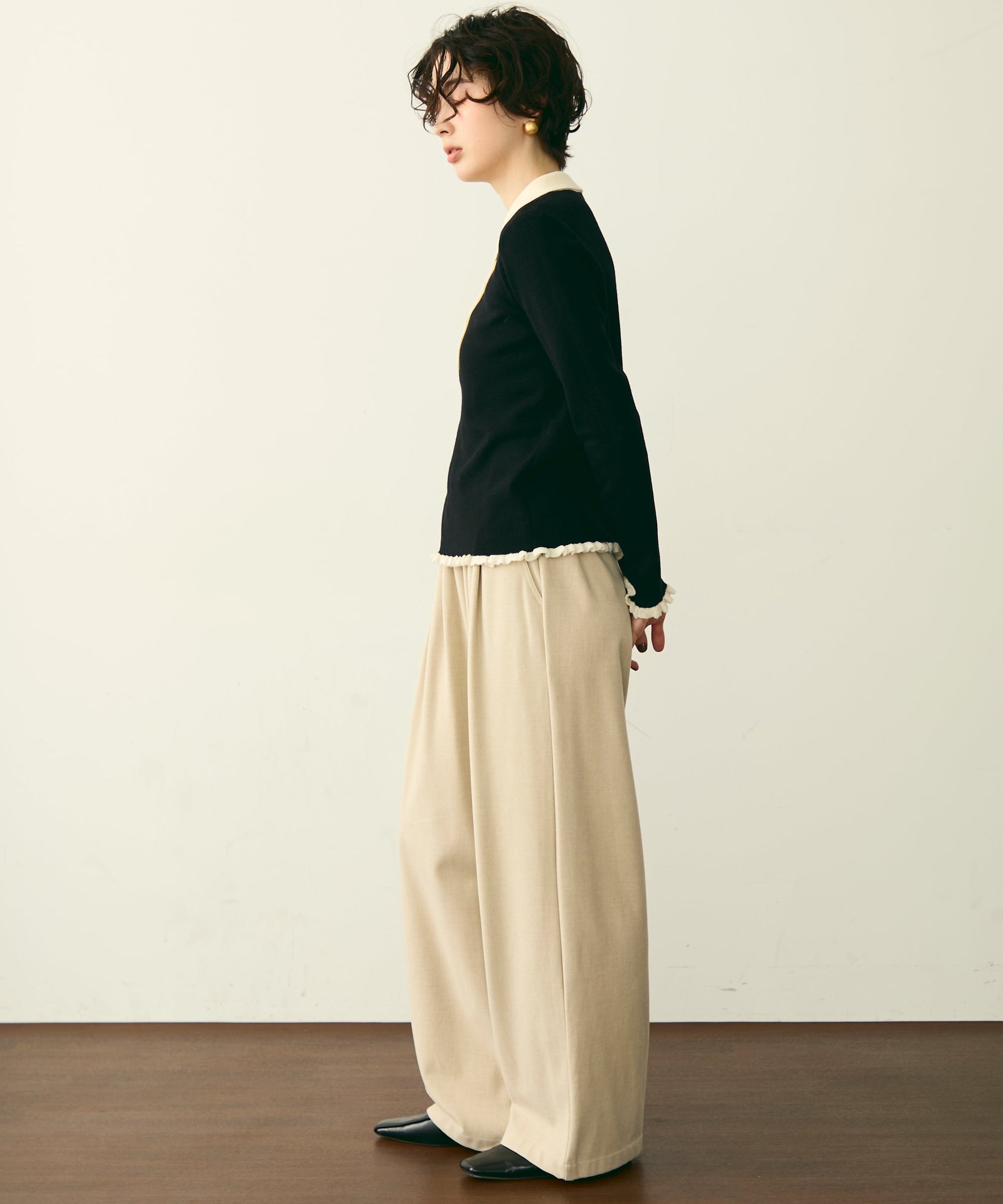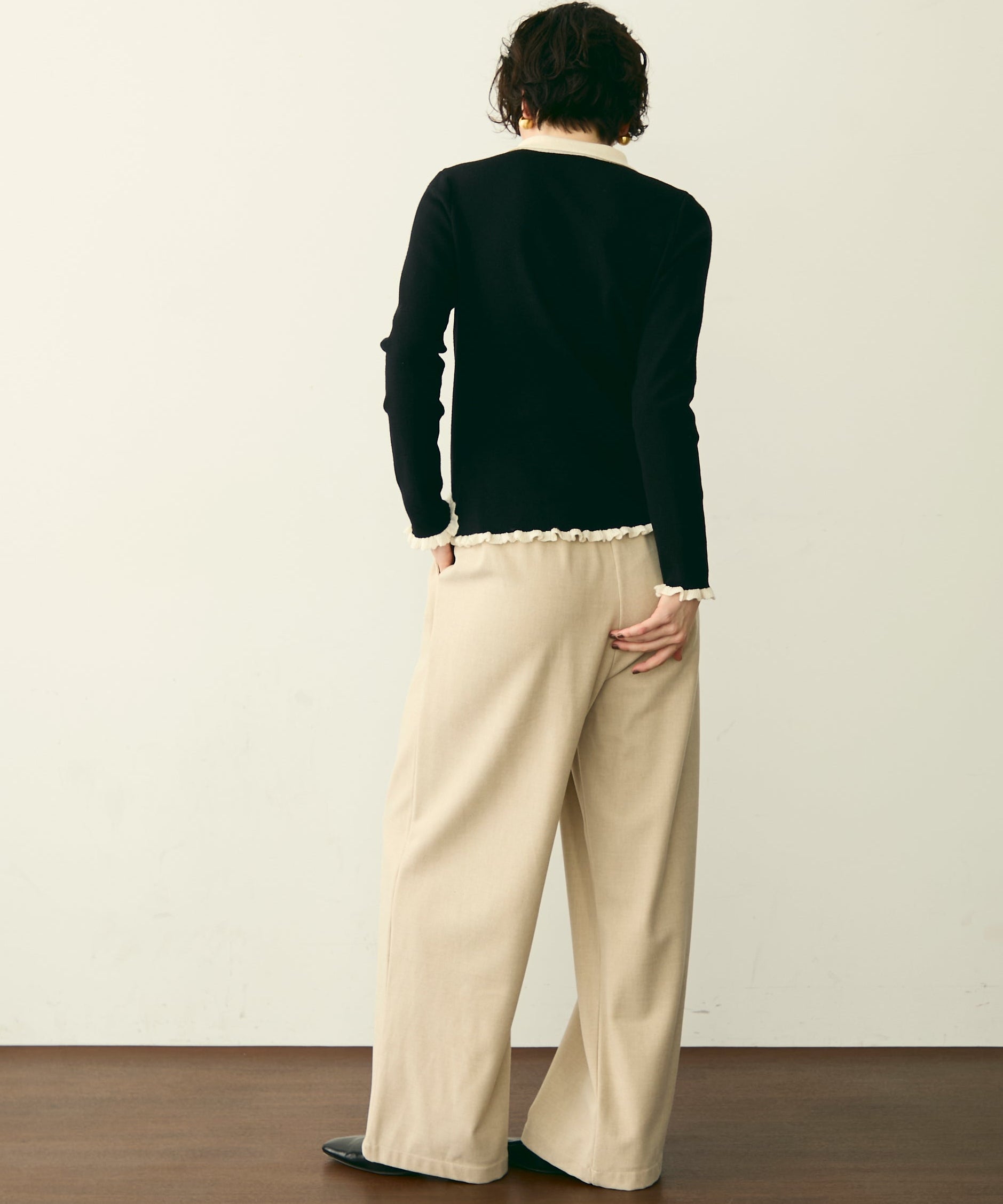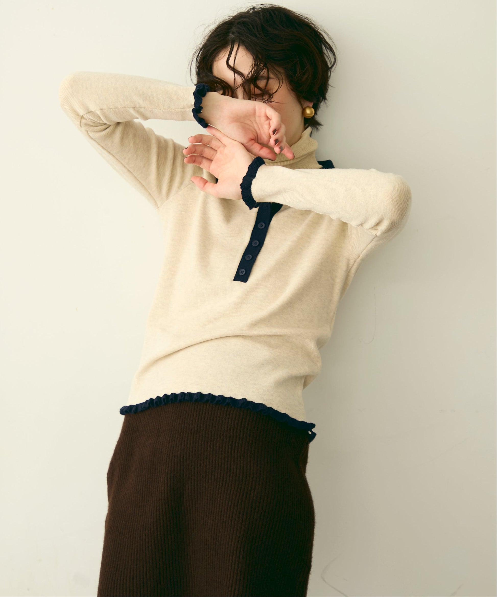 バイカラーポロ襟フリルヘムニットプルオーバー