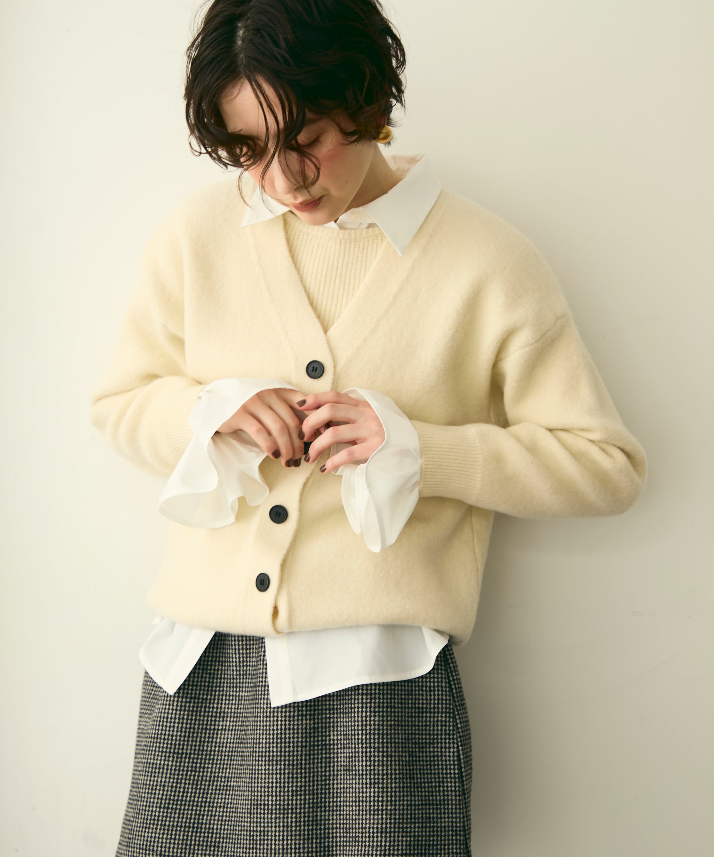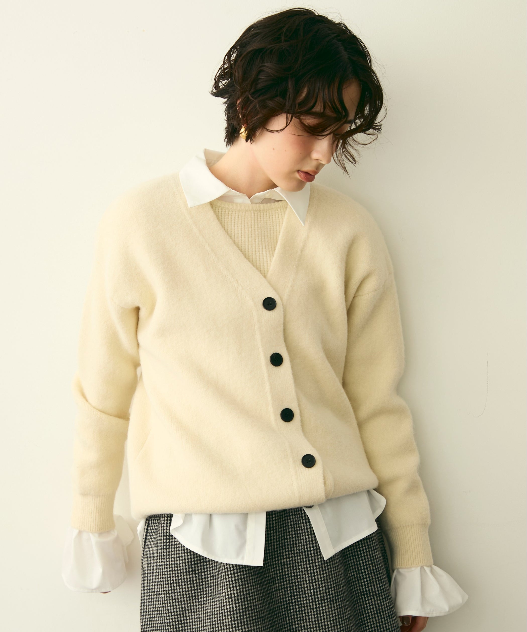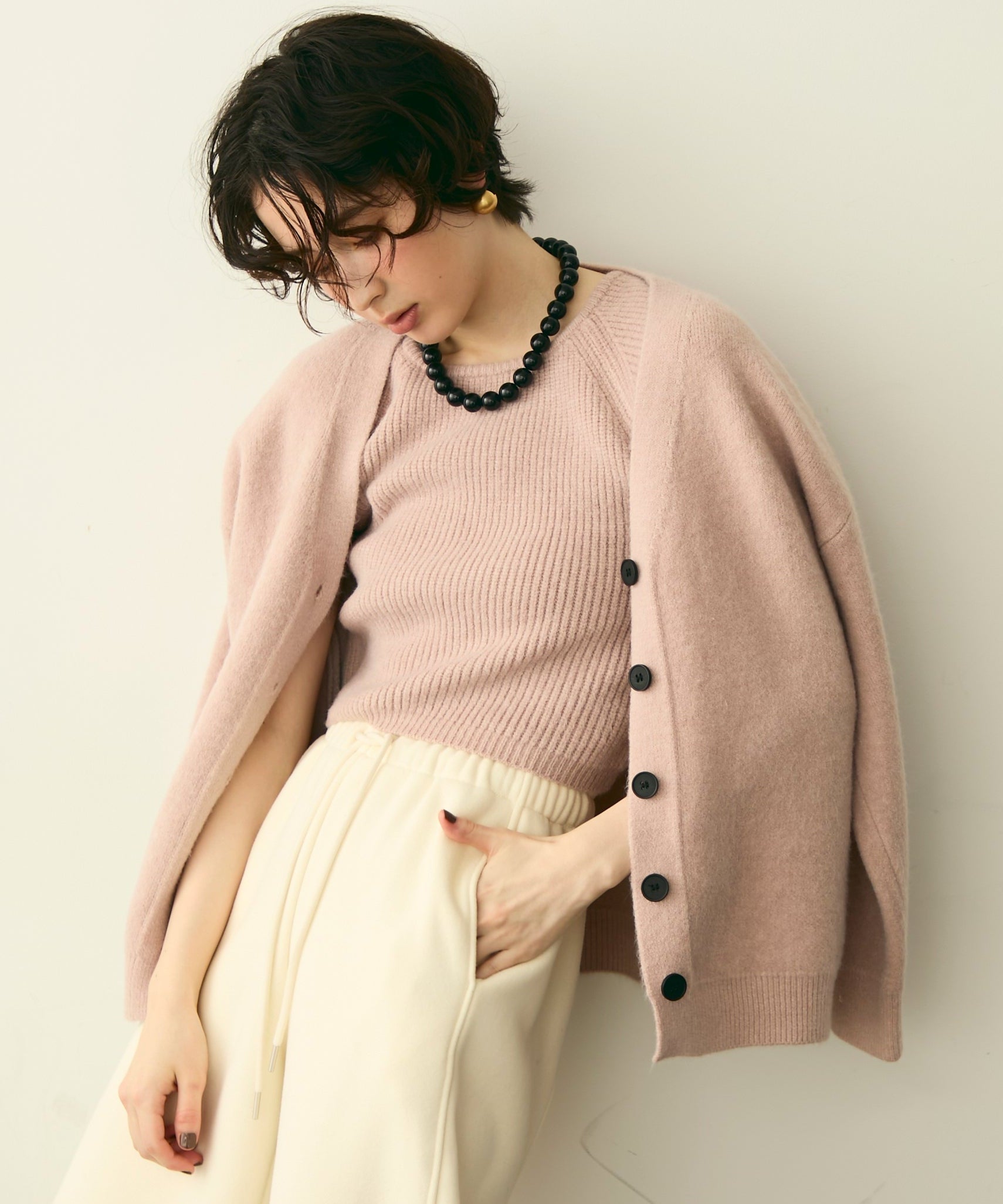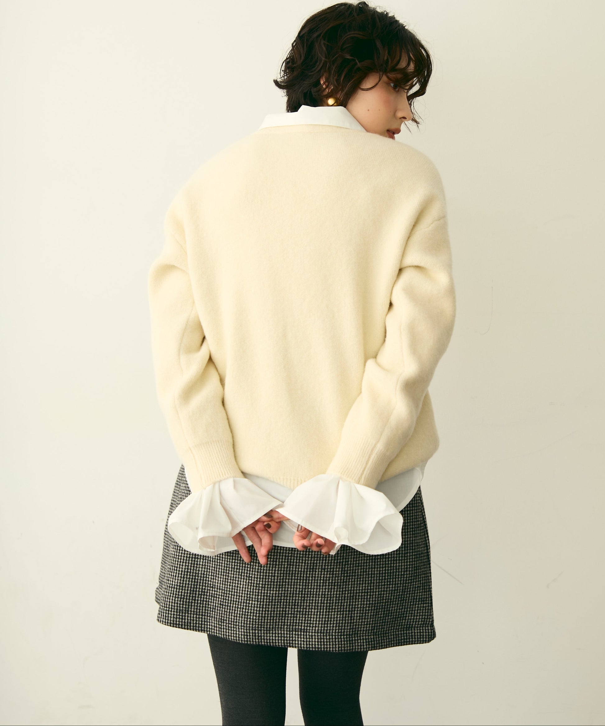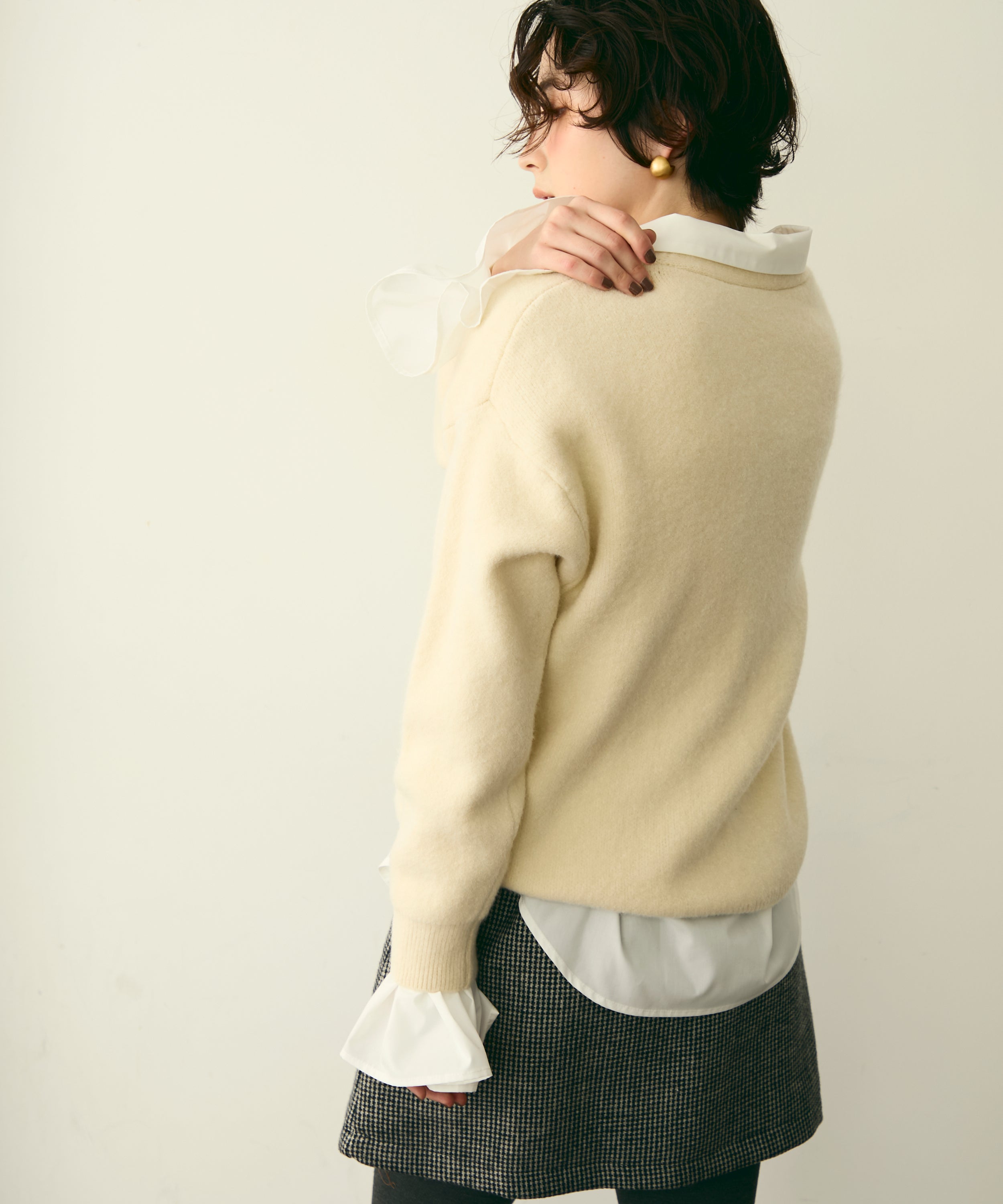 フレンチテイスト漂う上品なニットプルオーバー!同素材のカーディガンを羽織れば、洗練されたレイヤードスタイルに!