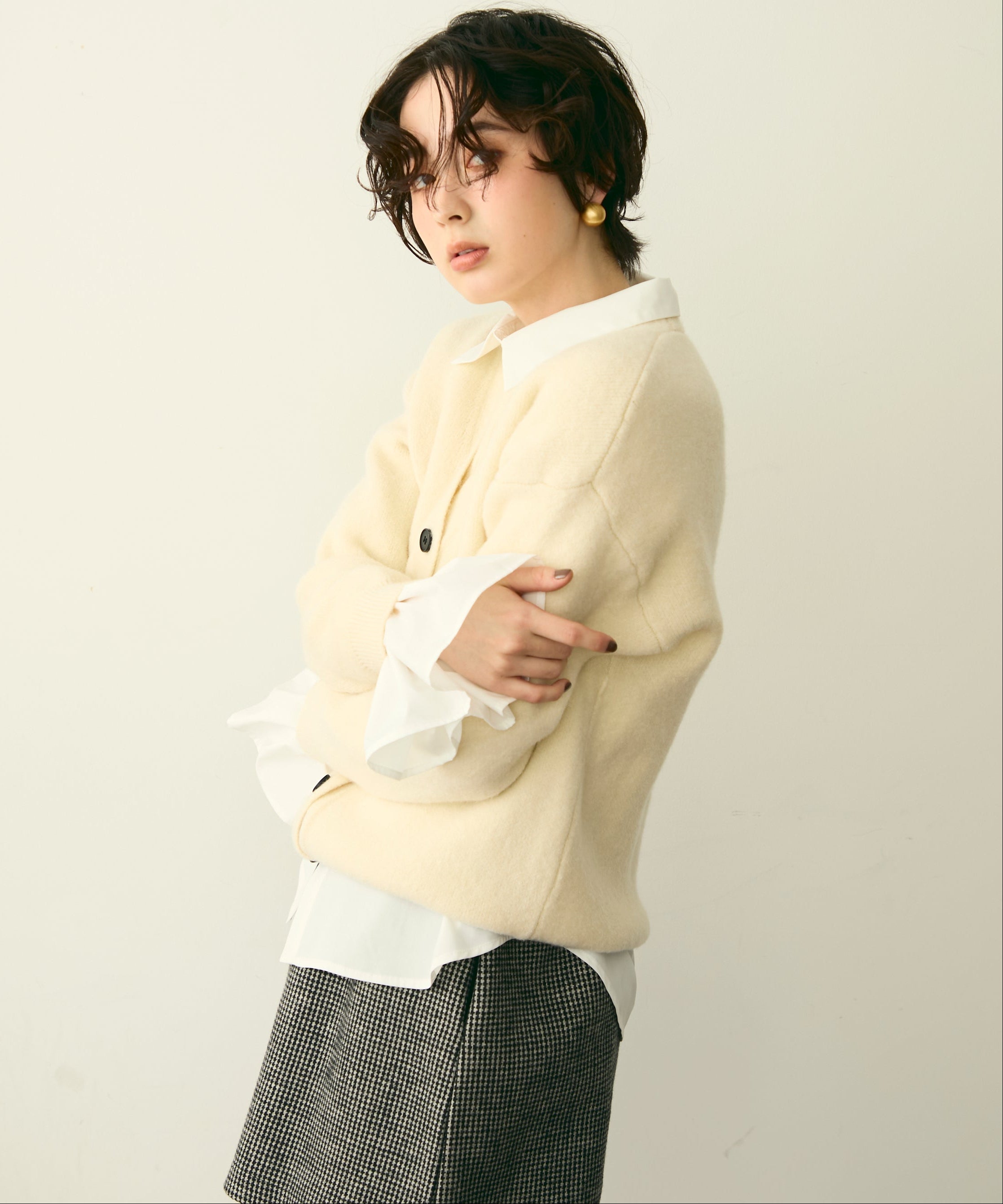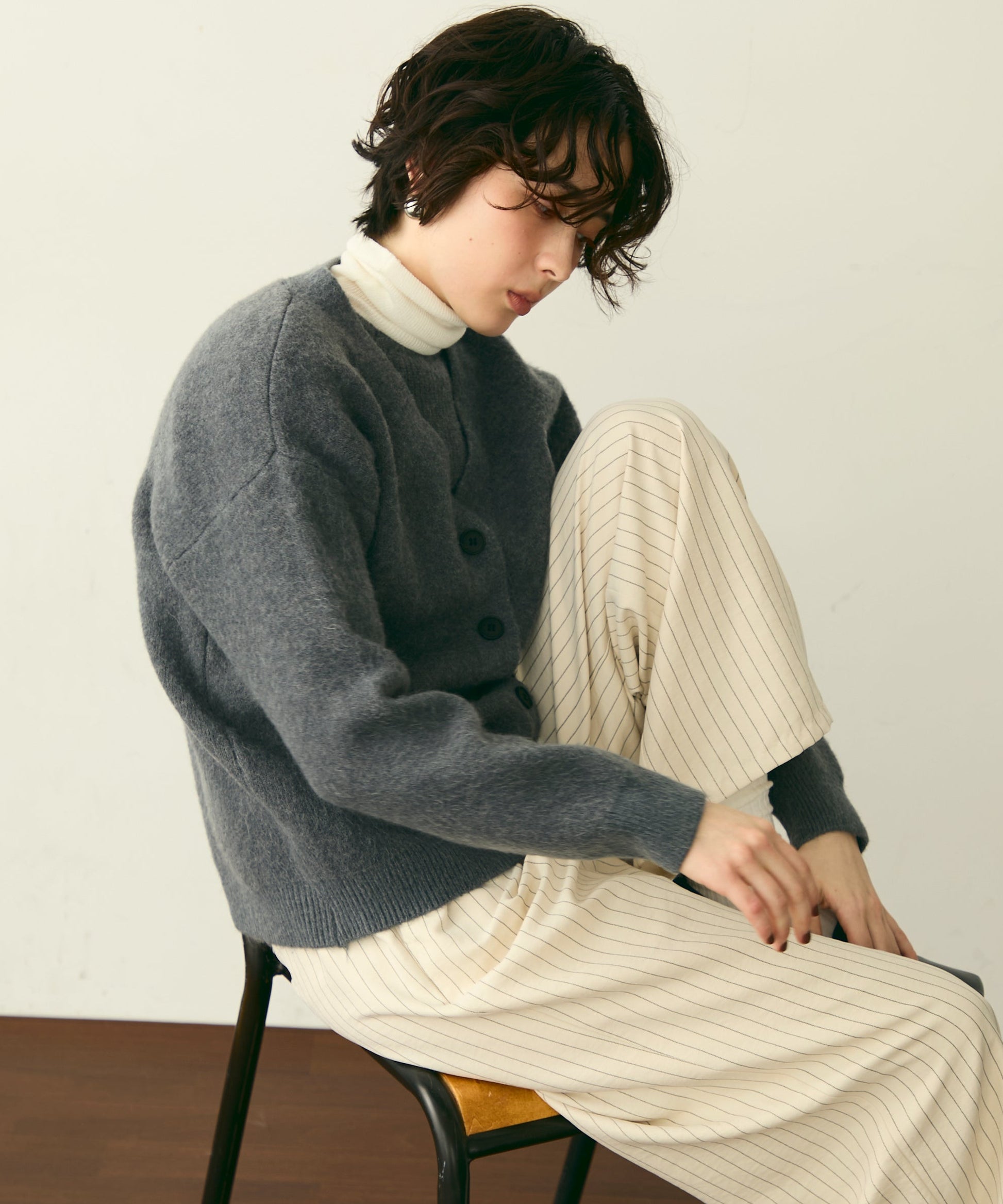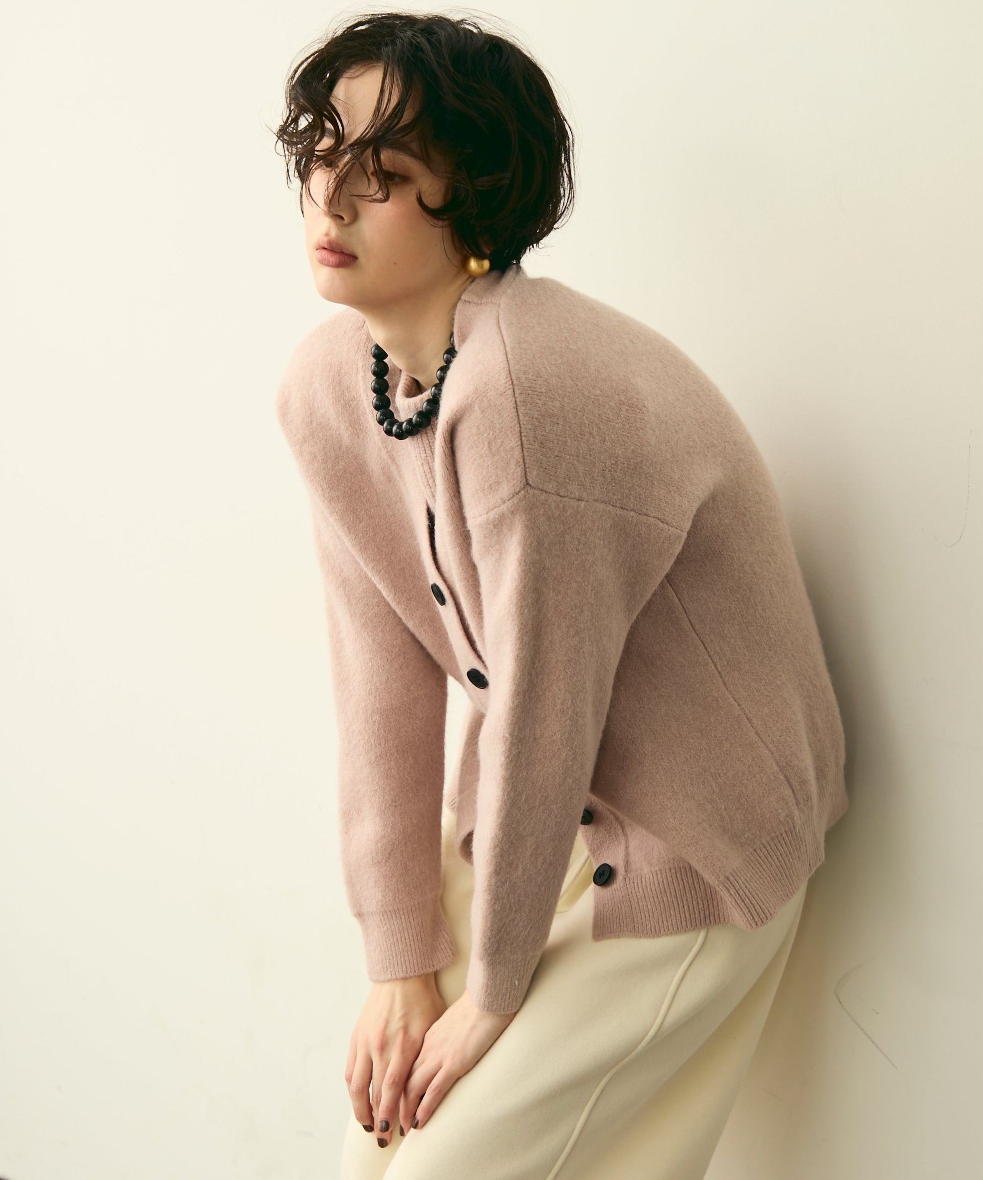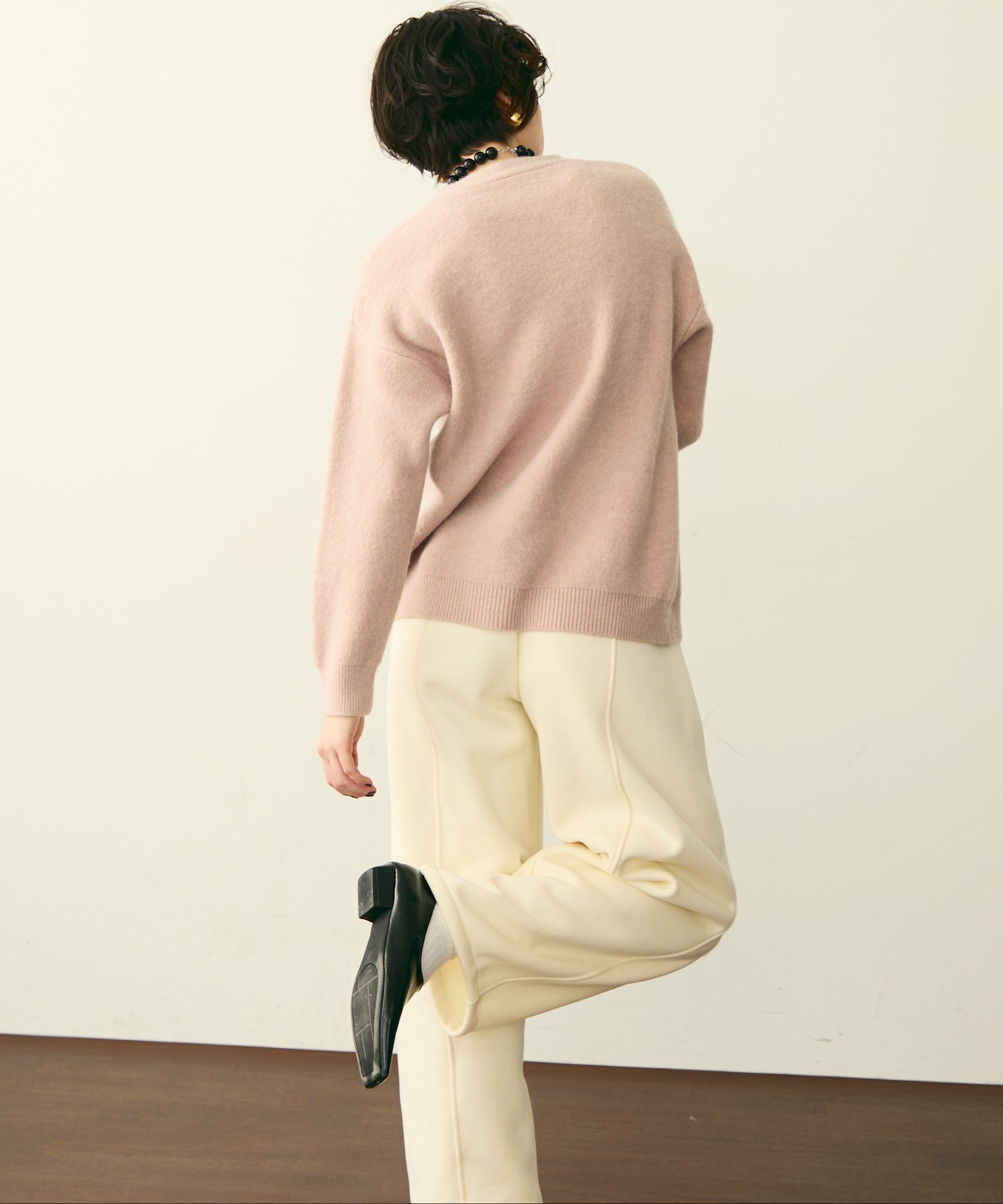 フレンチテイスト漂う上品なニットプルオーバー!同素材のカーディガンを羽織れば、洗練されたレイヤードスタイルに!