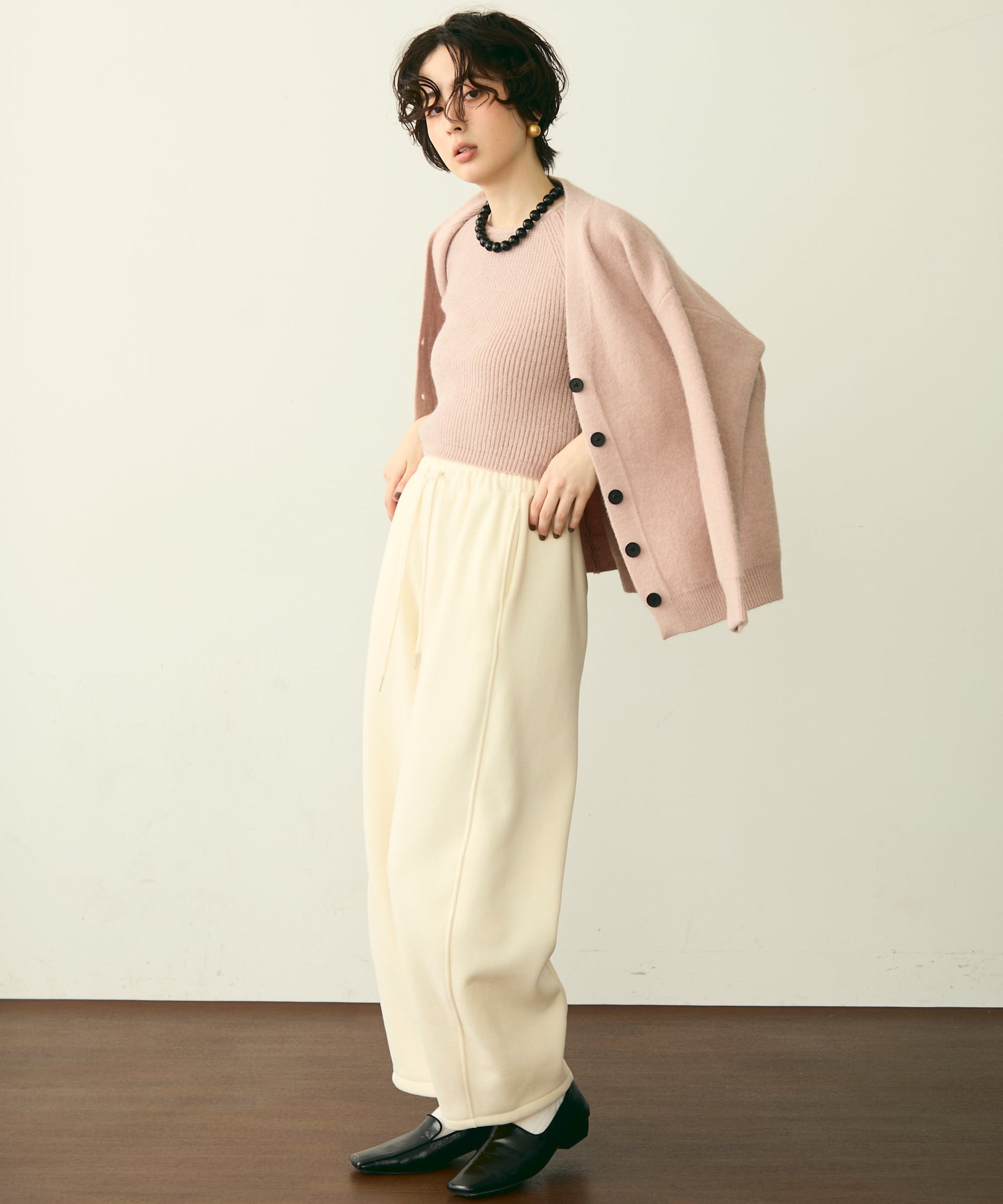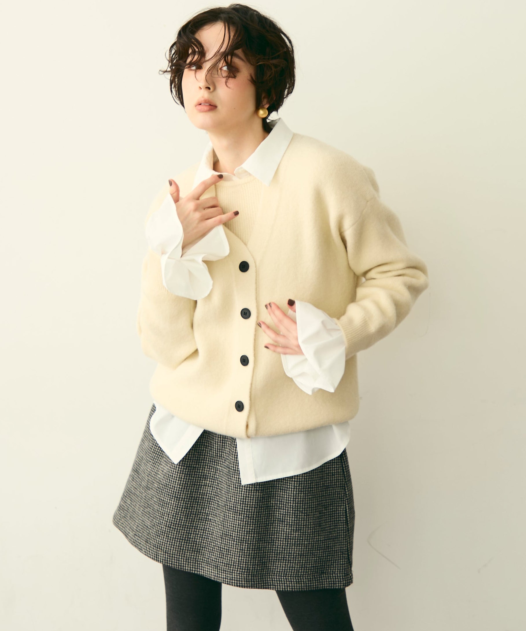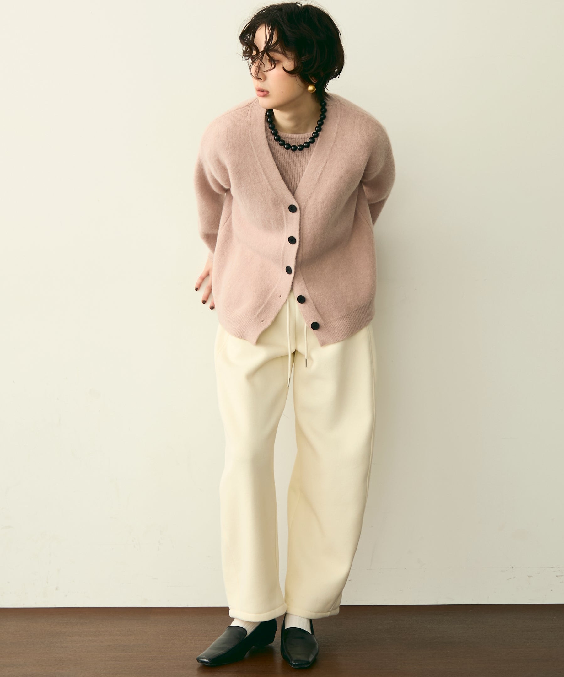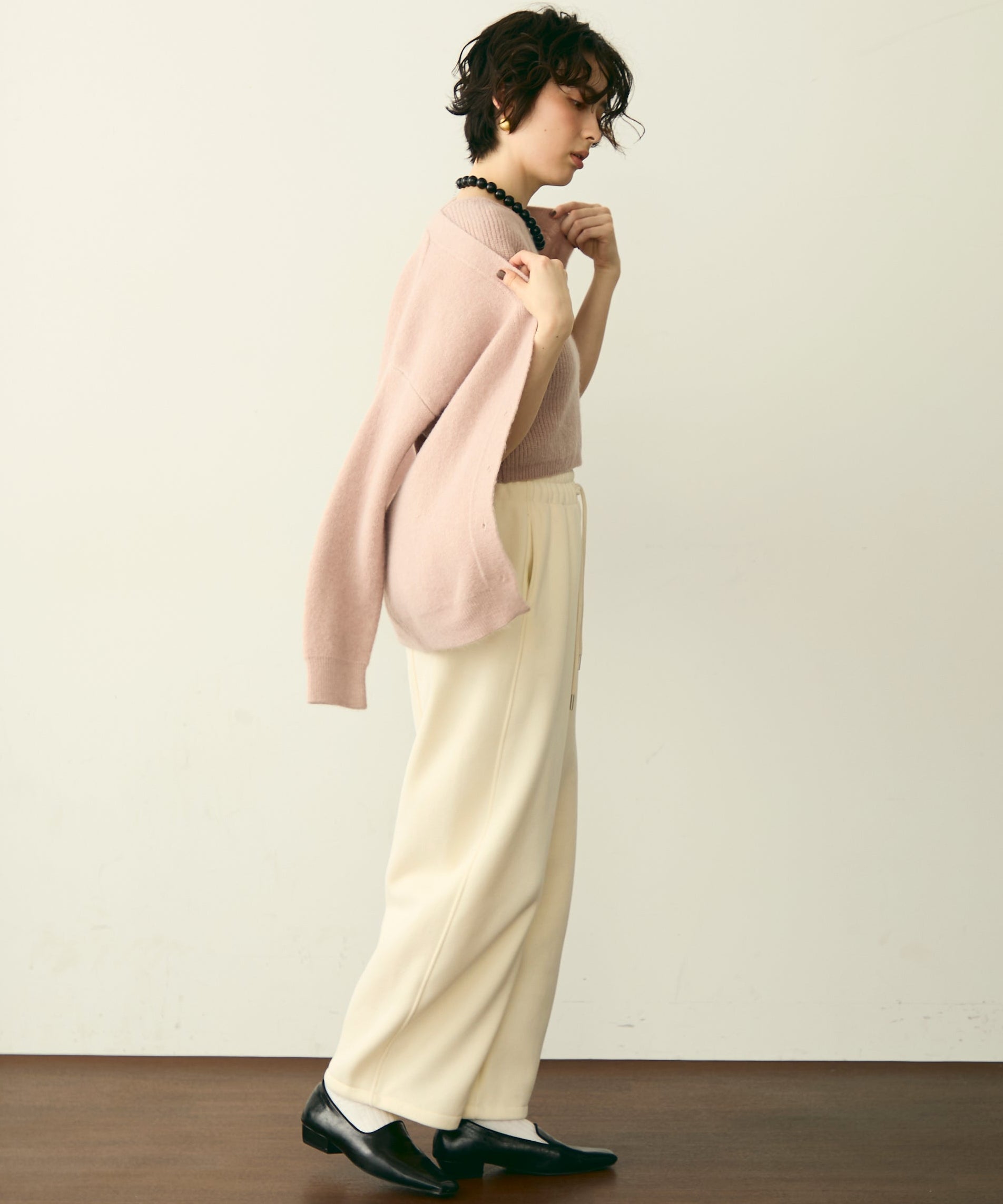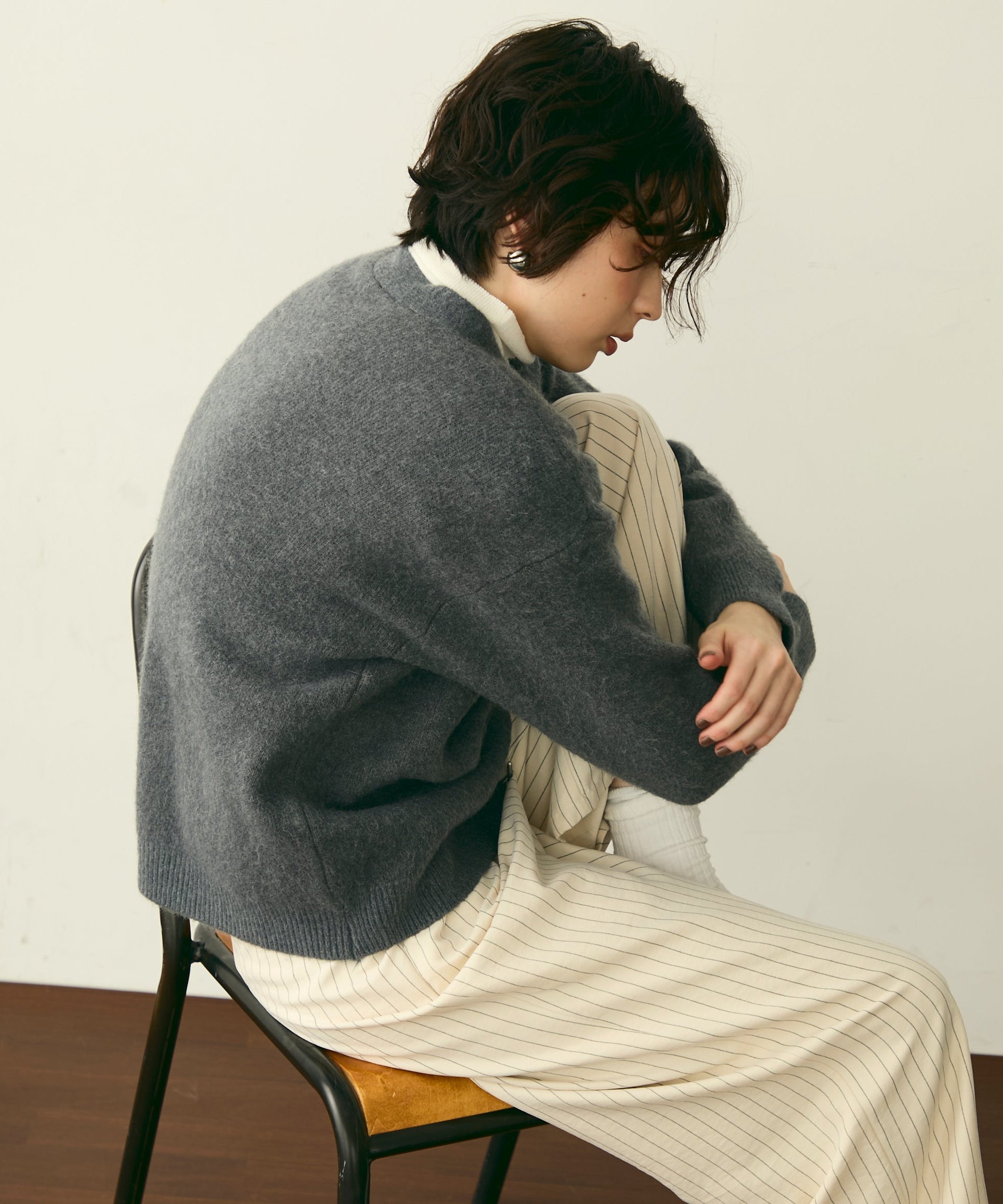 フレンチテイスト漂う上品なニットプルオーバー!同素材のカーディガンを羽織れば、洗練されたレイヤードスタイルに!