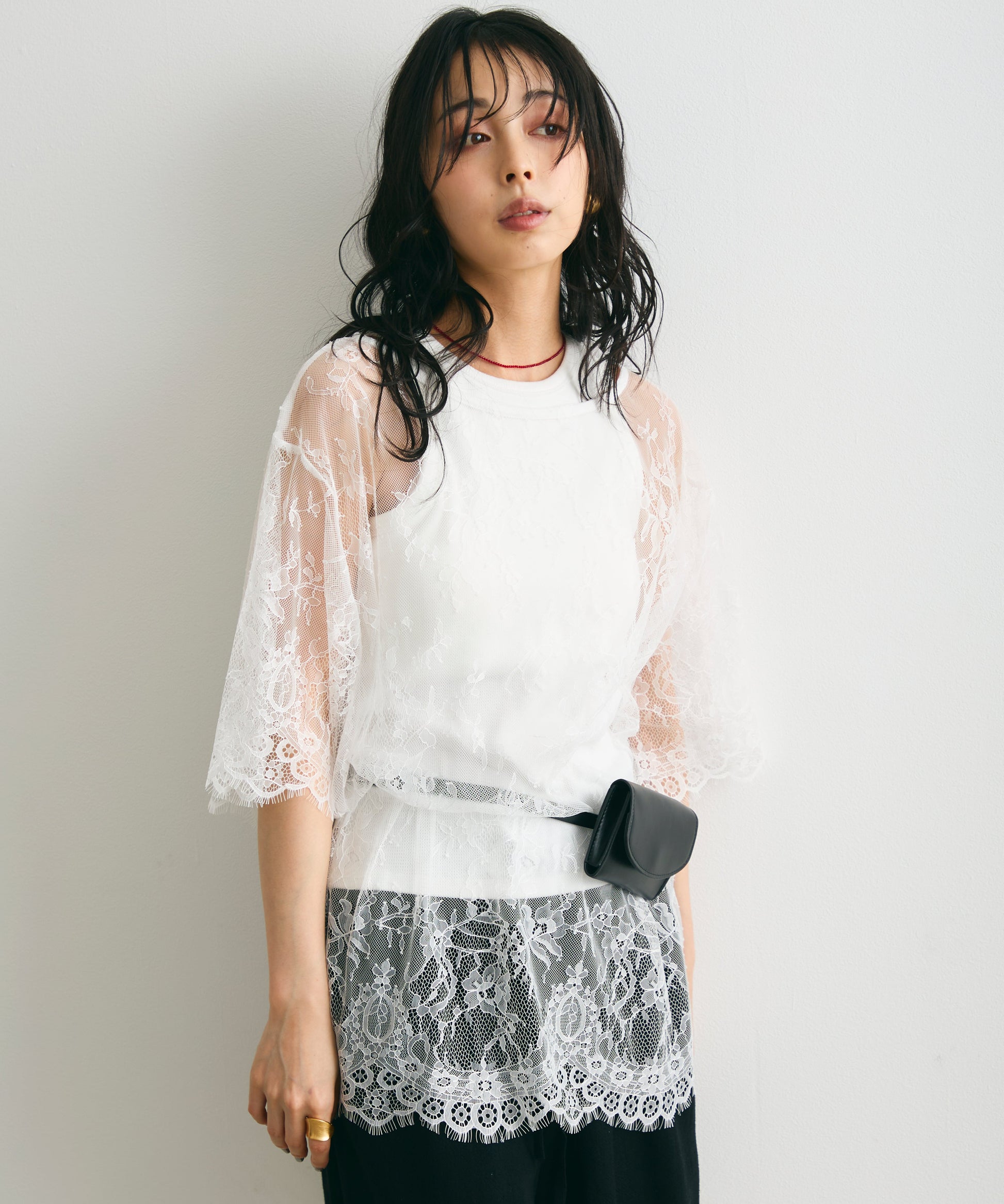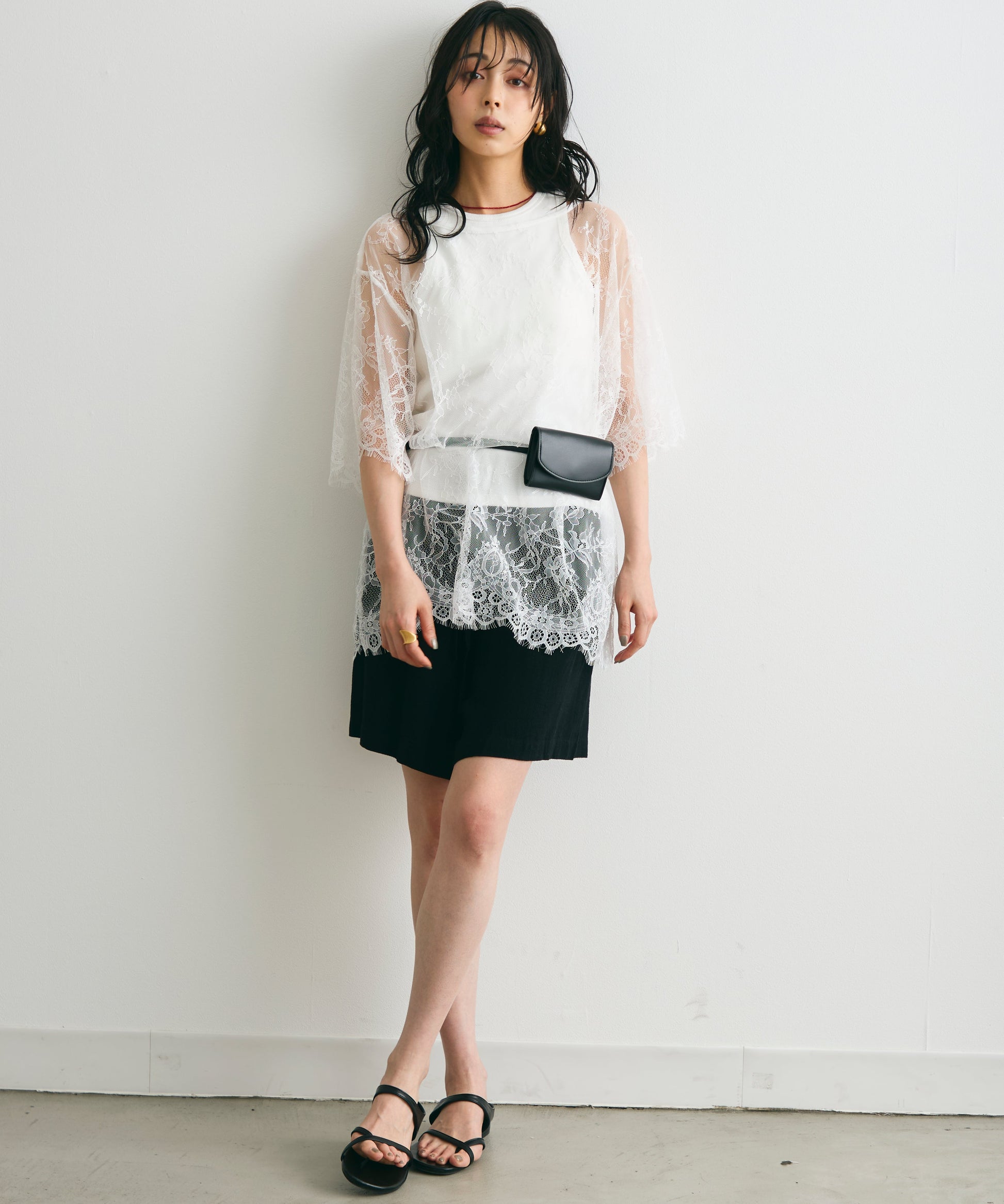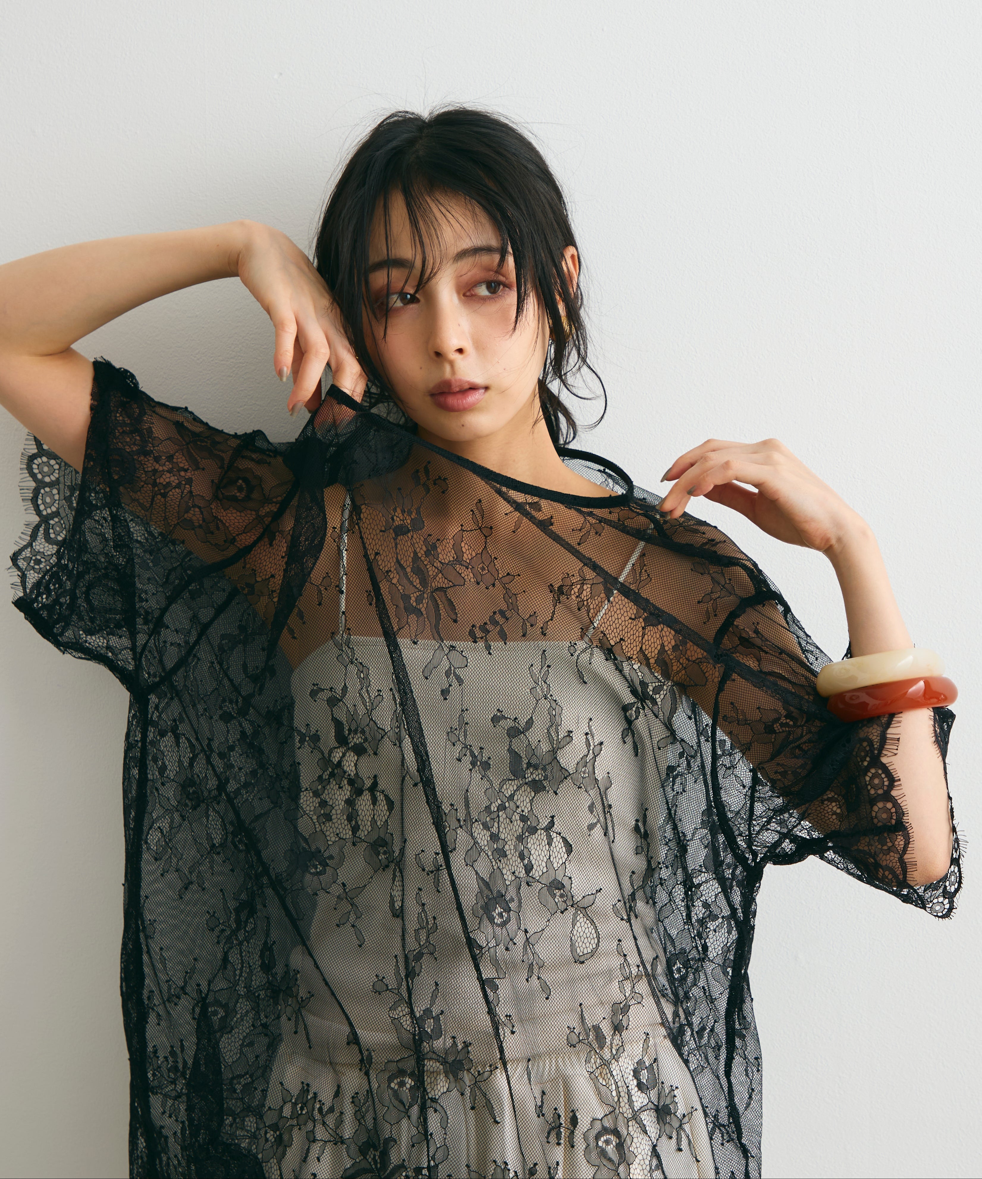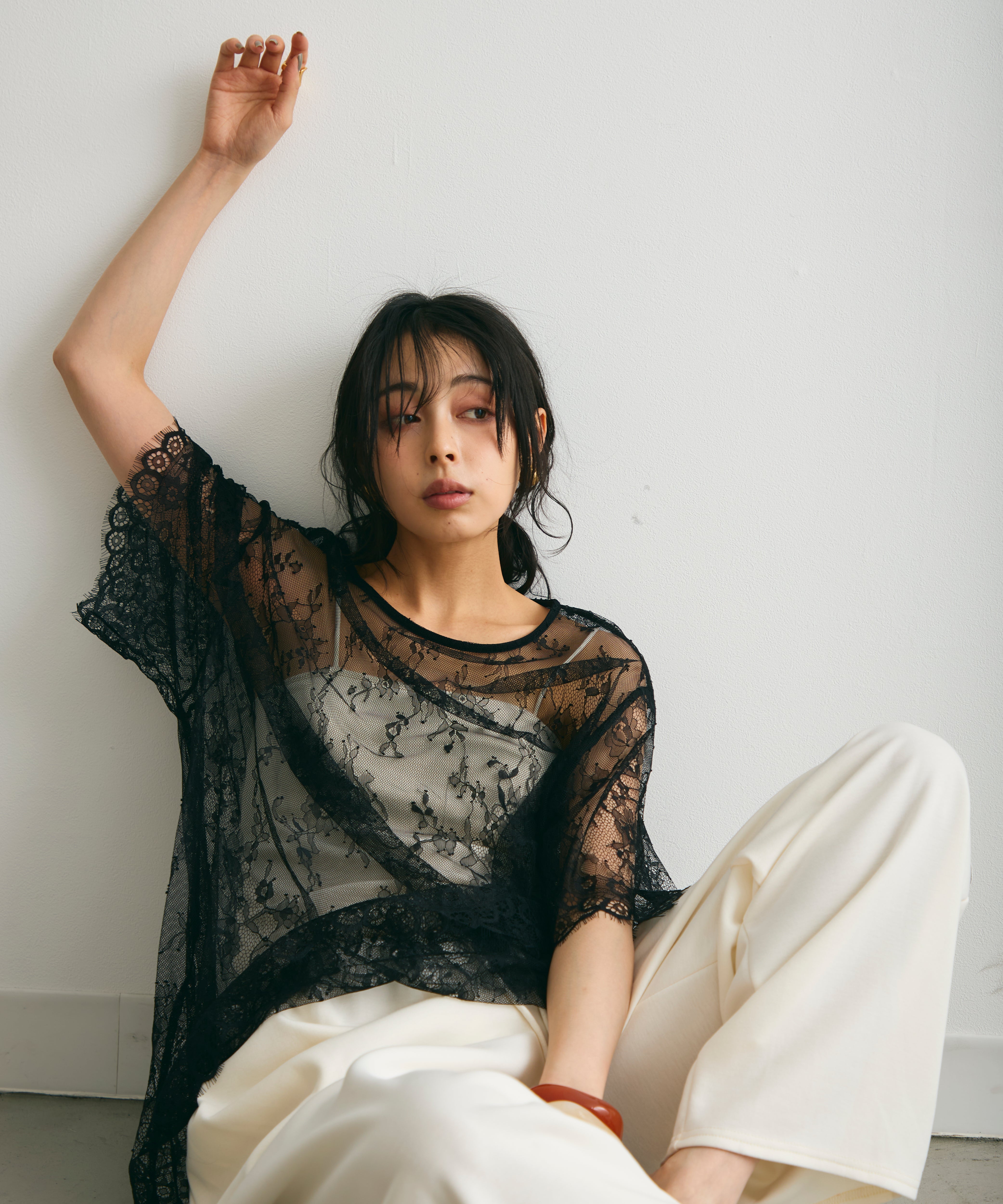 ゆったりとしたシルエットで抜け感がありつつ、レースの透け感が女性らしさをプラス。??