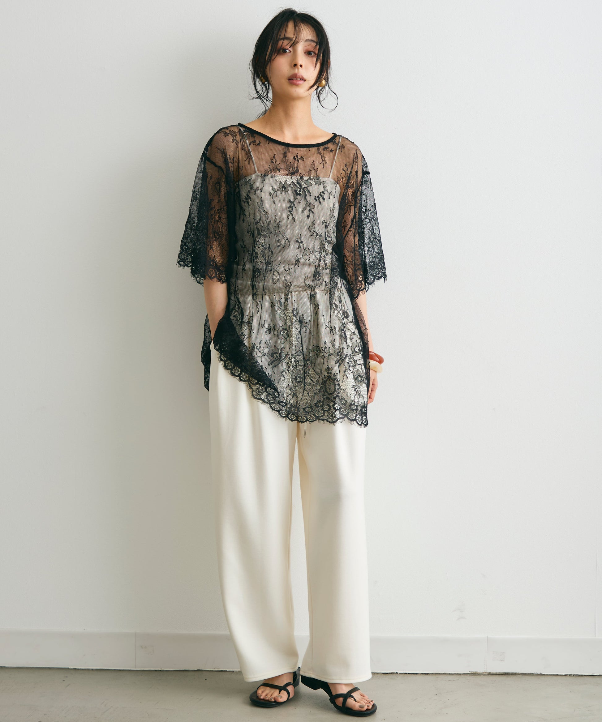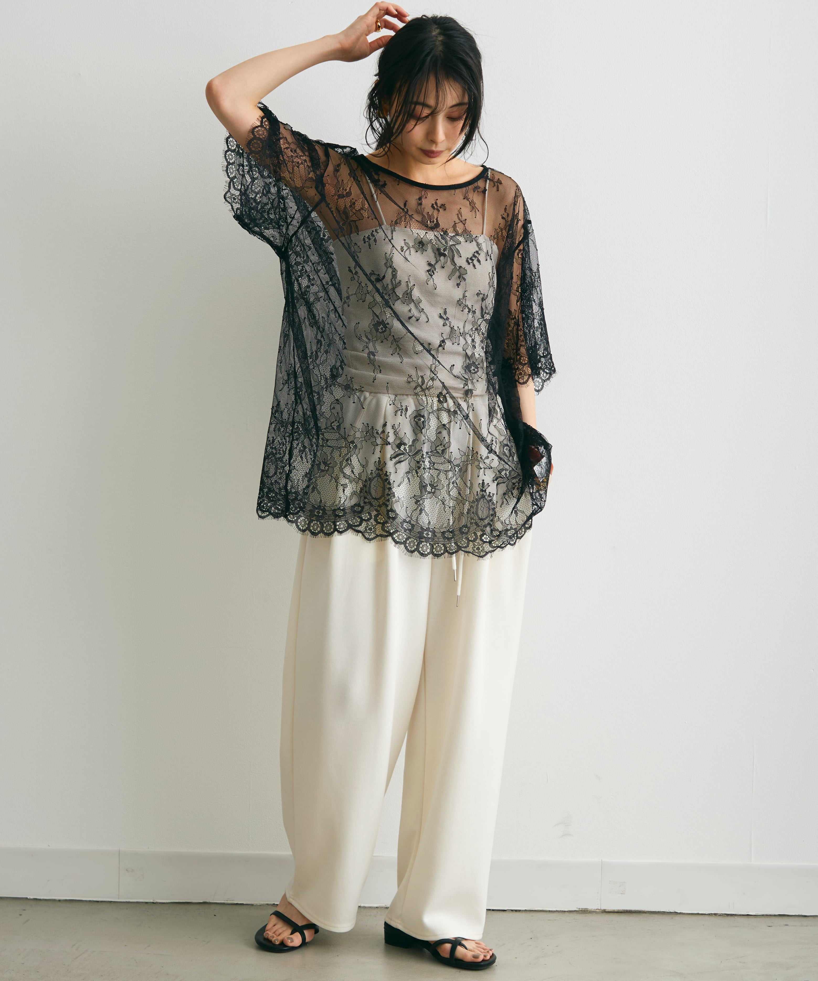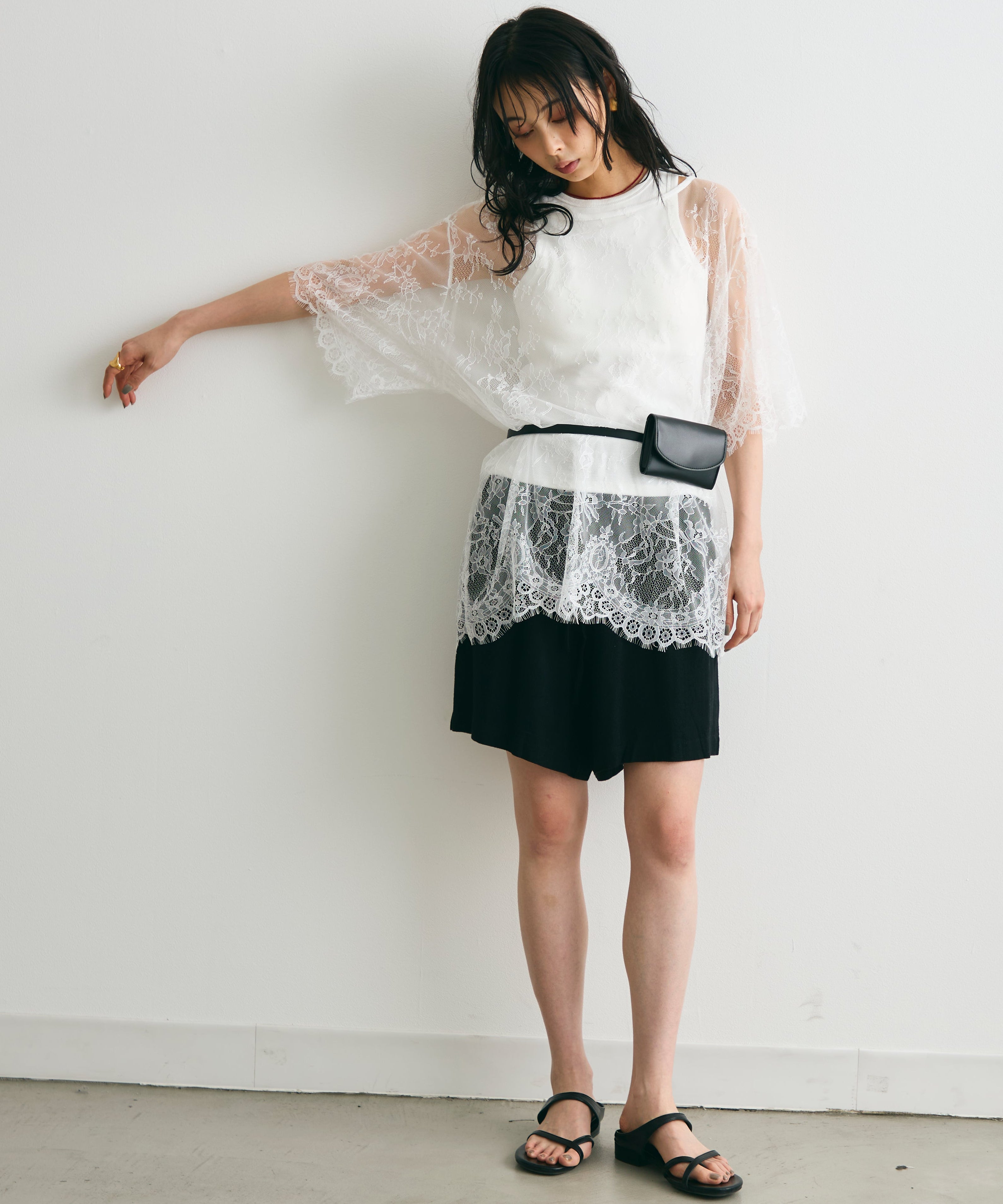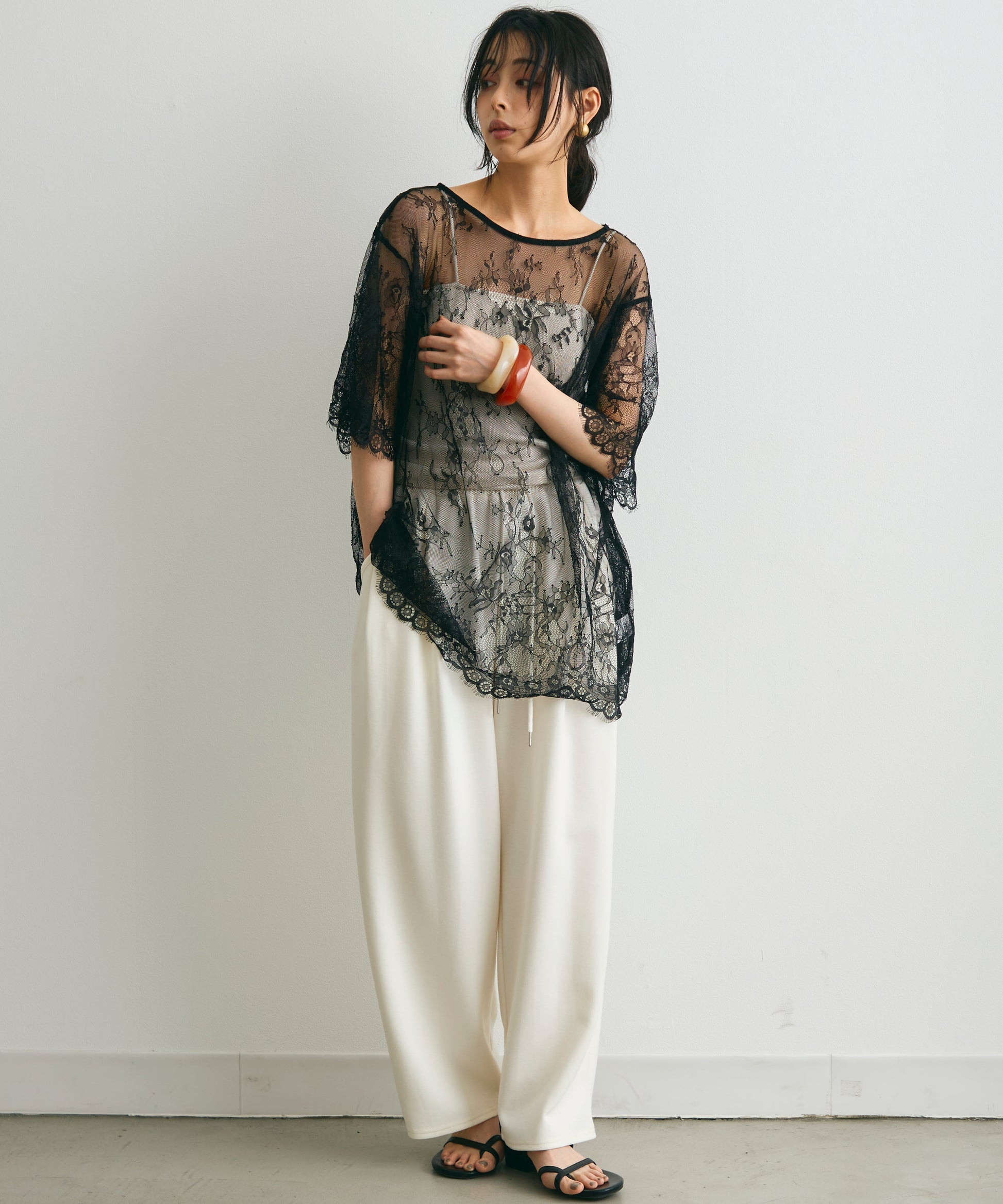 ゆったりとしたシルエットで抜け感がありつつ、レースの透け感が女性らしさをプラス。??