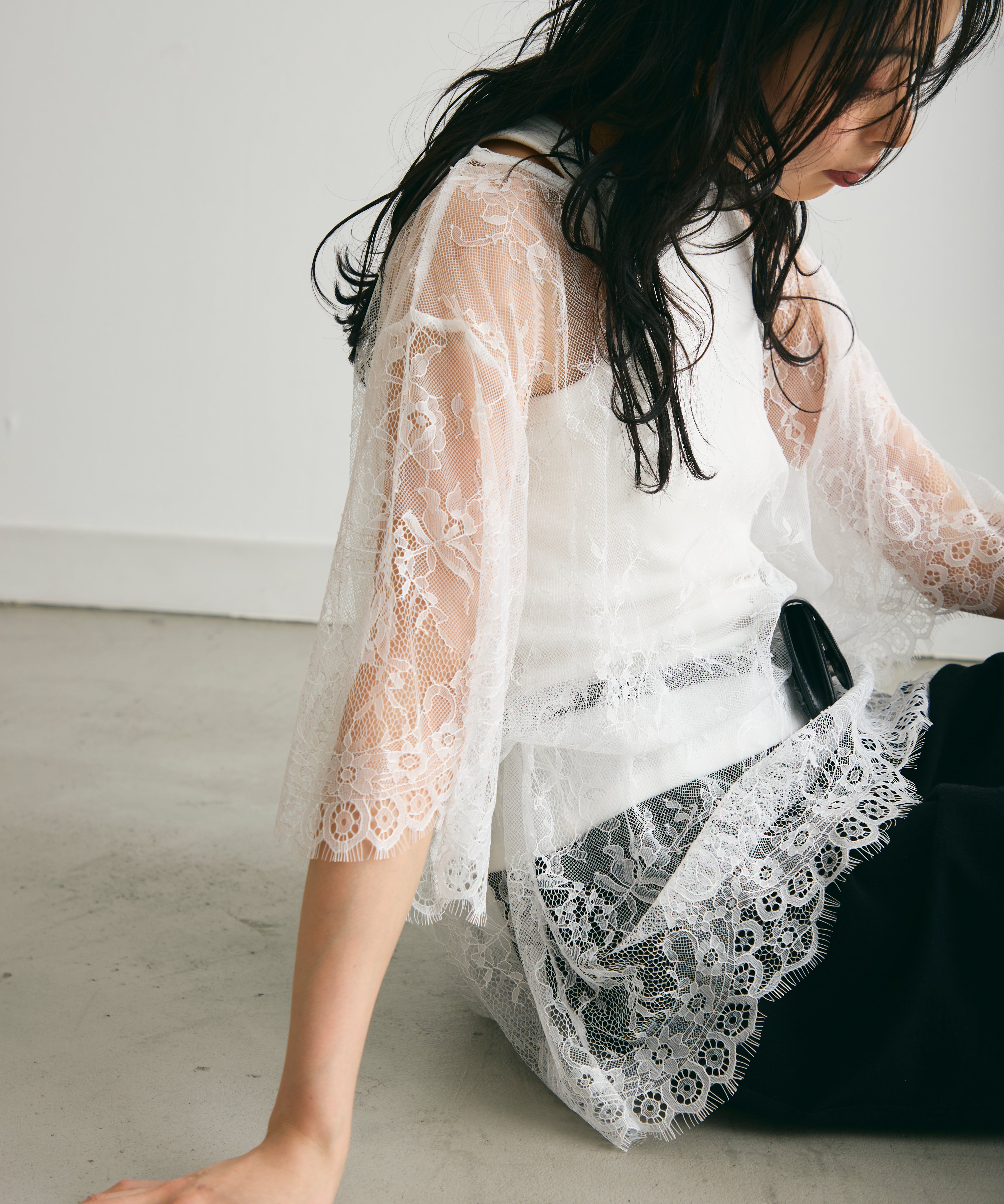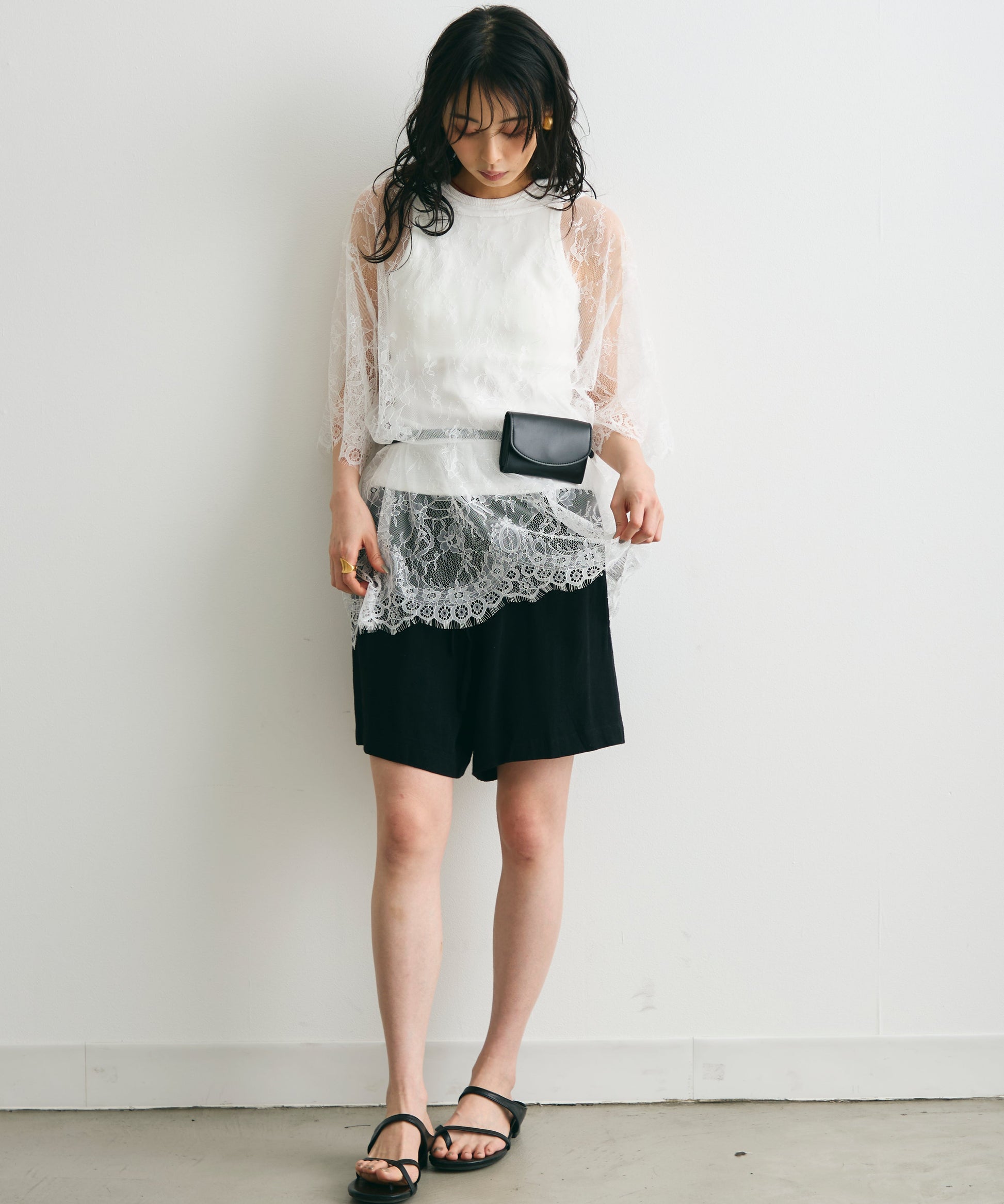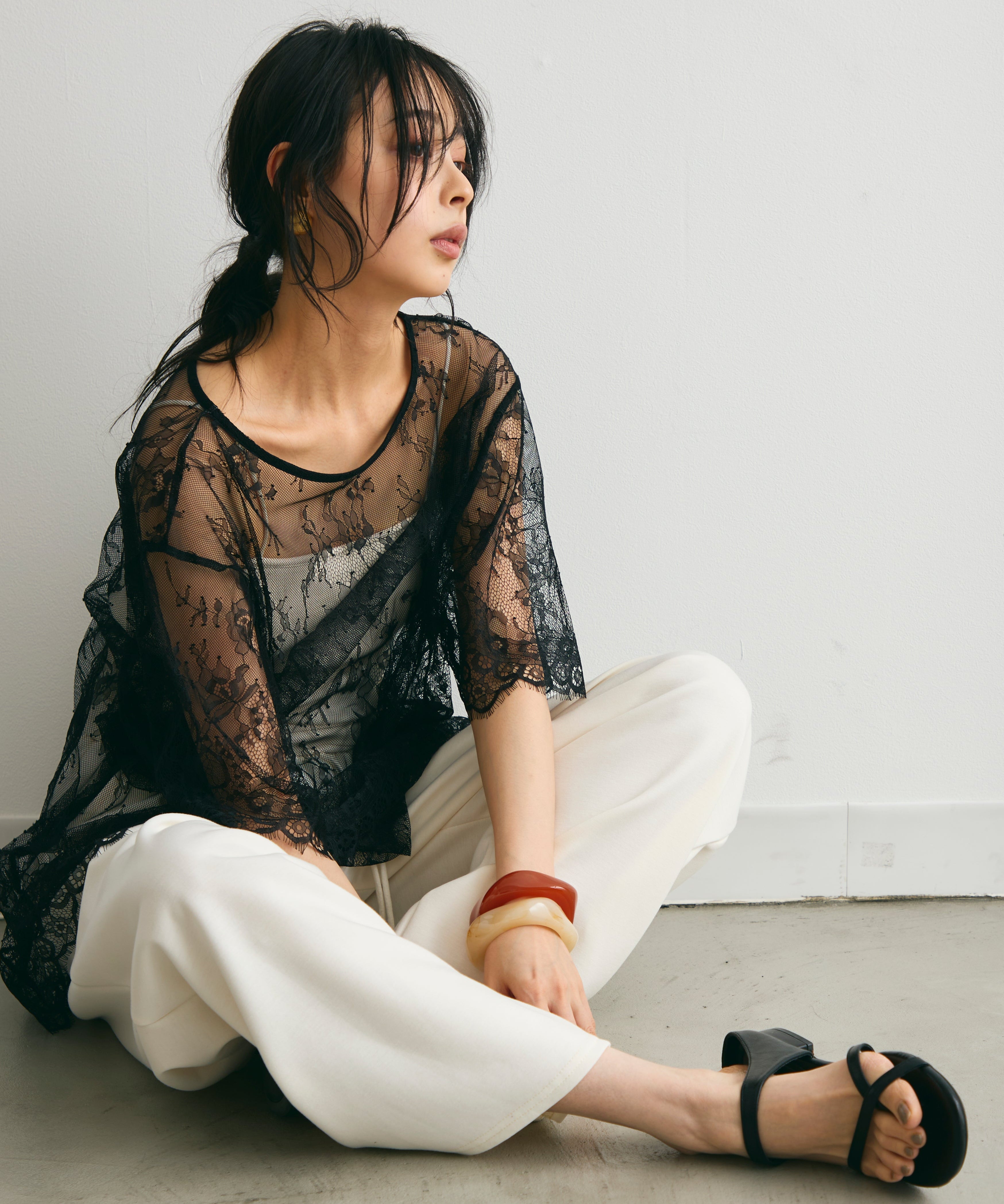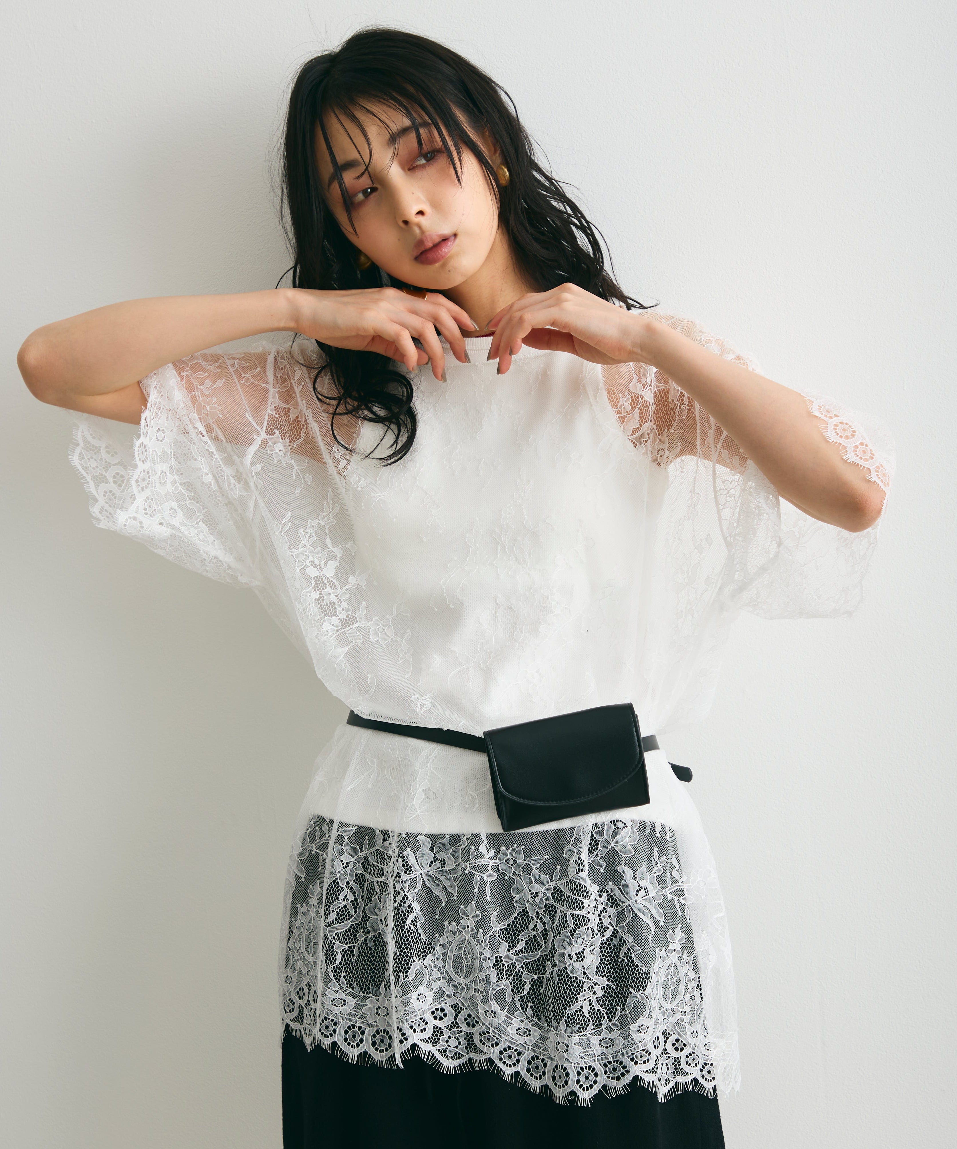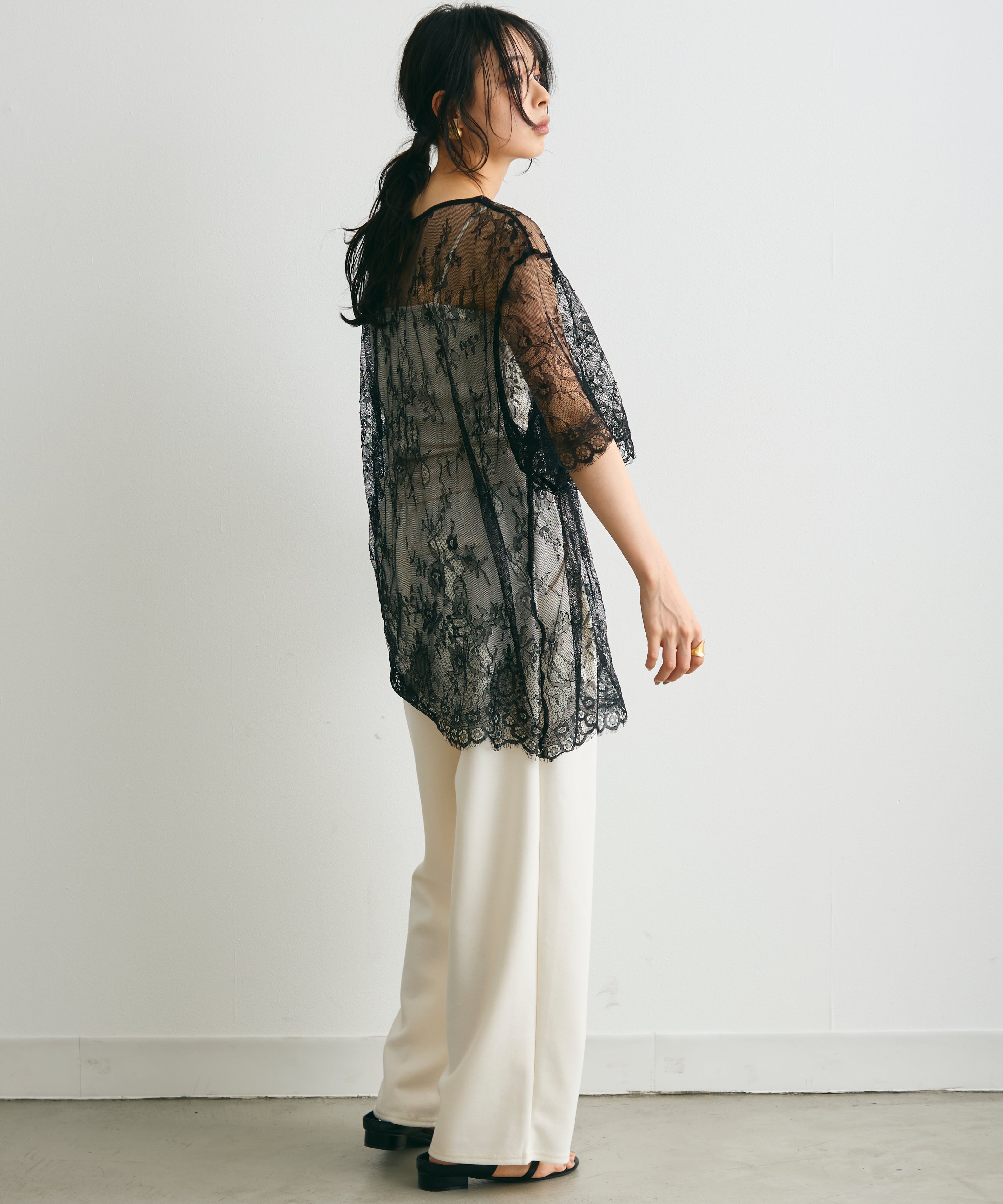 ゆったりとしたシルエットで抜け感がありつつ、レースの透け感が女性らしさをプラス。??