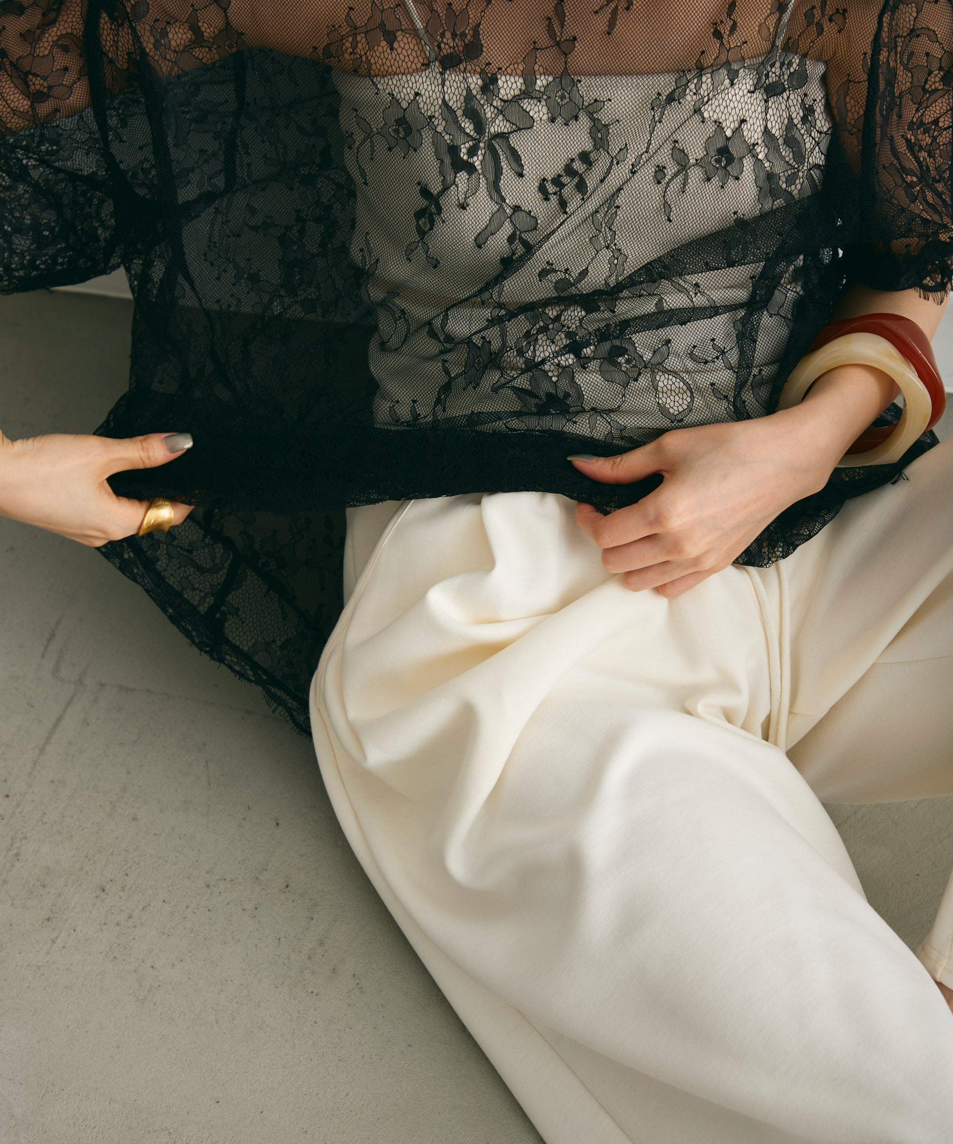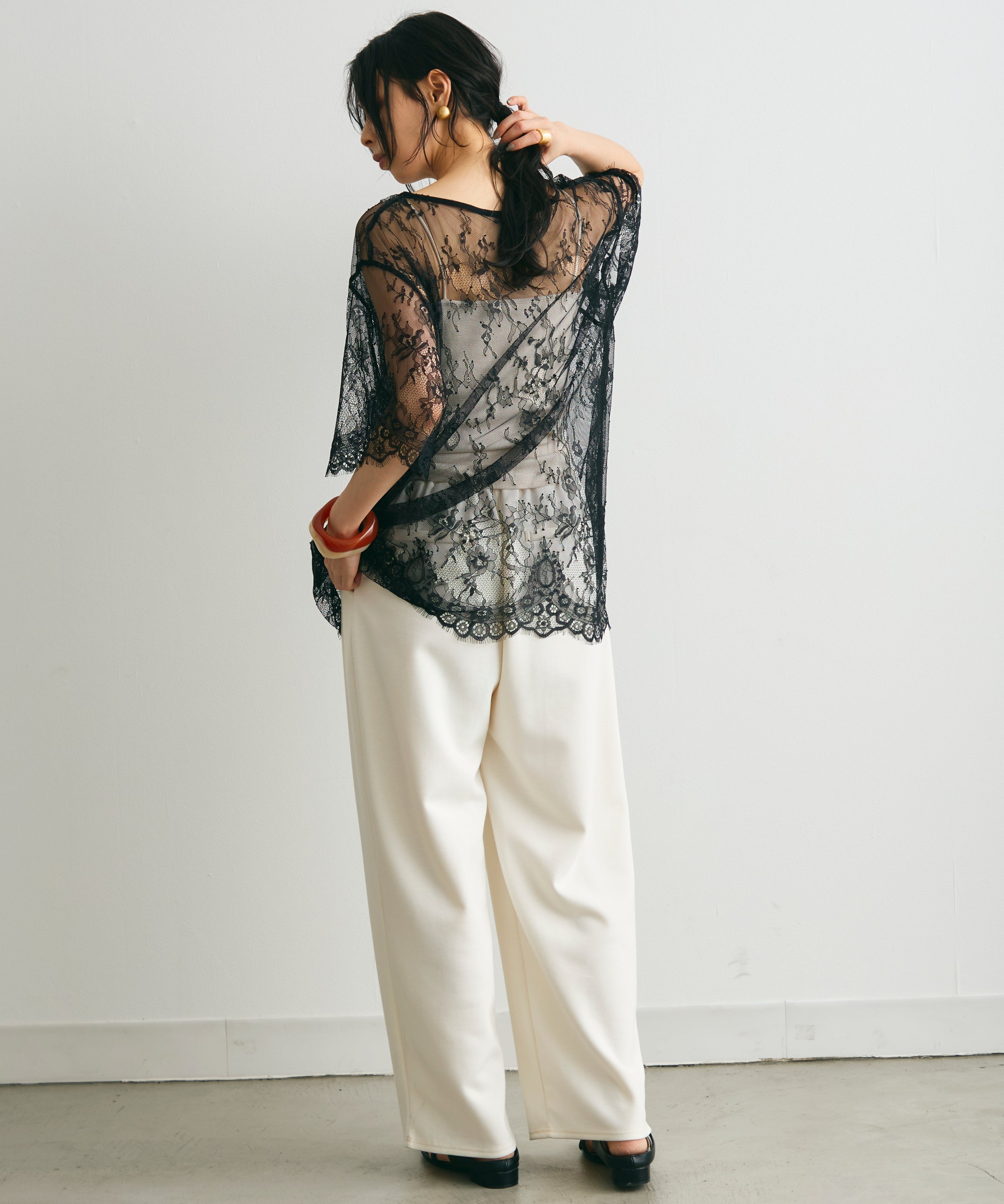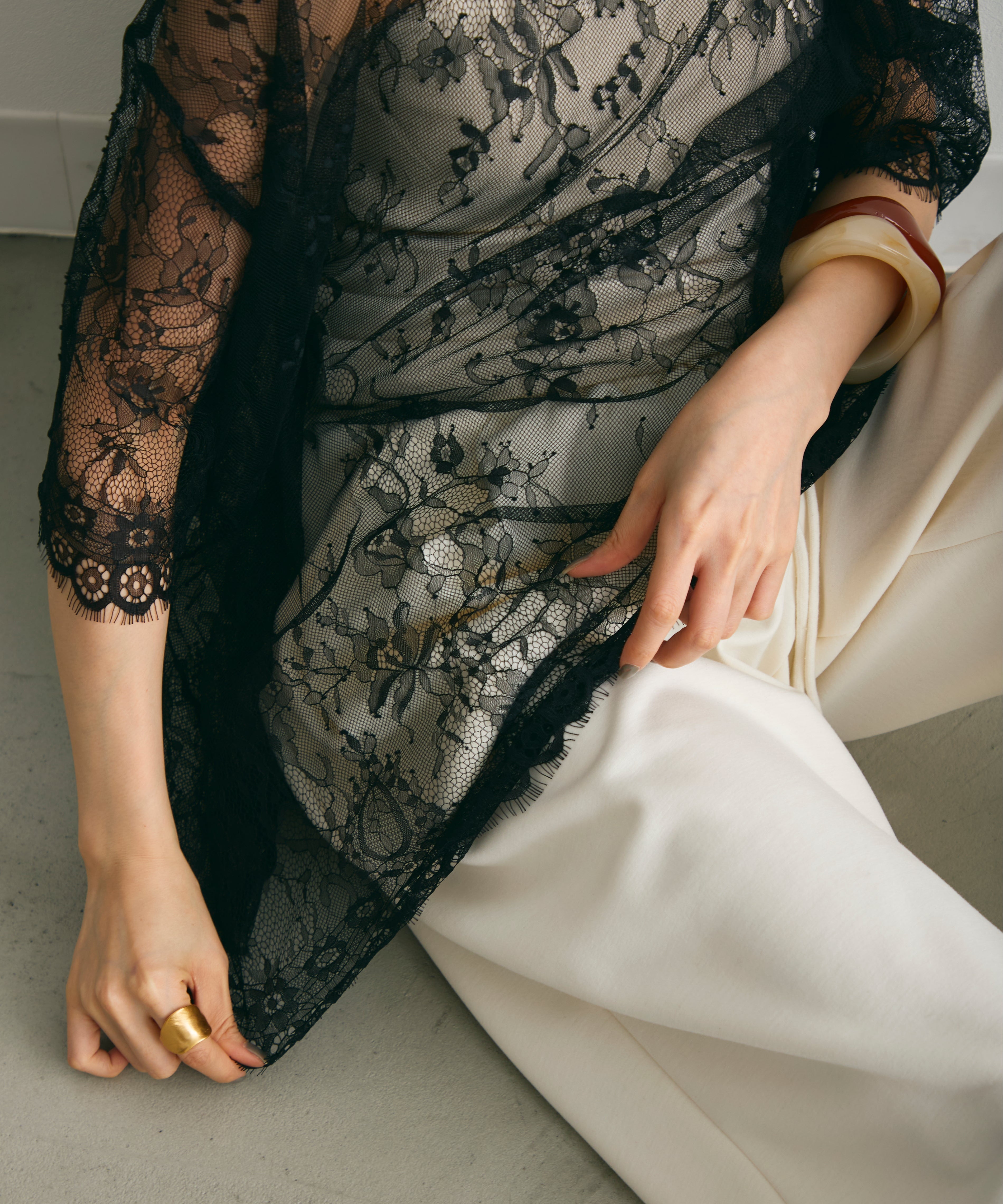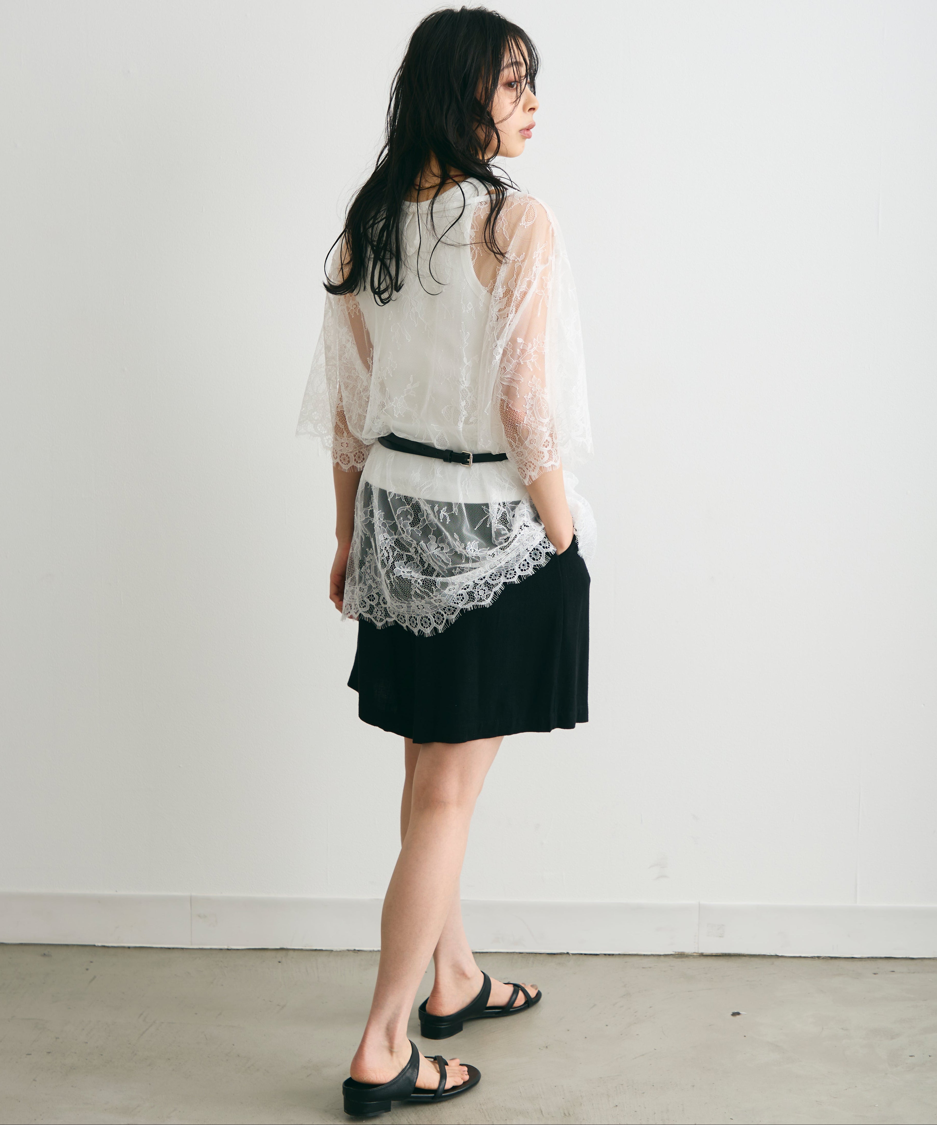 ゆったりとしたシルエットで抜け感がありつつ、レースの透け感が女性らしさをプラス。??