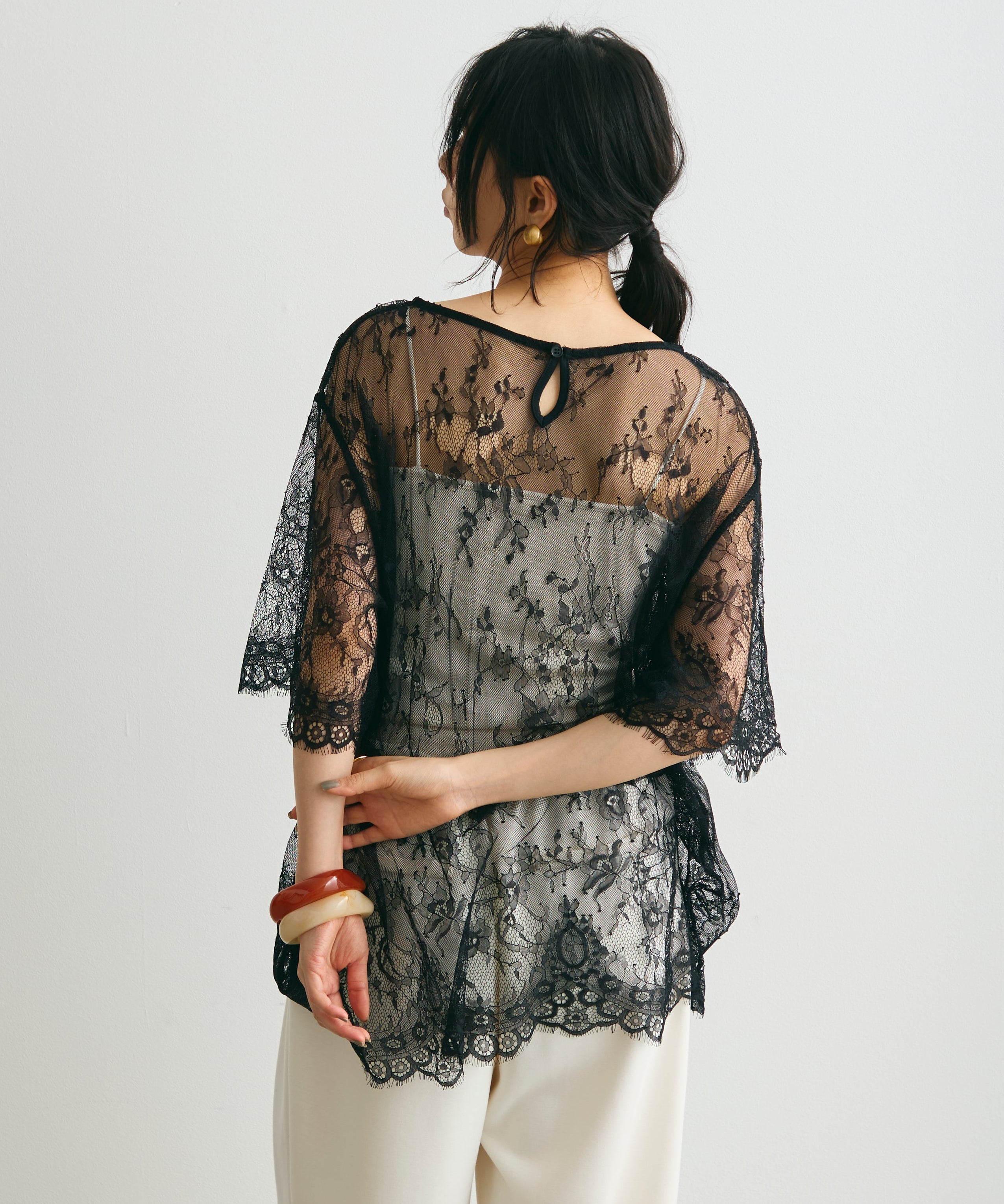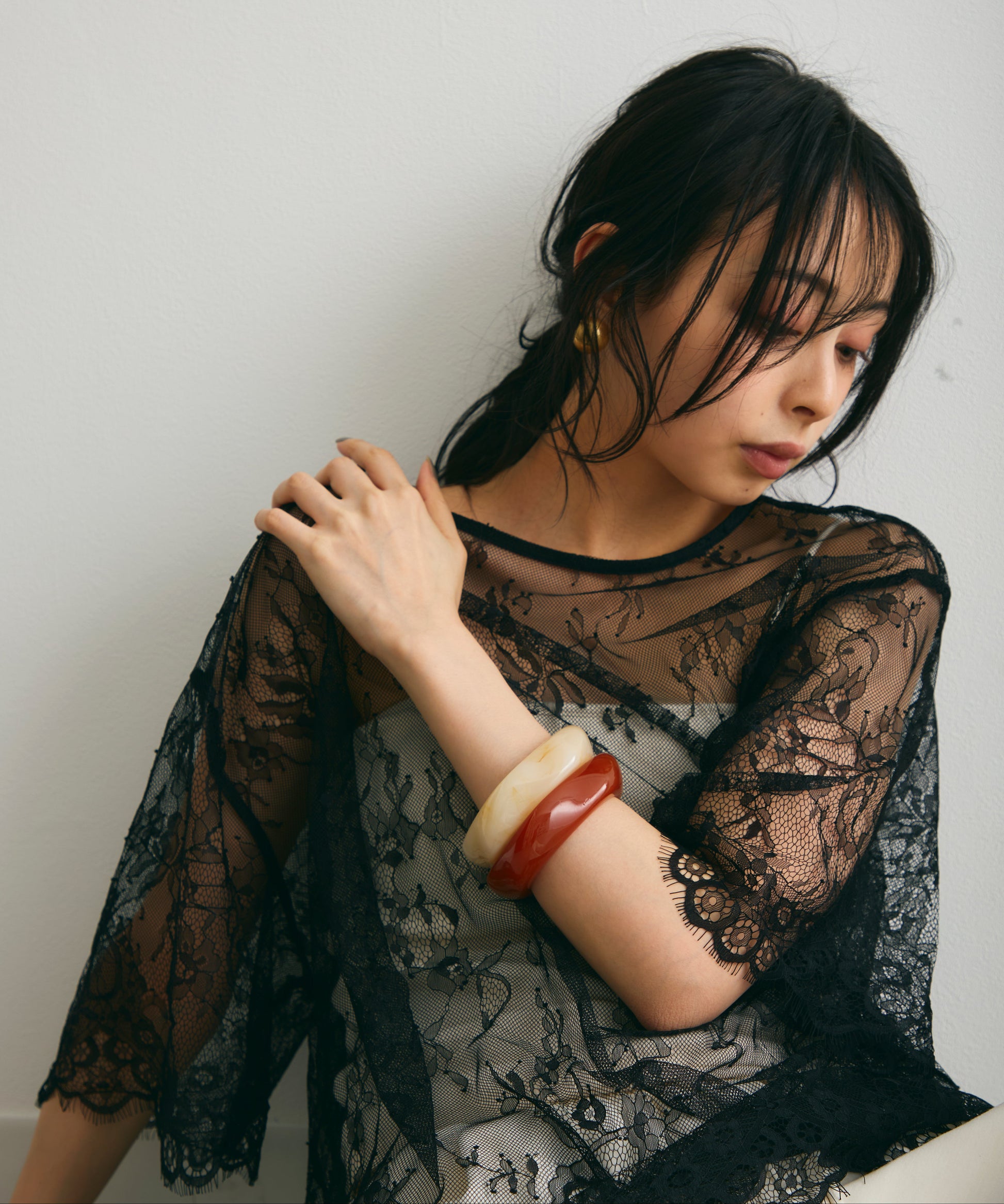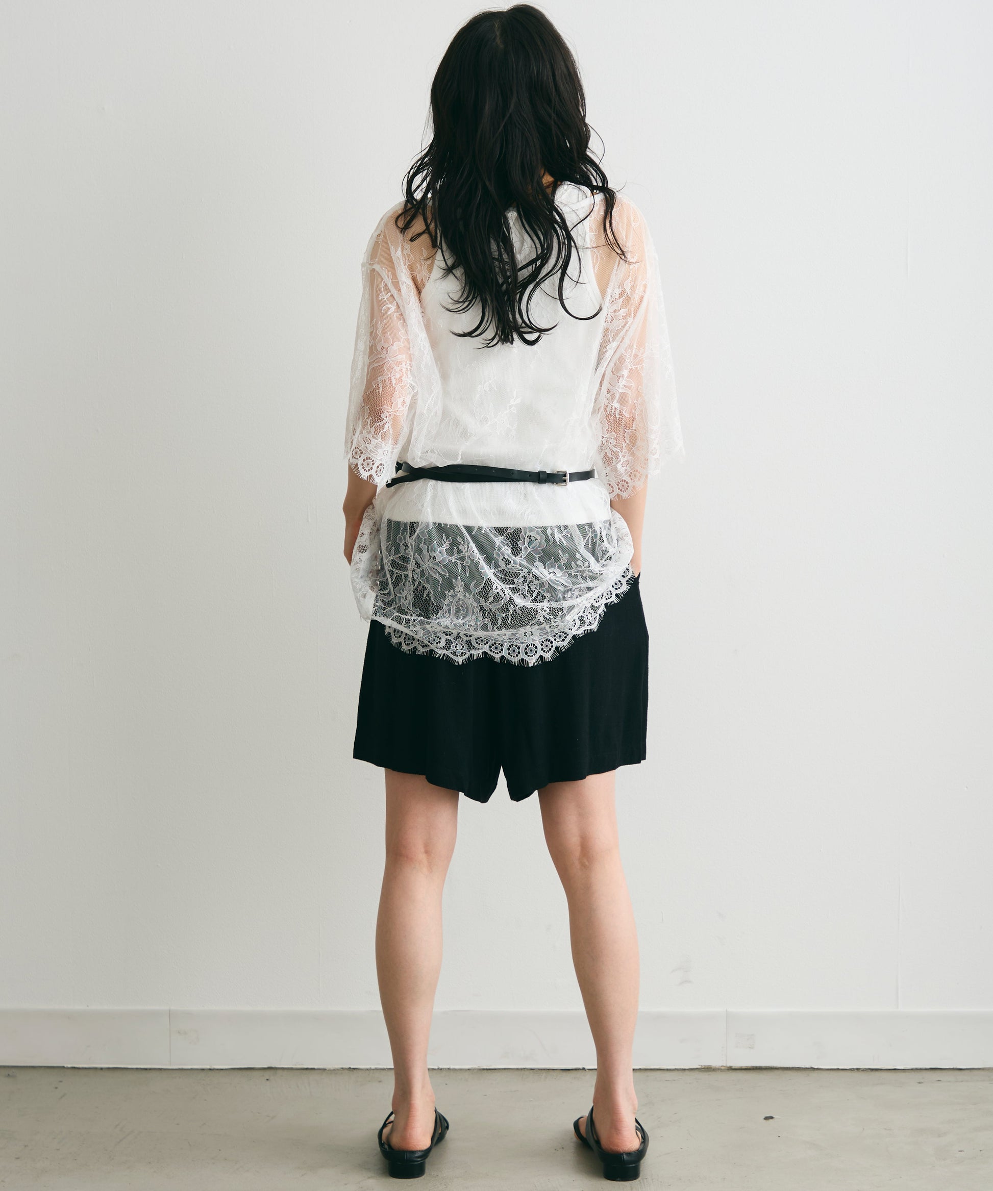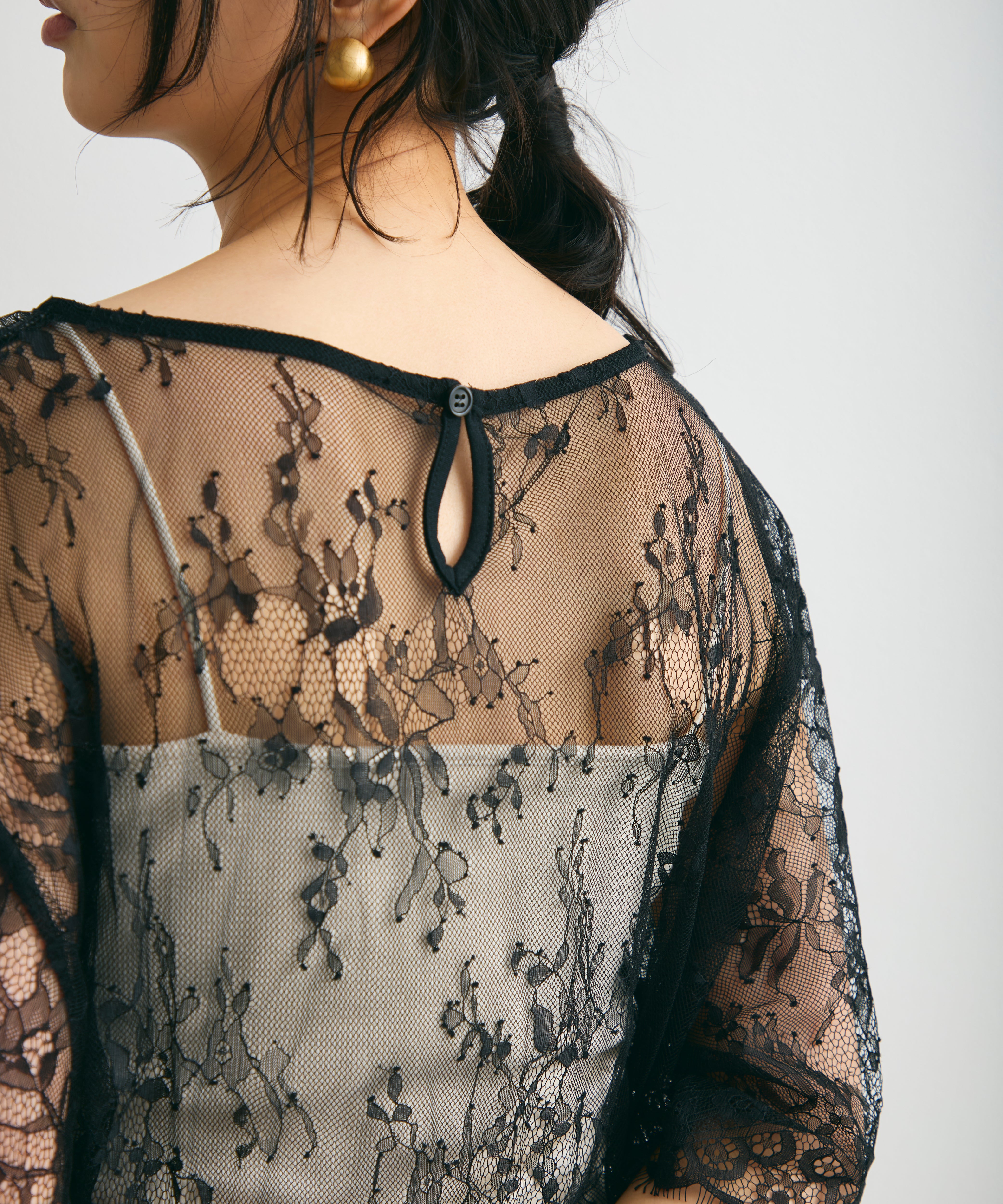 ゆったりとしたシルエットで抜け感がありつつ、レースの透け感が女性らしさをプラス。??