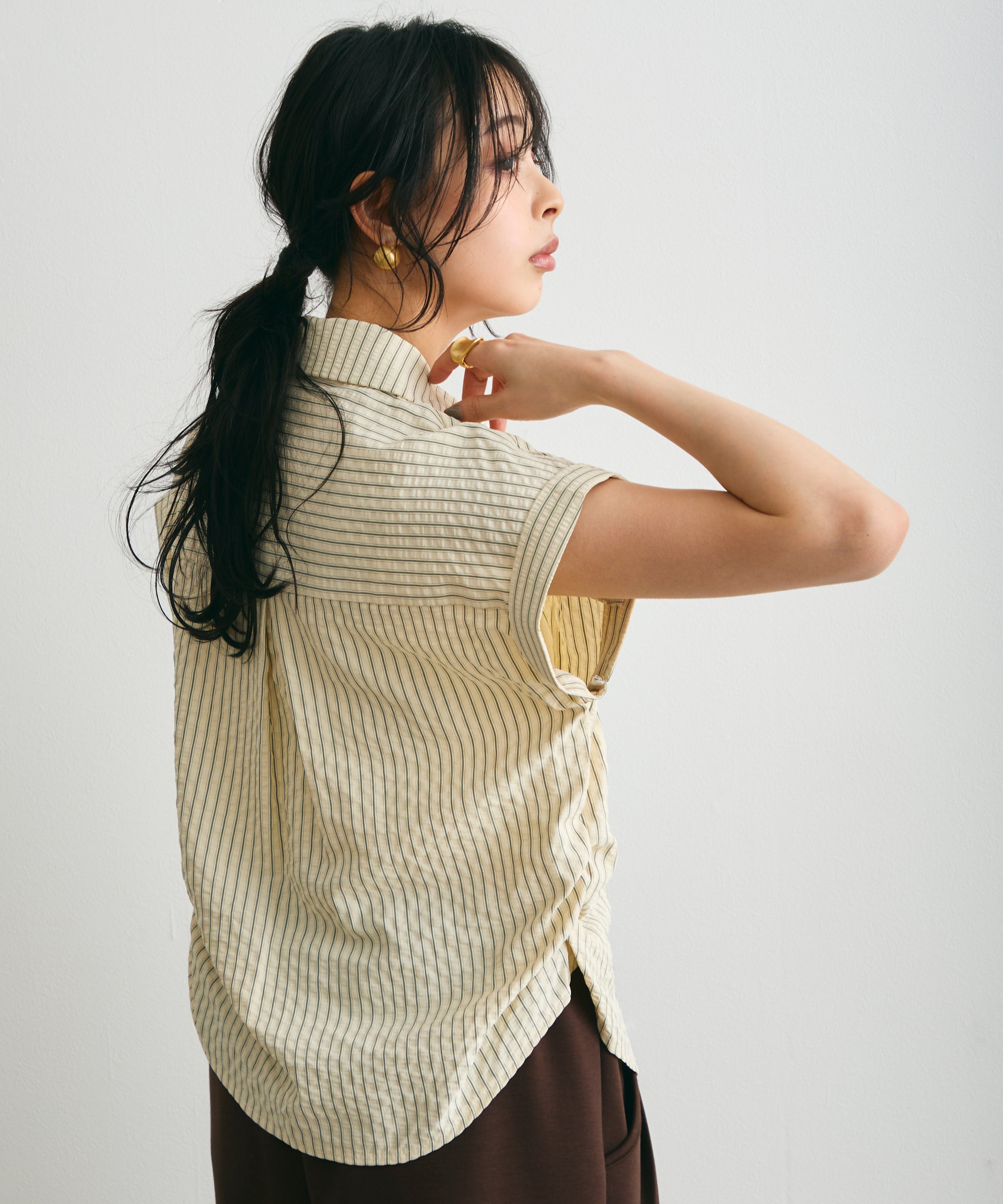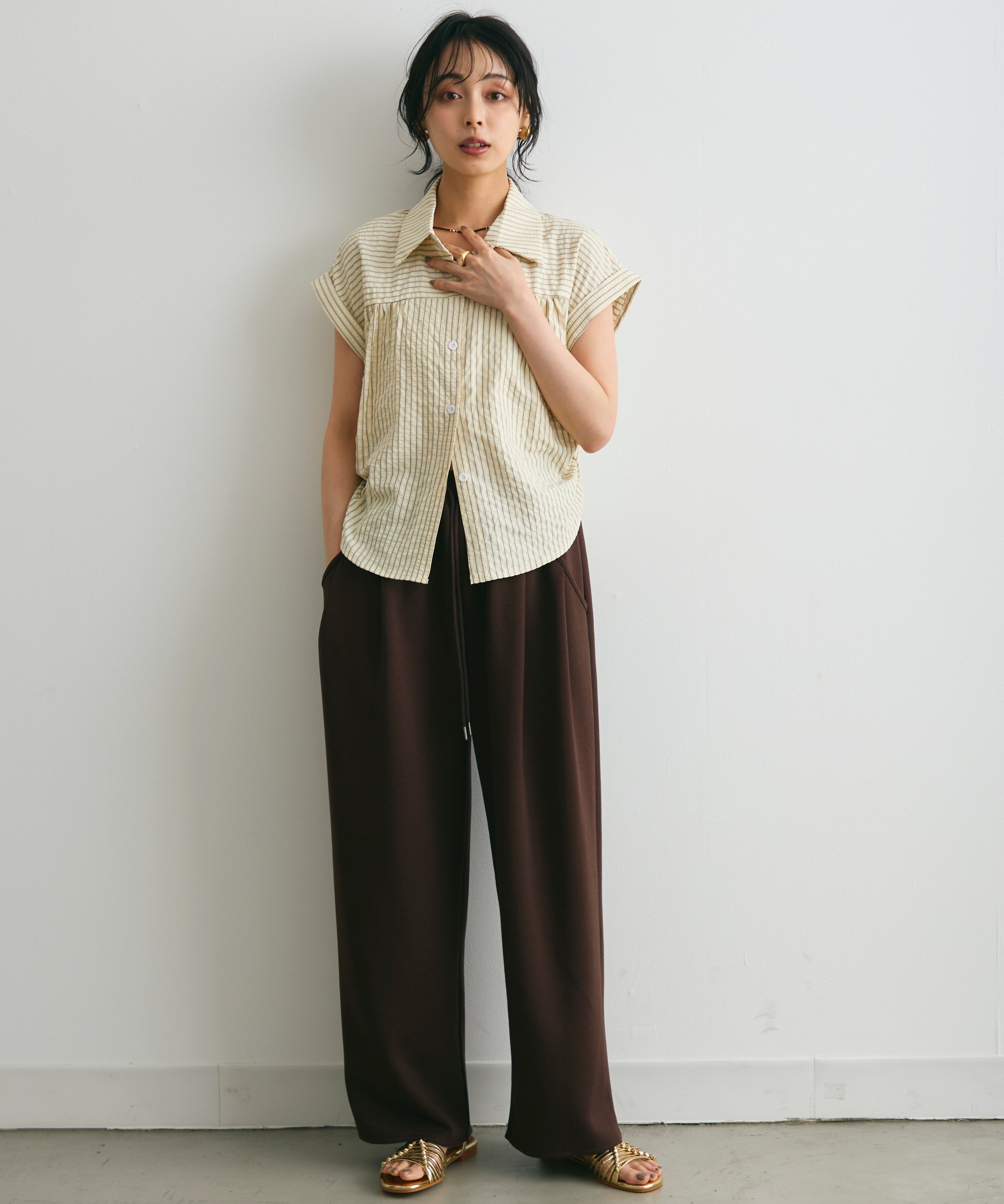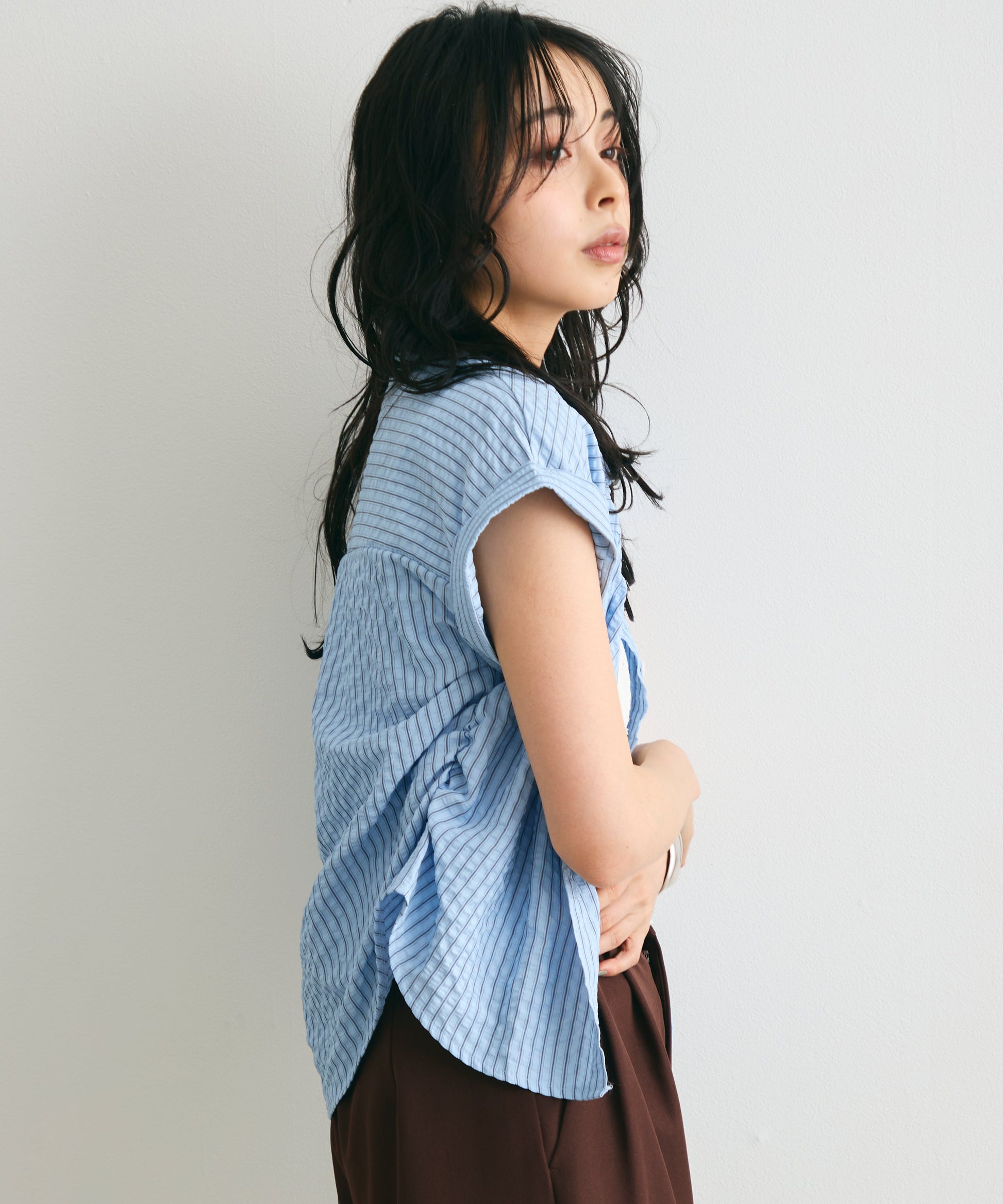さらっとした肌ざわりで涼しく着られ、夏のスタイリングにぴったりの一枚です。