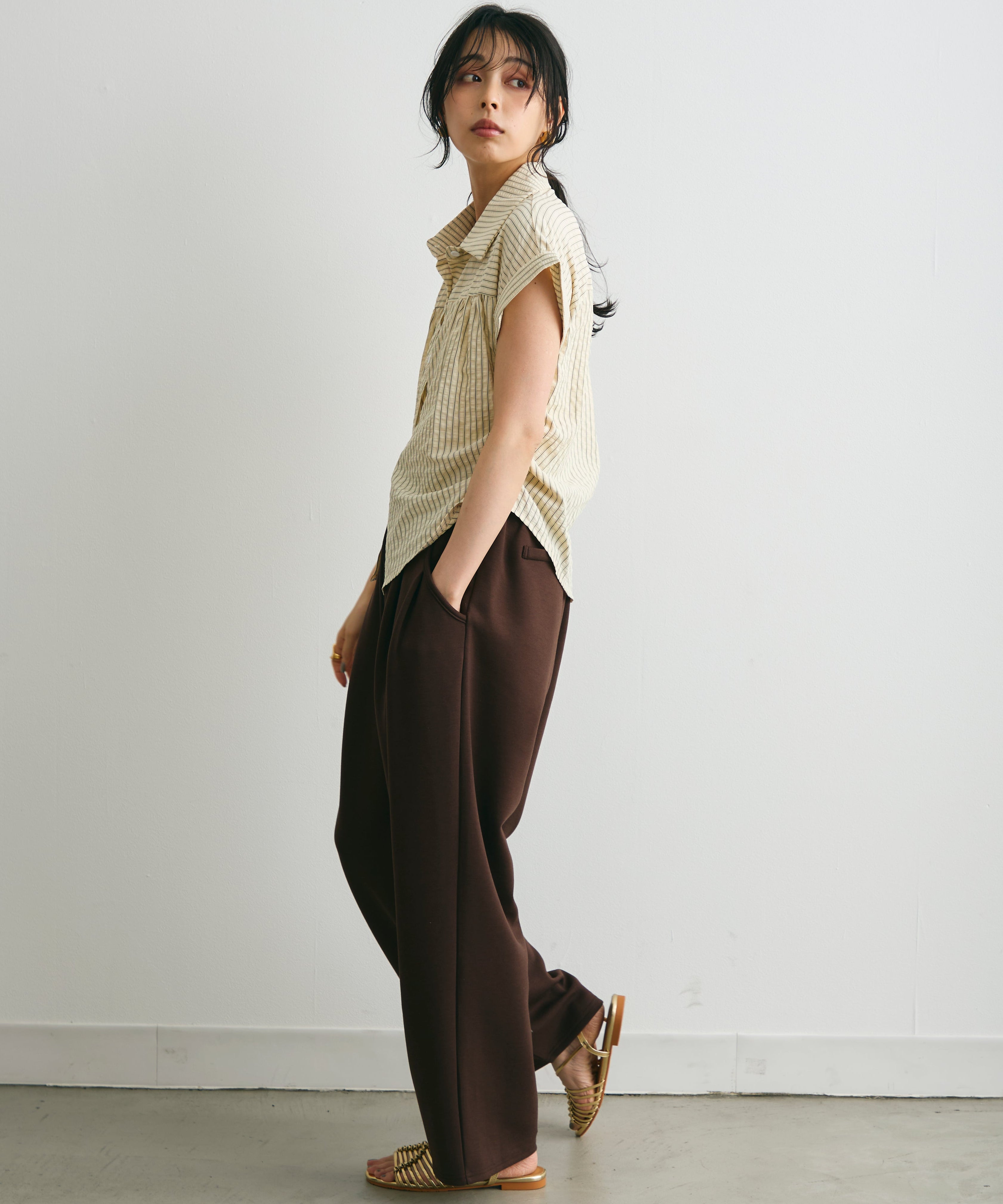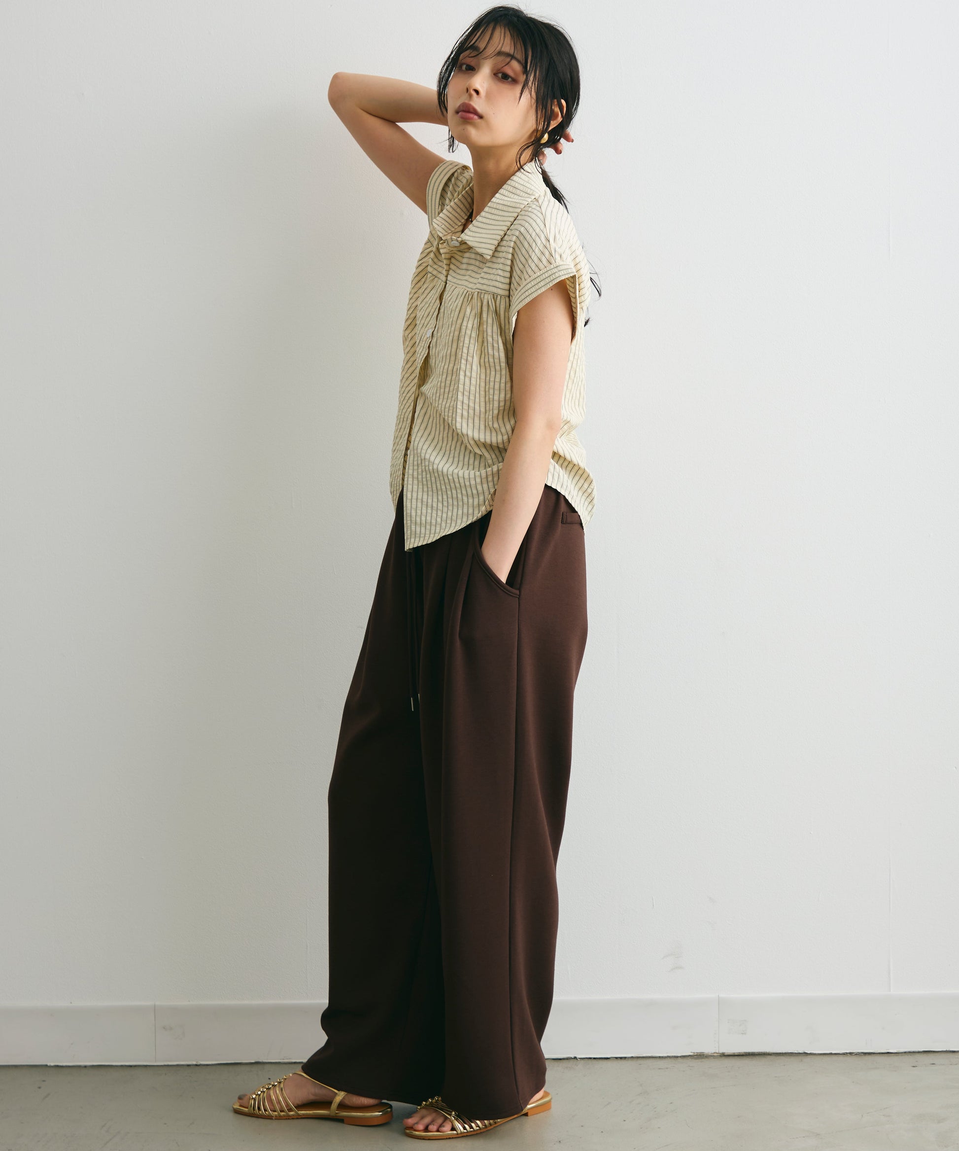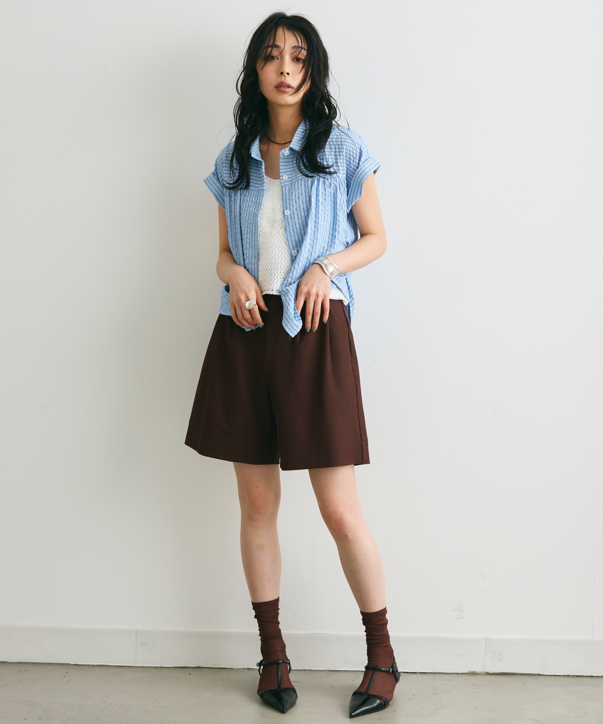 さらっとした肌ざわりで涼しく着られ、夏のスタイリングにぴったりの一枚です。