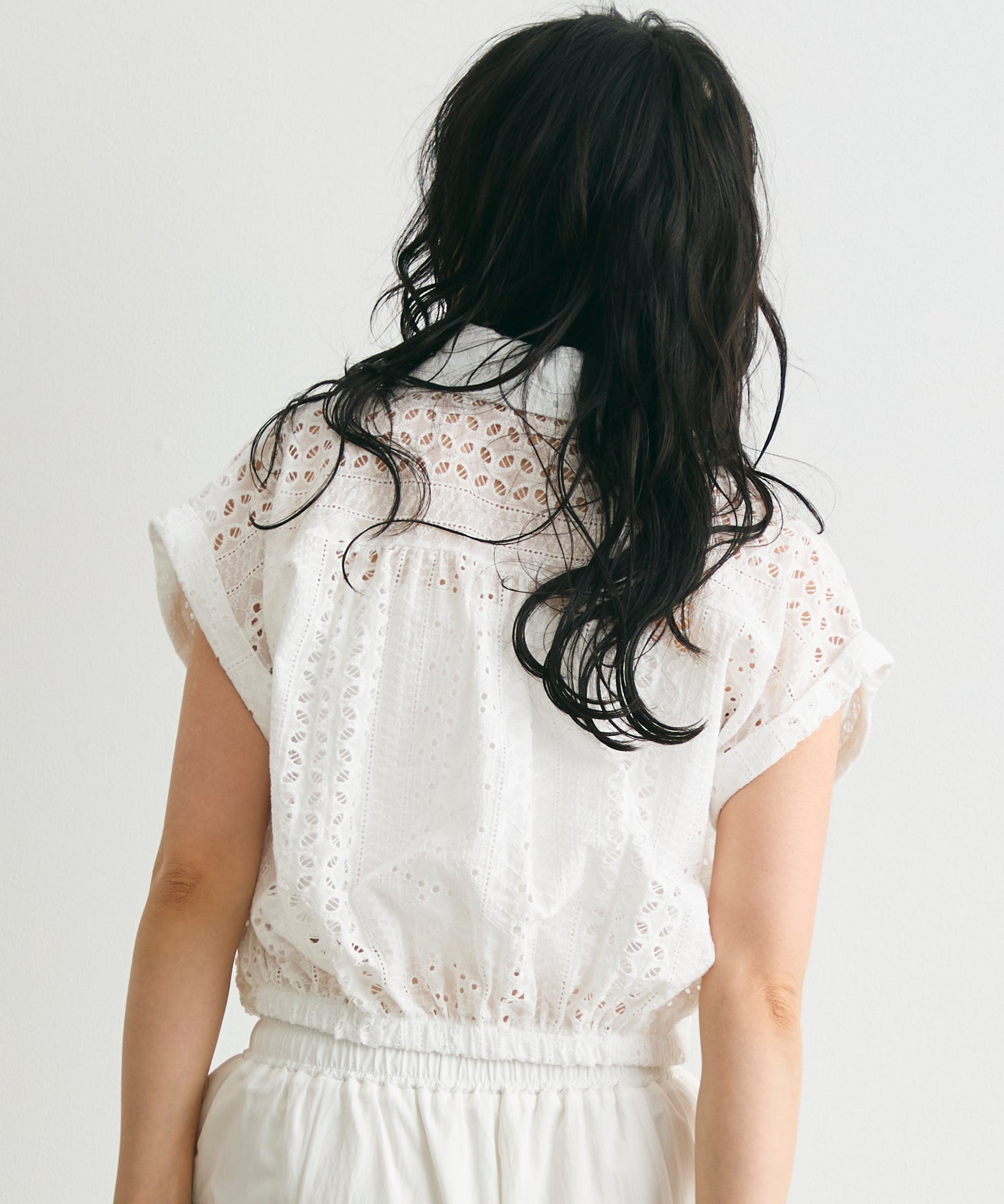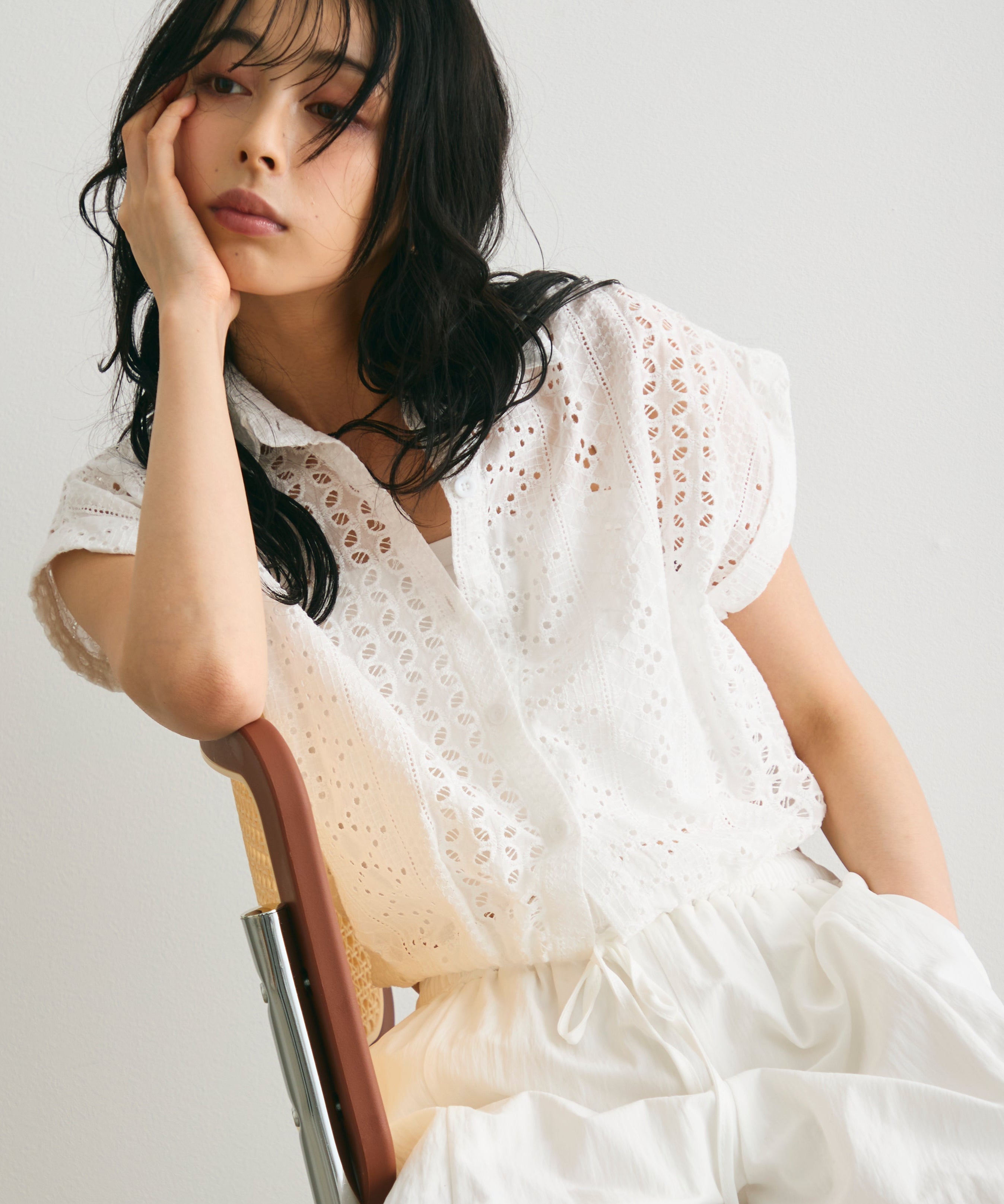 エンブロイダリーレースフレンチ開襟シャツ