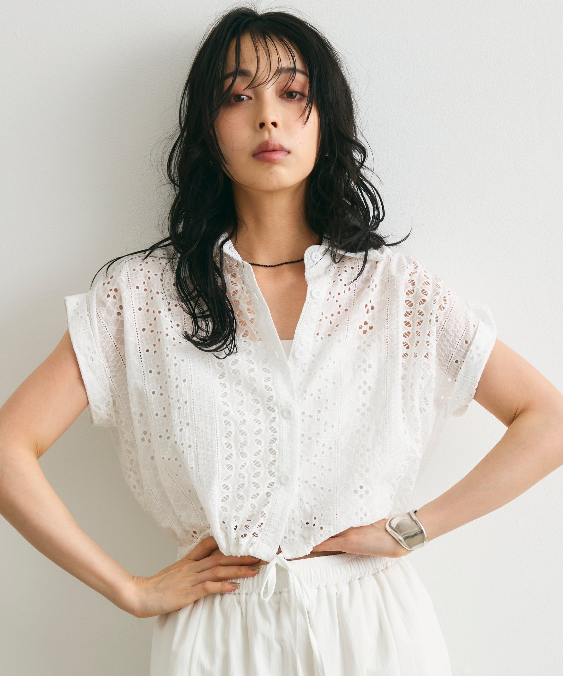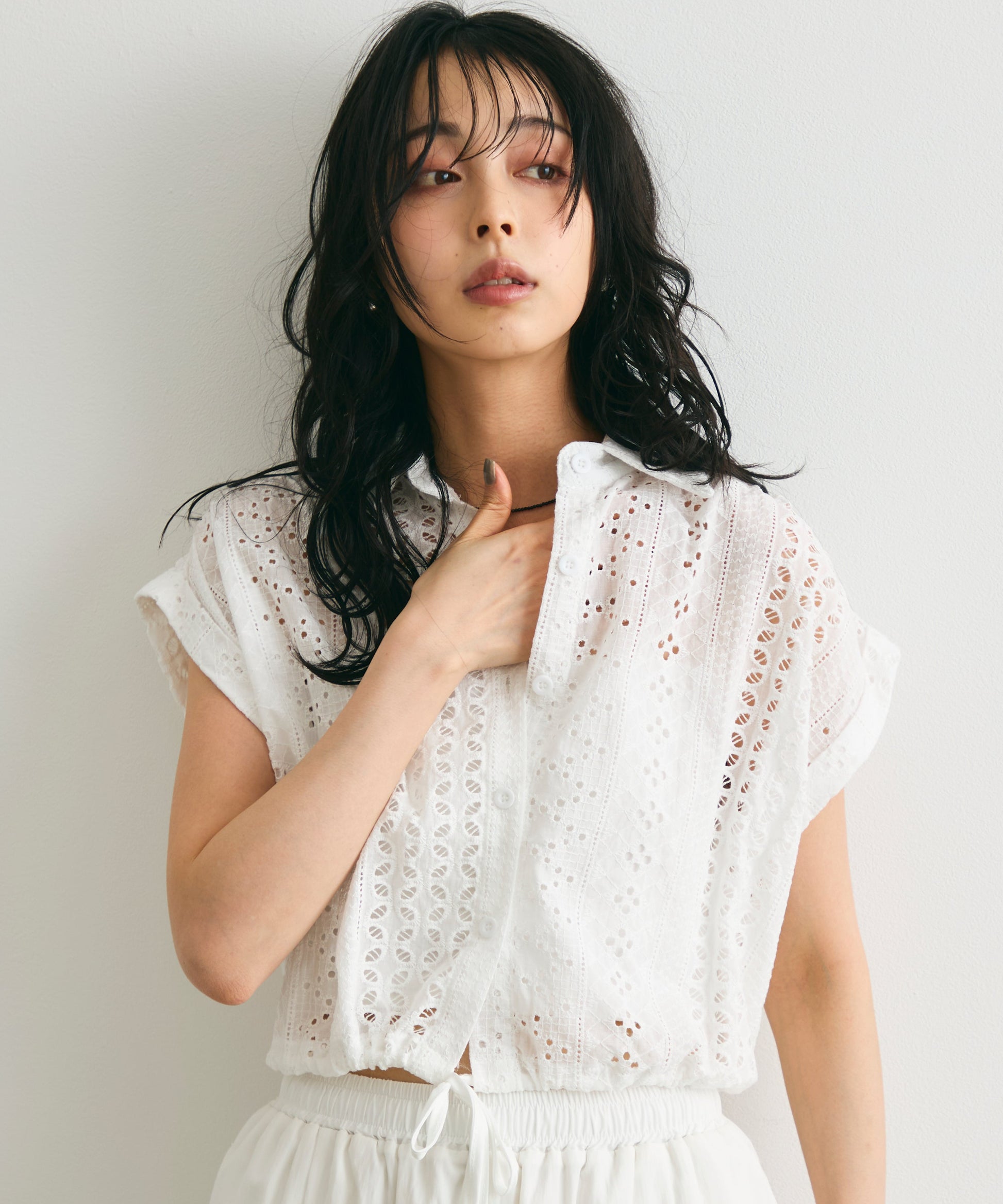 エンブロイダリーレースフレンチ開襟シャツ | t26210007