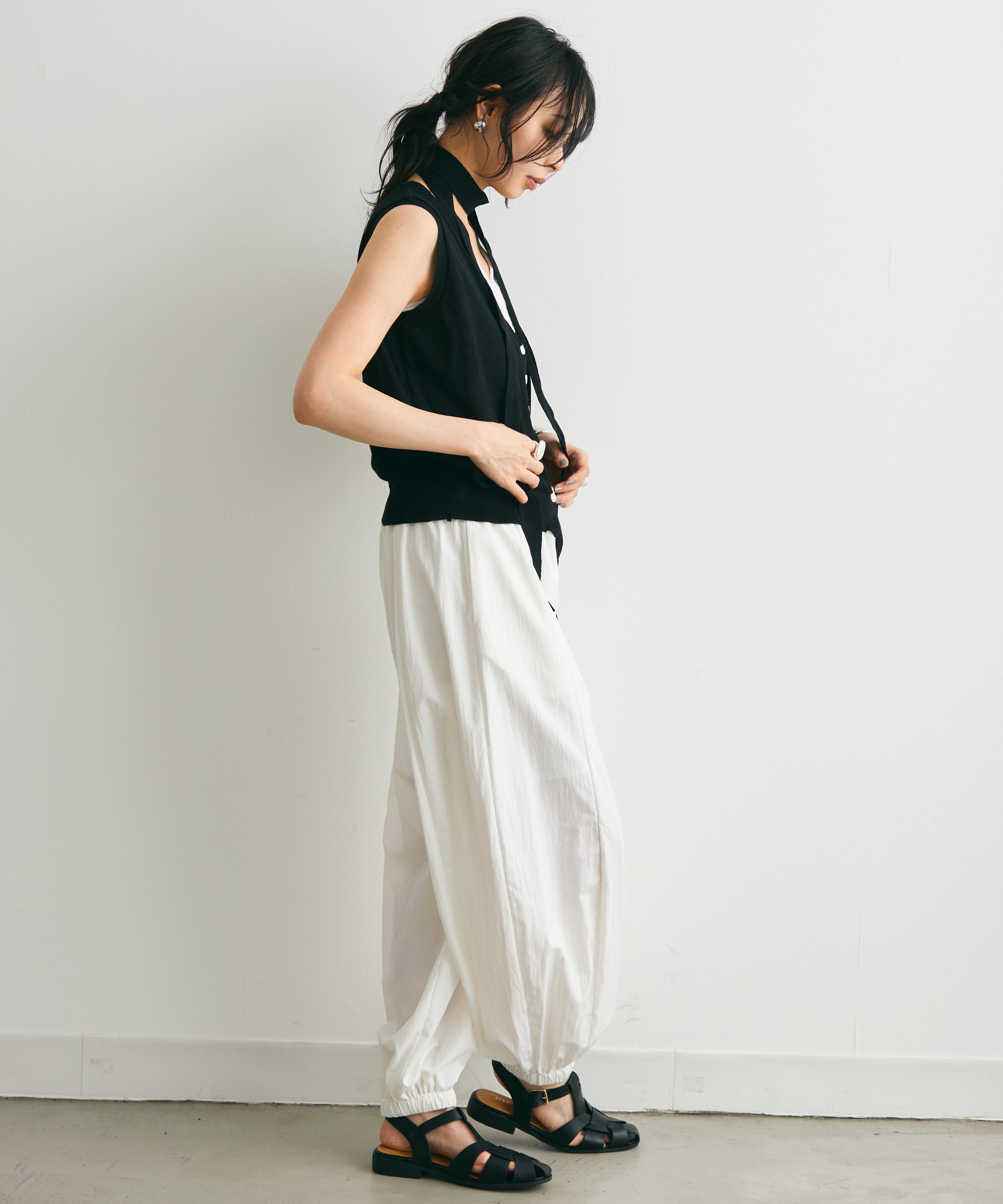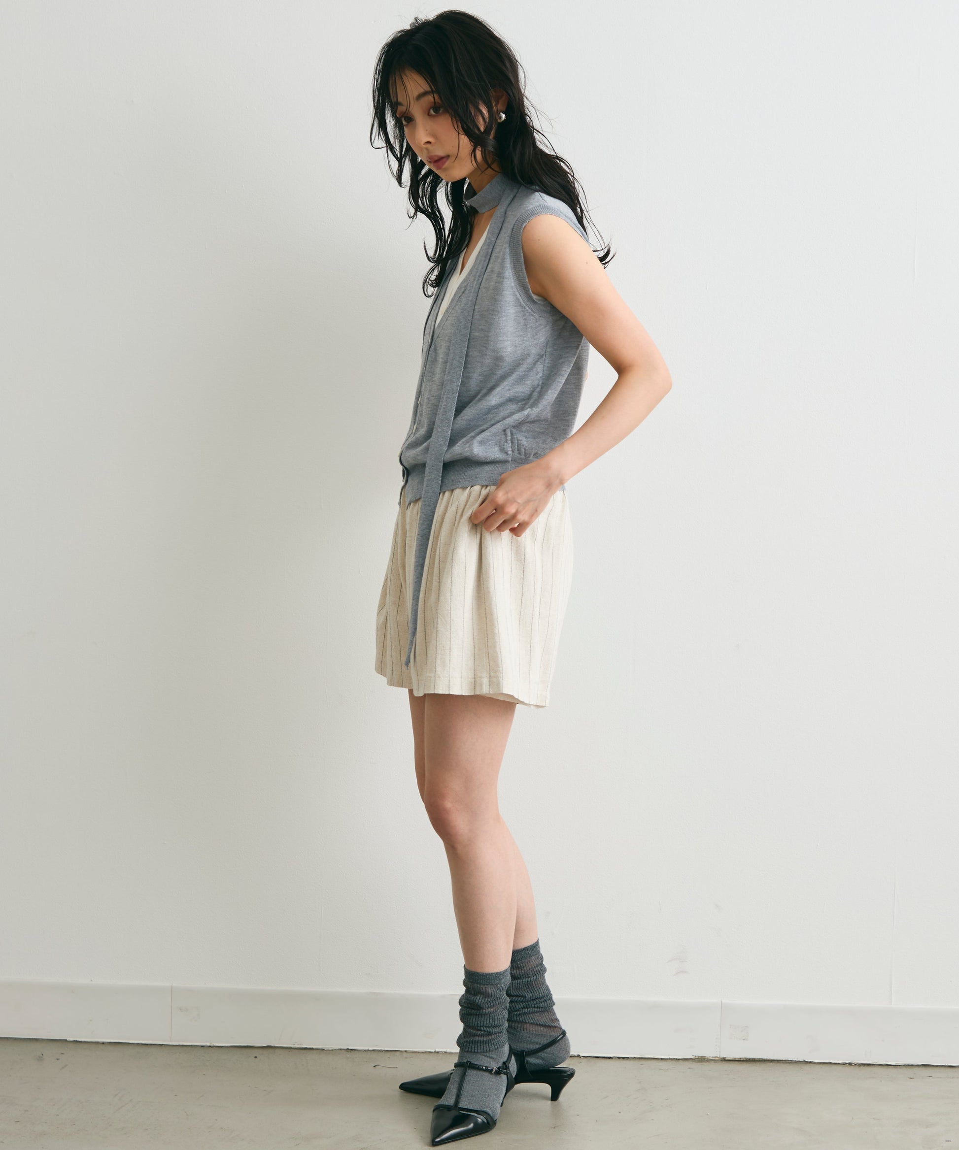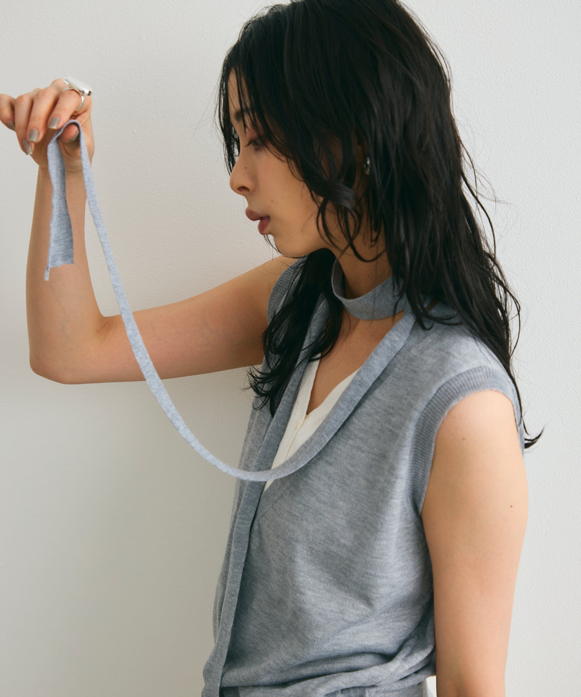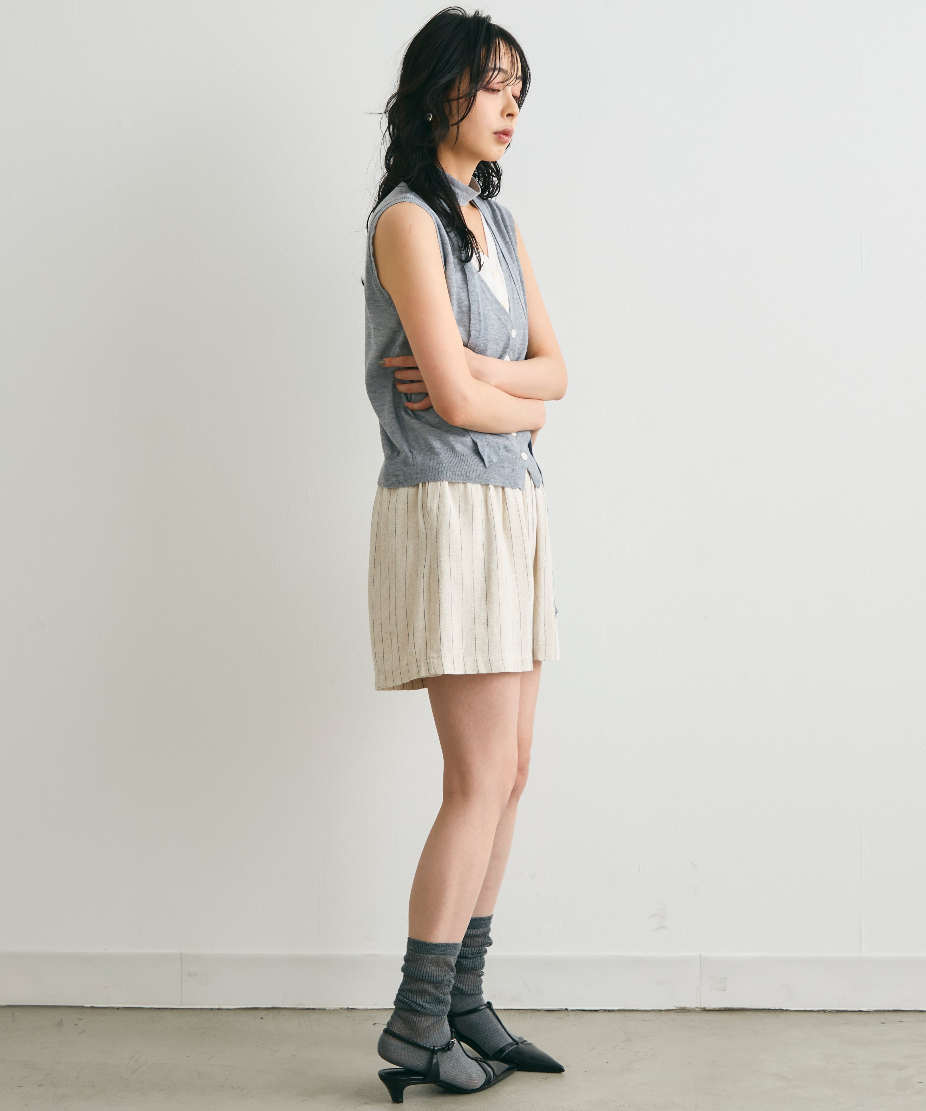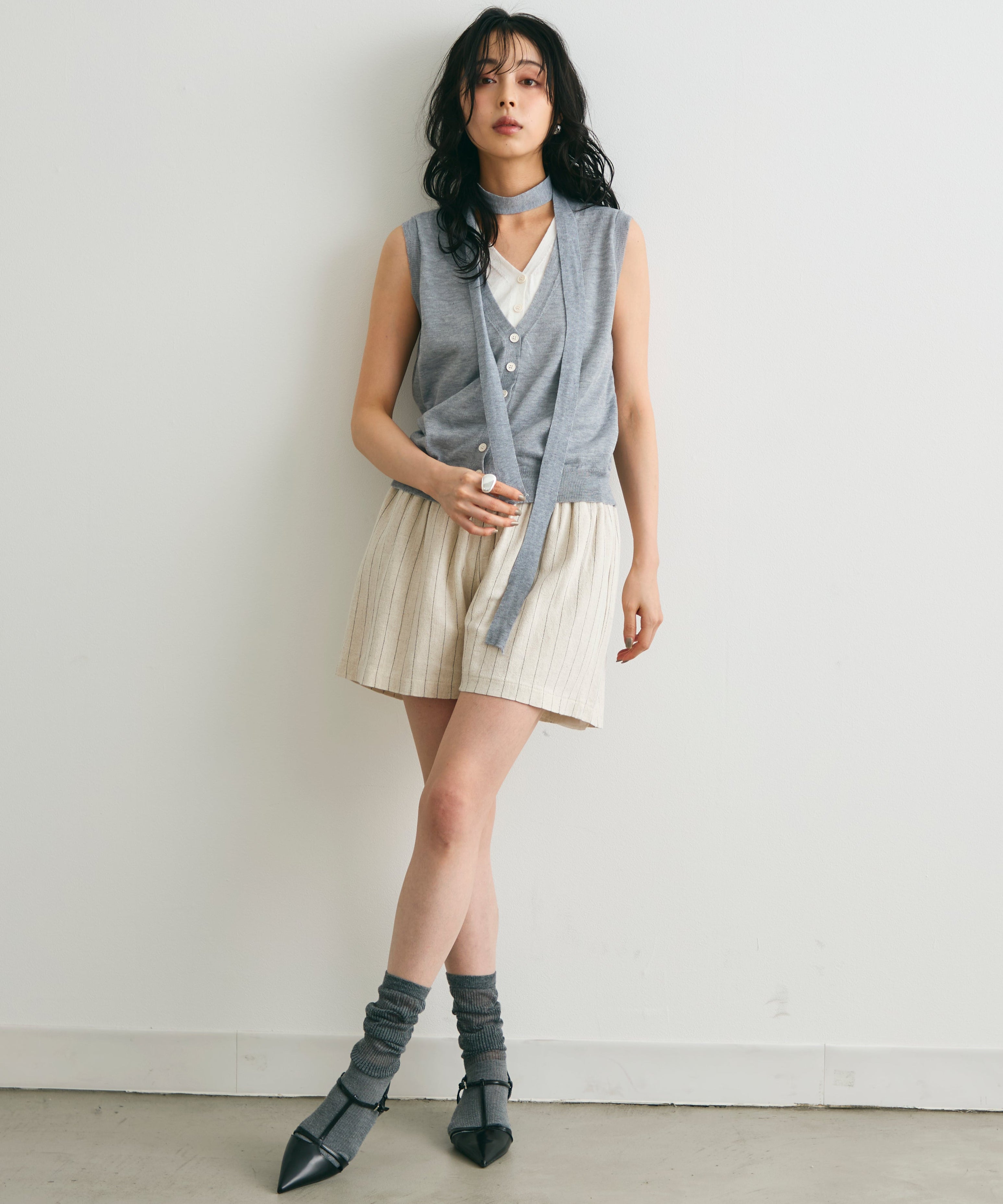 重ね着しているように見えるデザインがポイントのレイヤードライクジレ。