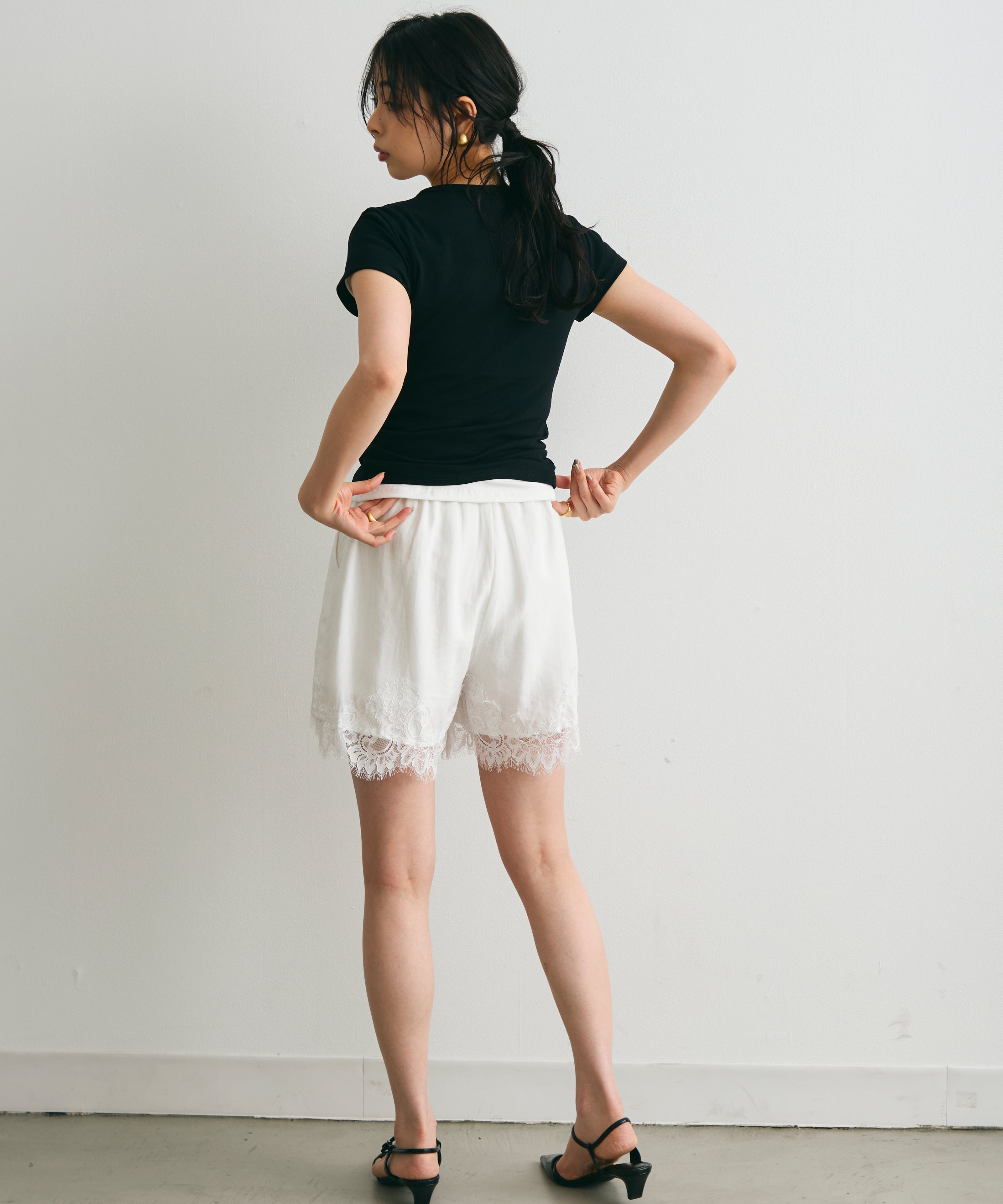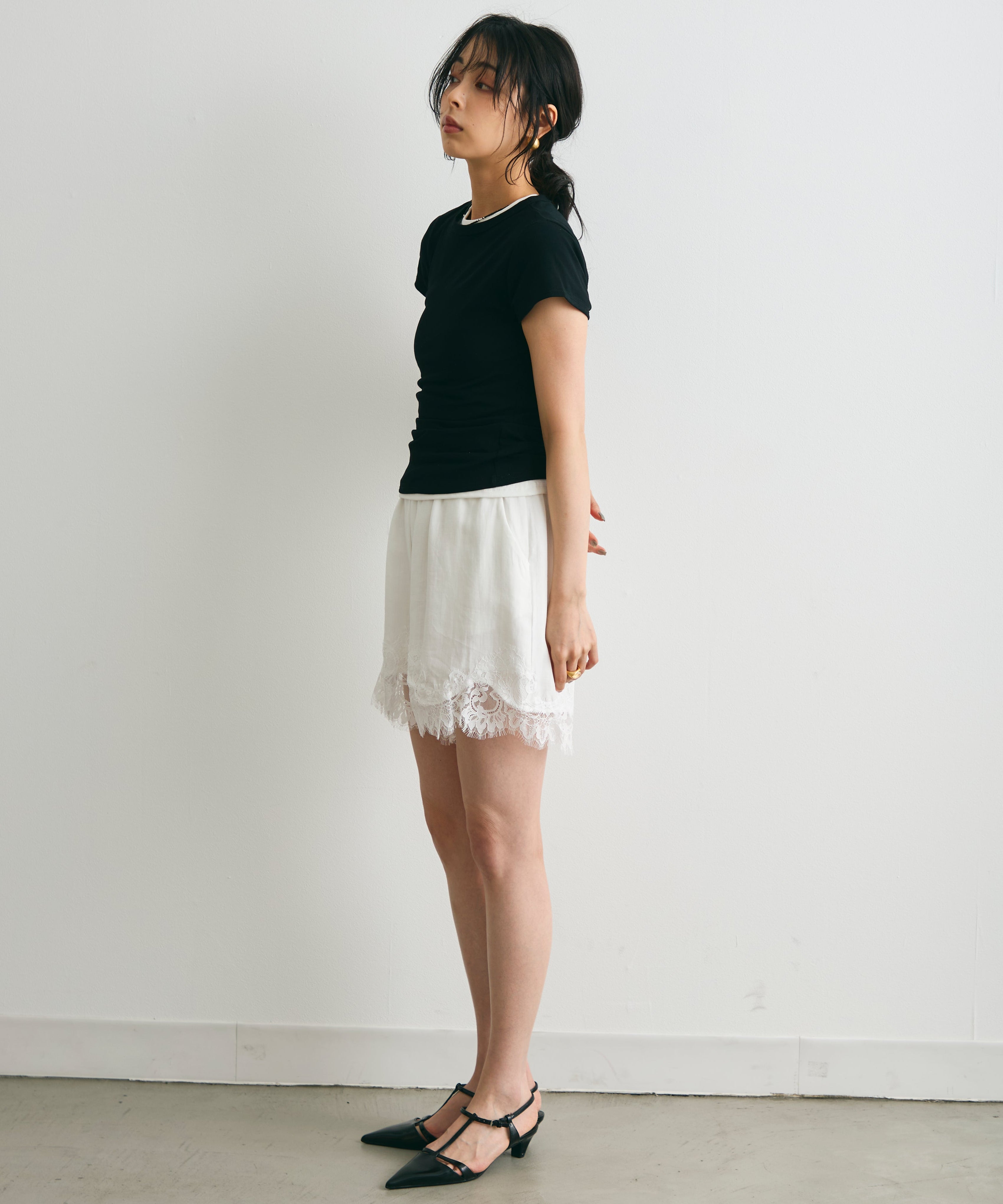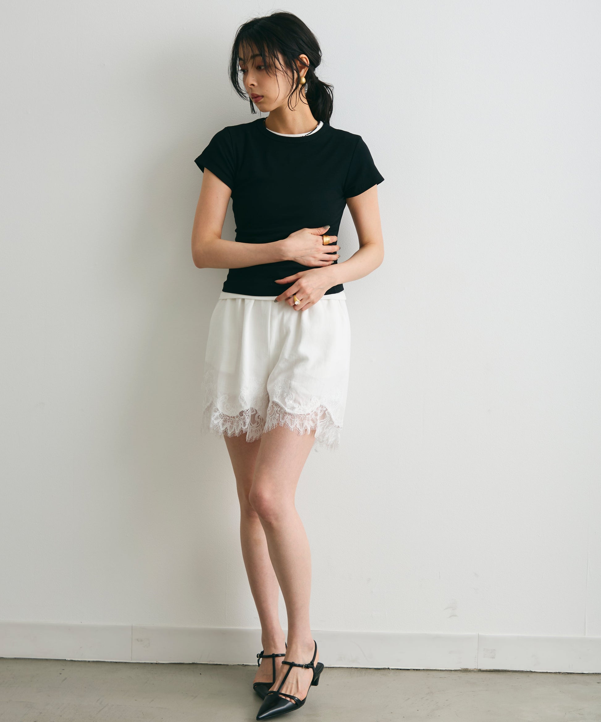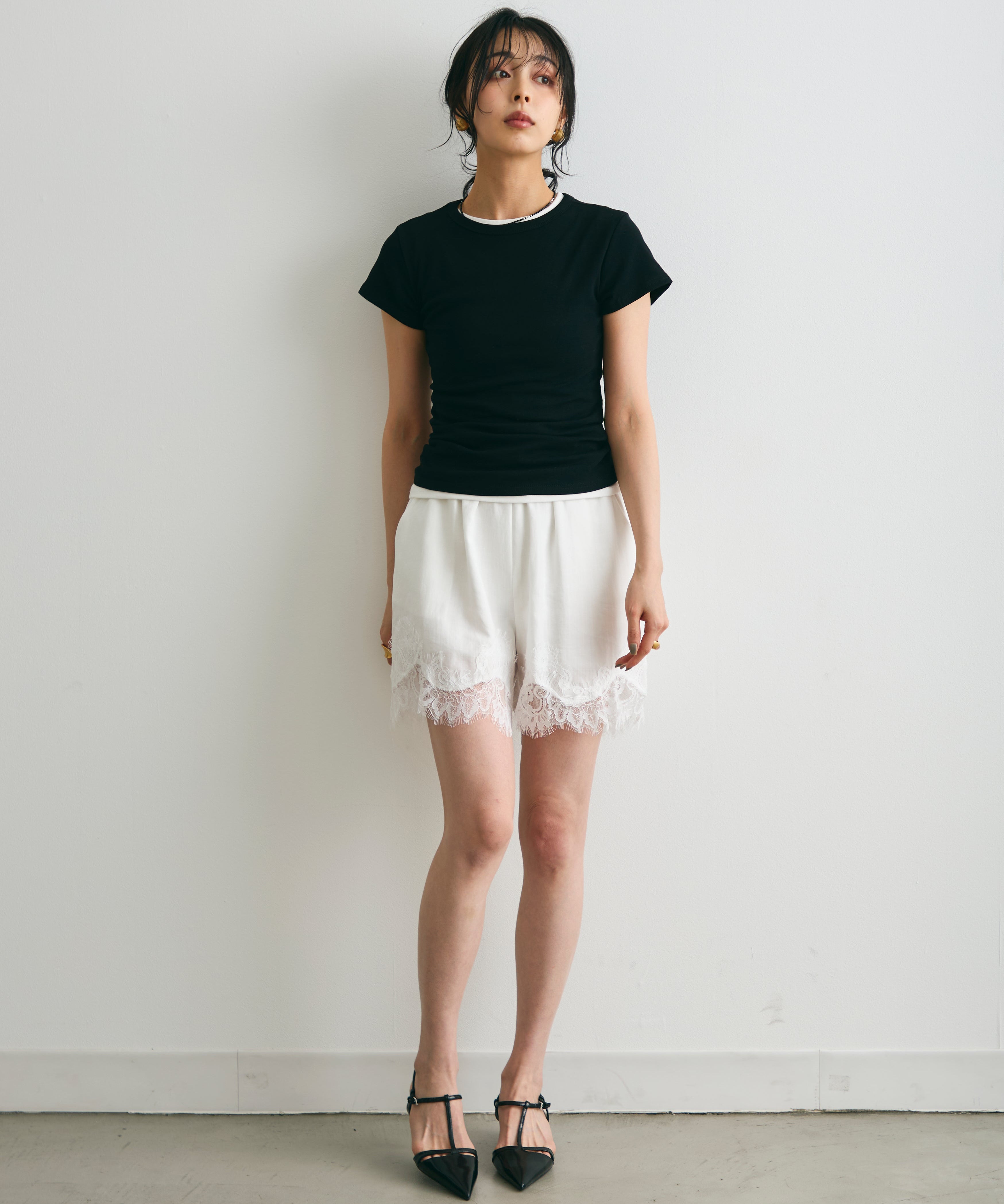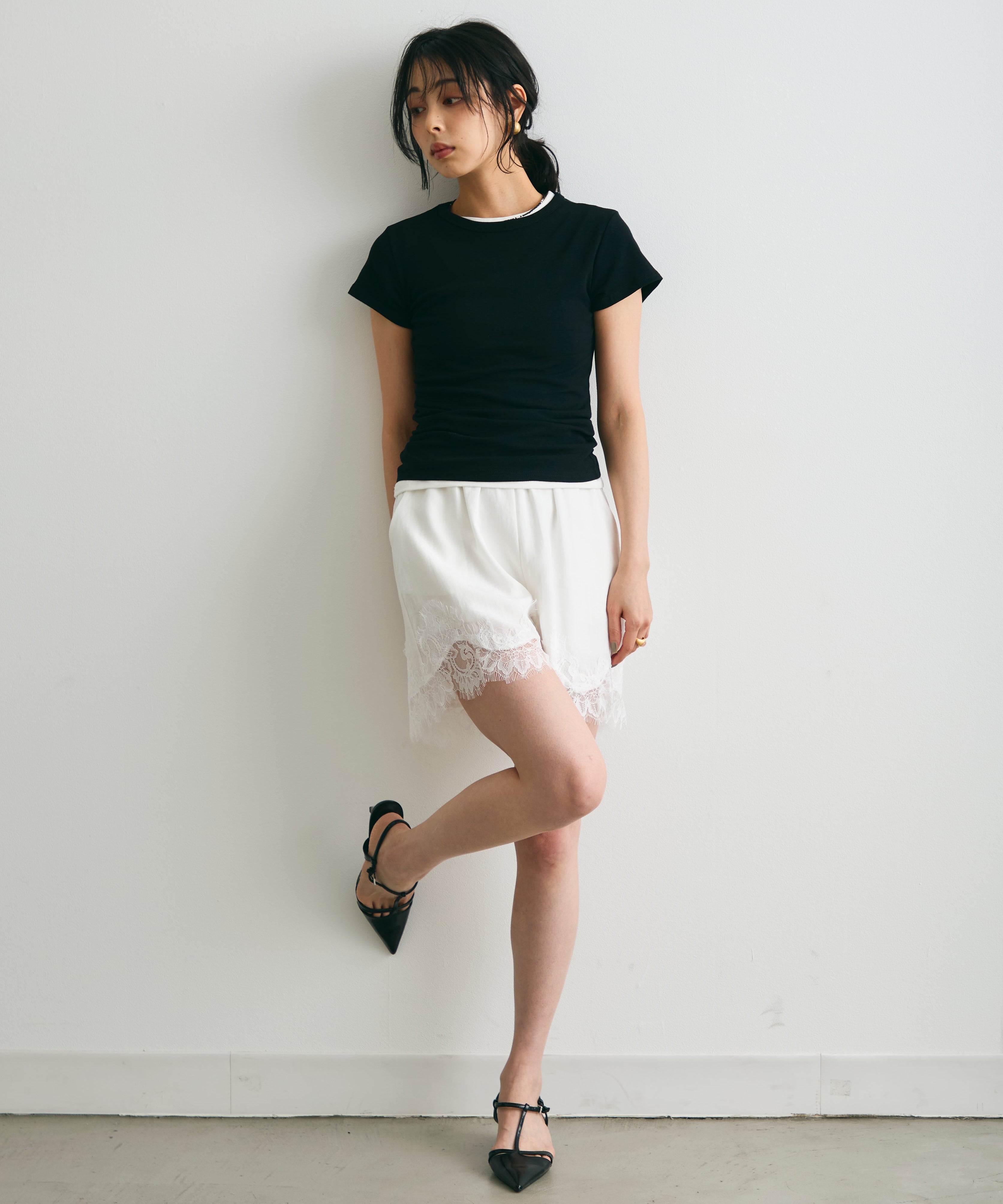 シンプルながら女性らしいシルエットが魅力のクルーネックフレンチTシャツ。