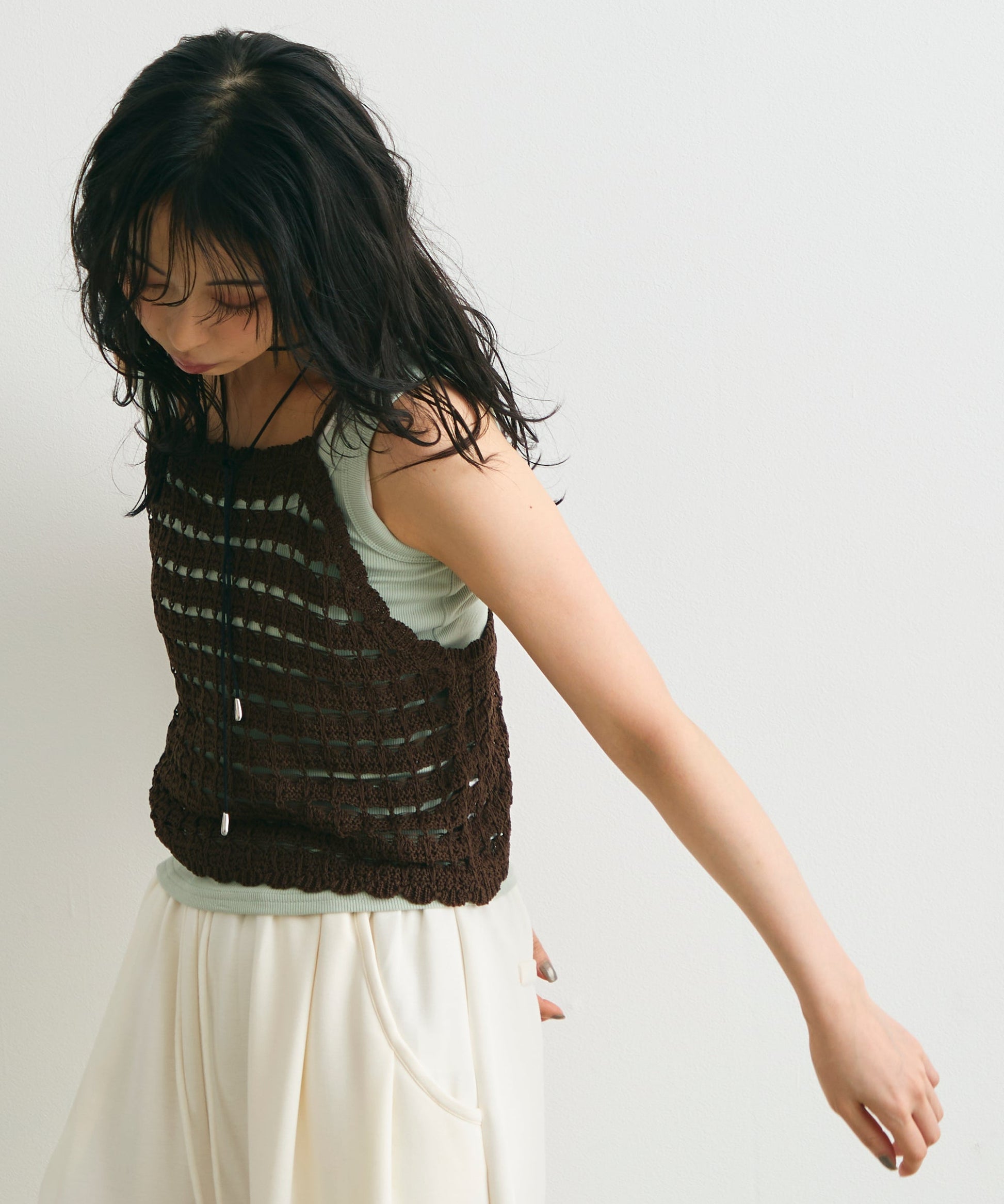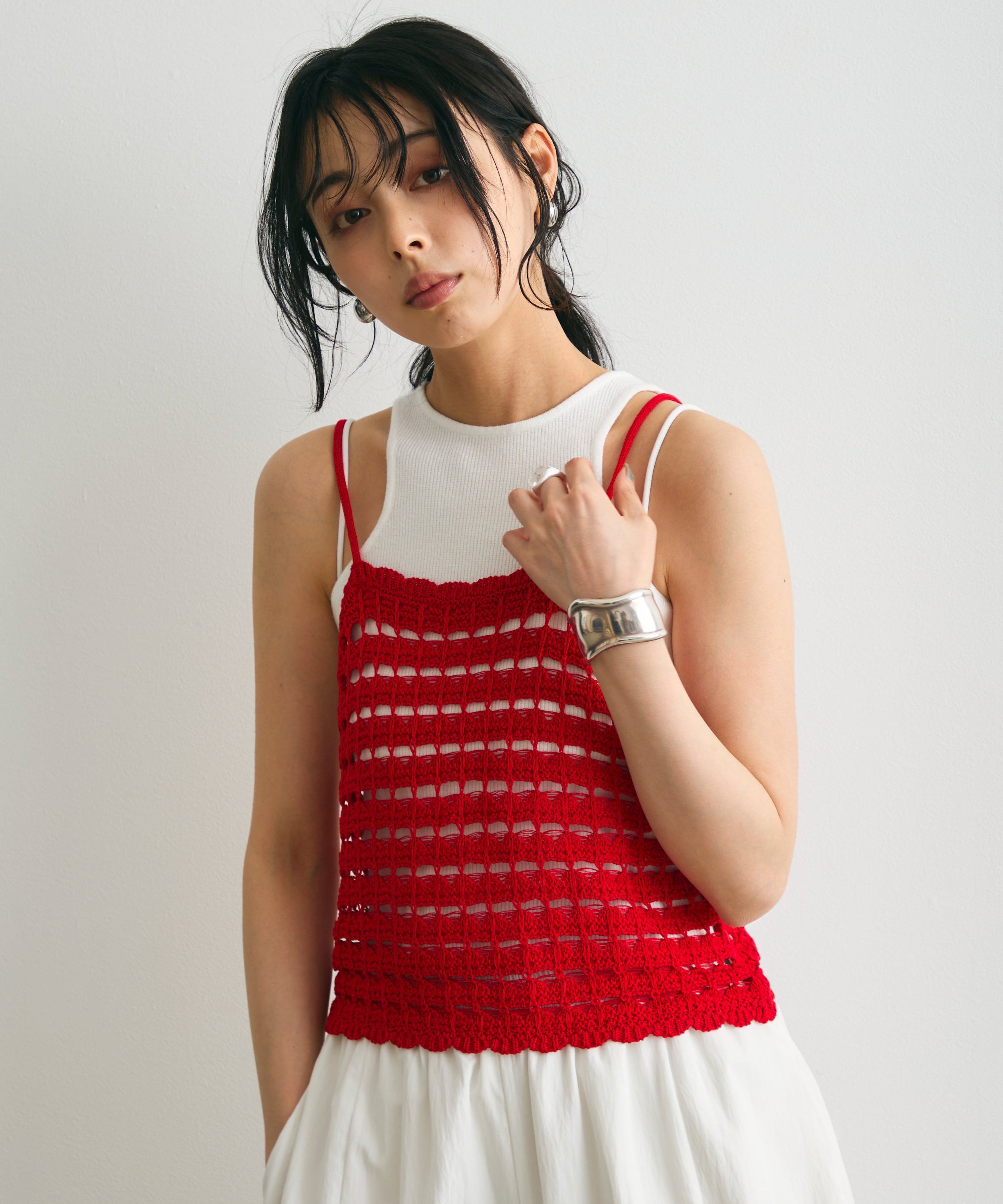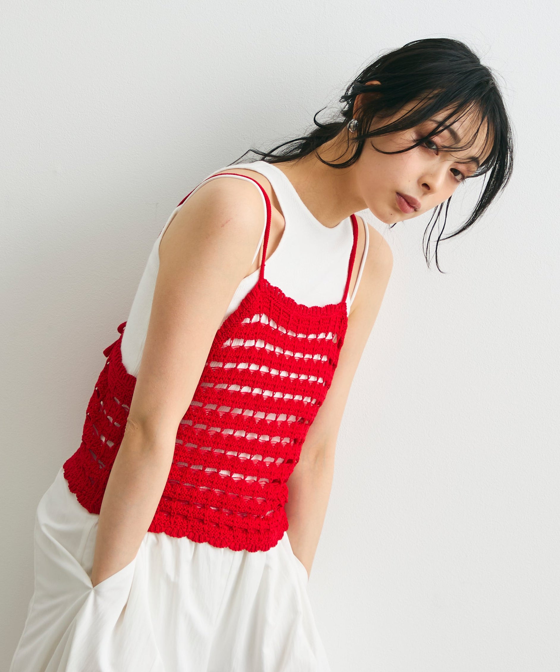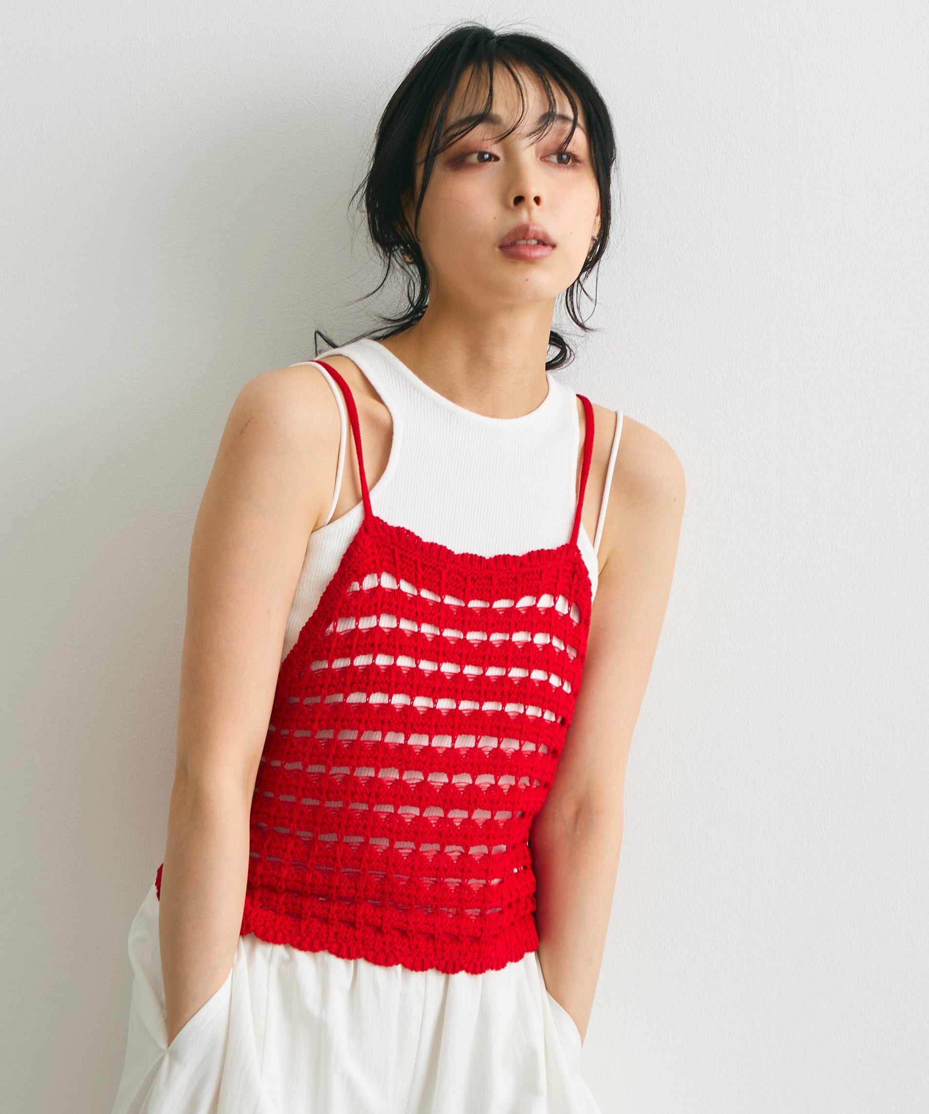 軽やかな透かし編みが女性らしさを引き立てるニットキャミ。