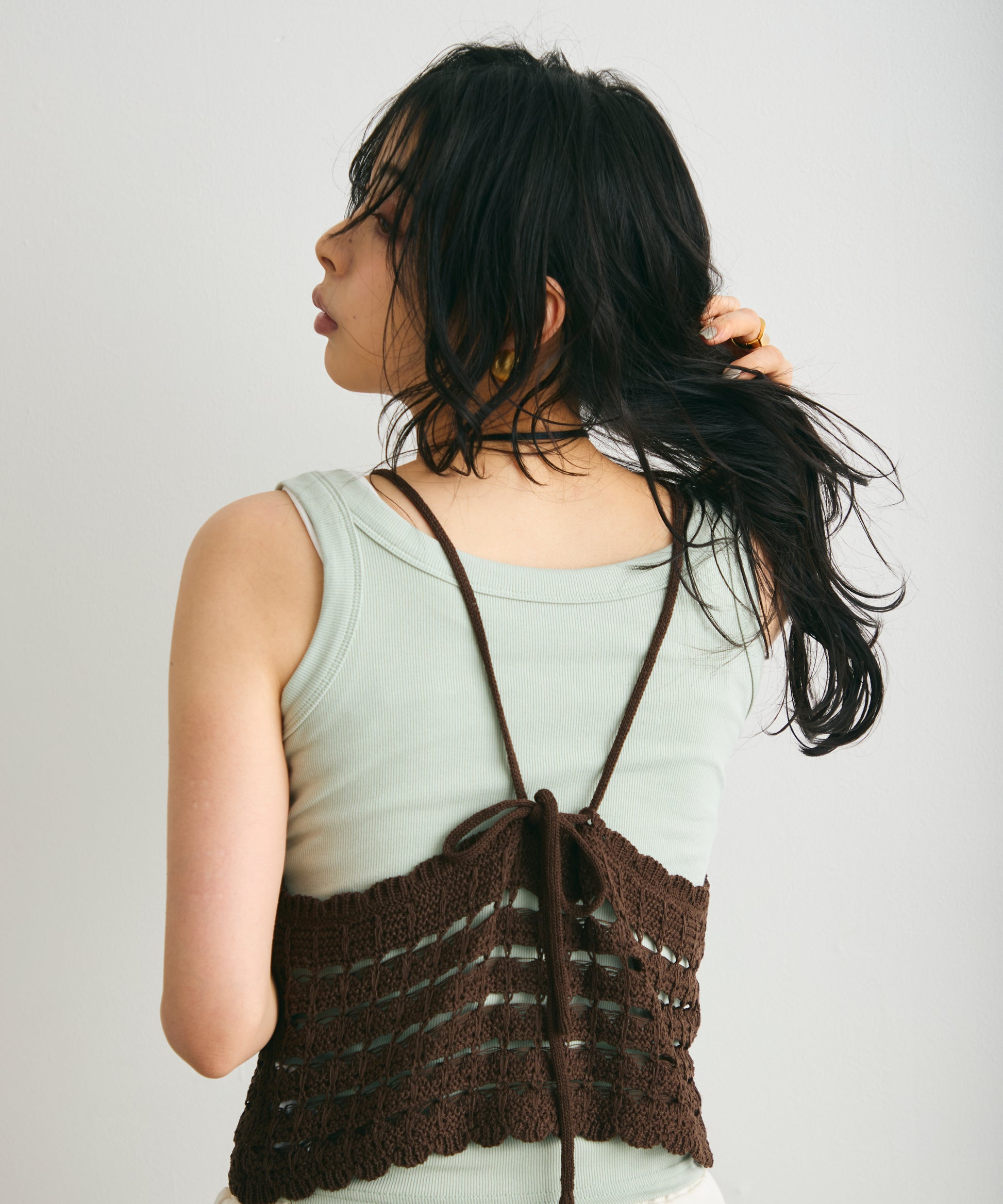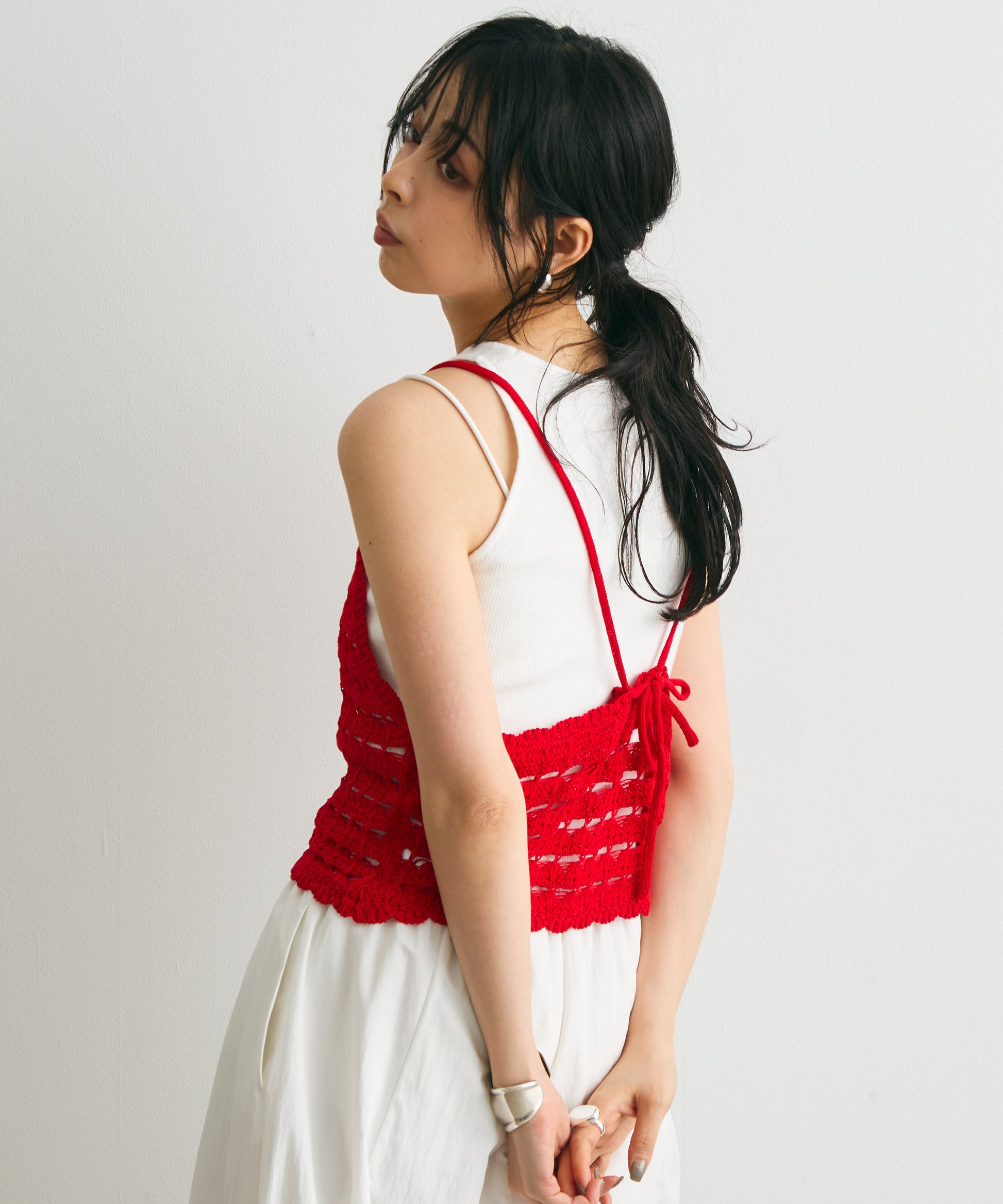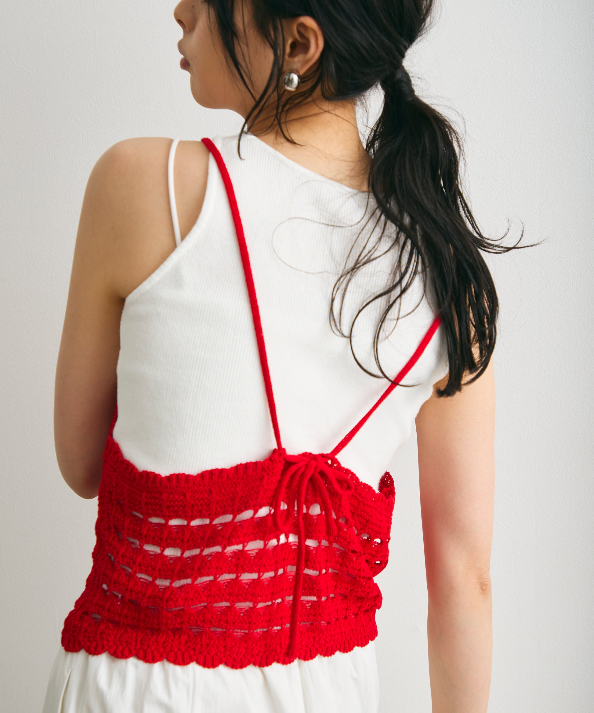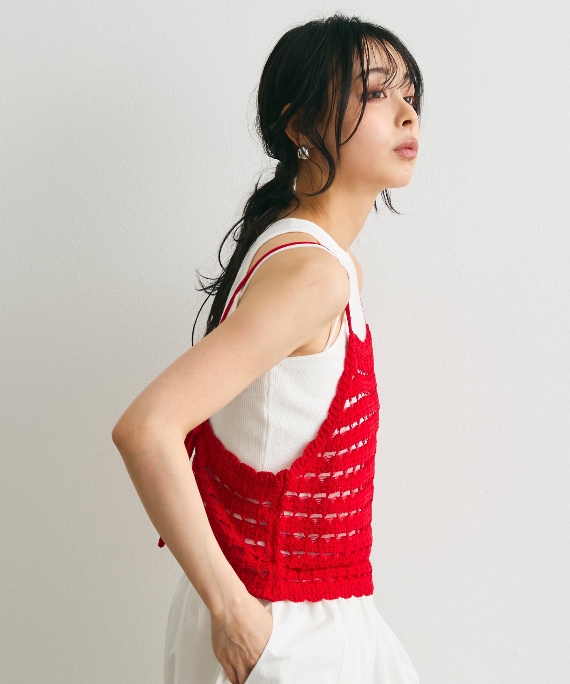 軽やかな透かし編みが女性らしさを引き立てるニットキャミ。