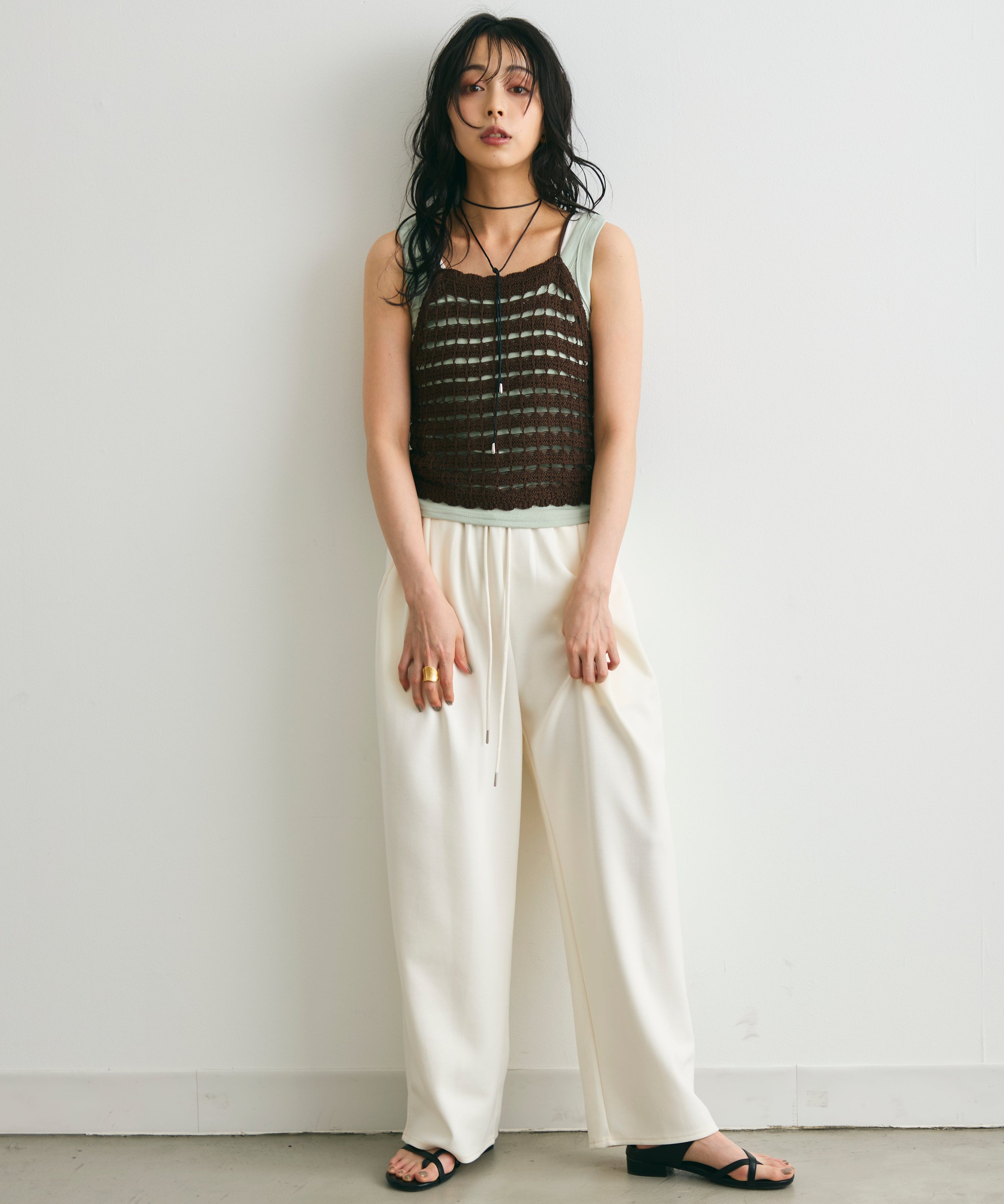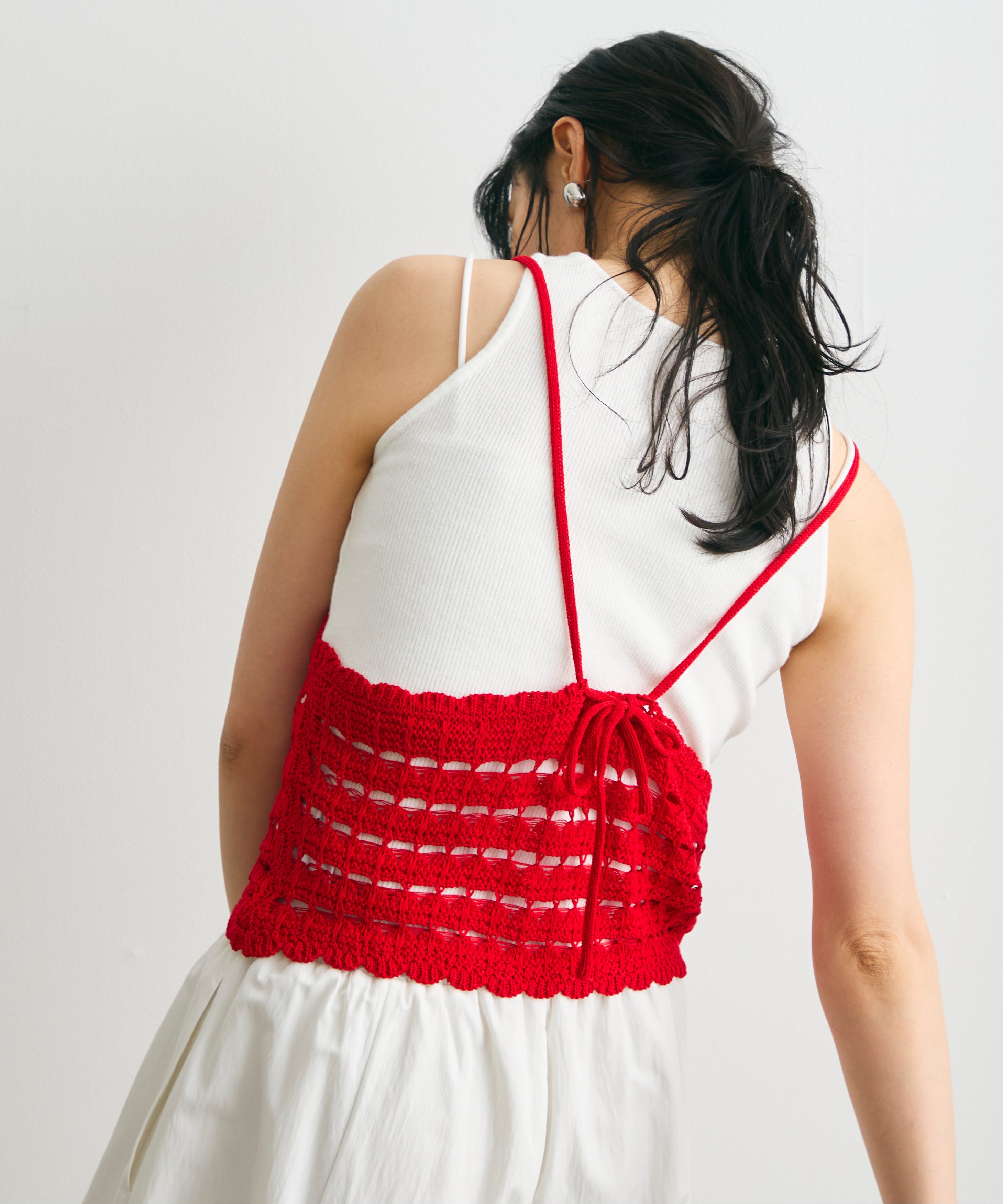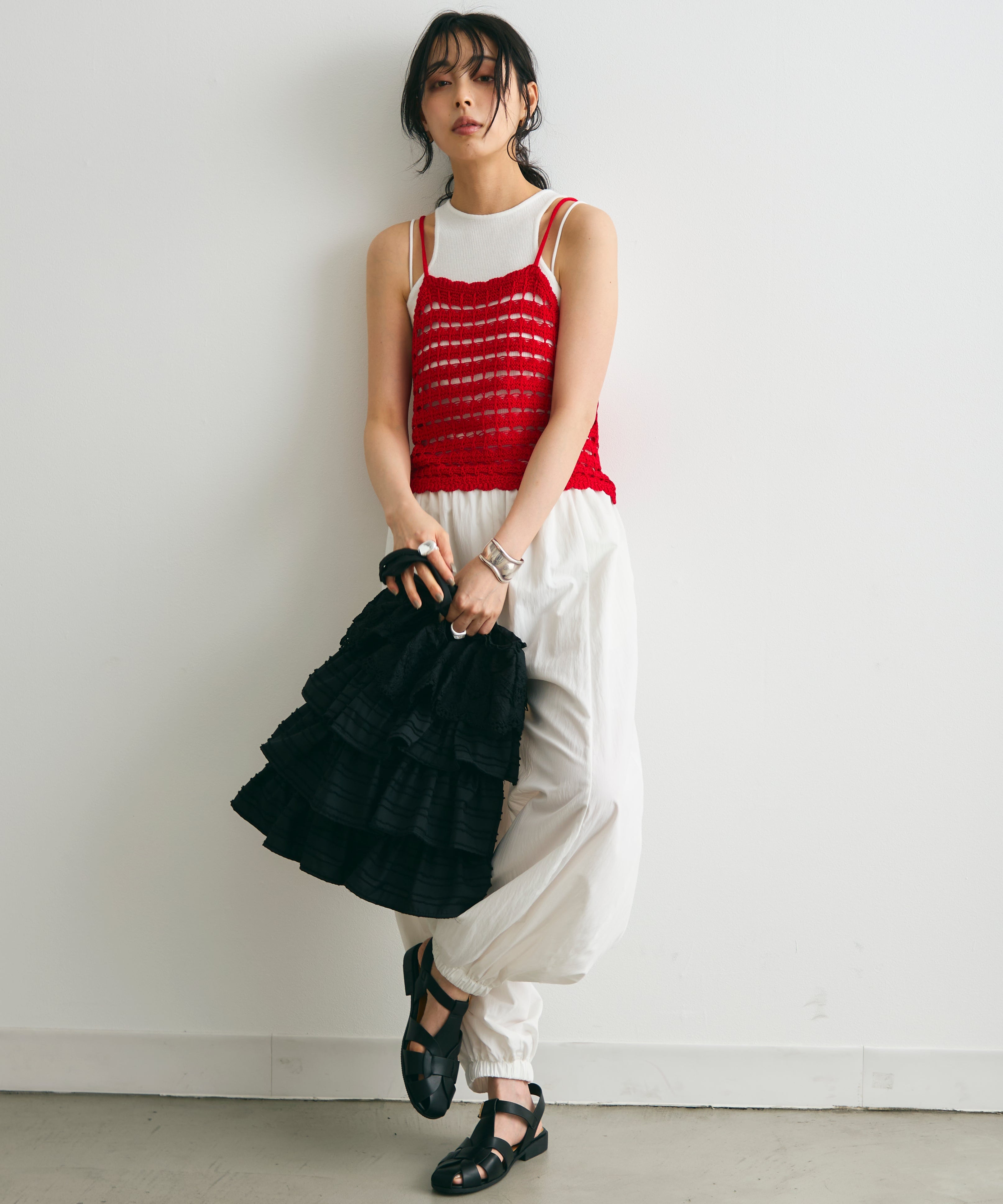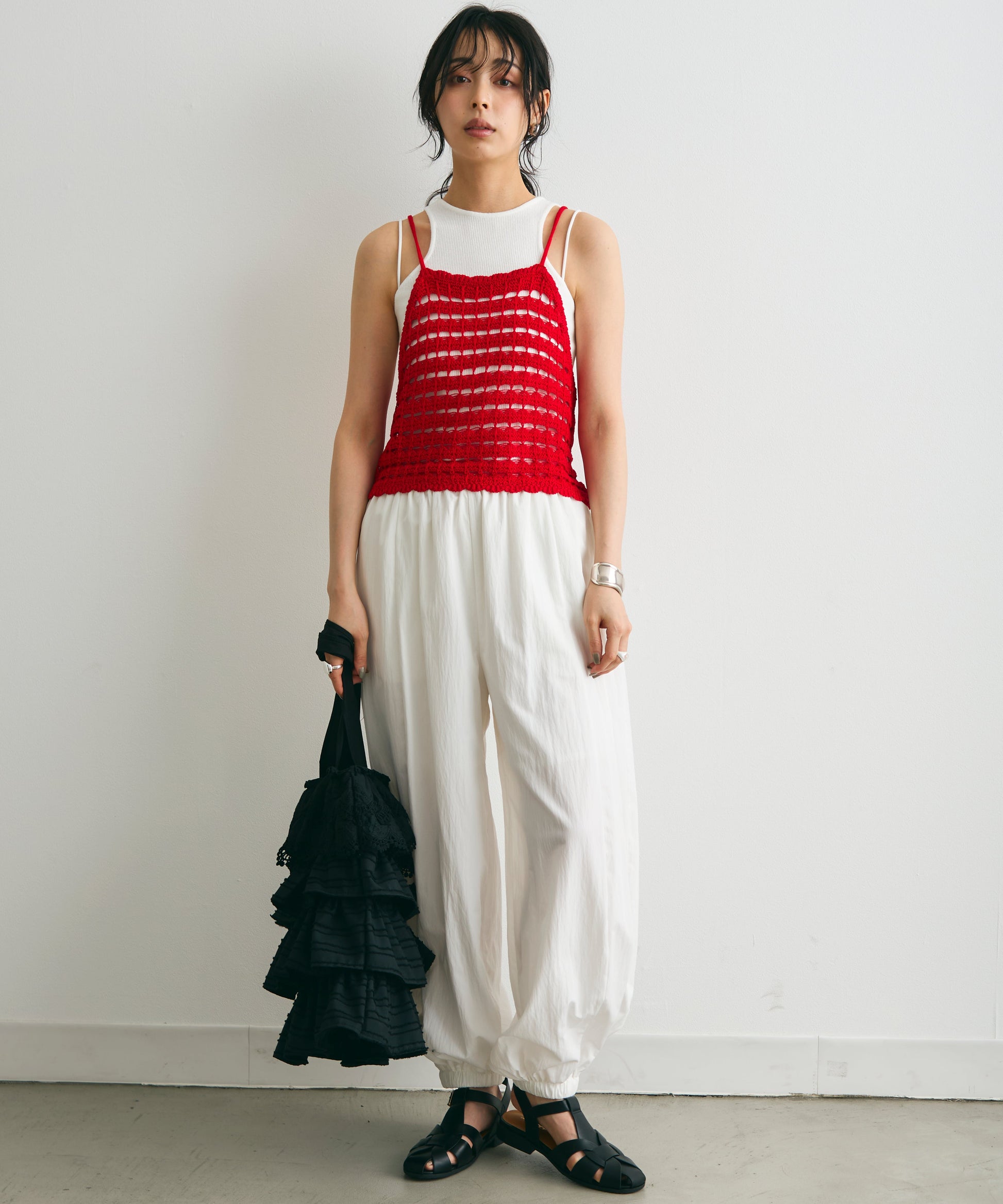 軽やかな透かし編みが女性らしさを引き立てるニットキャミ。