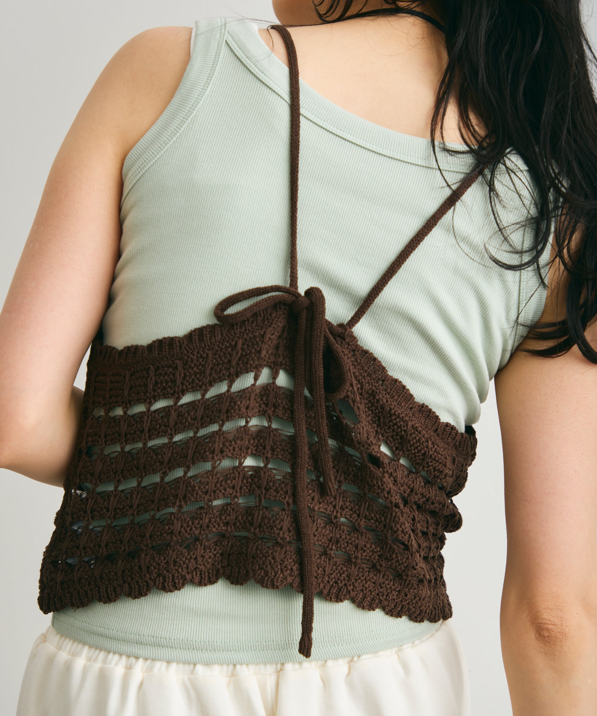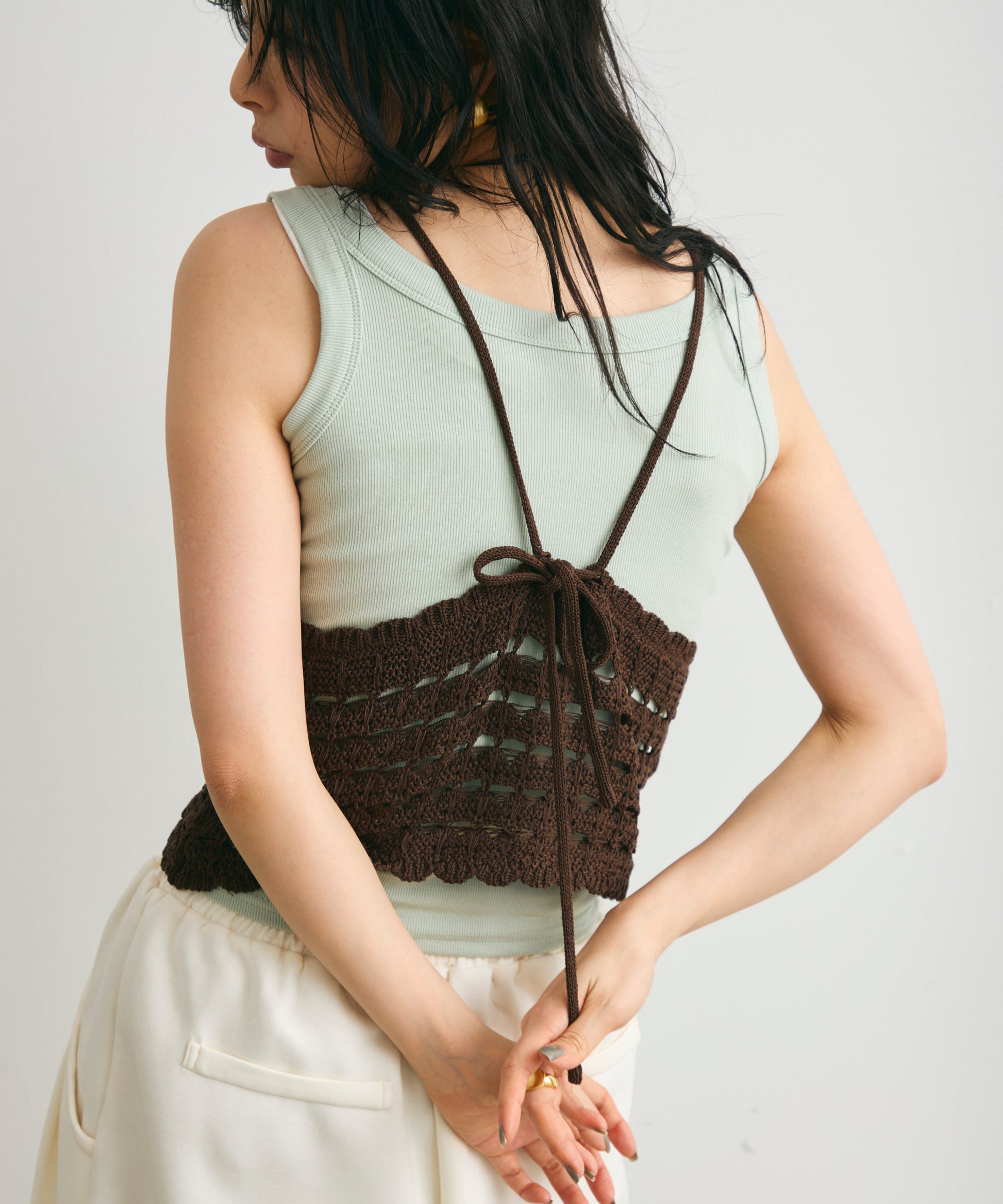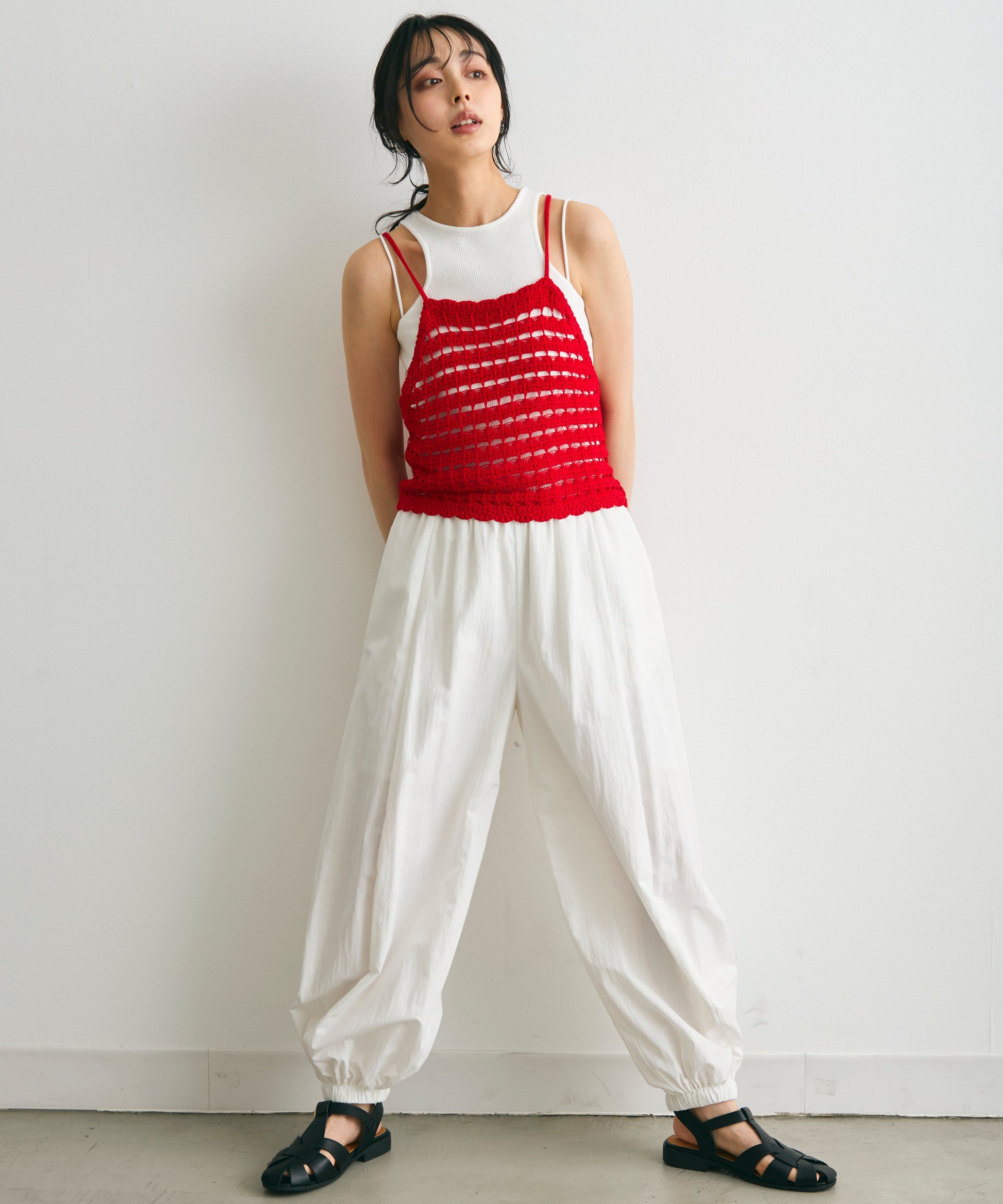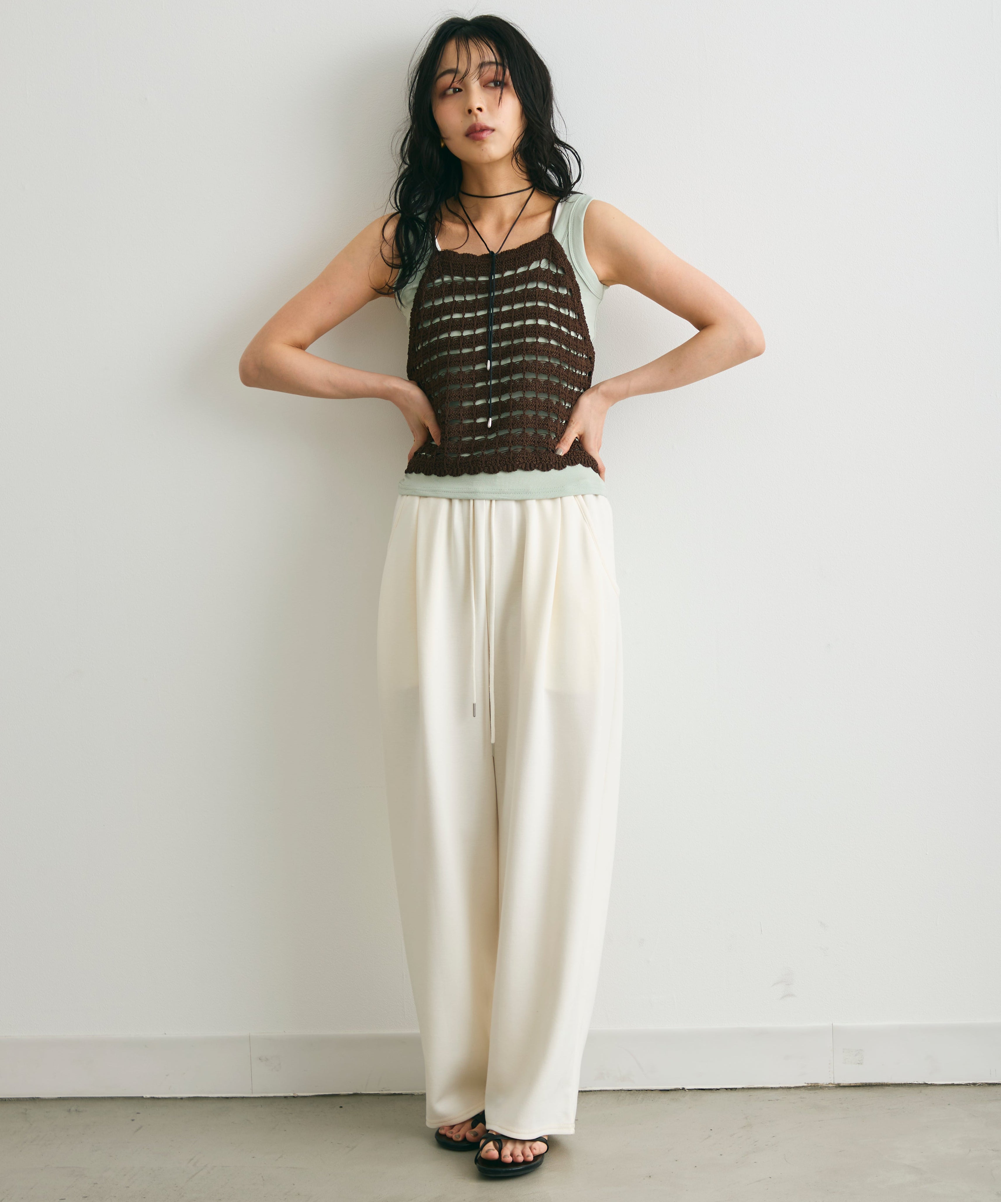 軽やかな透かし編みが女性らしさを引き立てるニットキャミ。