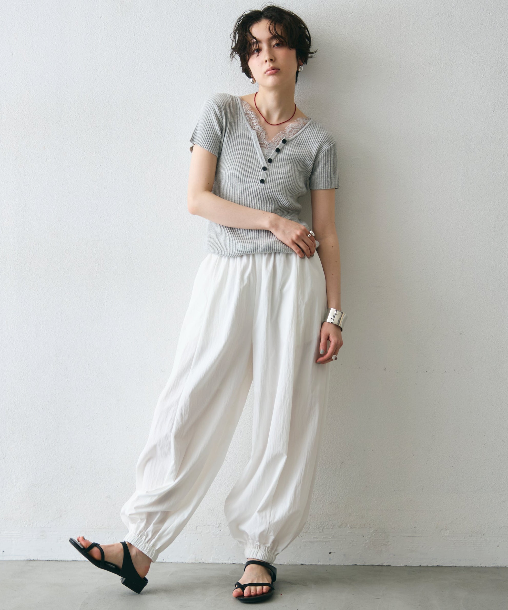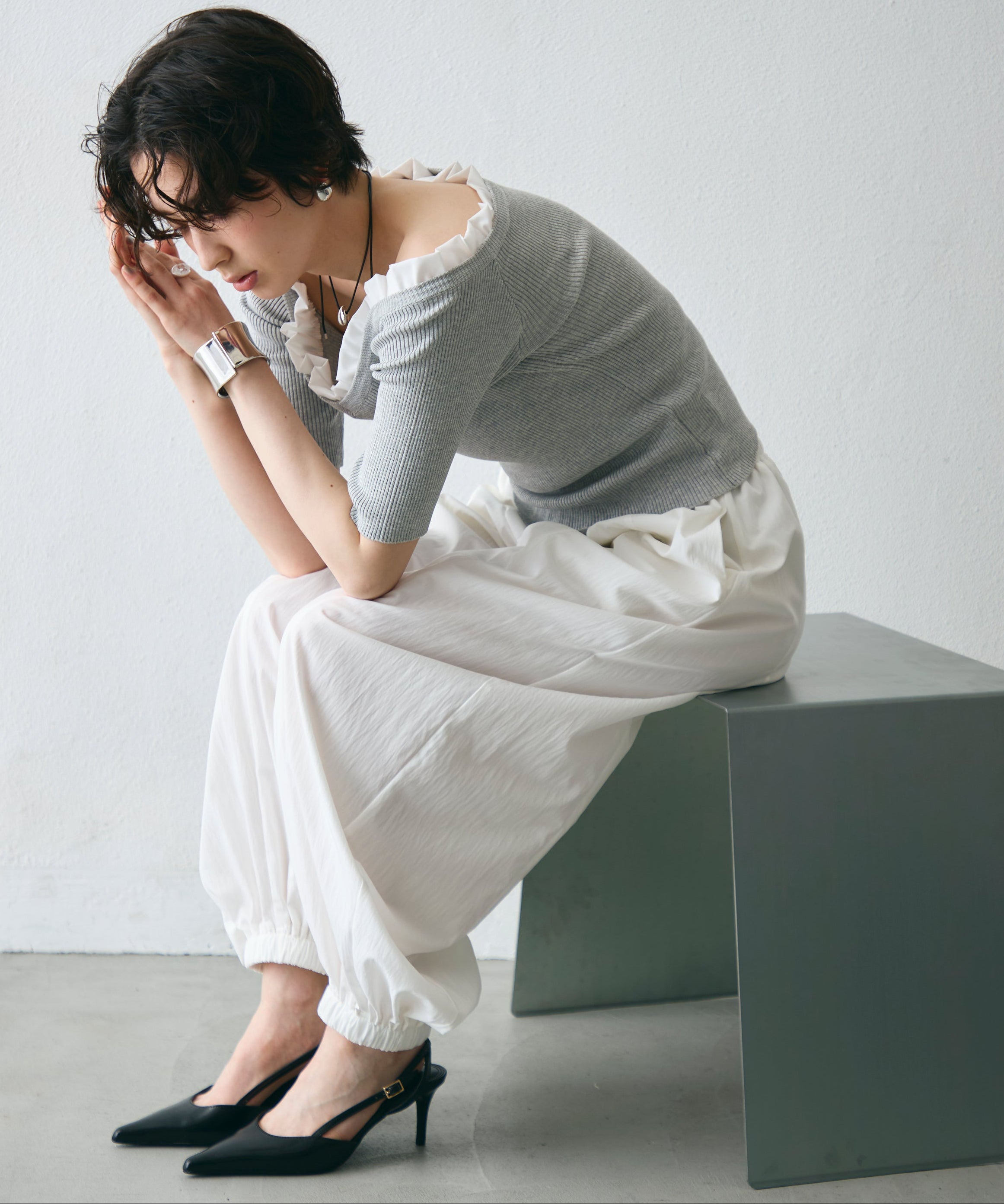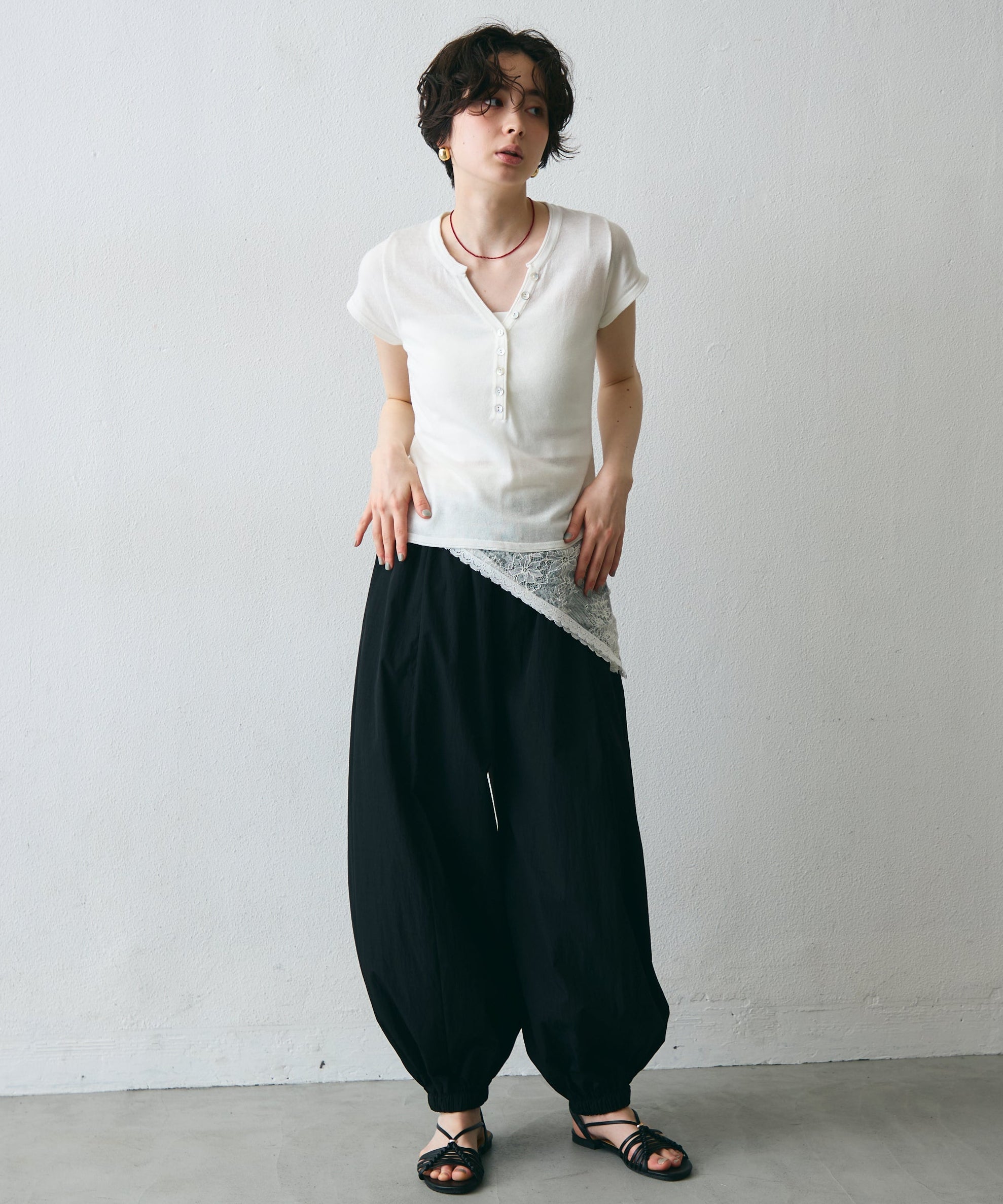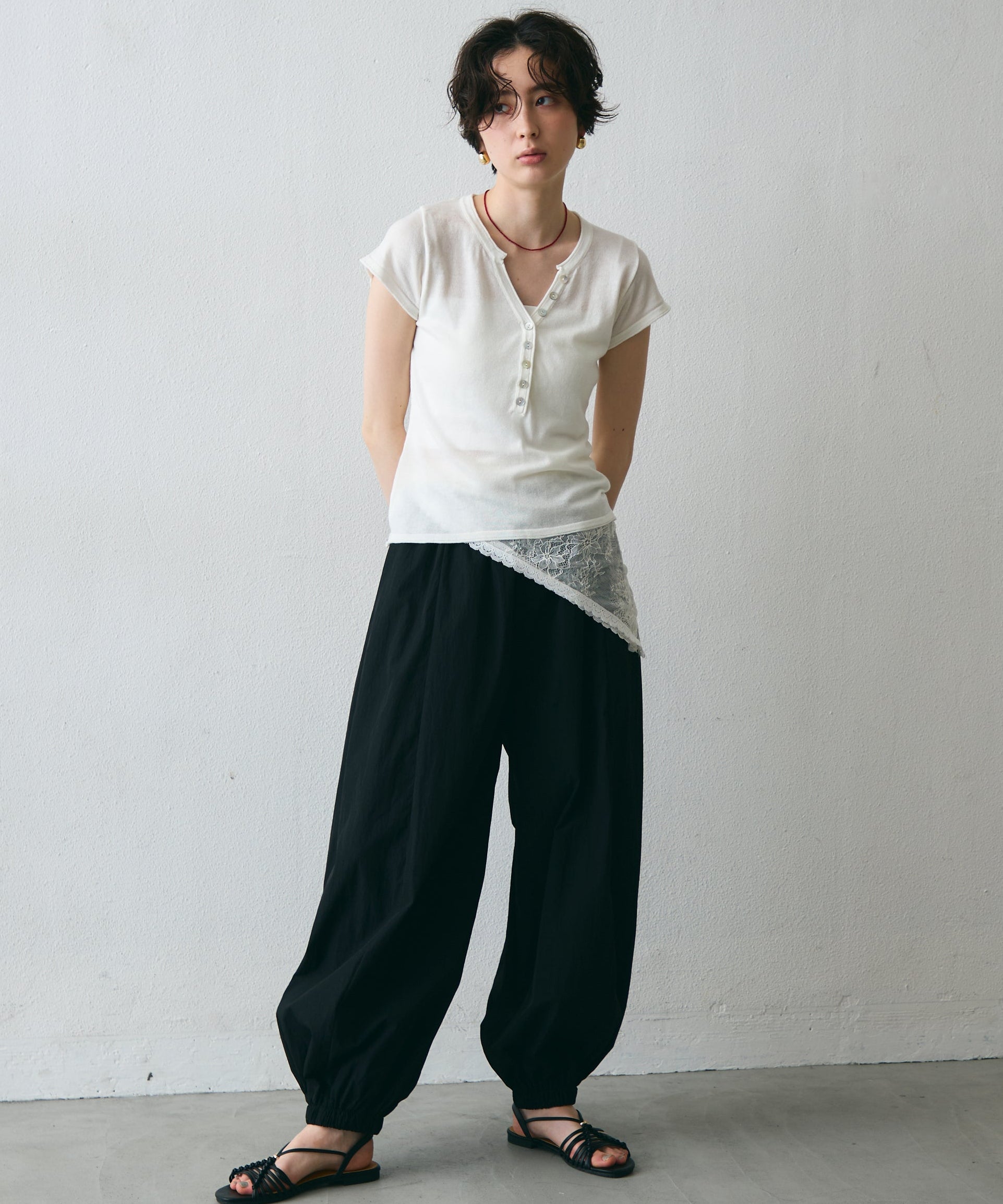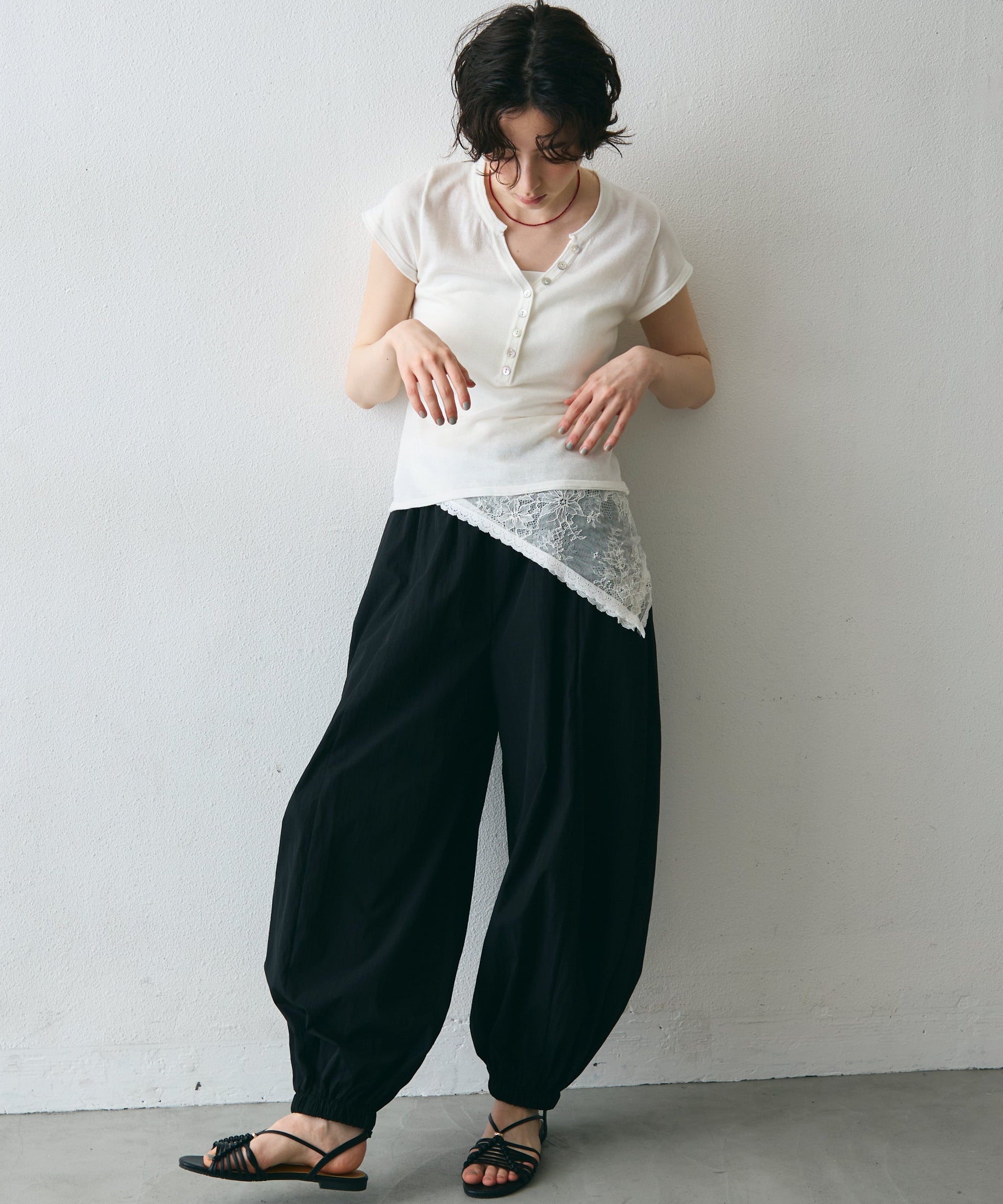 ワッシャー加工の表情感と、バルーンシルエットの落ち感が上品に映えるロングパンツ。軽やかな素材が動くたびに揺れ、1枚で洗練されたスタイルが完成。シンプルなトップスと合わせるだけで大人のきれいめコーデに。