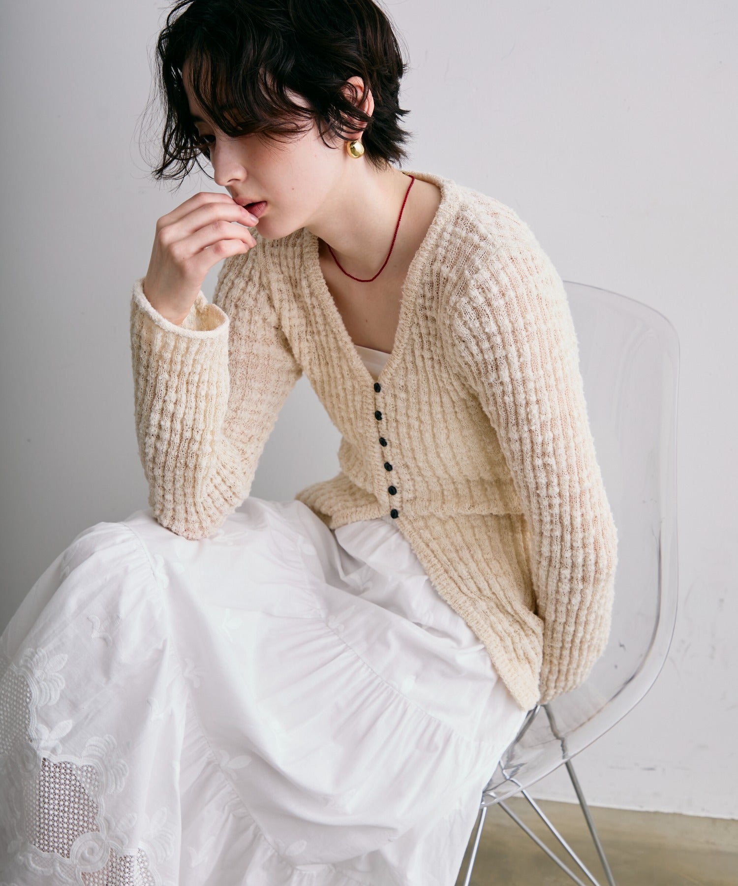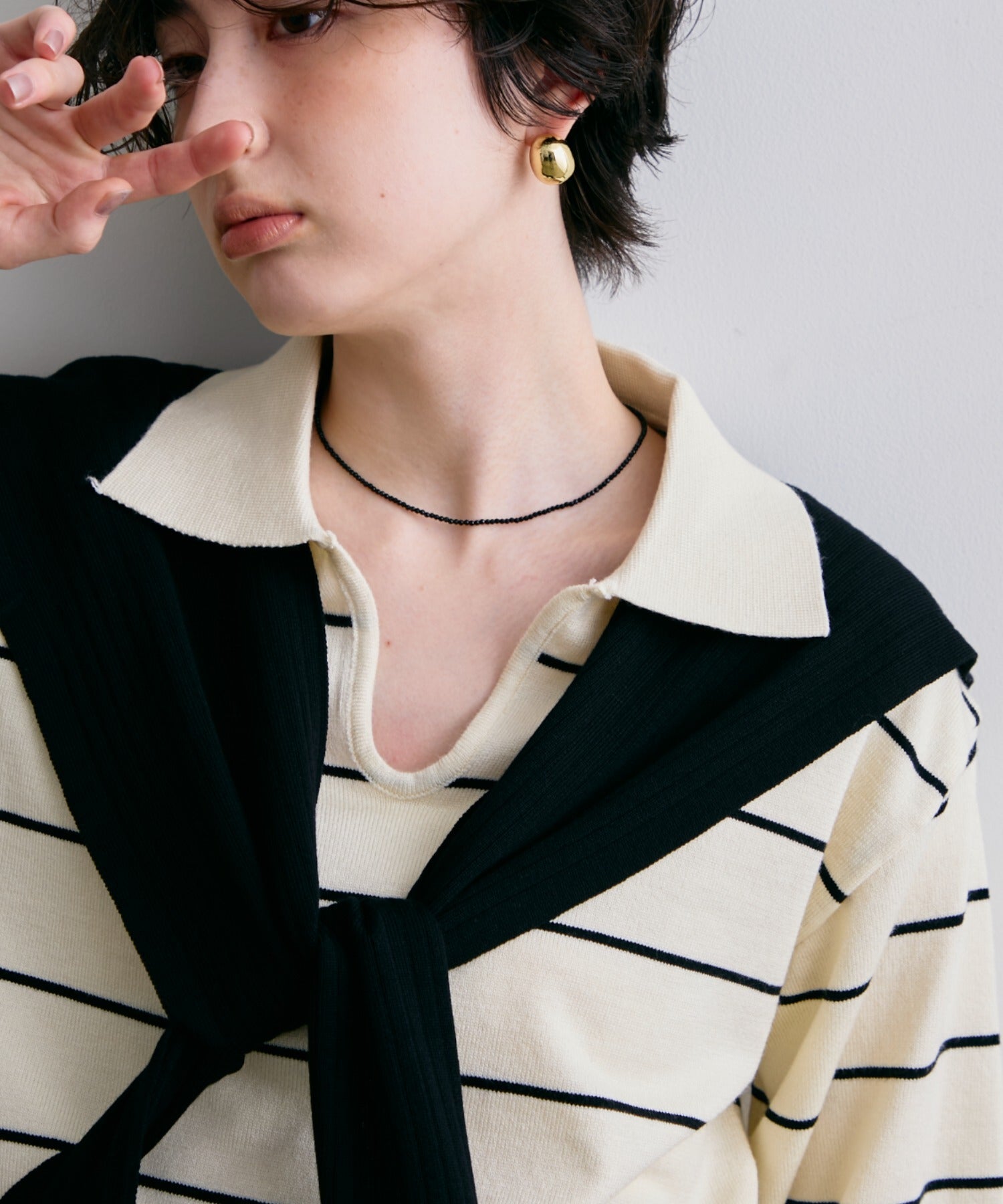 シンプルなコーデにプラスするだけで、上品なアクセントに。